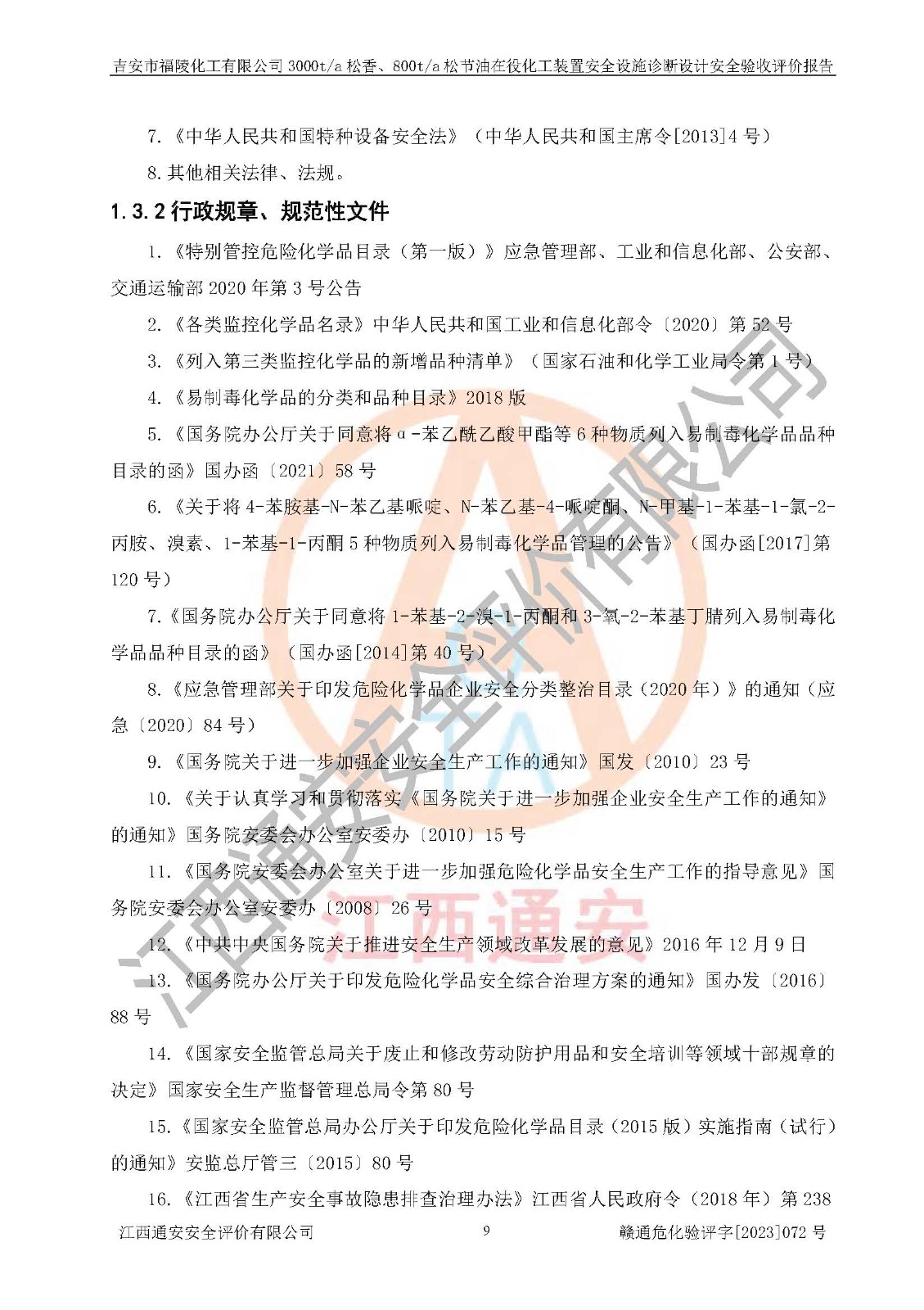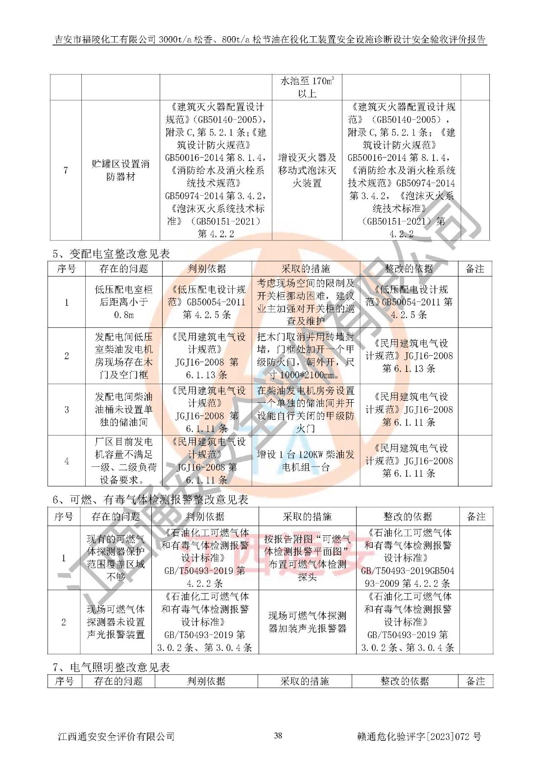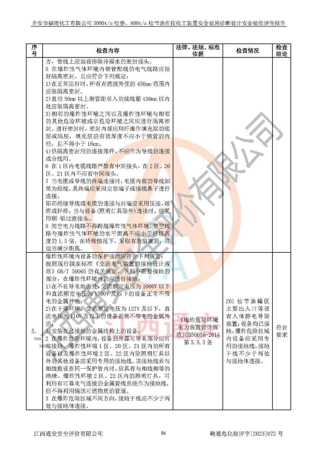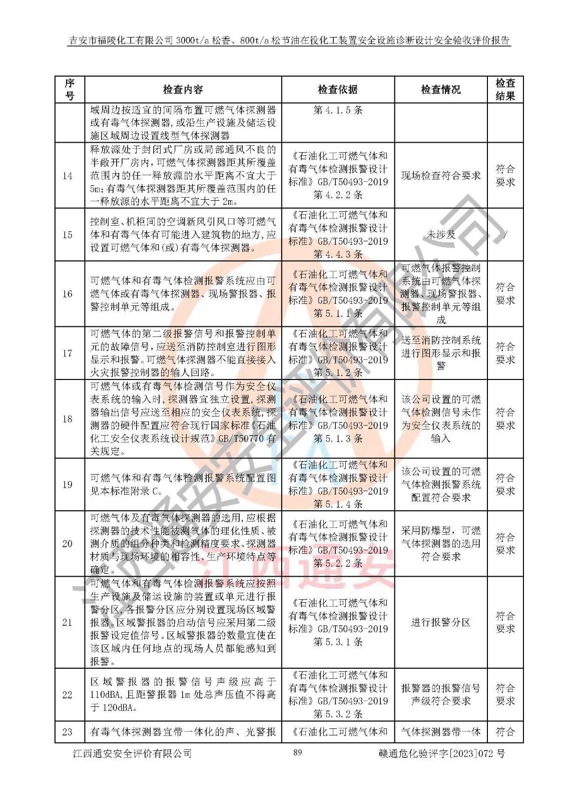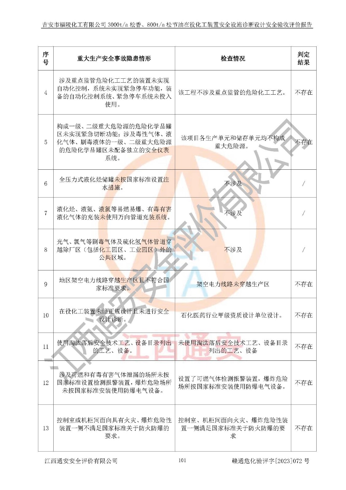 評價報告名稱 | 吉安市福陵化工有限公司3000ta松香、800ta松節(jié)油在役化工裝置安全設(shè)施診斷設(shè)計安全驗收評價報告 | |||