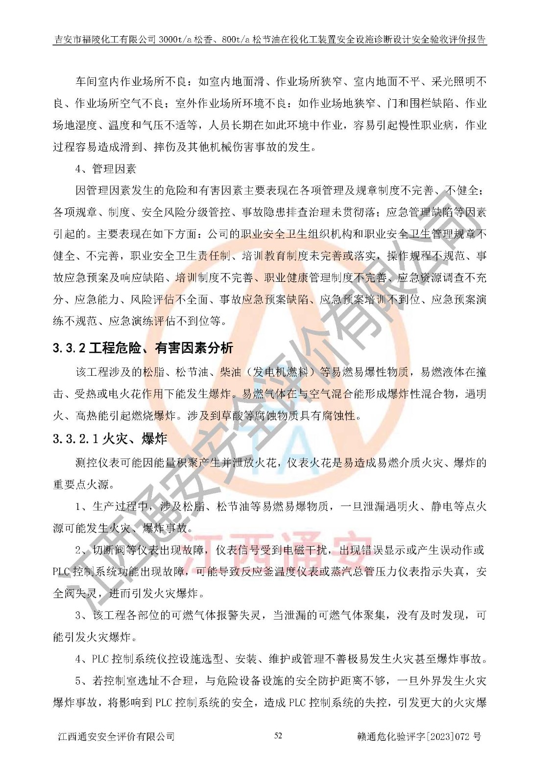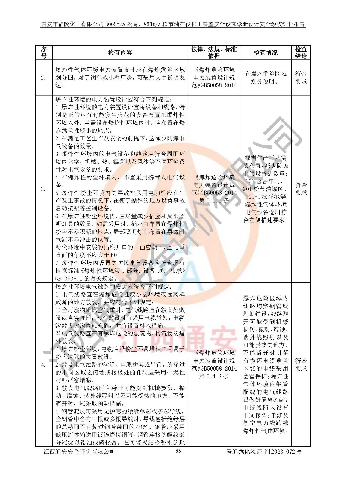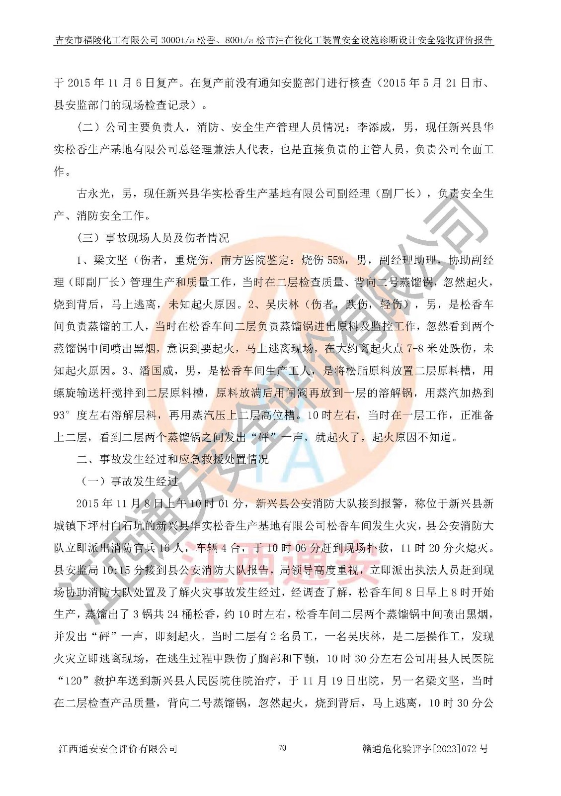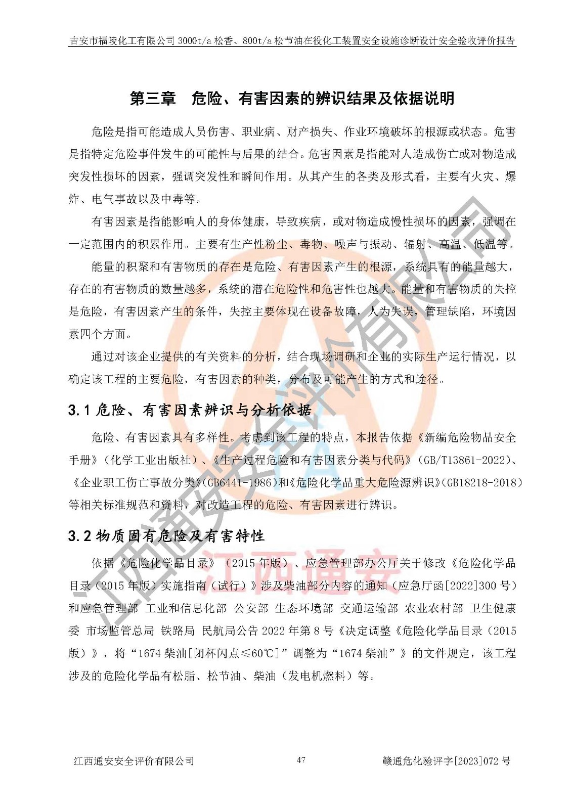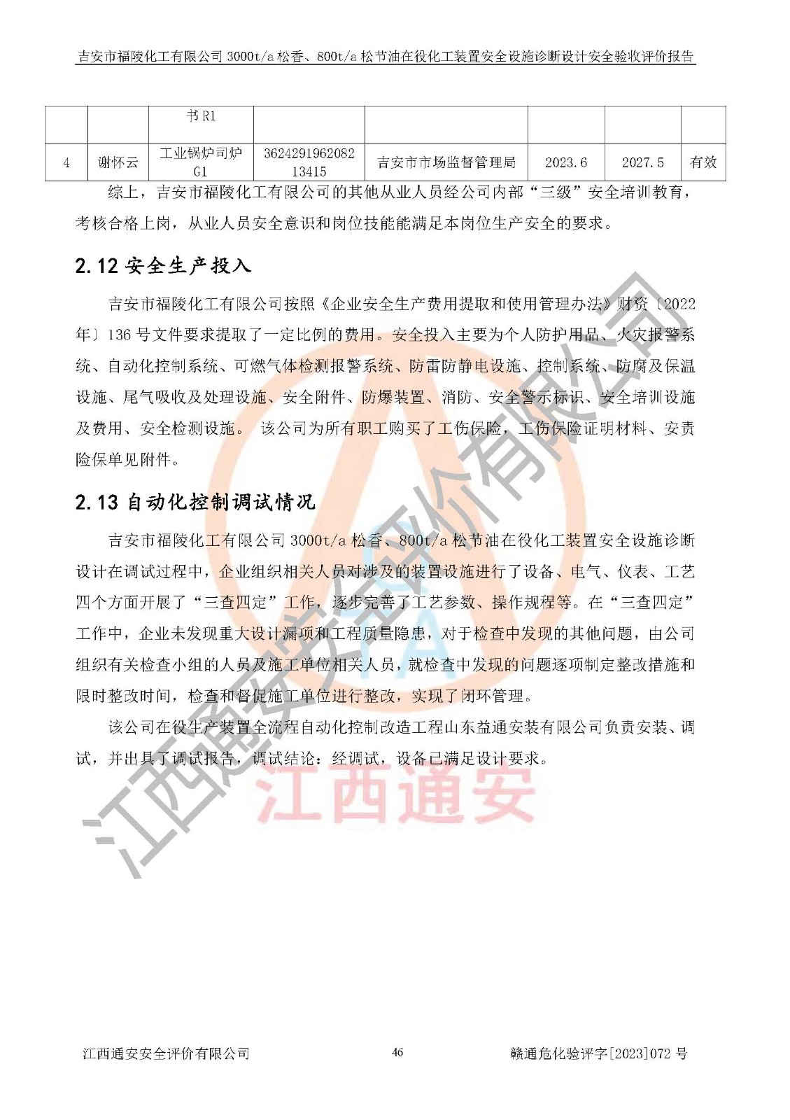 評價報告名稱 | 吉安市福陵化工有限公司3000ta松香、800ta松節(jié)油在役化工裝置安全設(shè)施診斷設(shè)計安全驗收評價報告 | |||