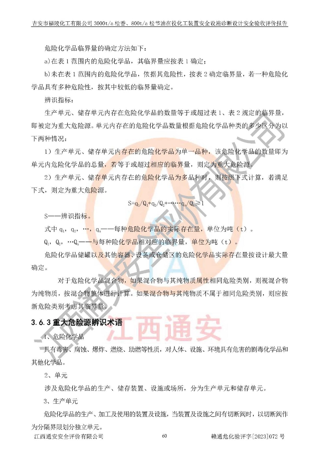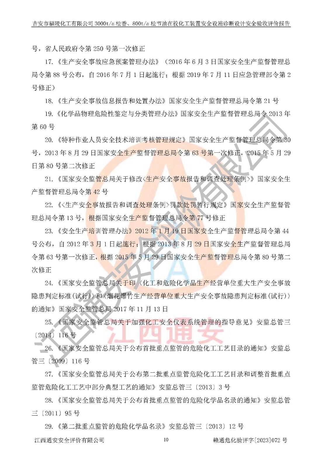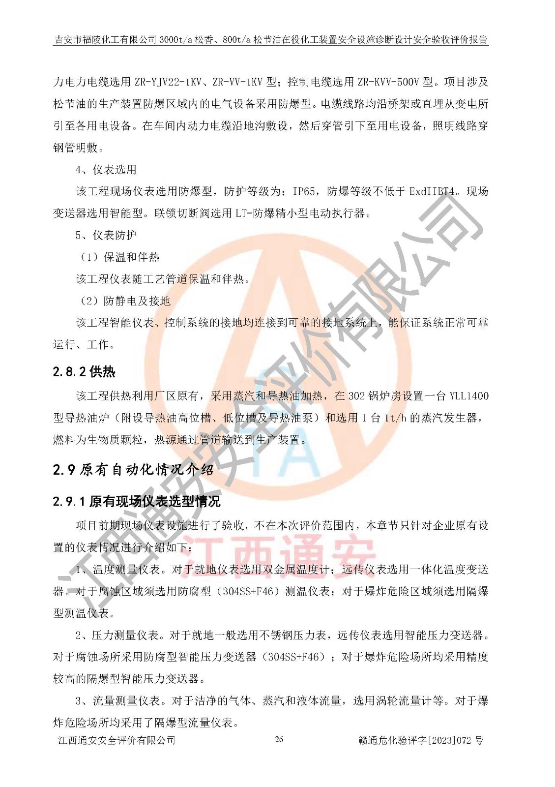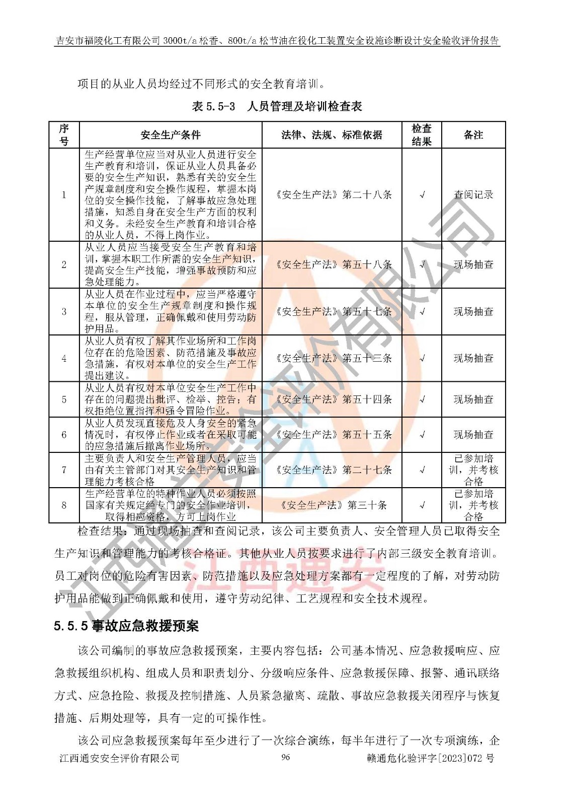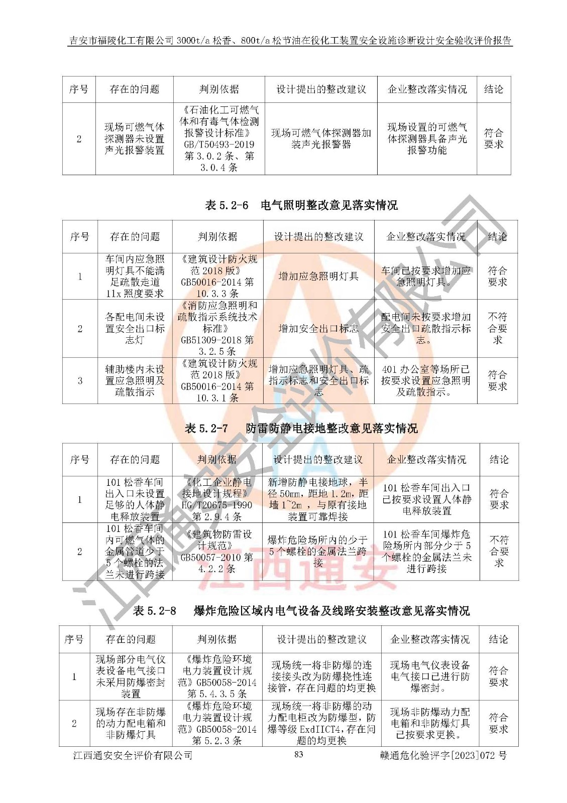 評價報告名稱 | 吉安市福陵化工有限公司3000ta松香、800ta松節(jié)油在役化工裝置安全設(shè)施診斷設(shè)計安全驗收評價報告 | |||