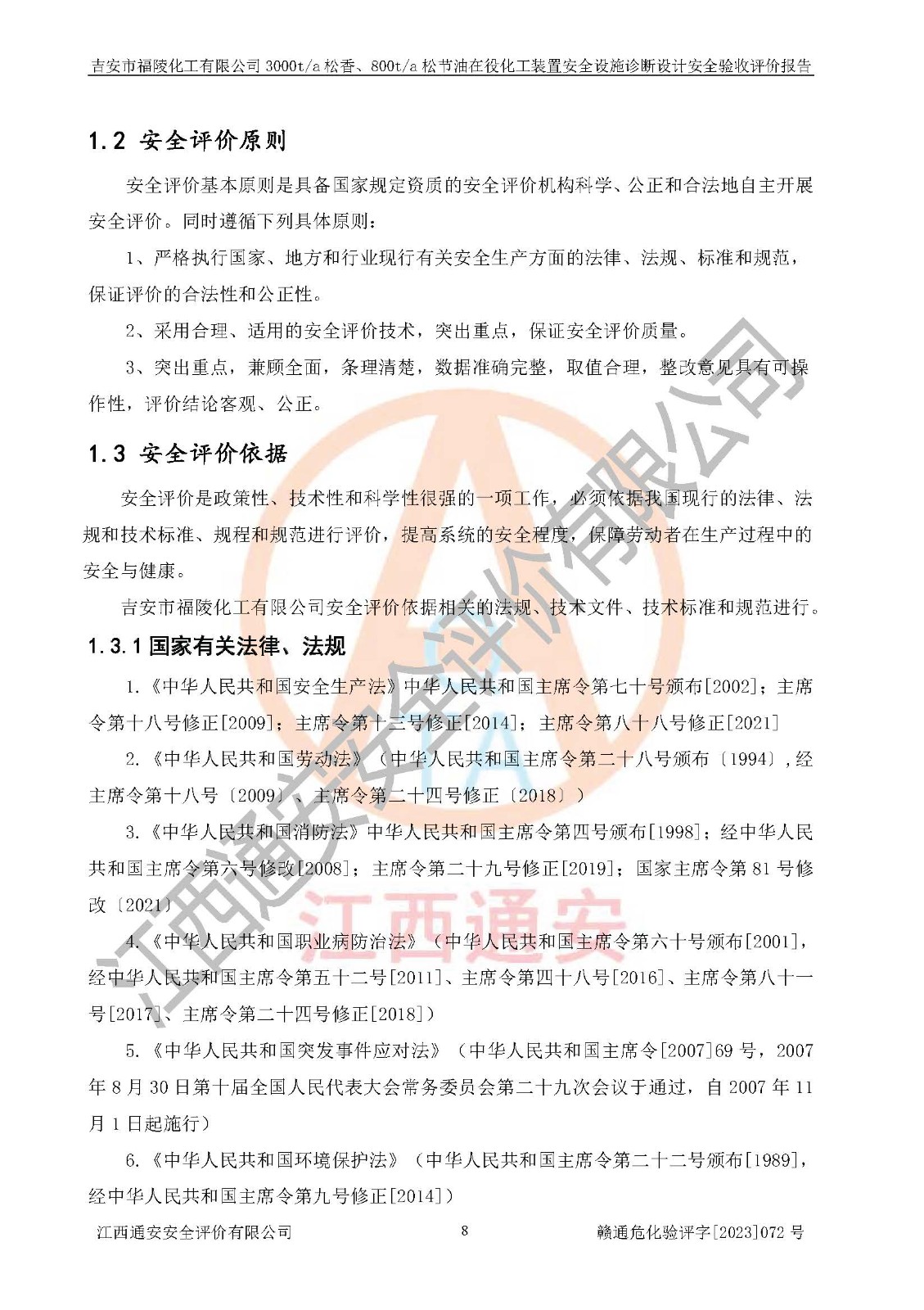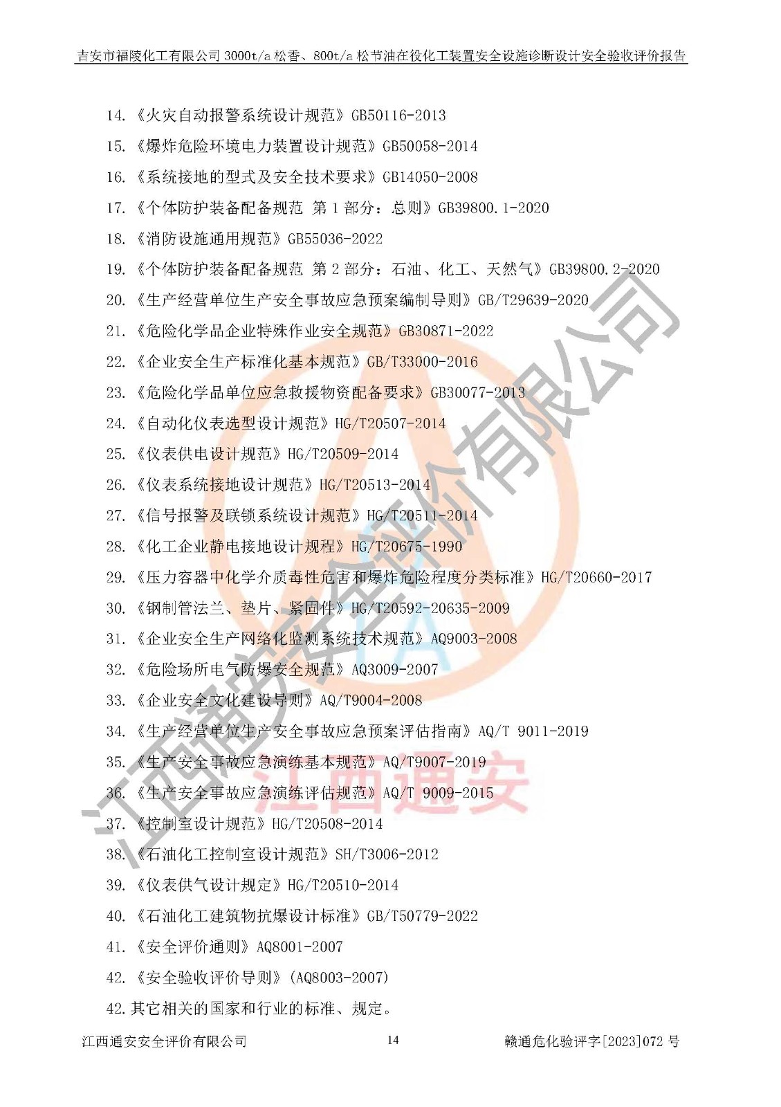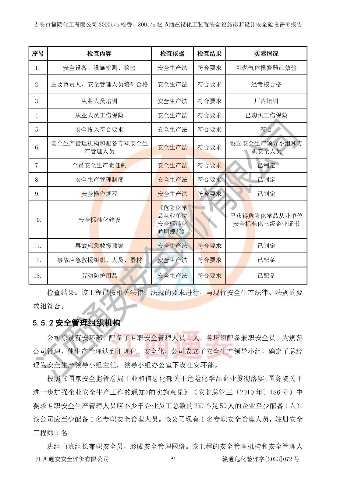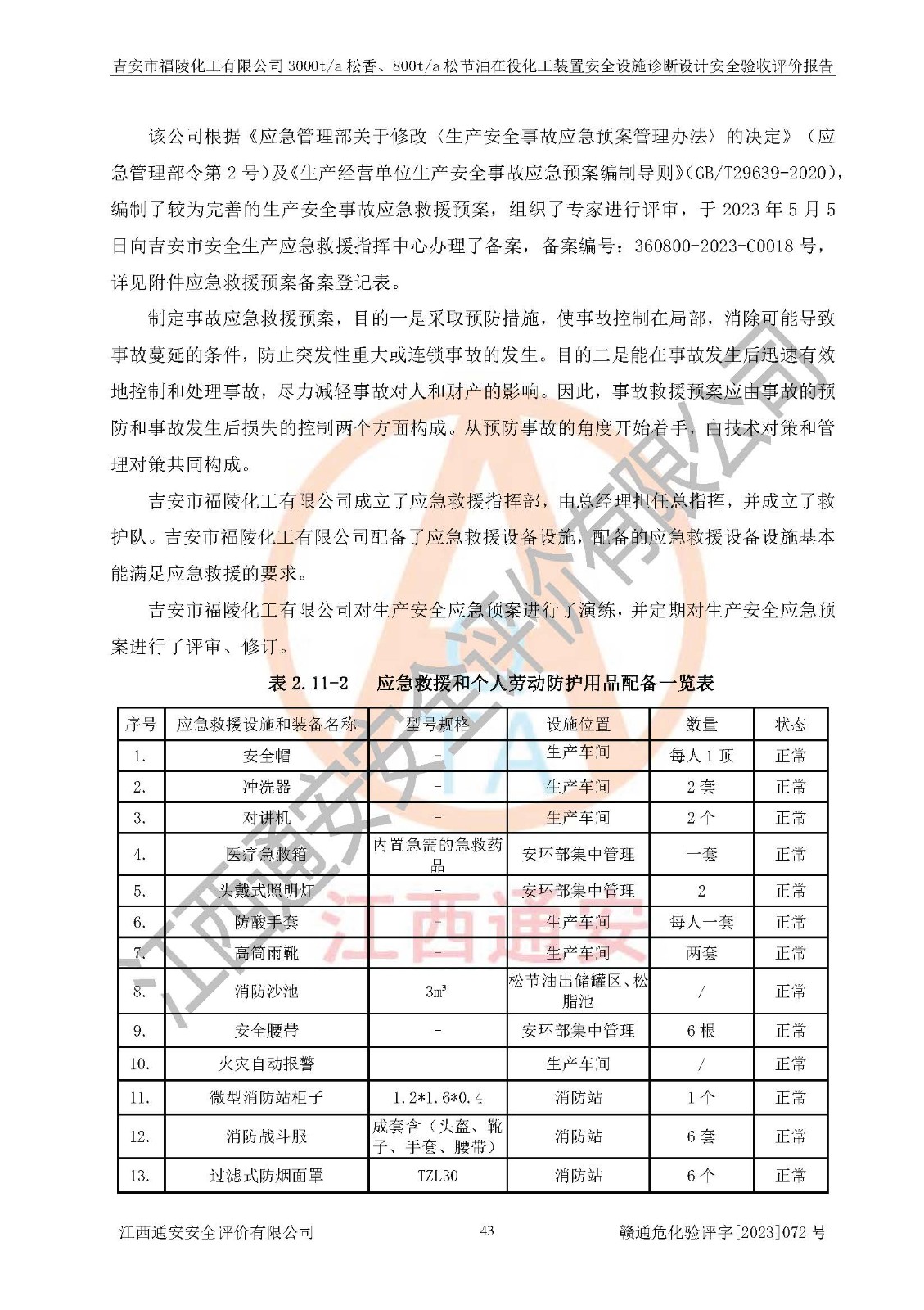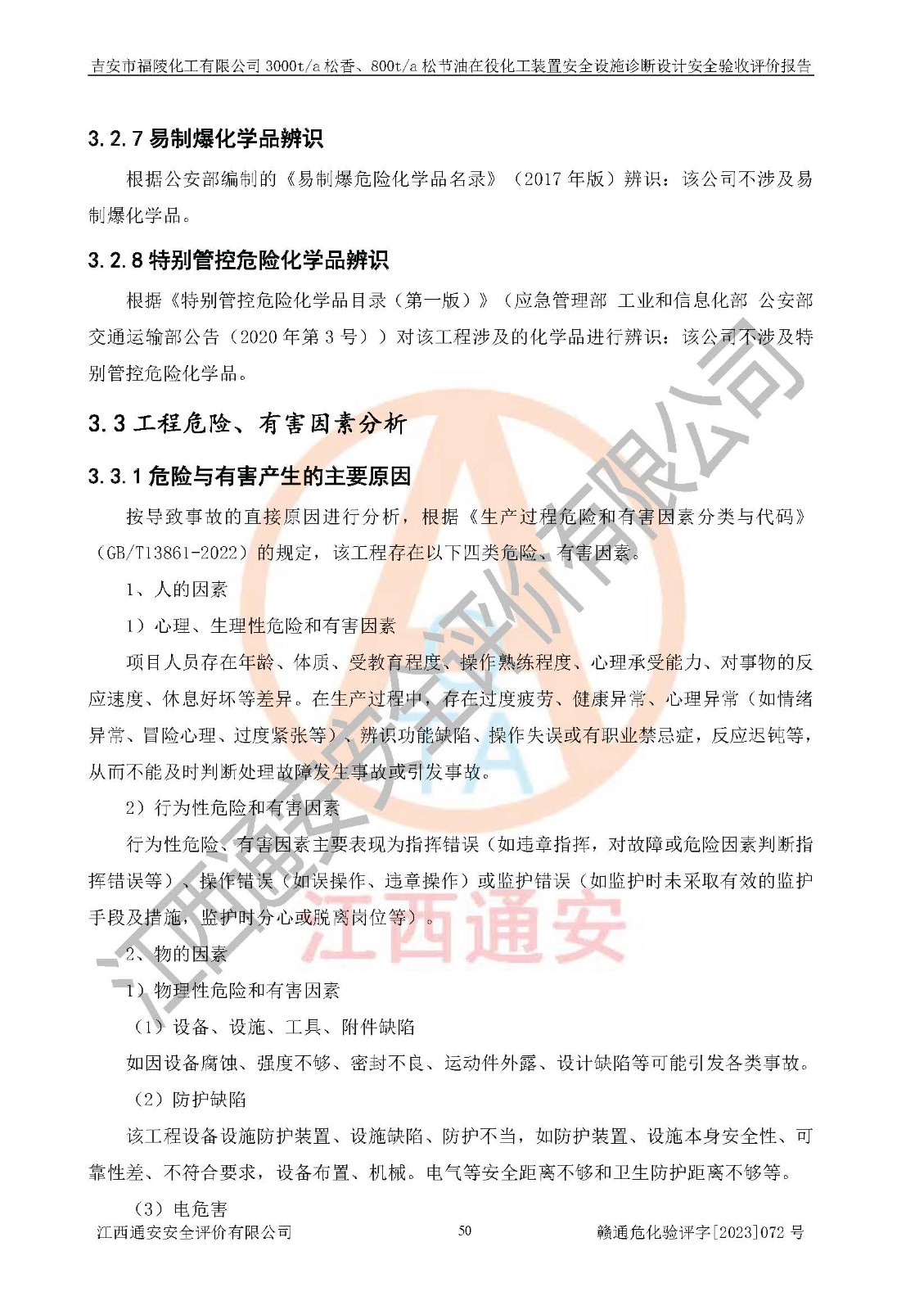 評價報告名稱 | 吉安市福陵化工有限公司3000ta松香、800ta松節(jié)油在役化工裝置安全設(shè)施診斷設(shè)計安全驗收評價報告 | |||