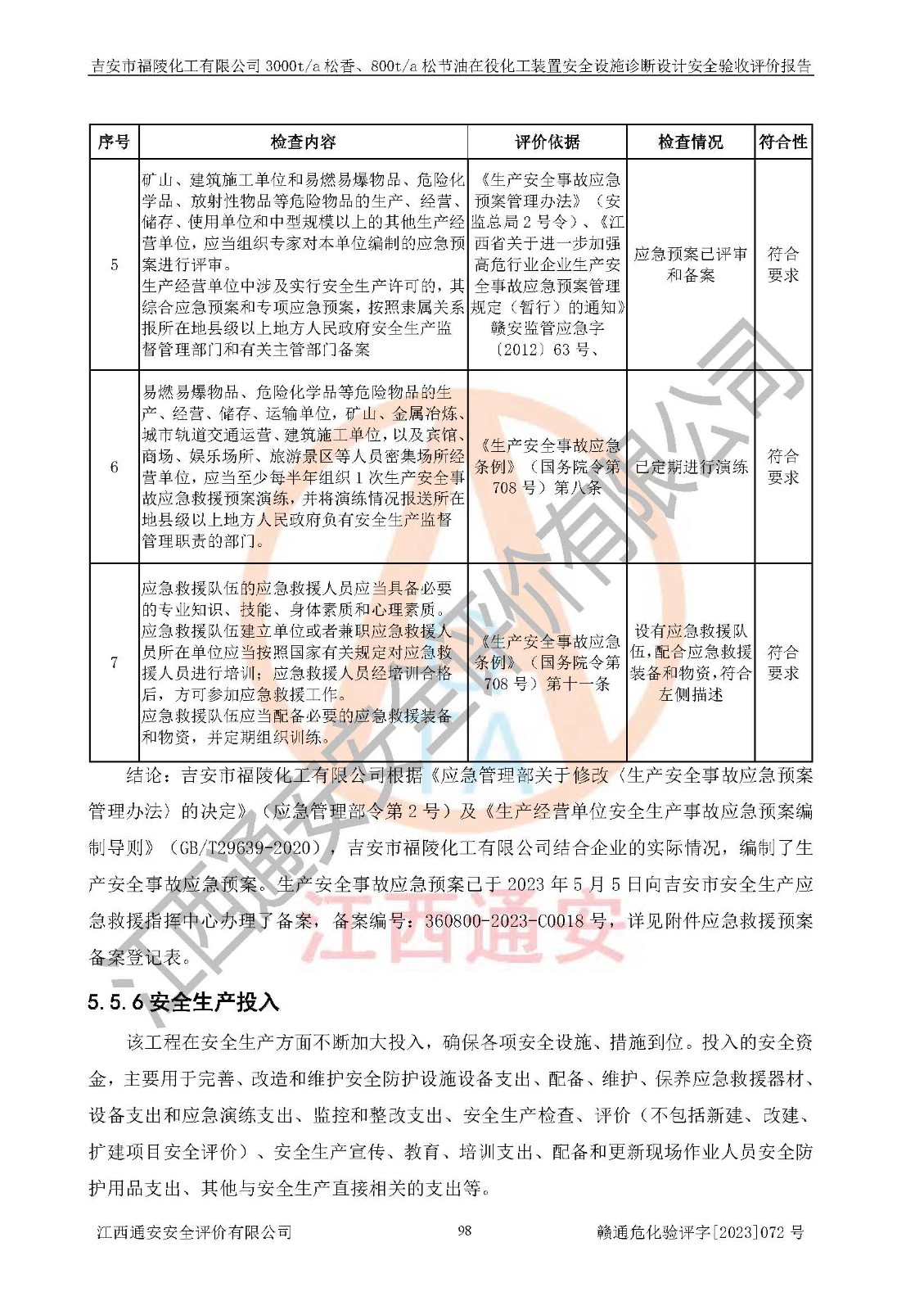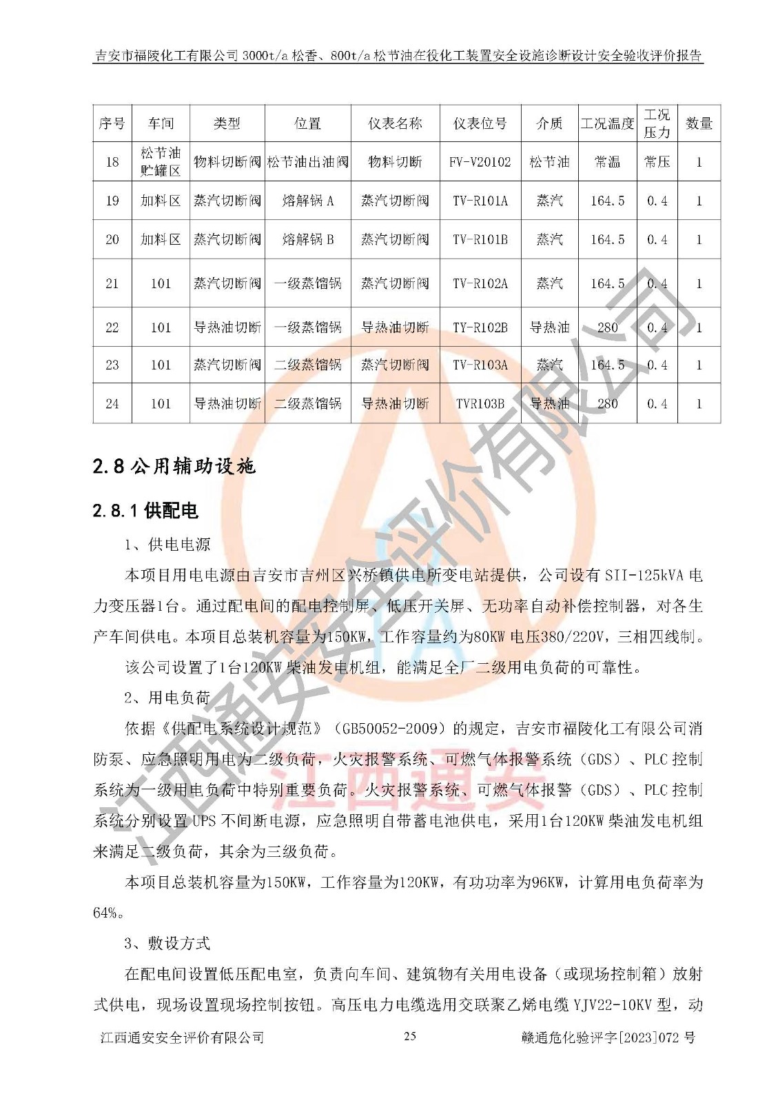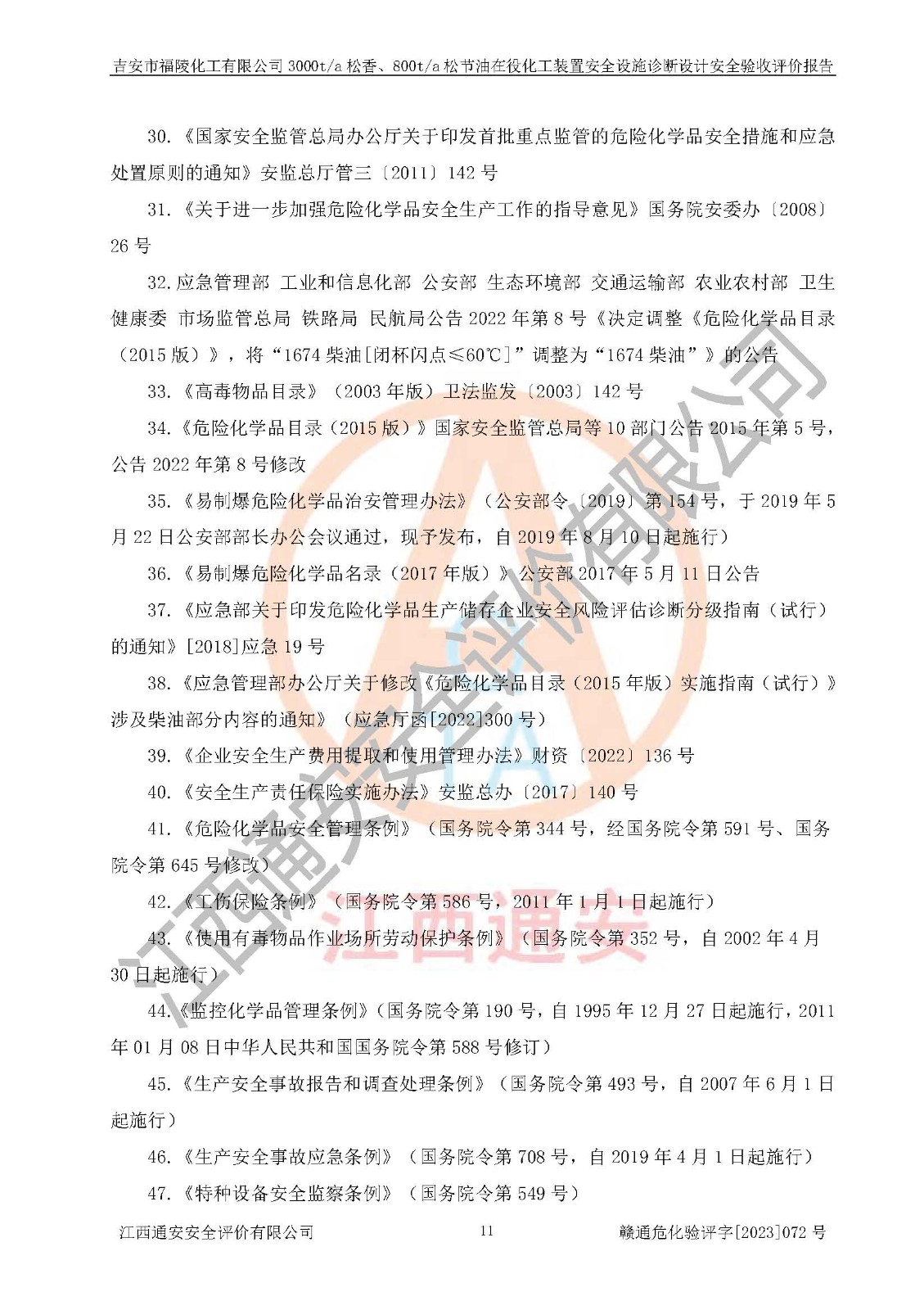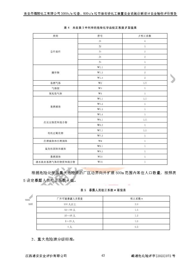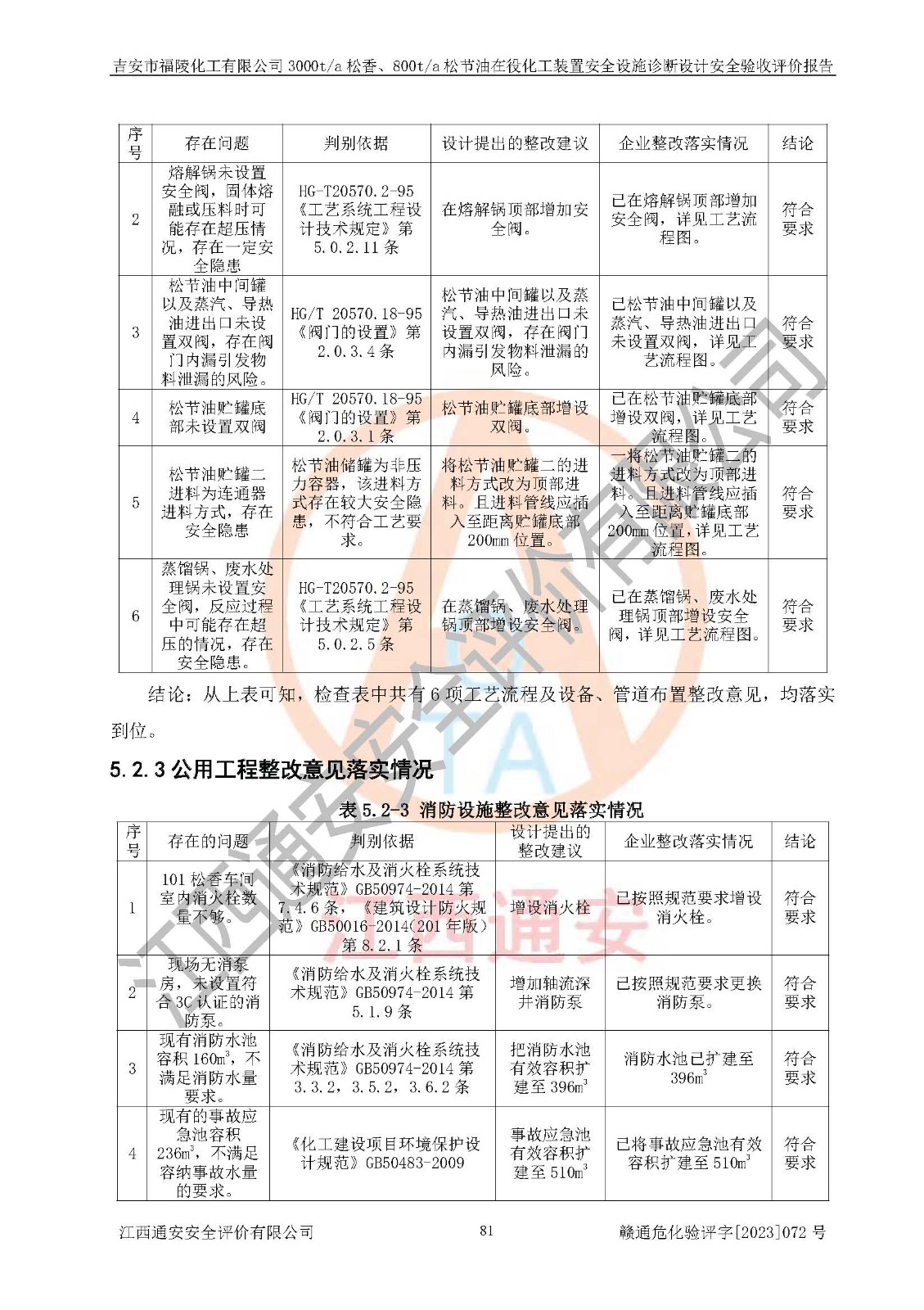 評價報告名稱 | 吉安市福陵化工有限公司3000ta松香、800ta松節(jié)油在役化工裝置安全設(shè)施診斷設(shè)計安全驗收評價報告 | |||