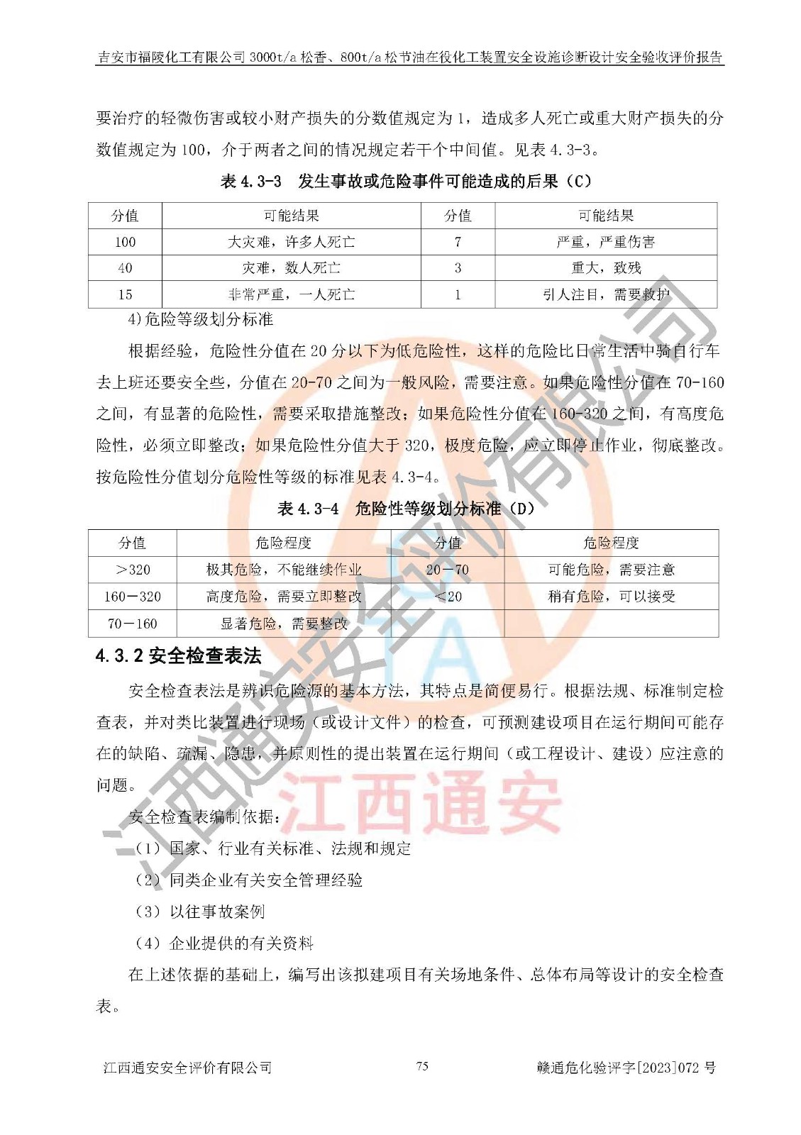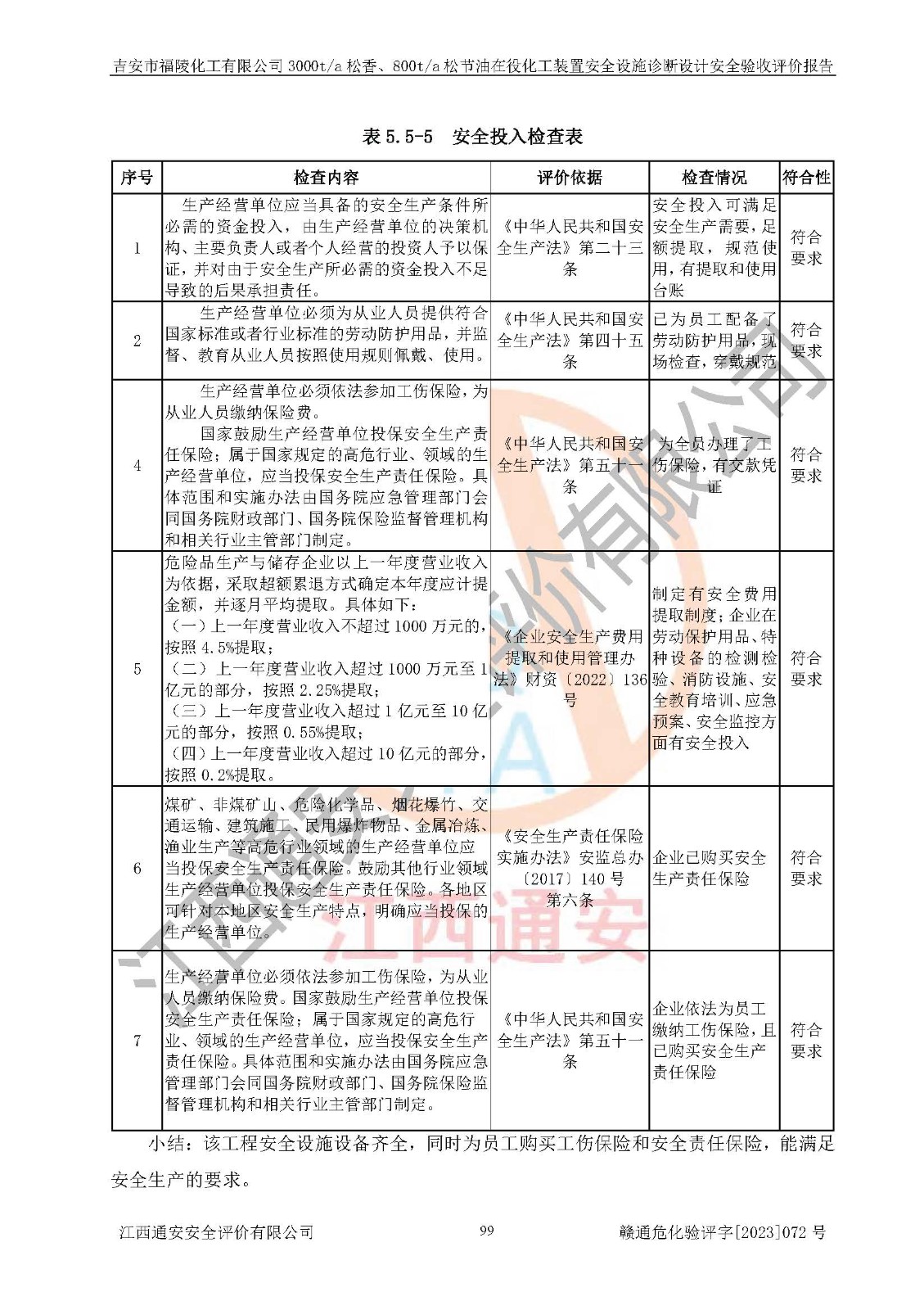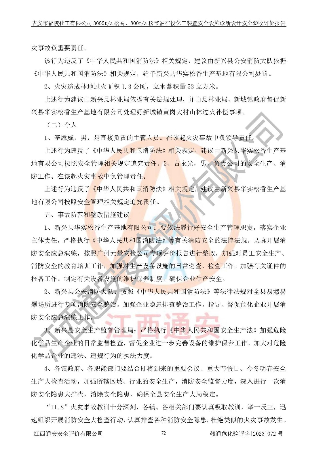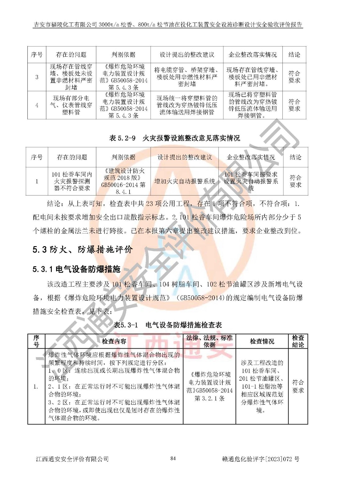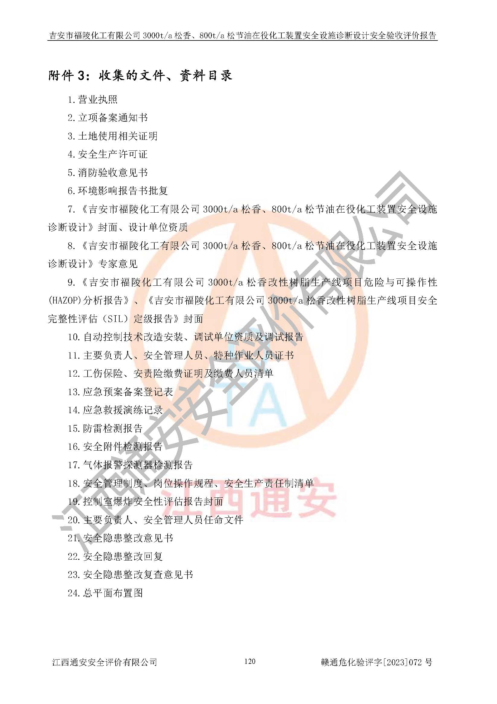 評價報告名稱 | 吉安市福陵化工有限公司3000ta松香、800ta松節(jié)油在役化工裝置安全設(shè)施診斷設(shè)計安全驗收評價報告 | |||