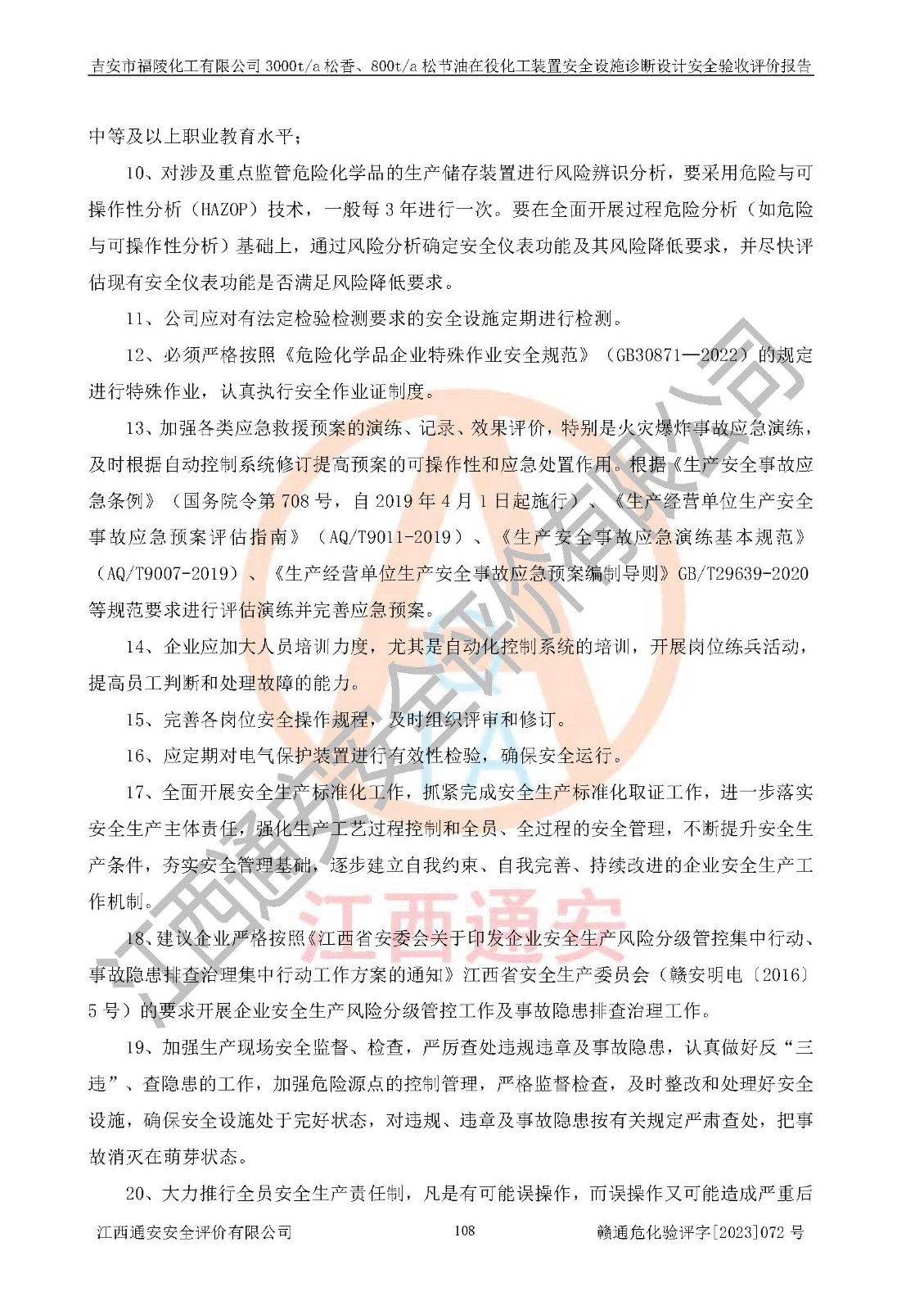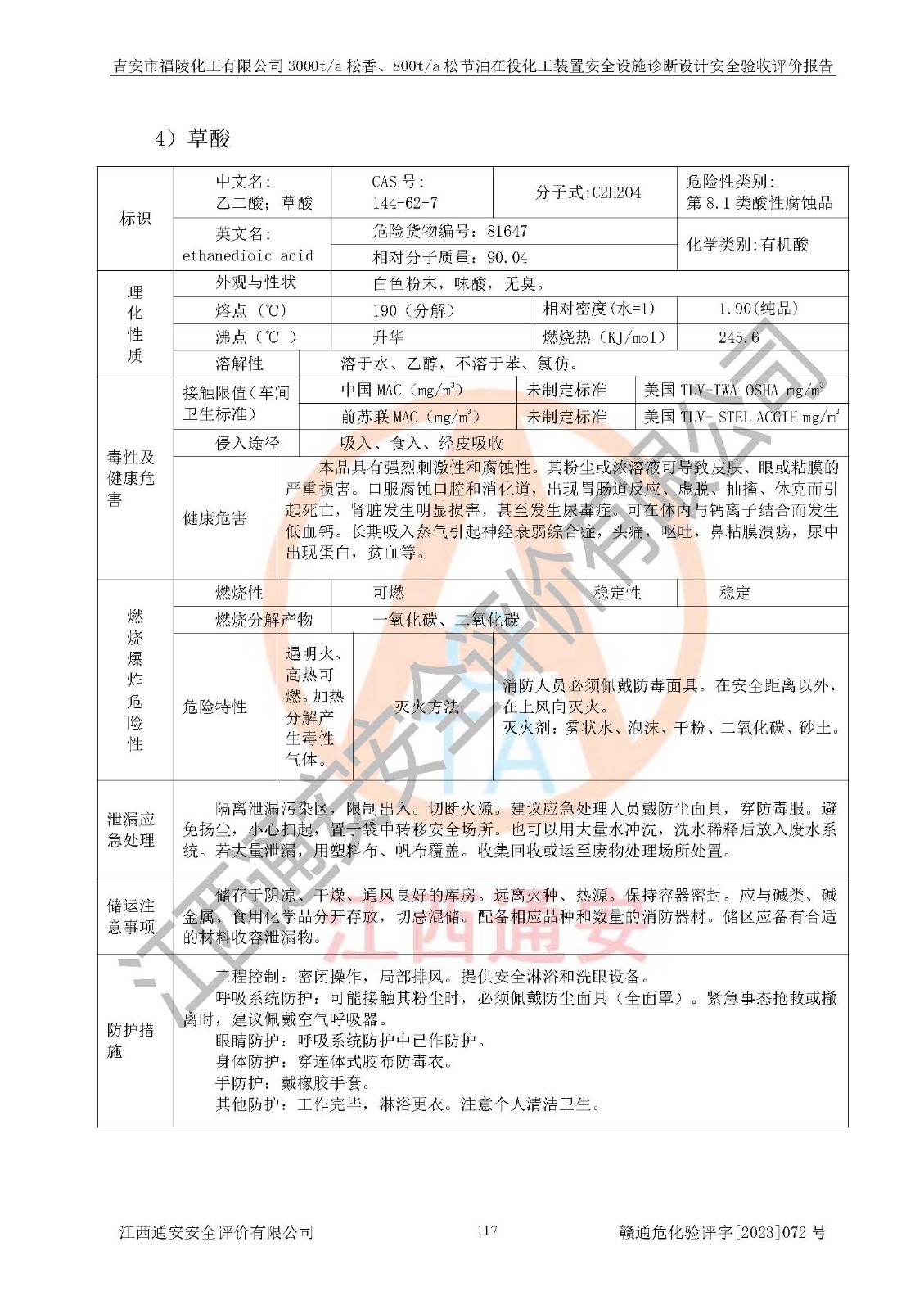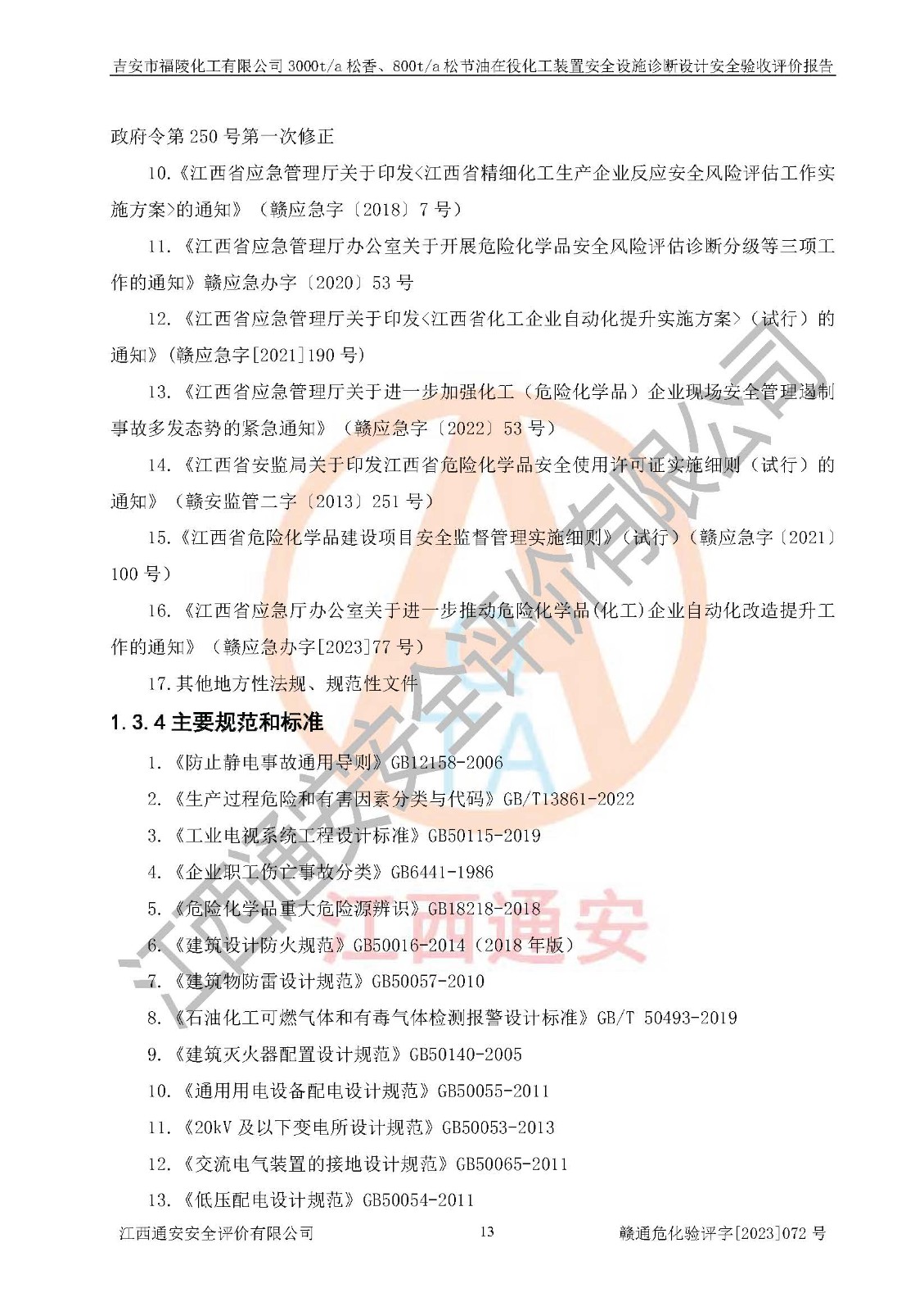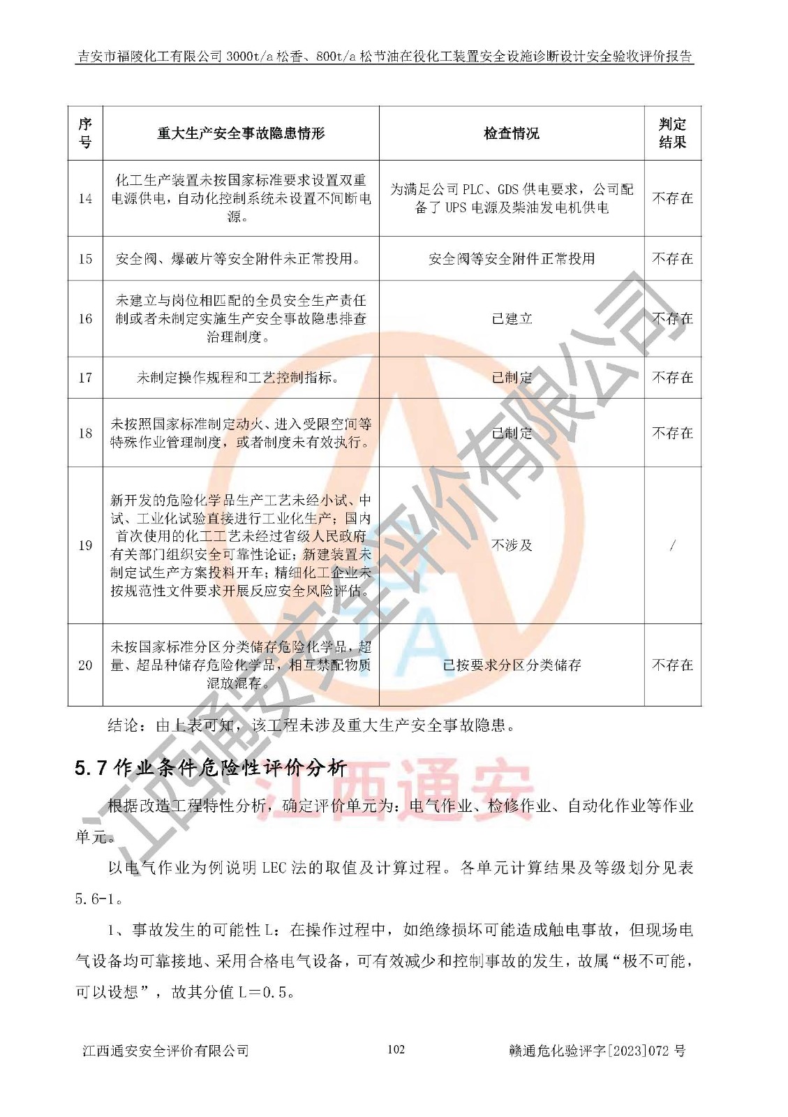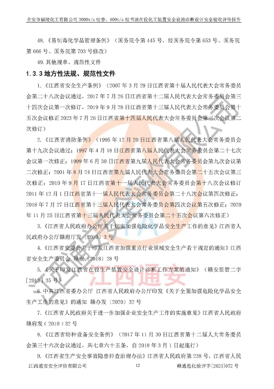評價報告名稱 | 吉安市福陵化工有限公司3000ta松香、800ta松節(jié)油在役化工裝置安全設(shè)施診斷設(shè)計安全驗收評價報告 | |||