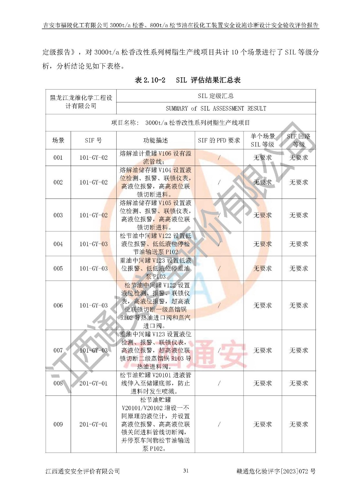 項目簡介 | 吉安市福陵化工有限公司成立于2007年10月19日,注冊地位于江西省吉安市吉州區(qū)興橋鎮(zhèn)秀江村,法定**人為羅桂昌。統(tǒng)一社會信用代碼:913608026674718712,企業(yè)類型:有限責任公司(自然人投資或控股),經(jīng)營范圍包括改性樹脂、改性松香、林化工產(chǎn)品(不含危險品、劇毒品)、建材加工、生產(chǎn)銷售,附產(chǎn)品松香、松節(jié)油。(以上經(jīng)營項目涉及**行政許可的憑**行政許可經(jīng)營)** 。 吉安市福陵化工有限公司于2022年委托黑龍江龍維化學工程設(shè)計有限公司對3000t/a松香、800t/a松節(jié)油在役化工裝置進行安全設(shè)施診斷設(shè)計工作,對所提供的工藝、設(shè)備、物料、操作工況及自控聯(lián)鎖關(guān)系等資料為基礎(chǔ),編制了《吉安市福陵化工有限公司3000t/a松香、800t/a松節(jié)油在役化工裝置安全設(shè)施診斷設(shè)計》,并于2022年11月4日經(jīng)組織有關(guān)單位和專家進行了審查合格通過。 2023年11月,吉安市福陵化工有限公司在診斷報告的基礎(chǔ)上,委托黑龍江龍維化學工程設(shè)計有限公司編制了《吉安市福陵化工有限公司3000t/a松香改性樹脂生產(chǎn)線項目危險與可操作性(HAZOP)分析報告》和《吉安市福陵化工有限公司3000t/a松香改性樹脂生產(chǎn)線項目安全完整性評估(SIL)定級報告》等資料委托進行自動化控制改造設(shè)計。 | |||