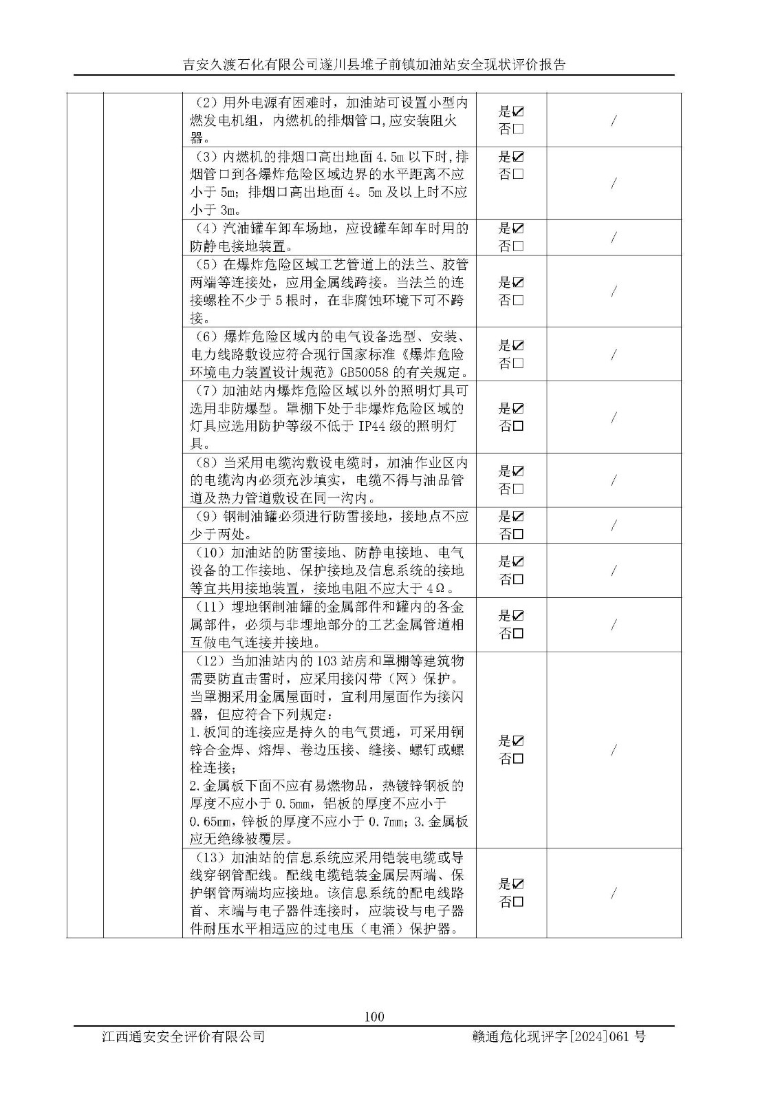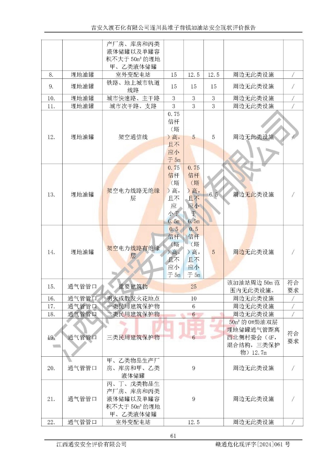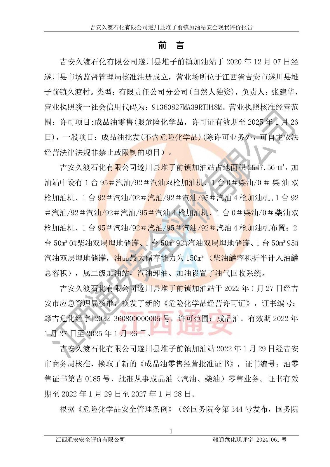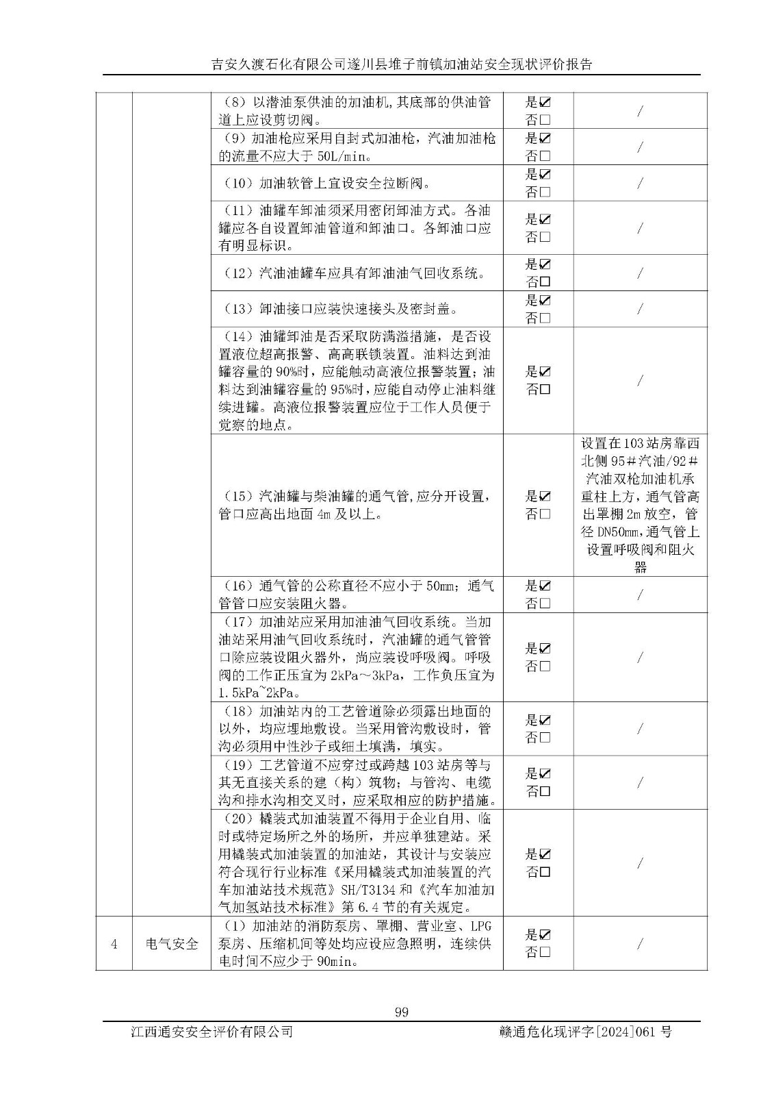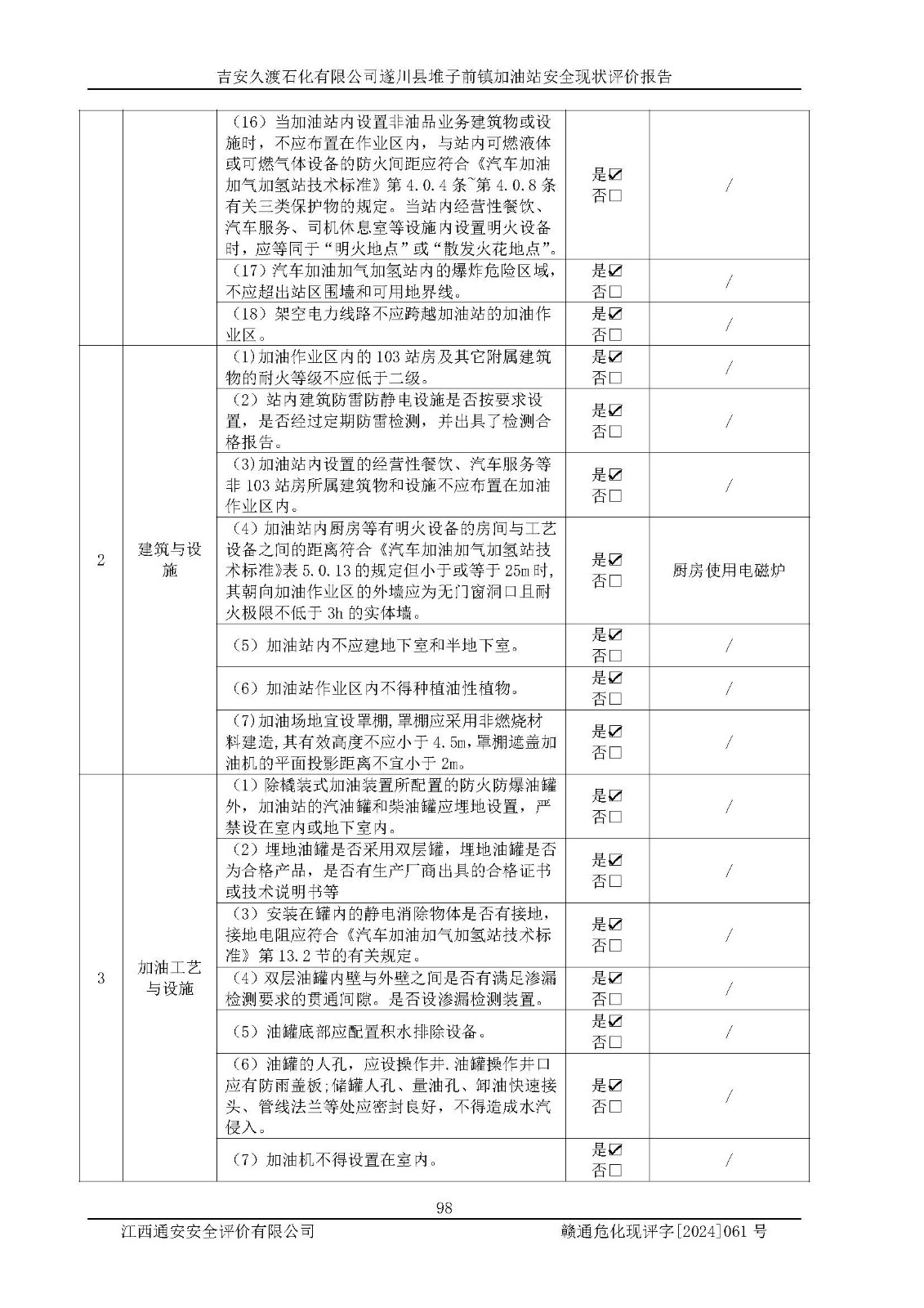 項(xiàng)目名稱 | 吉安久渡石化有限公司遂川縣堆子前鎮(zhèn)加油站安全現(xiàn)狀評(píng)價(jià)報(bào)告 | ||||