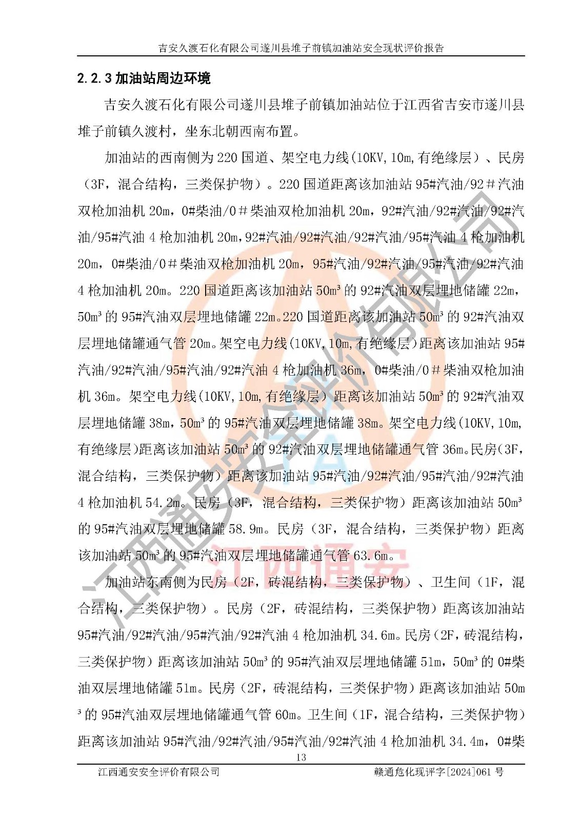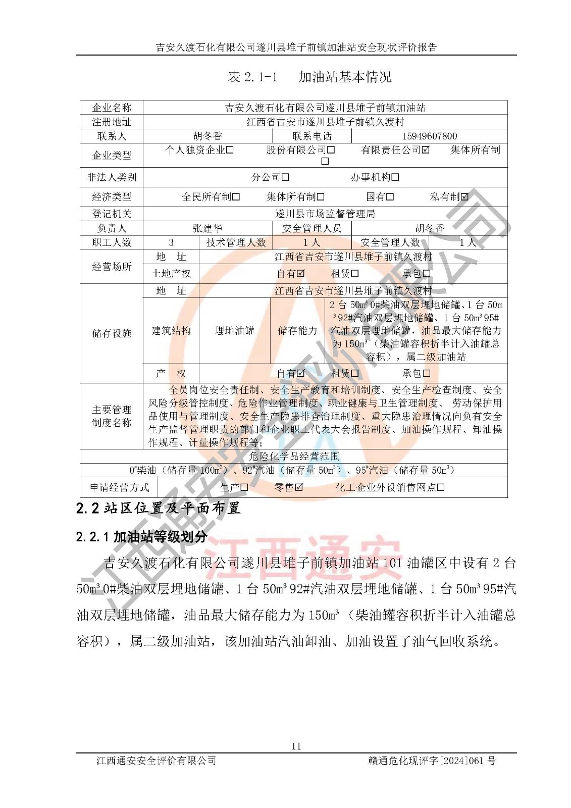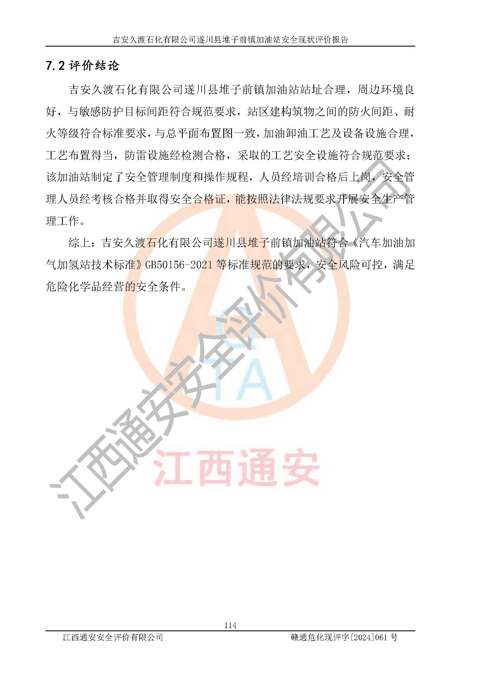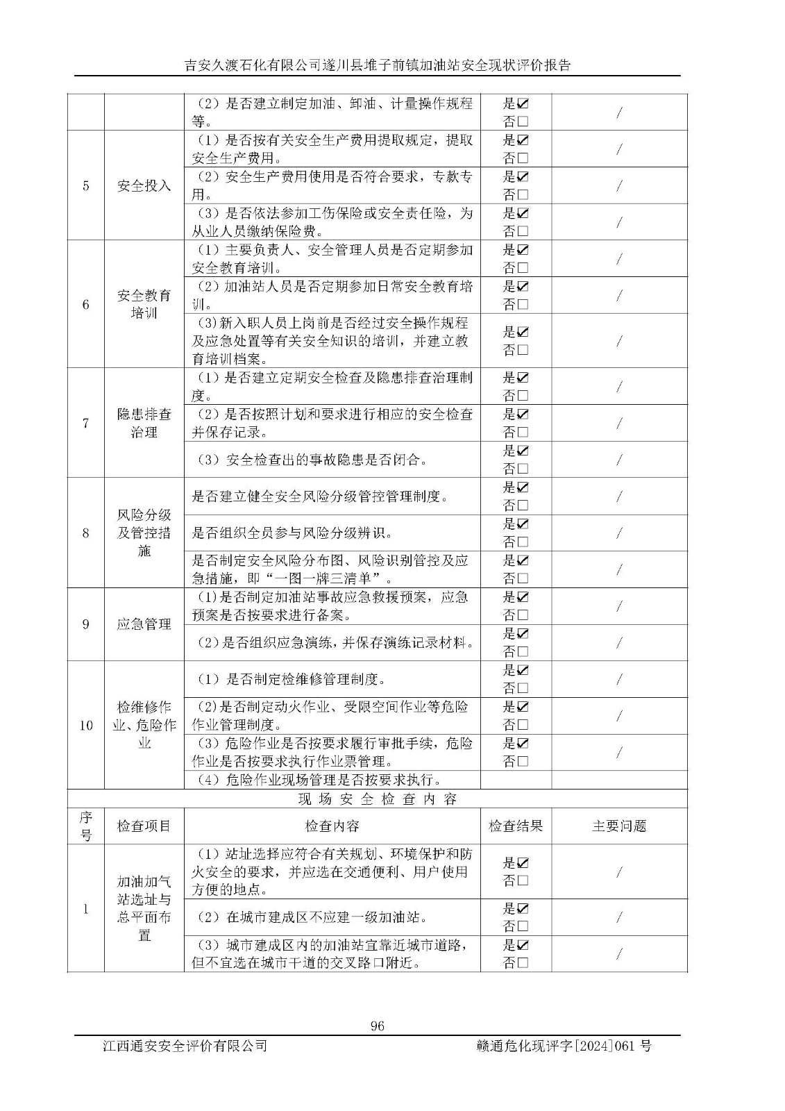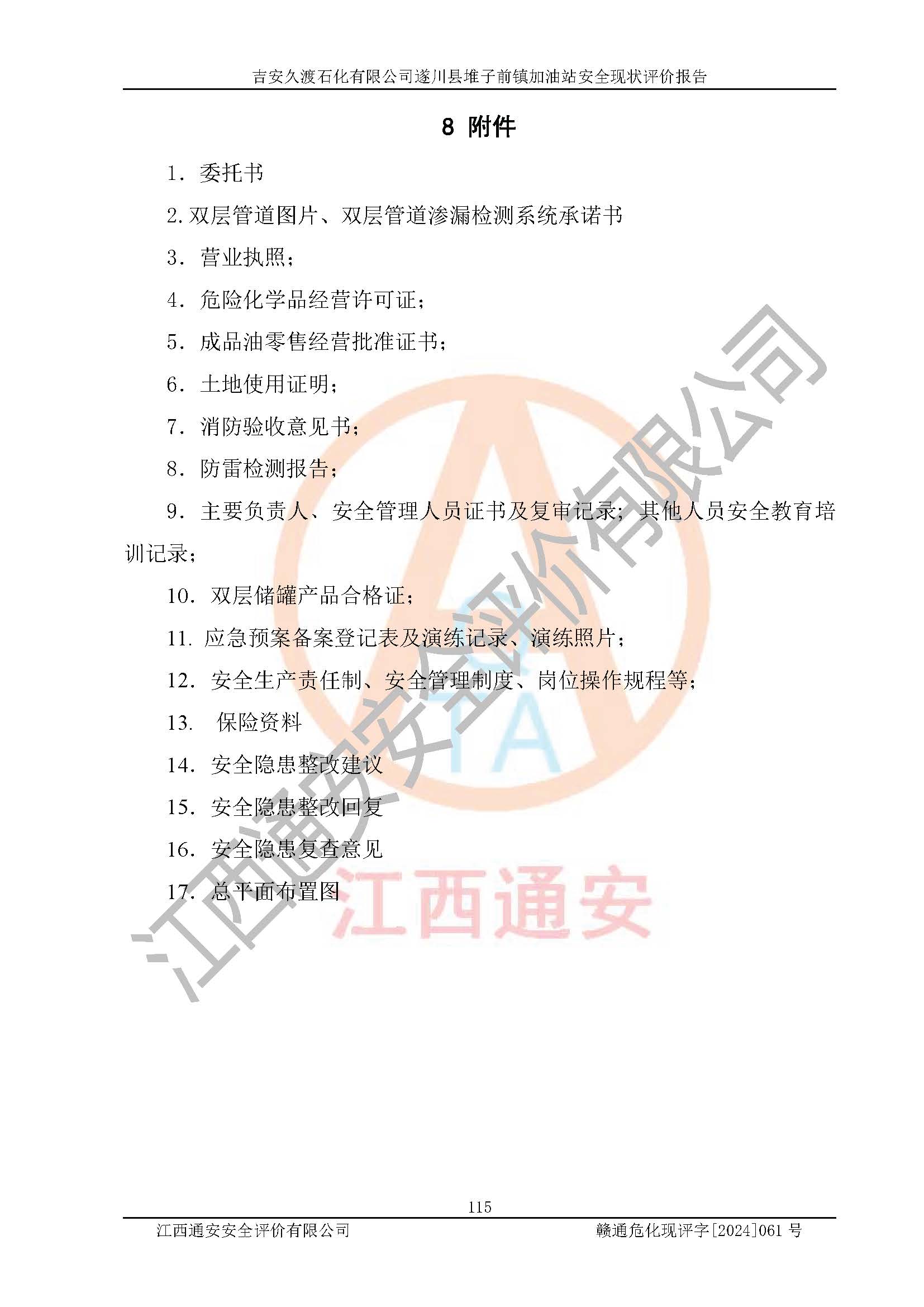 項(xiàng)目名稱 | 吉安久渡石化有限公司遂川縣堆子前鎮(zhèn)加油站安全現(xiàn)狀評(píng)價(jià)報(bào)告 | ||||