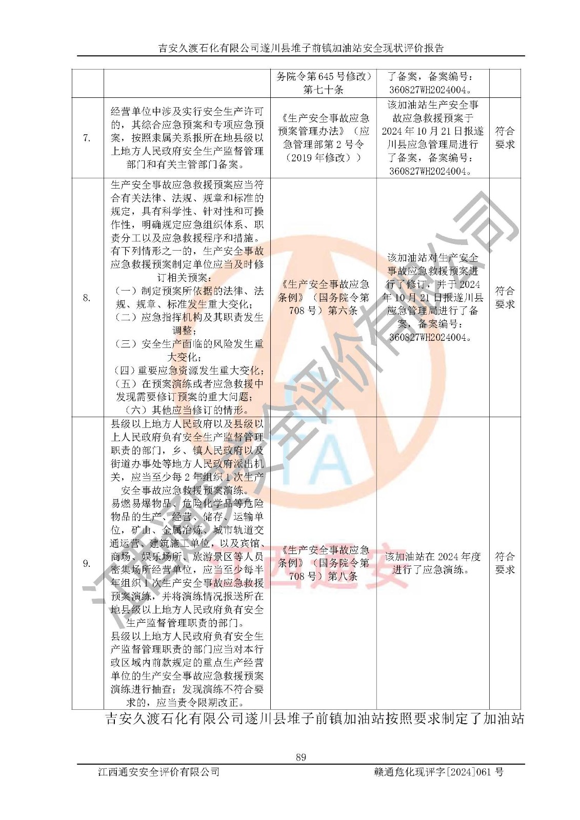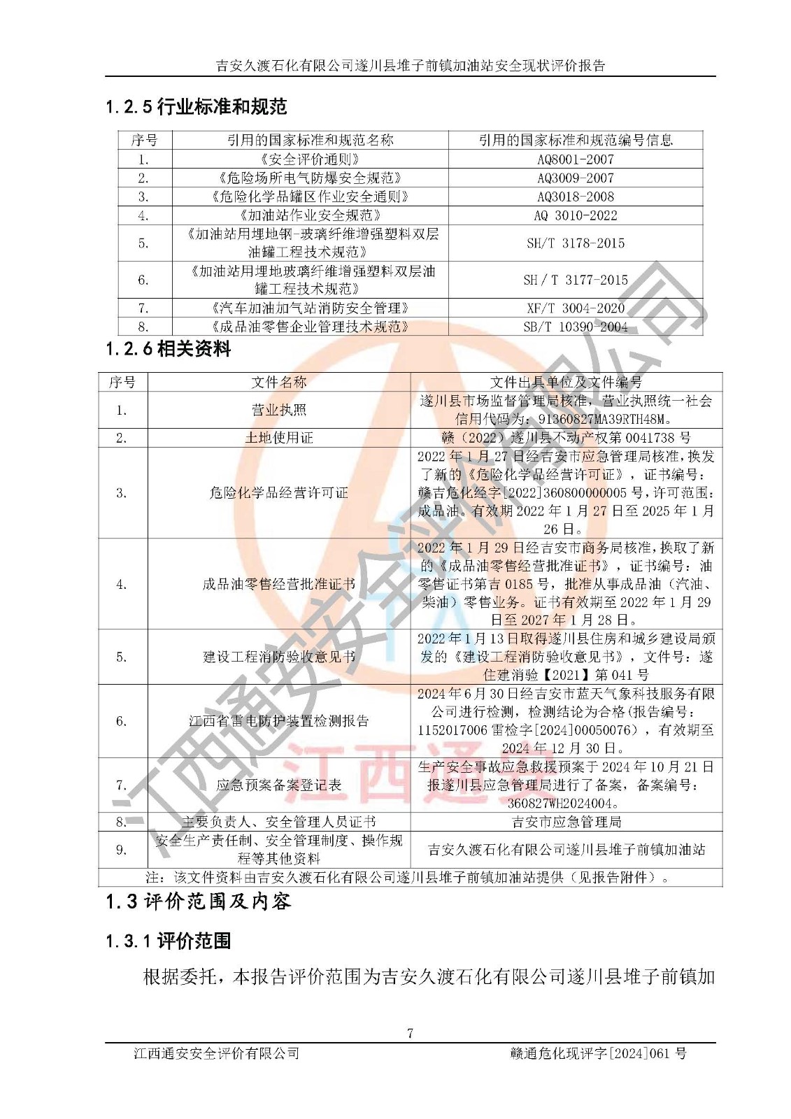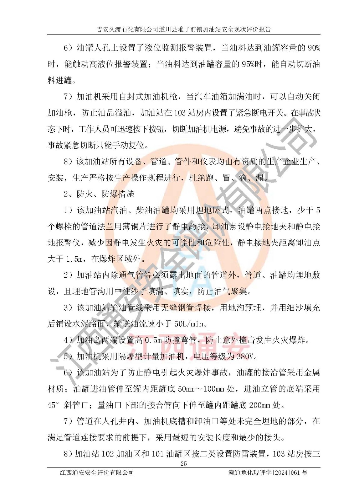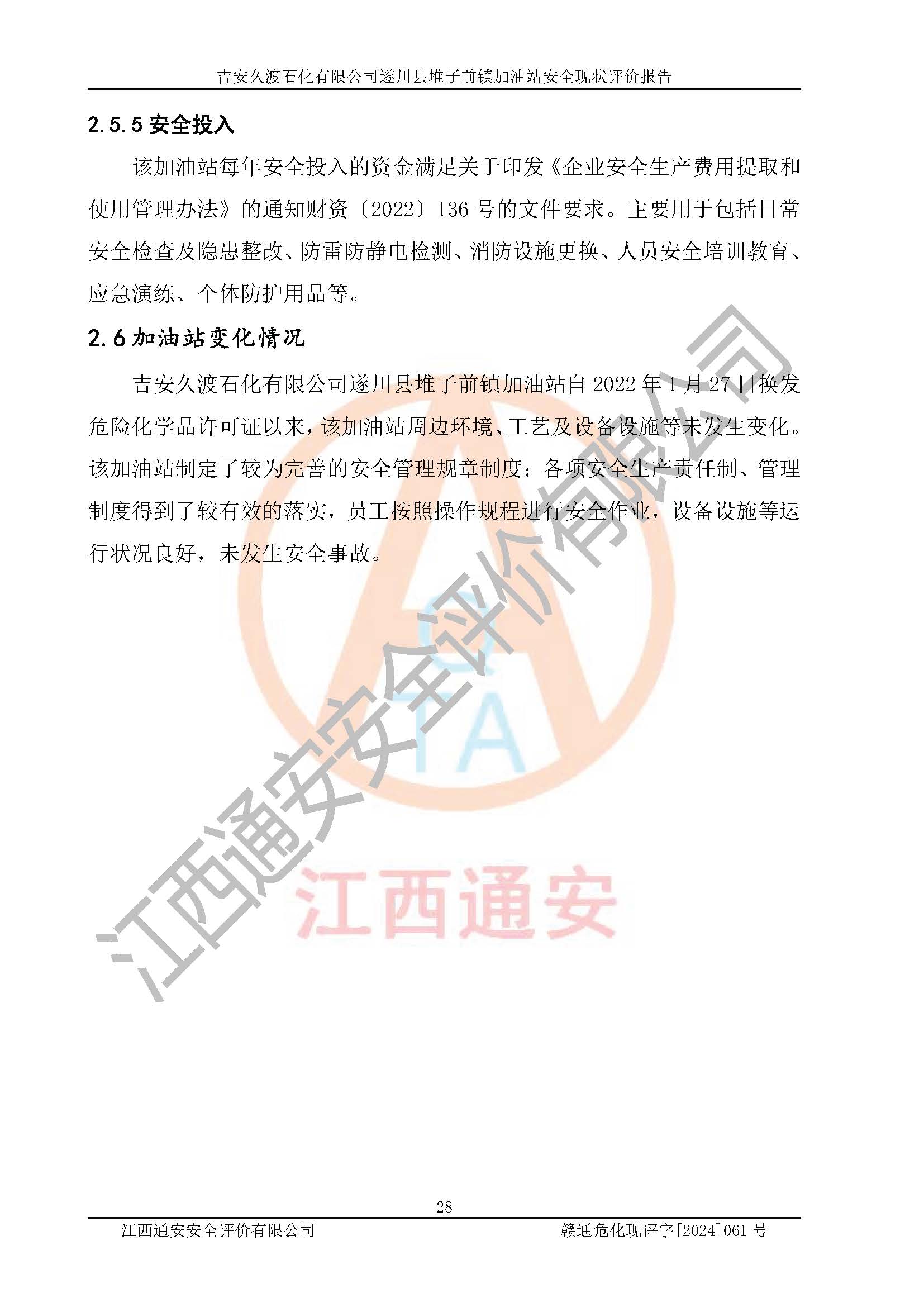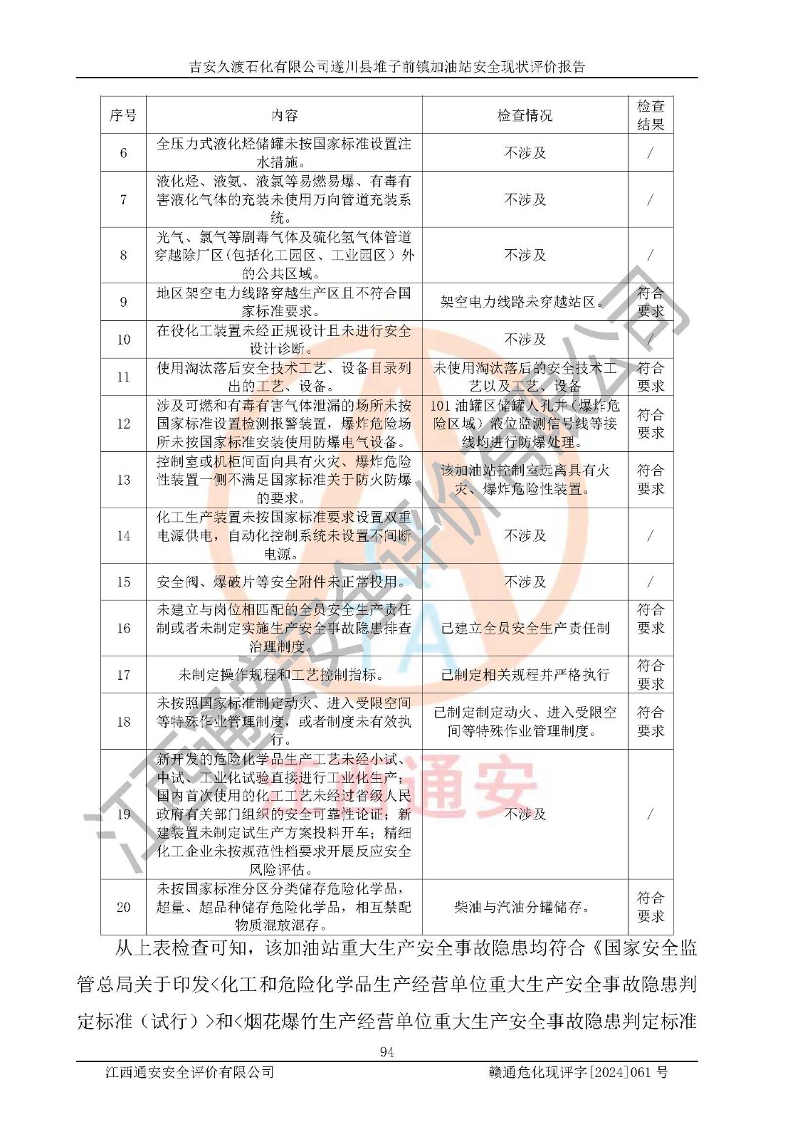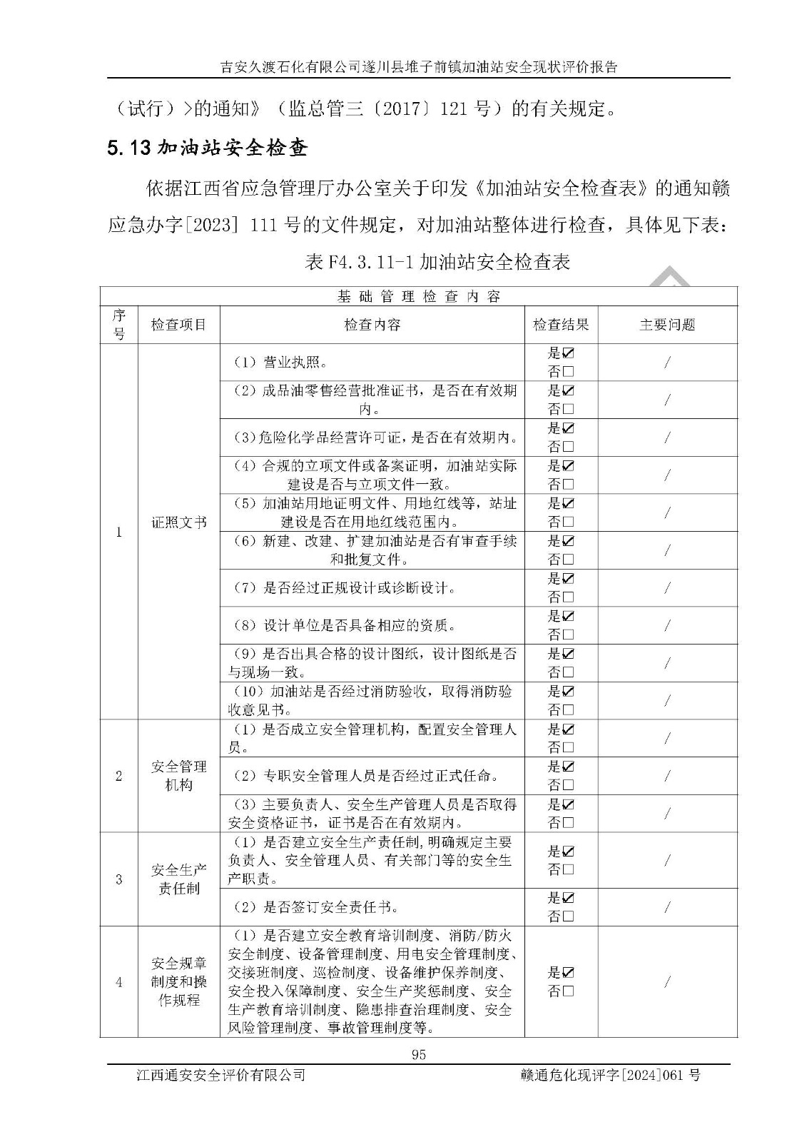 項(xiàng)目名稱 | 吉安久渡石化有限公司遂川縣堆子前鎮(zhèn)加油站安全現(xiàn)狀評(píng)價(jià)報(bào)告 | ||||
