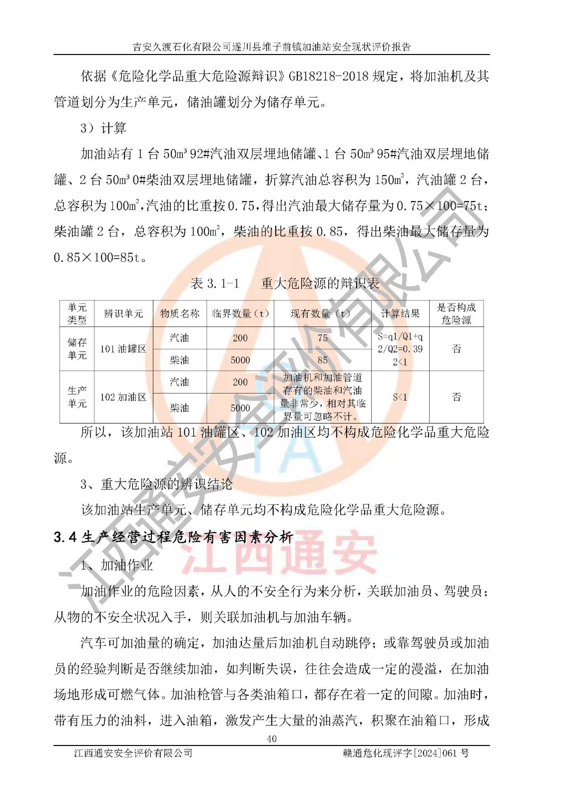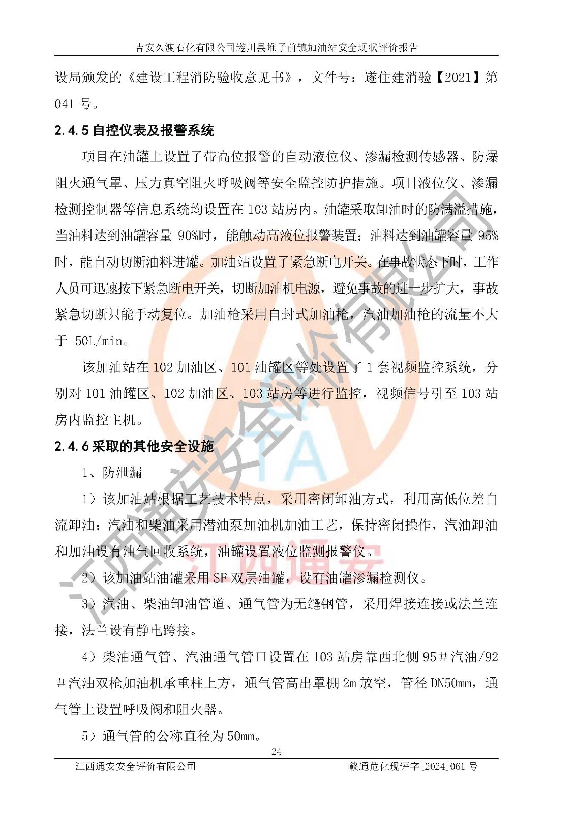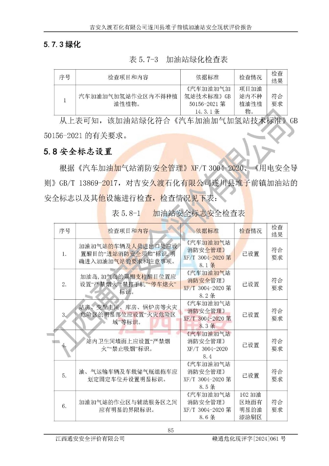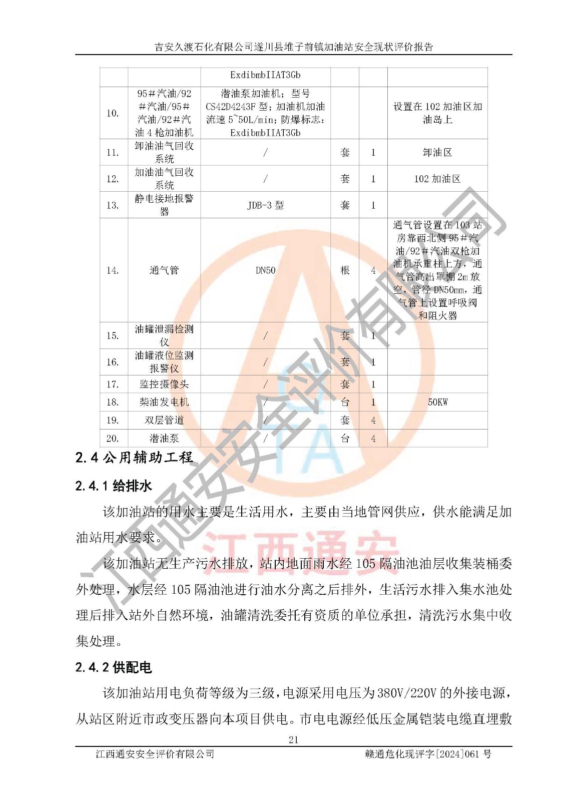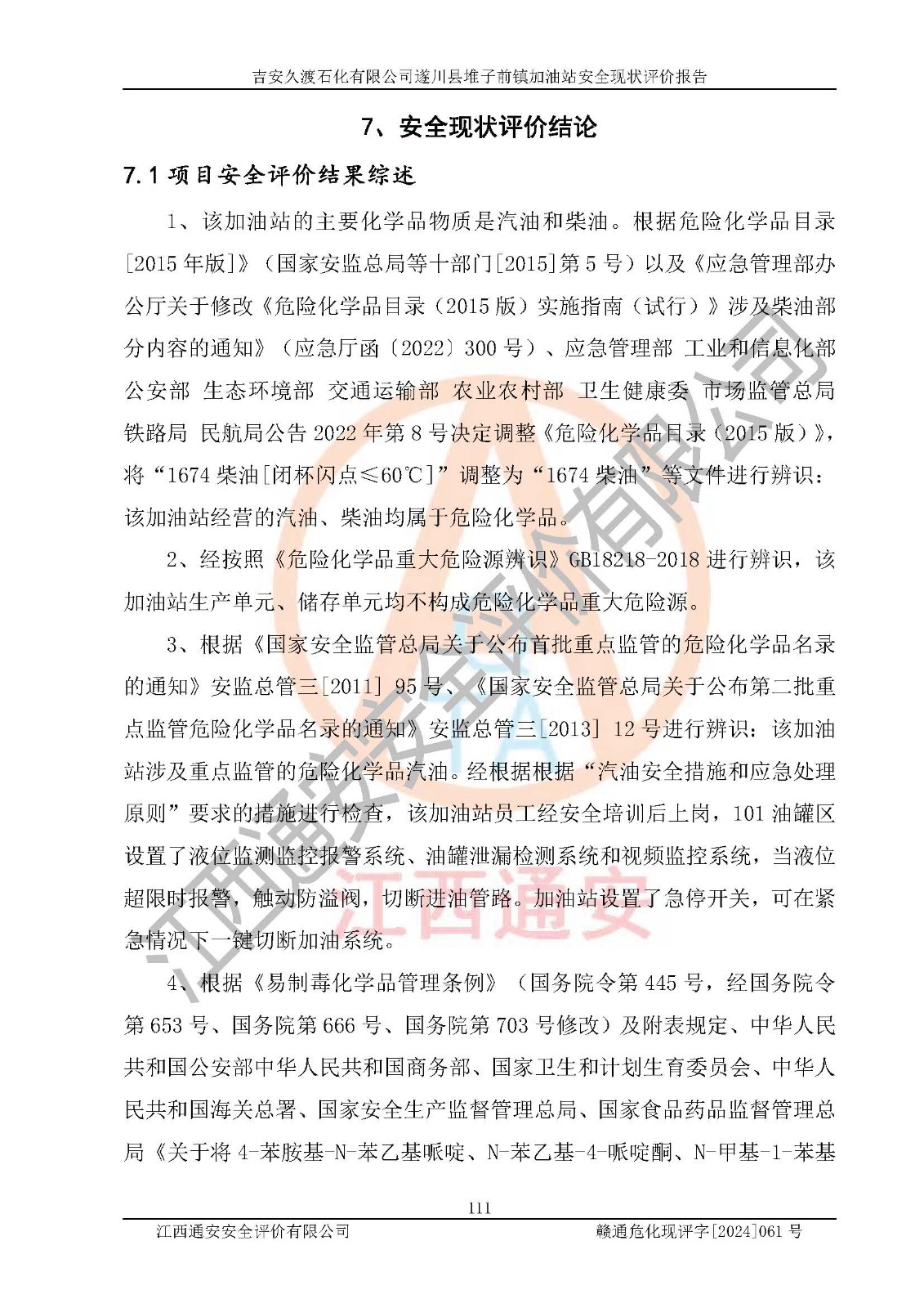 項(xiàng)目名稱 | 吉安久渡石化有限公司遂川縣堆子前鎮(zhèn)加油站安全現(xiàn)狀評(píng)價(jià)報(bào)告 | ||||
