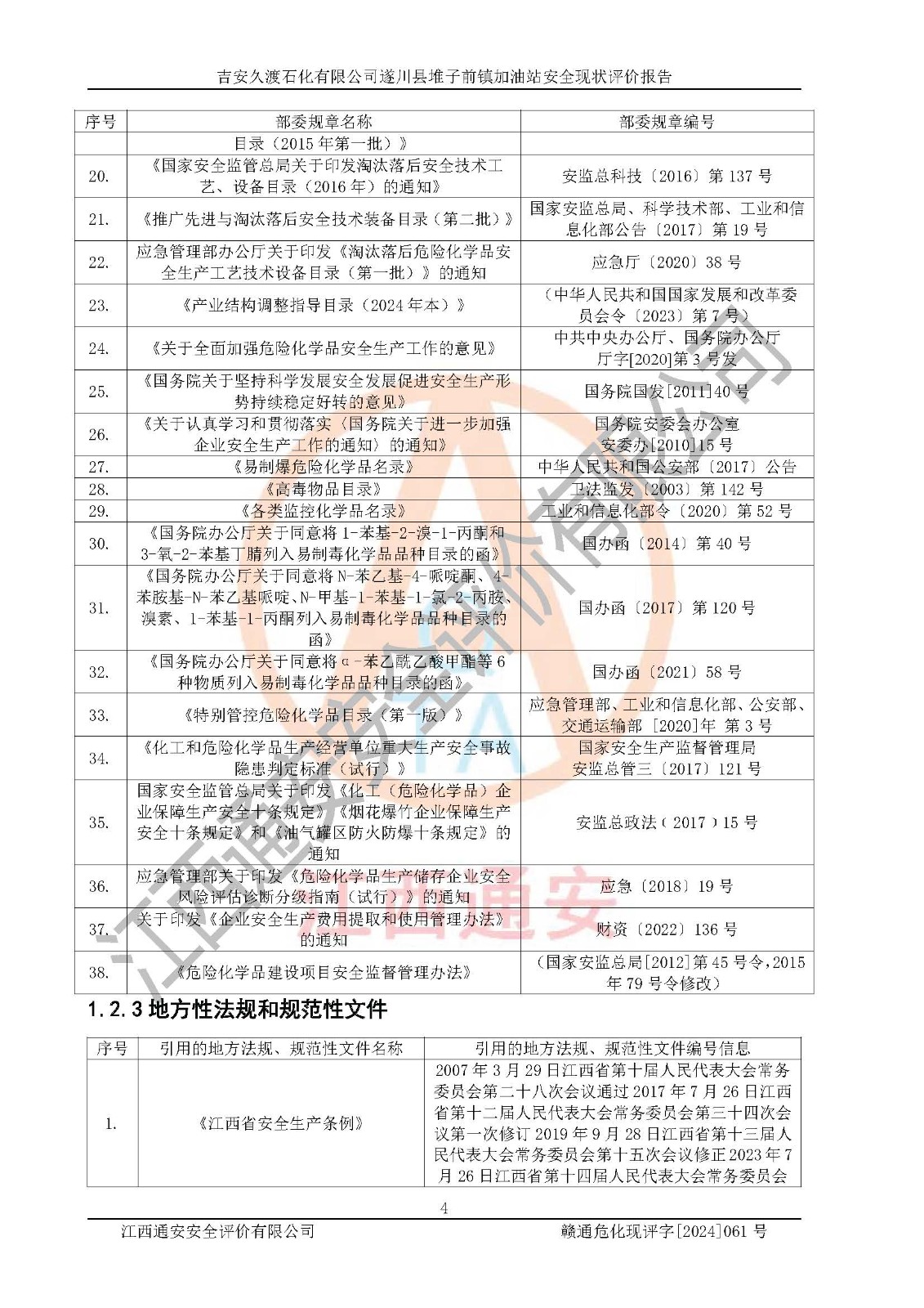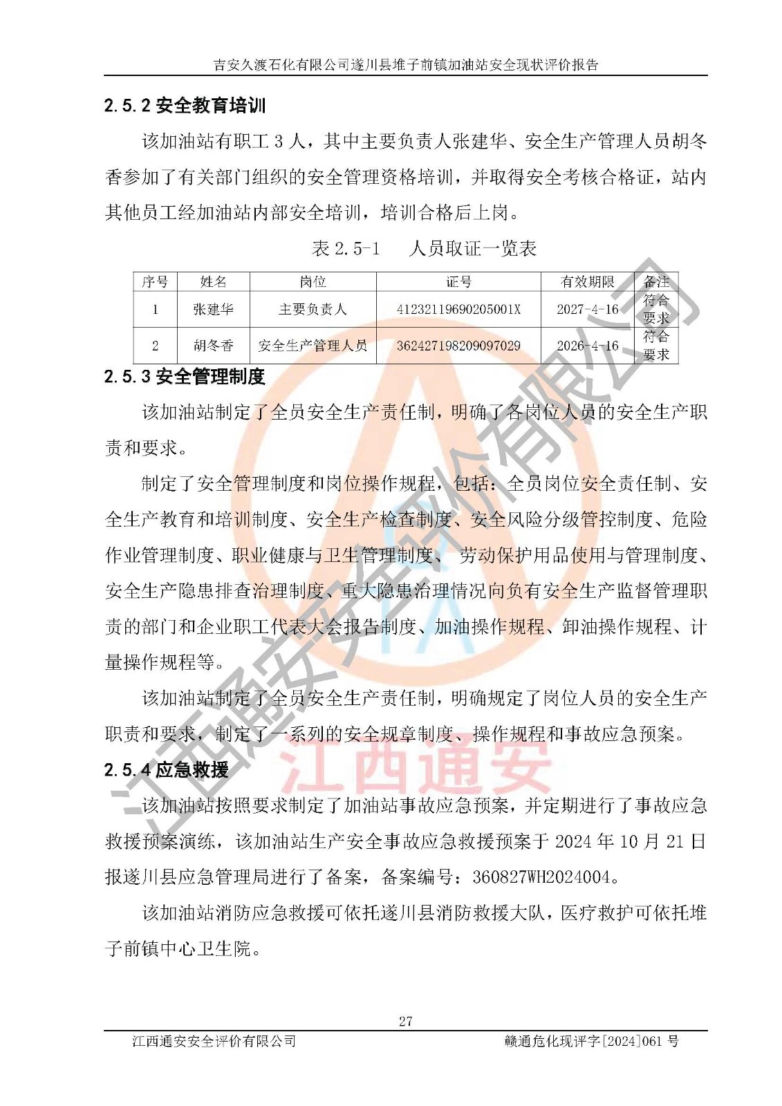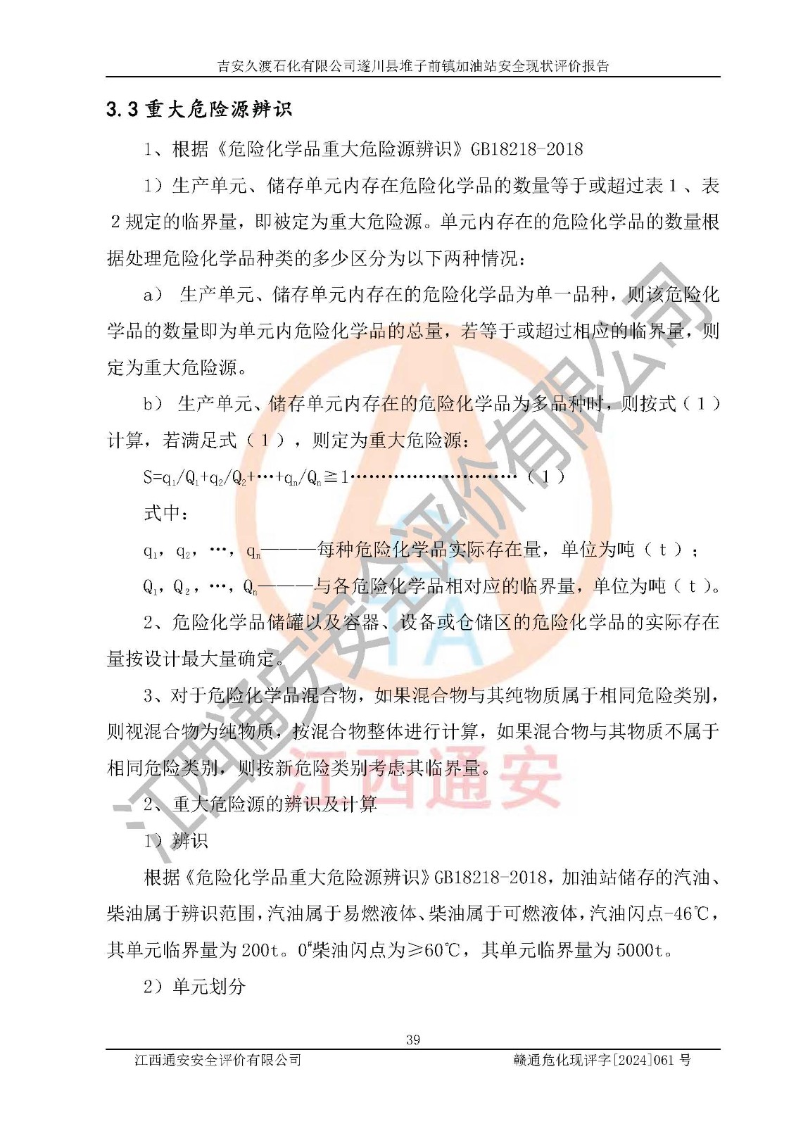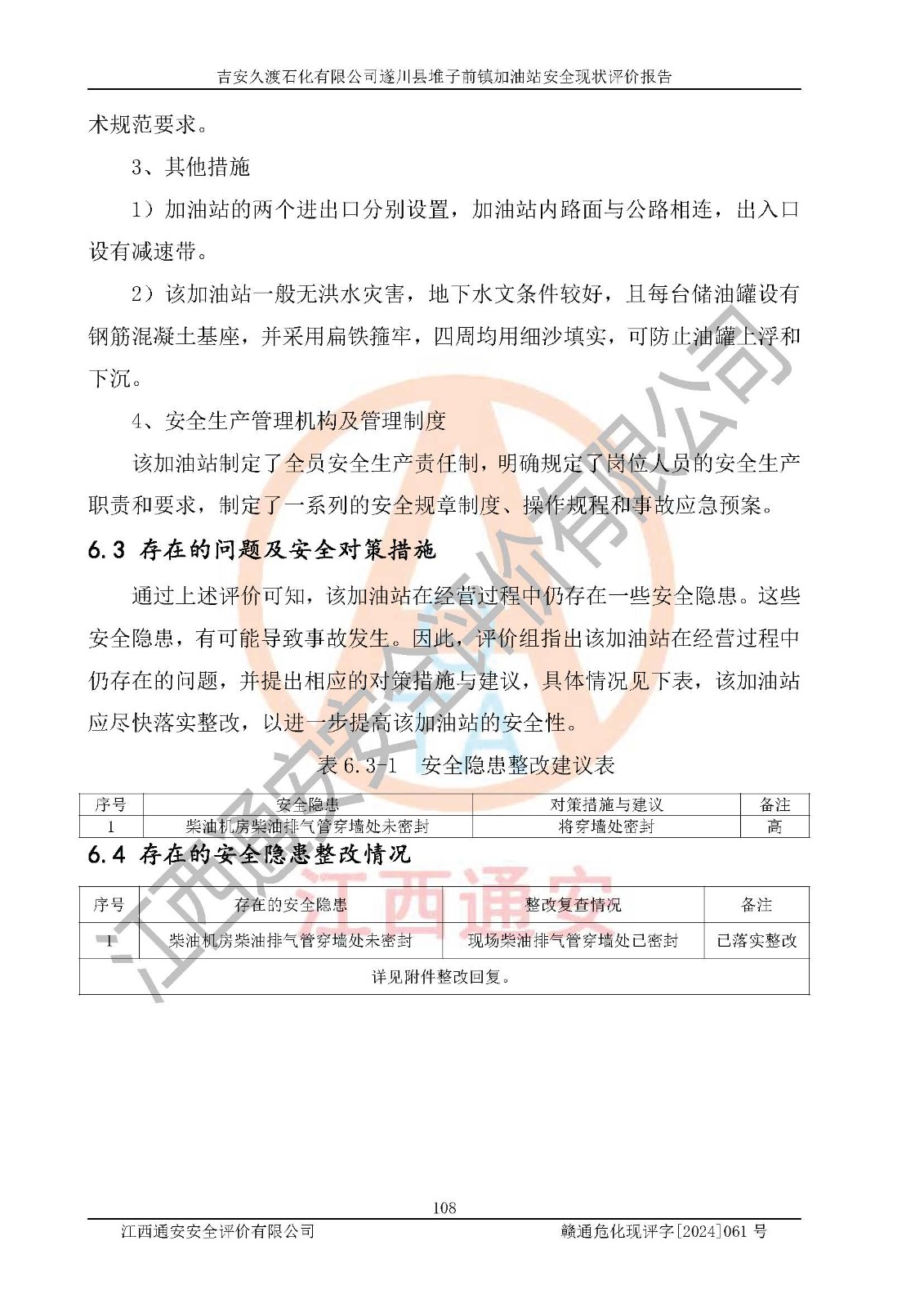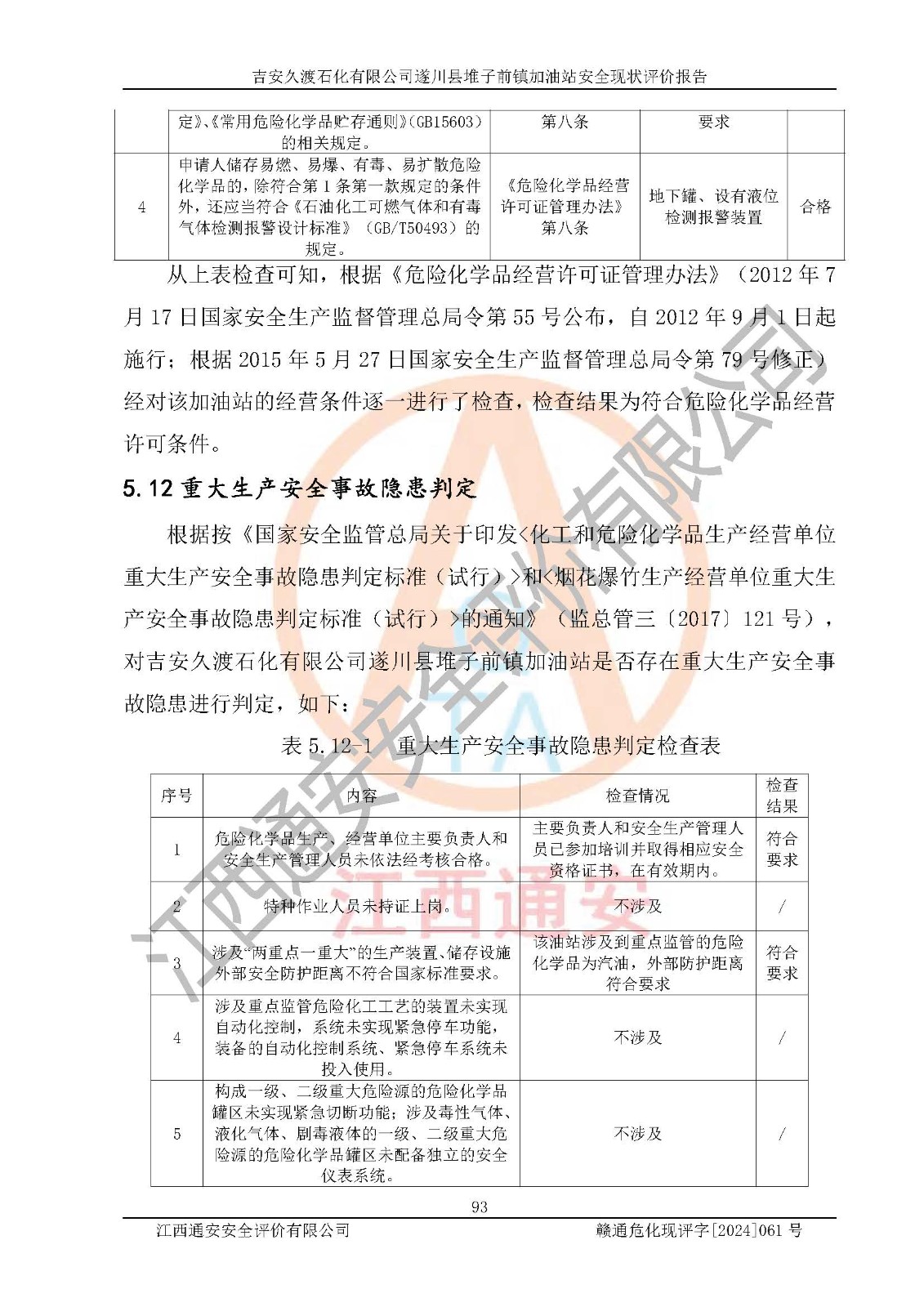 項(xiàng)目名稱 | 吉安久渡石化有限公司遂川縣堆子前鎮(zhèn)加油站安全現(xiàn)狀評(píng)價(jià)報(bào)告 | ||||