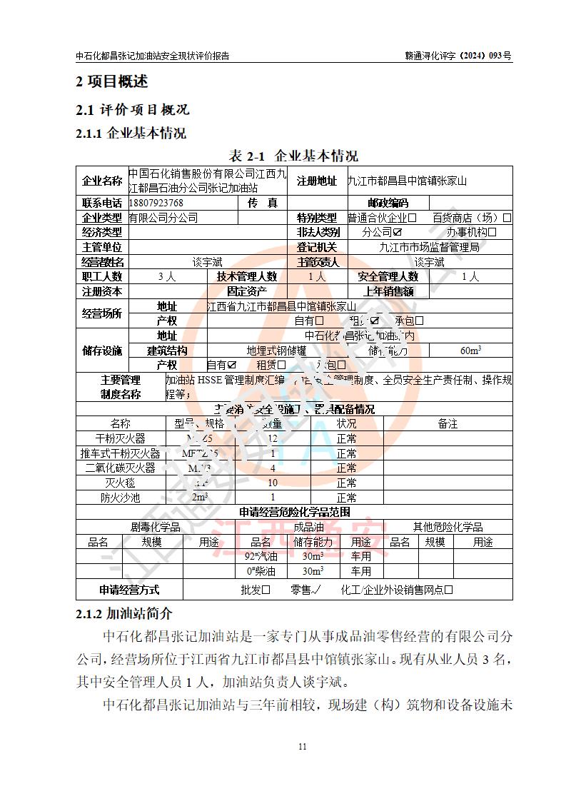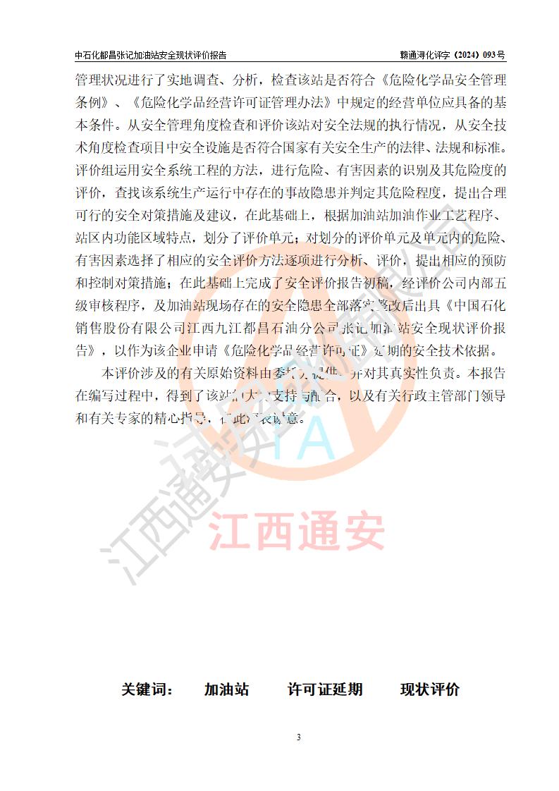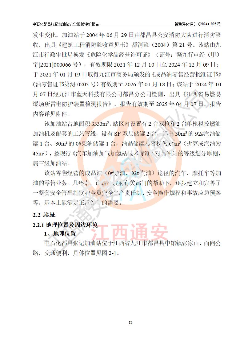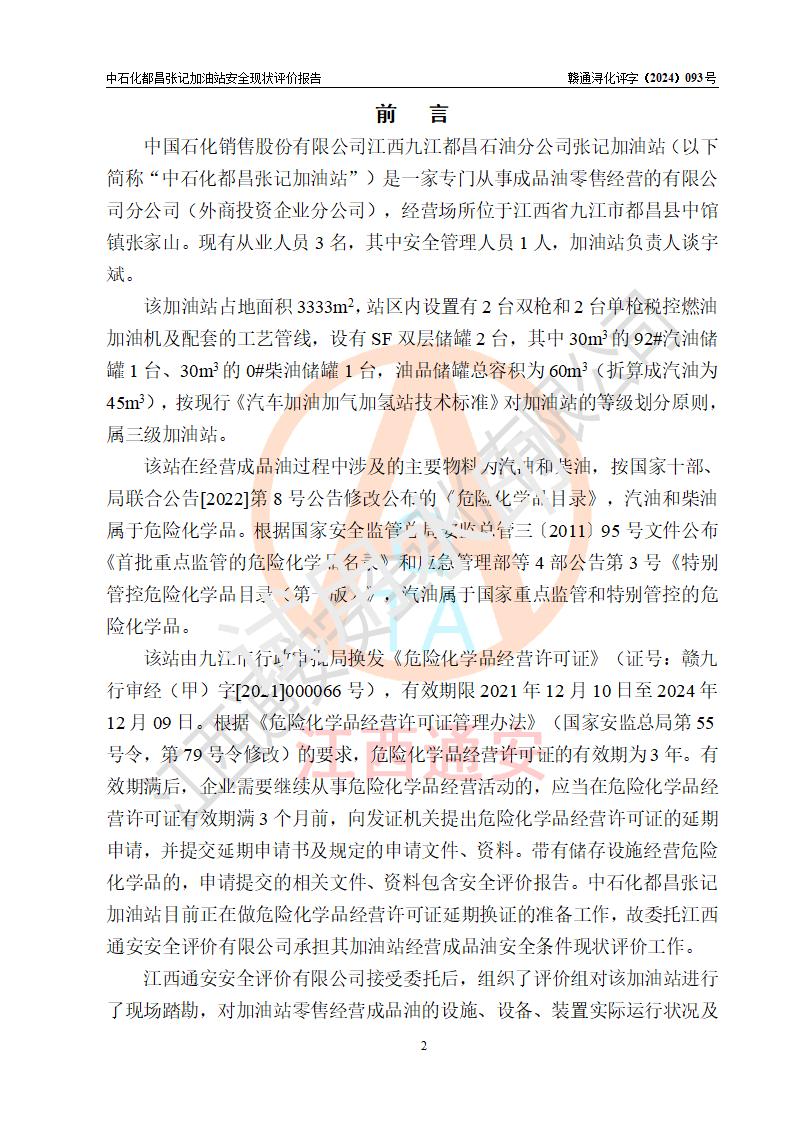 評價報告名稱 | 中國石化銷售股份有限公司江西九江都昌石油分公司張記加油站安全現(xiàn)狀評價報告 | |||