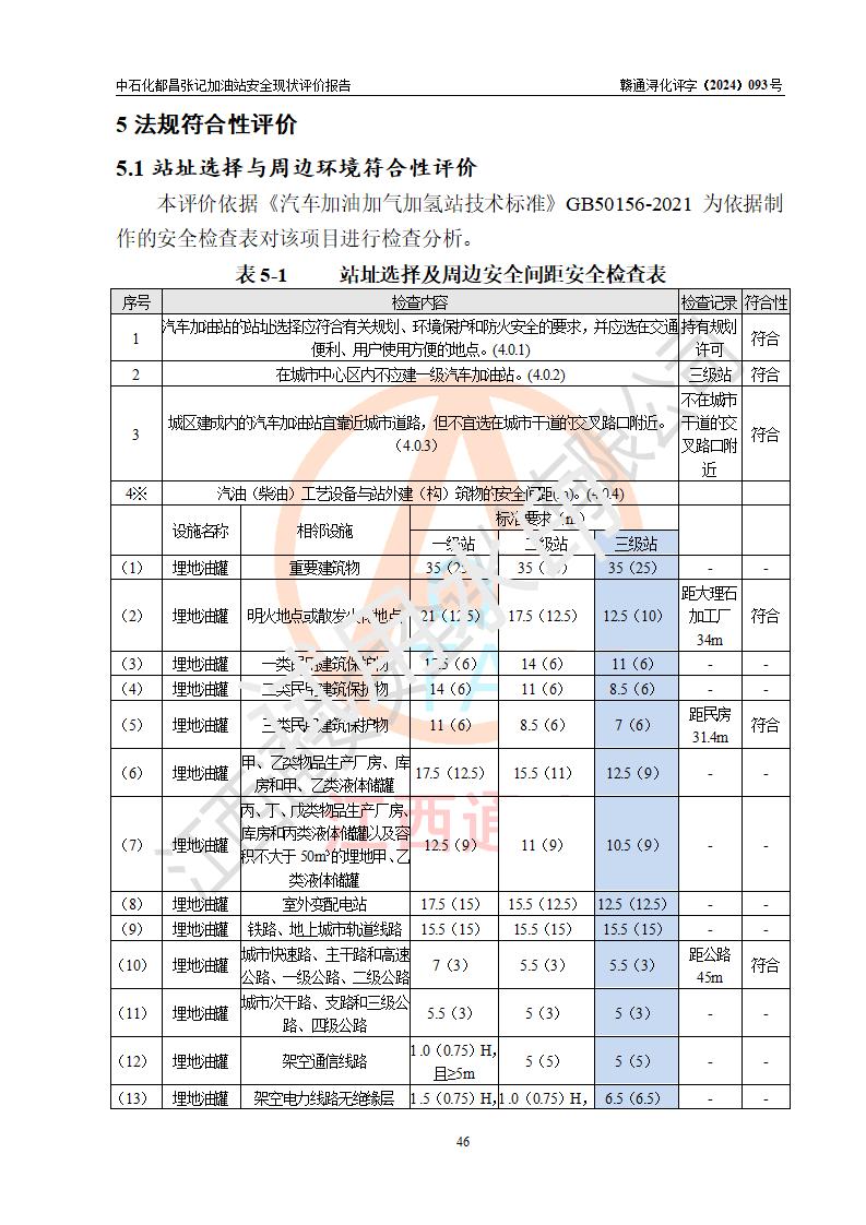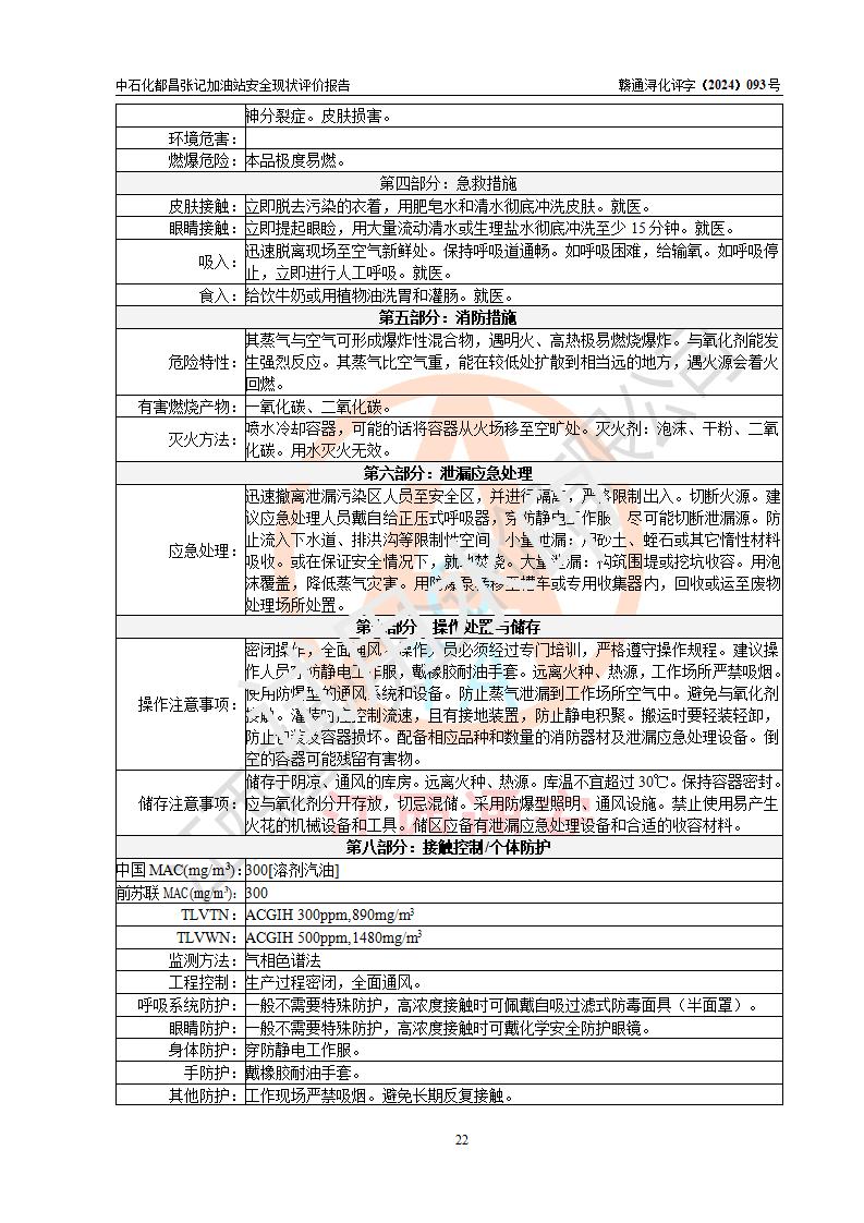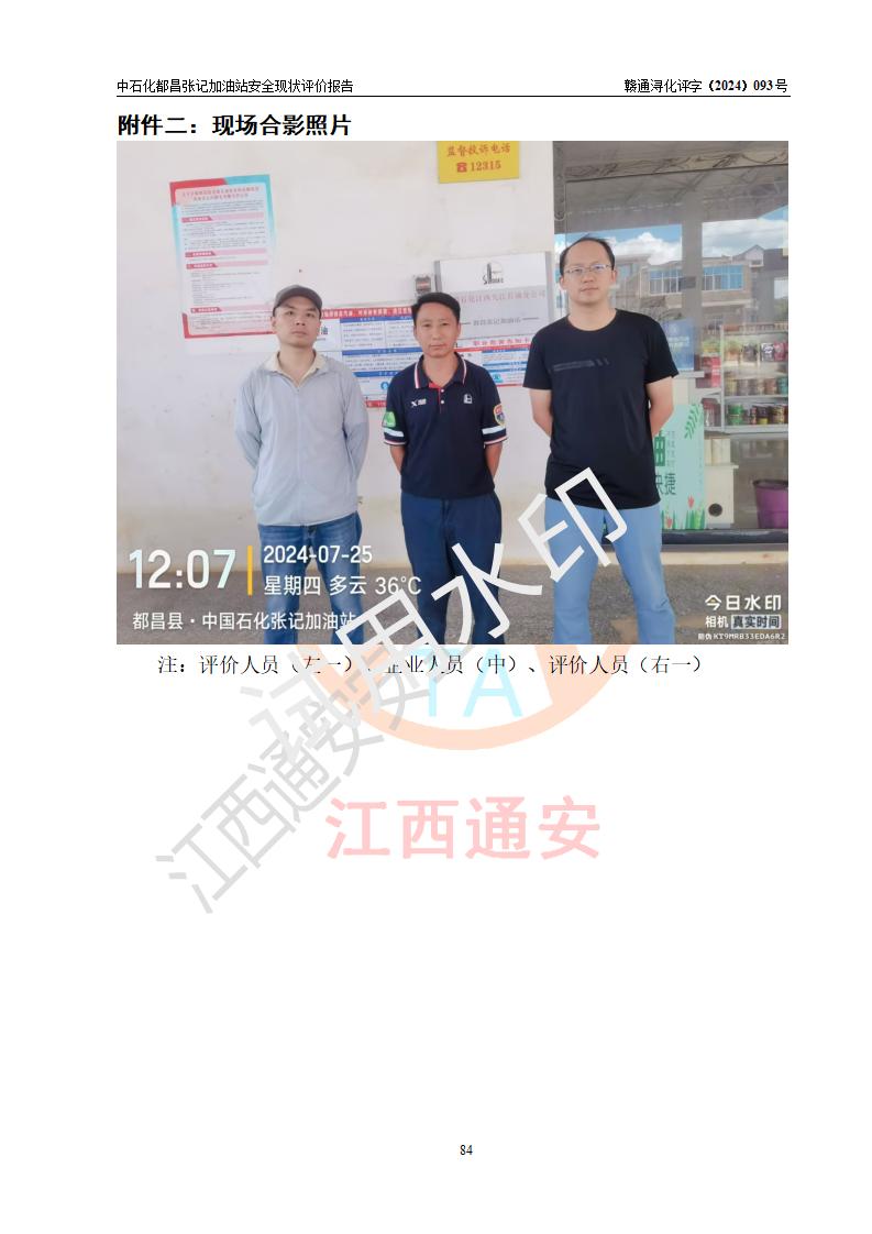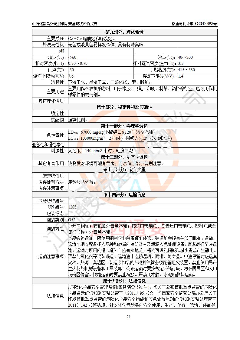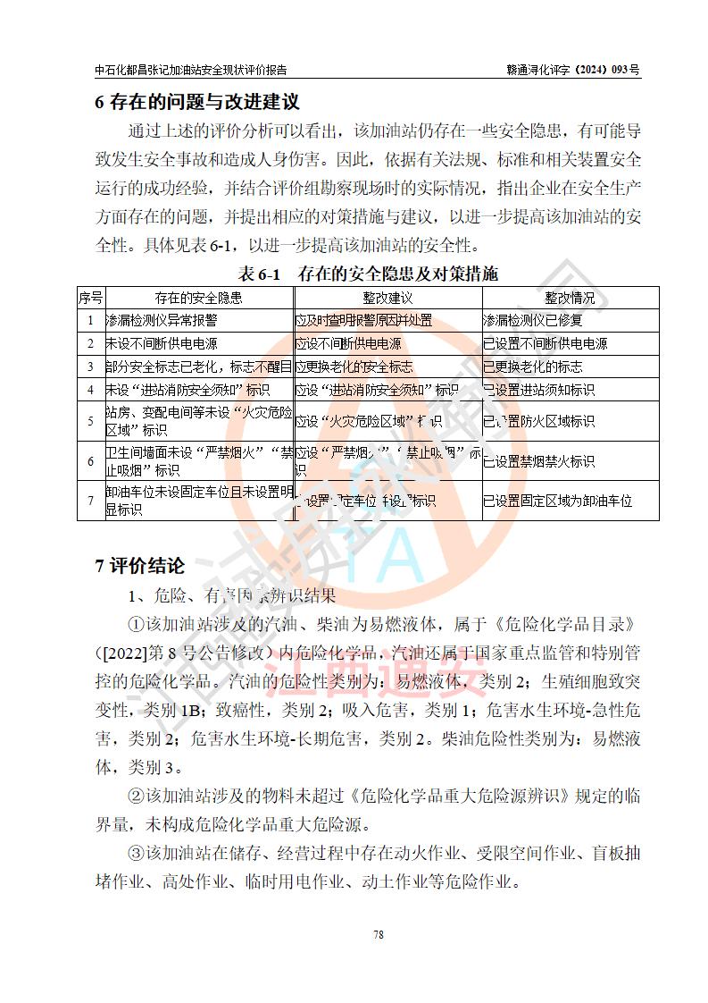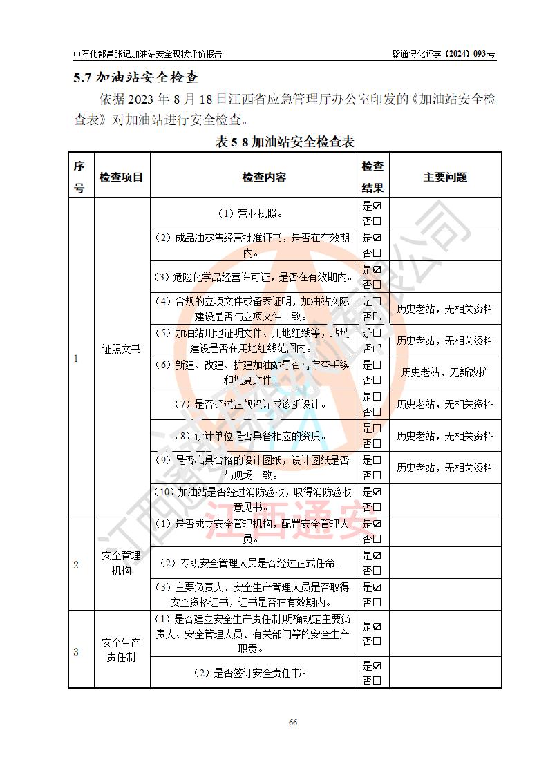 評價結(jié)論 | 中國石化銷售股份有限公司江西九江都昌石油分公司張記加油站涉及的安全條件、安全經(jīng)營條件、安全生產(chǎn)管理符合《危險化學(xué)品經(jīng)營許可證管理辦法》、《汽車加油加氣加氫站技術(shù)標(biāo)準(zhǔn)》等**有關(guān)法規(guī)、標(biāo)準(zhǔn)、規(guī)范要求,能滿足危險化學(xué)品經(jīng)營安全條件。 | |||