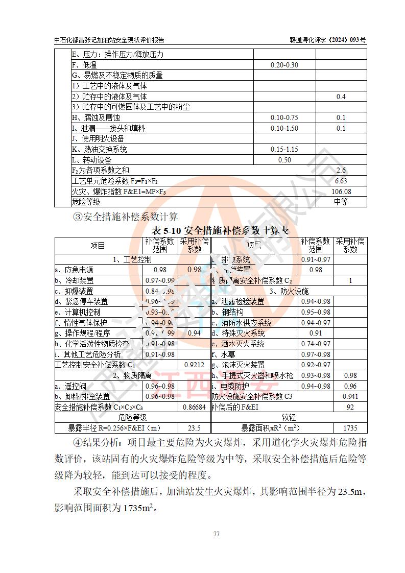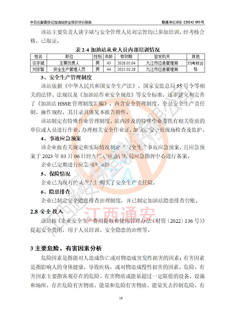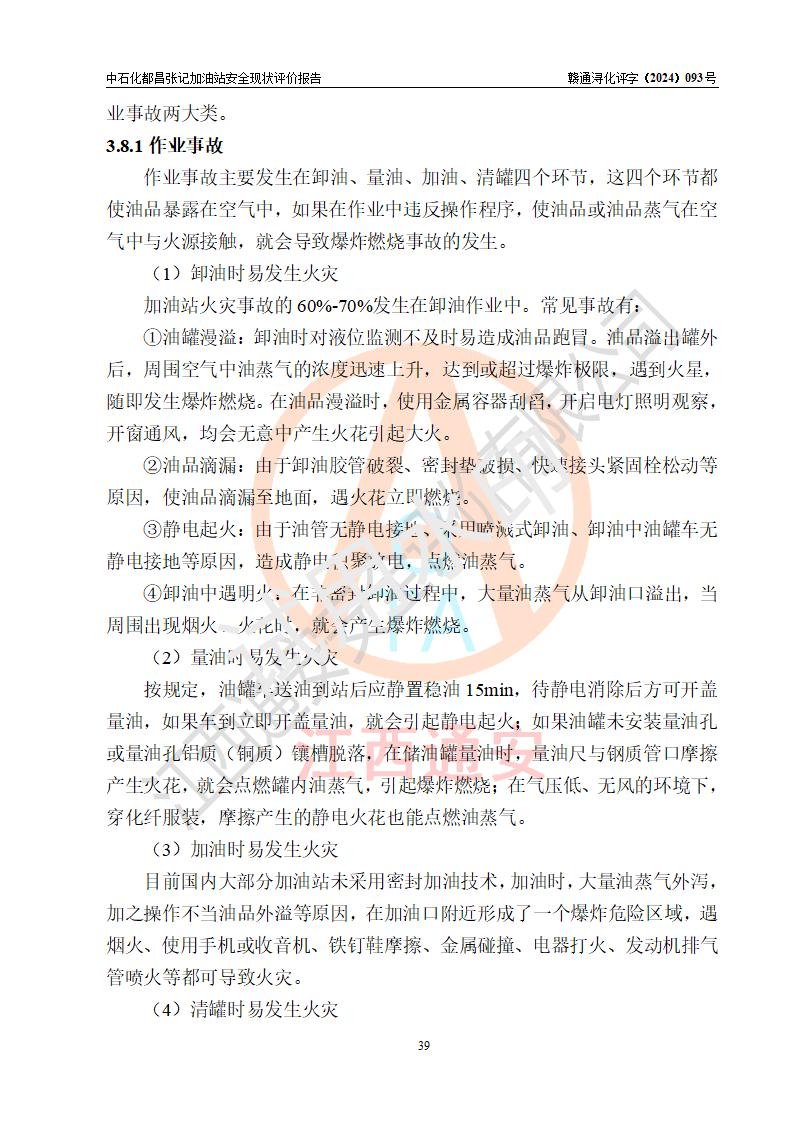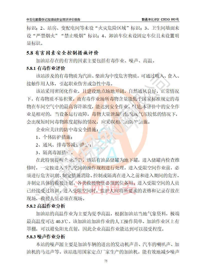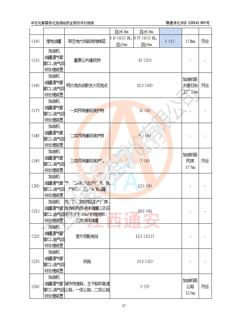 評價結(jié)論 | 中國石化銷售股份有限公司江西九江都昌石油分公司張記加油站涉及的安全條件、安全經(jīng)營條件、安全生產(chǎn)管理符合《危險化學(xué)品經(jīng)營許可證管理辦法》、《汽車加油加氣加氫站技術(shù)標(biāo)準(zhǔn)》等**有關(guān)法規(guī)、標(biāo)準(zhǔn)、規(guī)范要求,能滿足危險化學(xué)品經(jīng)營安全條件。 | |||