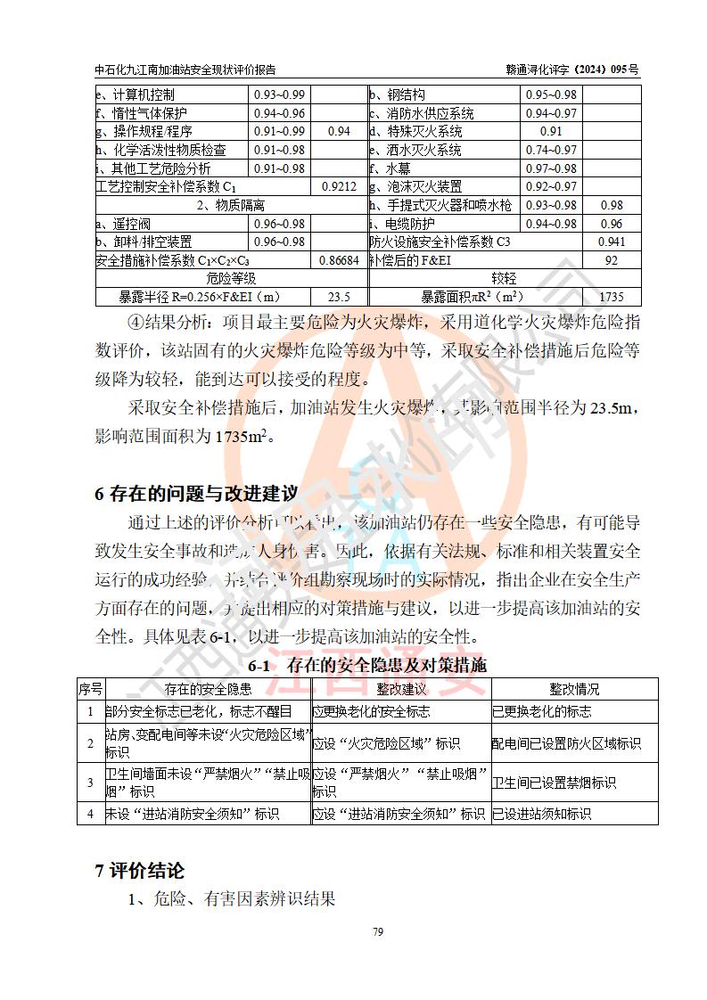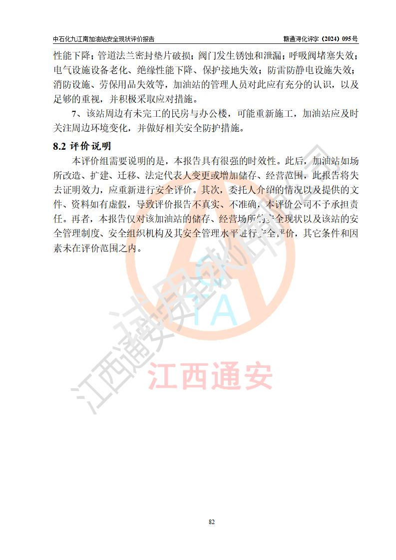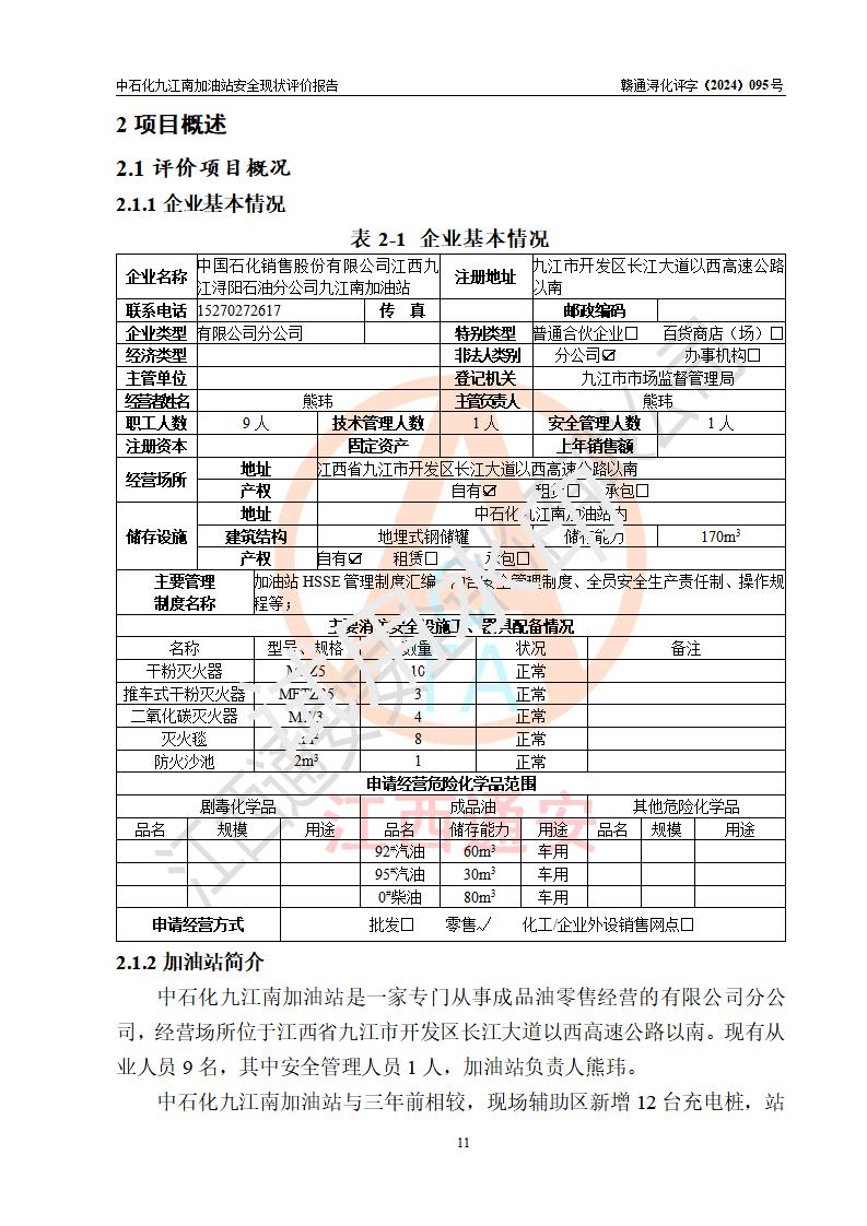 評價報告名稱 | 中國石化銷售股份有限公司江西九江潯陽石油分公司九江南加油站安全現(xiàn)狀評價報告 | |||