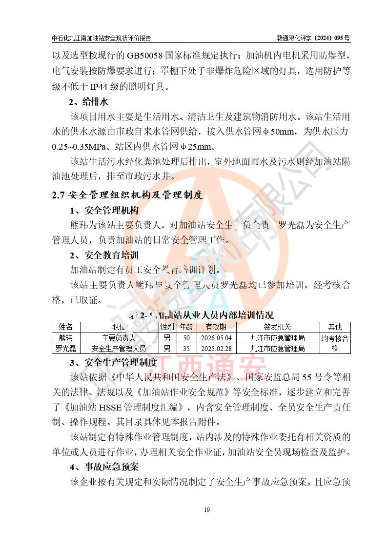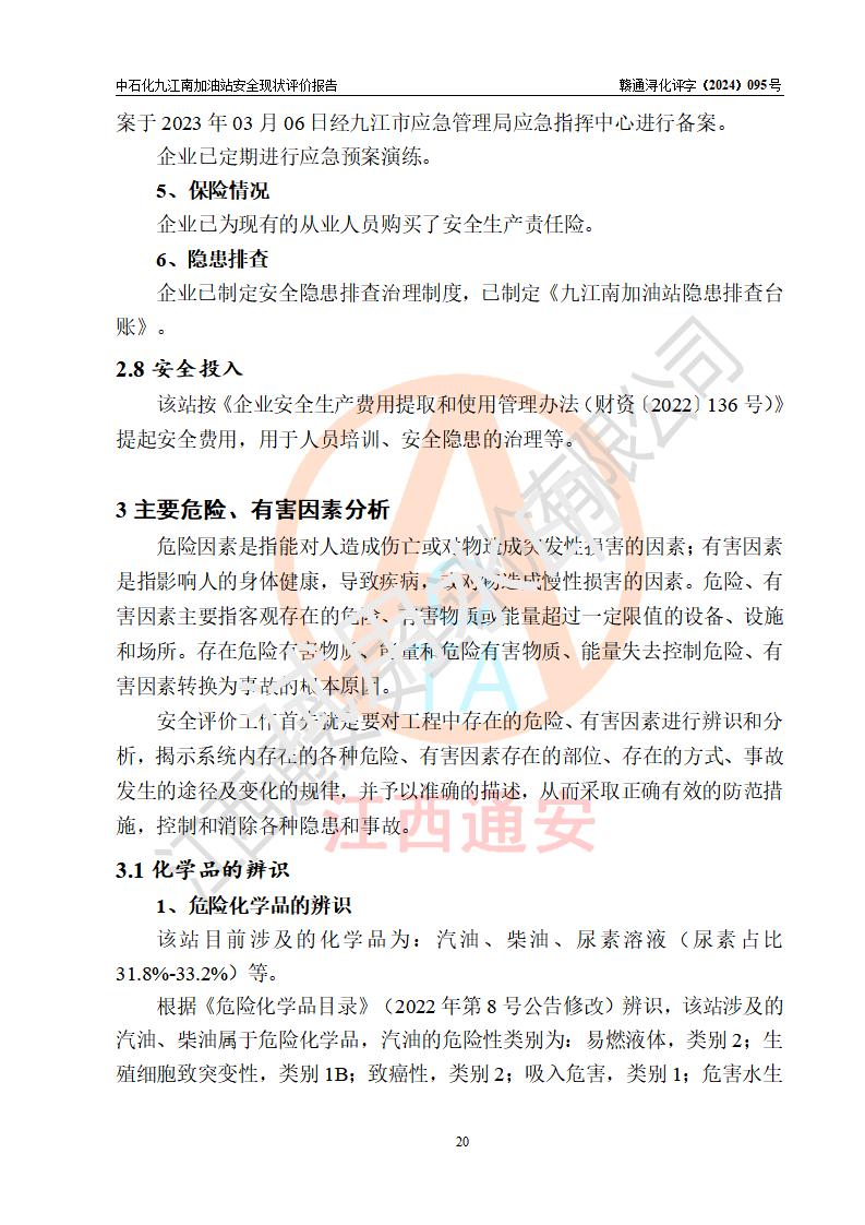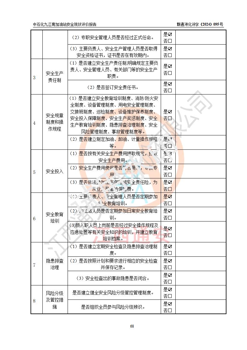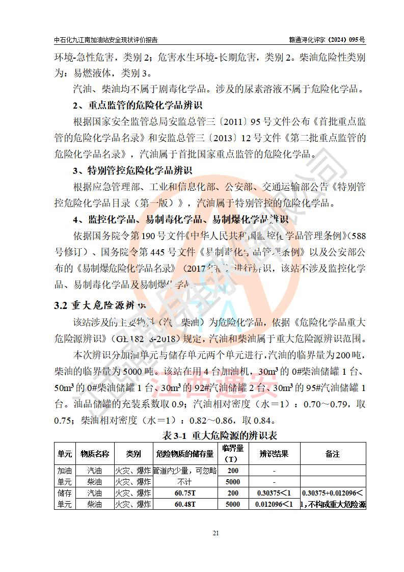 評價報告名稱 | 中國石化銷售股份有限公司江西九江潯陽石油分公司九江南加油站安全現(xiàn)狀評價報告 | |||