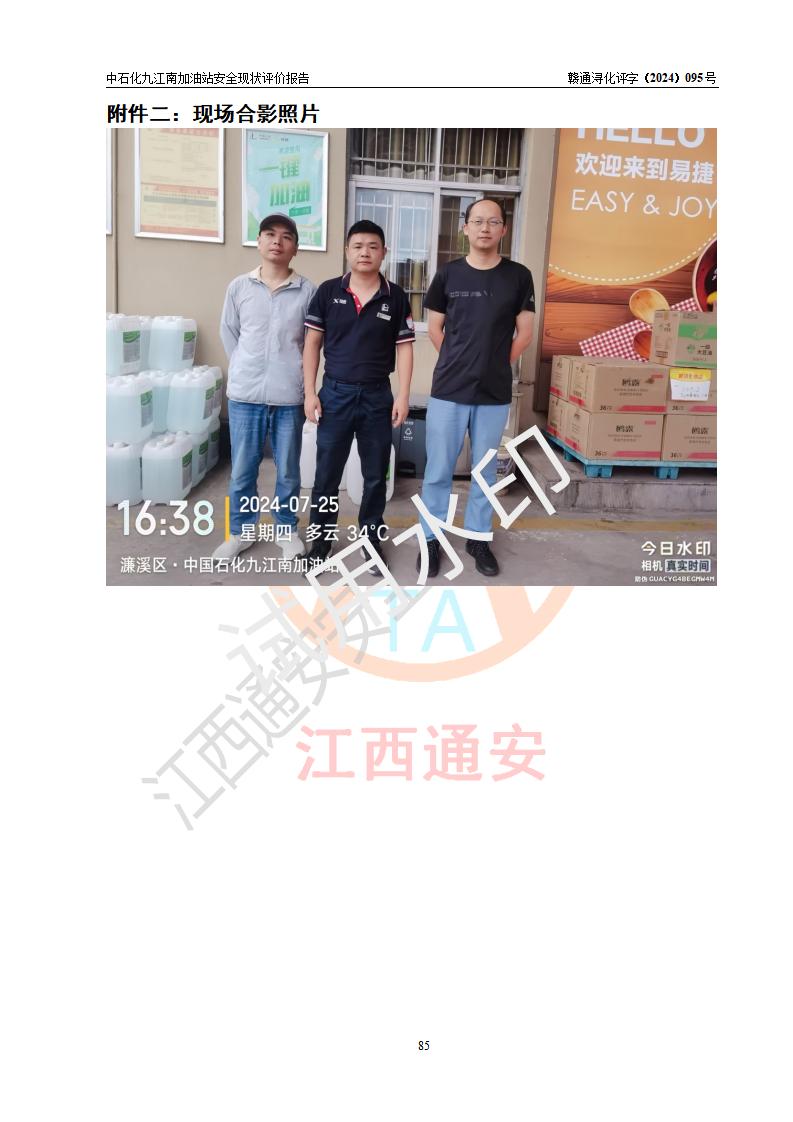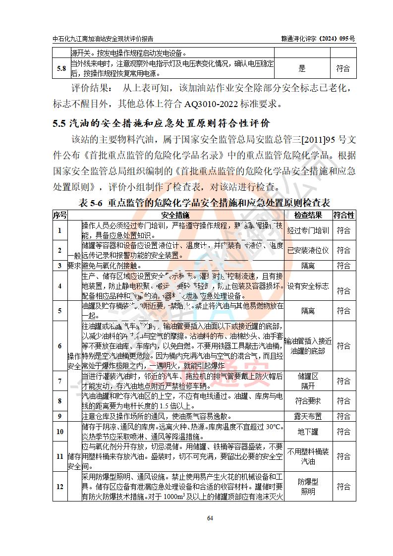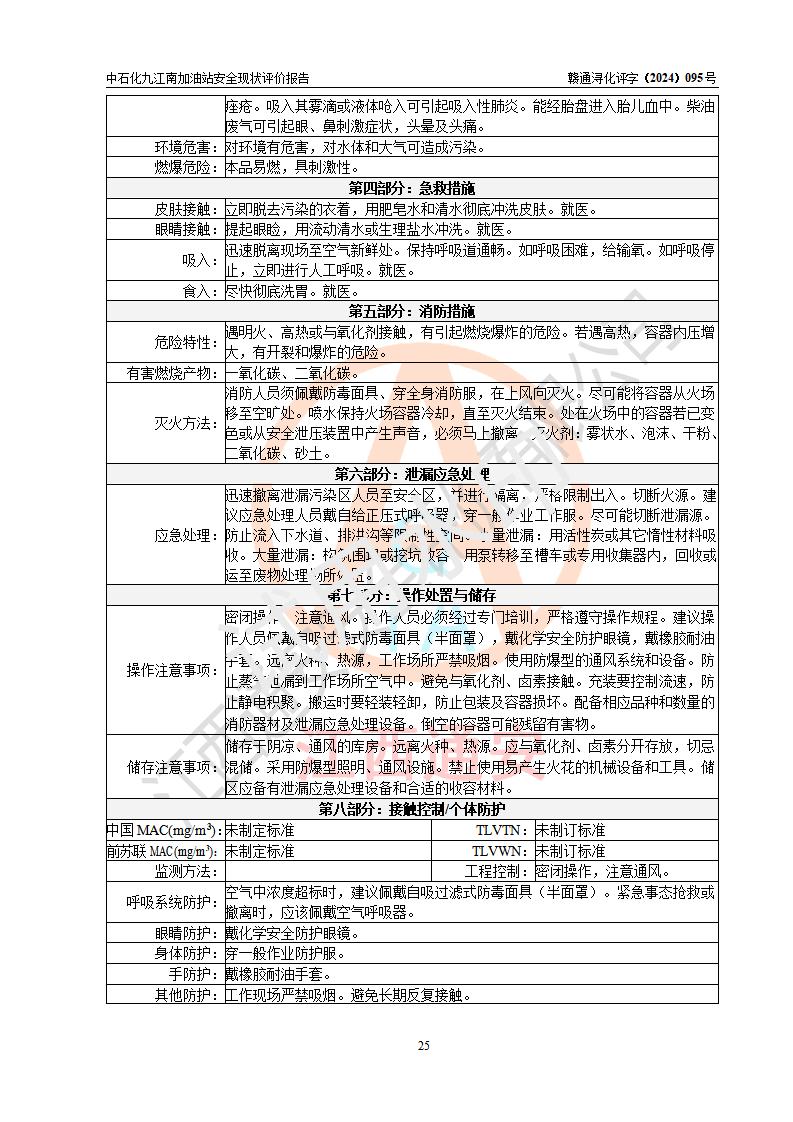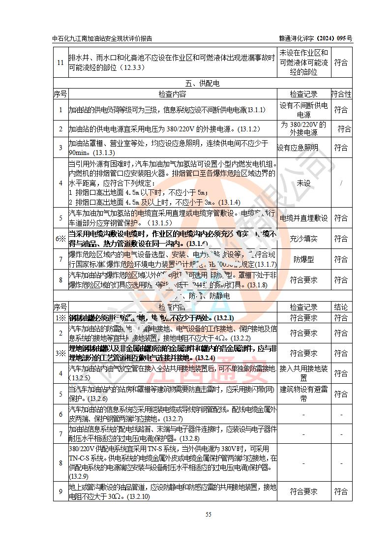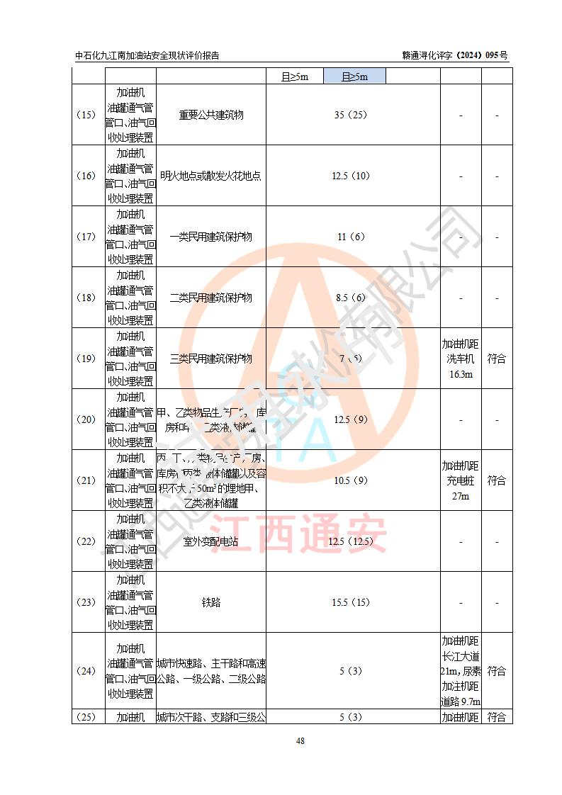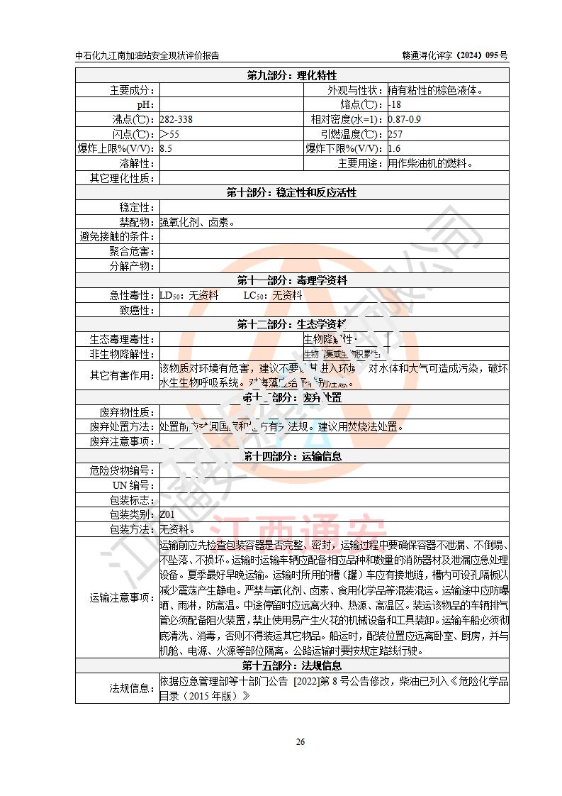評價結(jié)論 | 中國石化銷售股份有限公司江西九江潯陽石油分公司九江南加油站涉及的安全條件、安全經(jīng)營條件、安全生產(chǎn)管理符合《危險化學(xué)品經(jīng)營許可證管理辦法》、《汽車加油加氣加氫站技術(shù)標(biāo)準(zhǔn)》等**有關(guān)法規(guī)、標(biāo)準(zhǔn)、規(guī)范要求,能滿足危險化學(xué)品經(jīng)營安全條件。 | |||