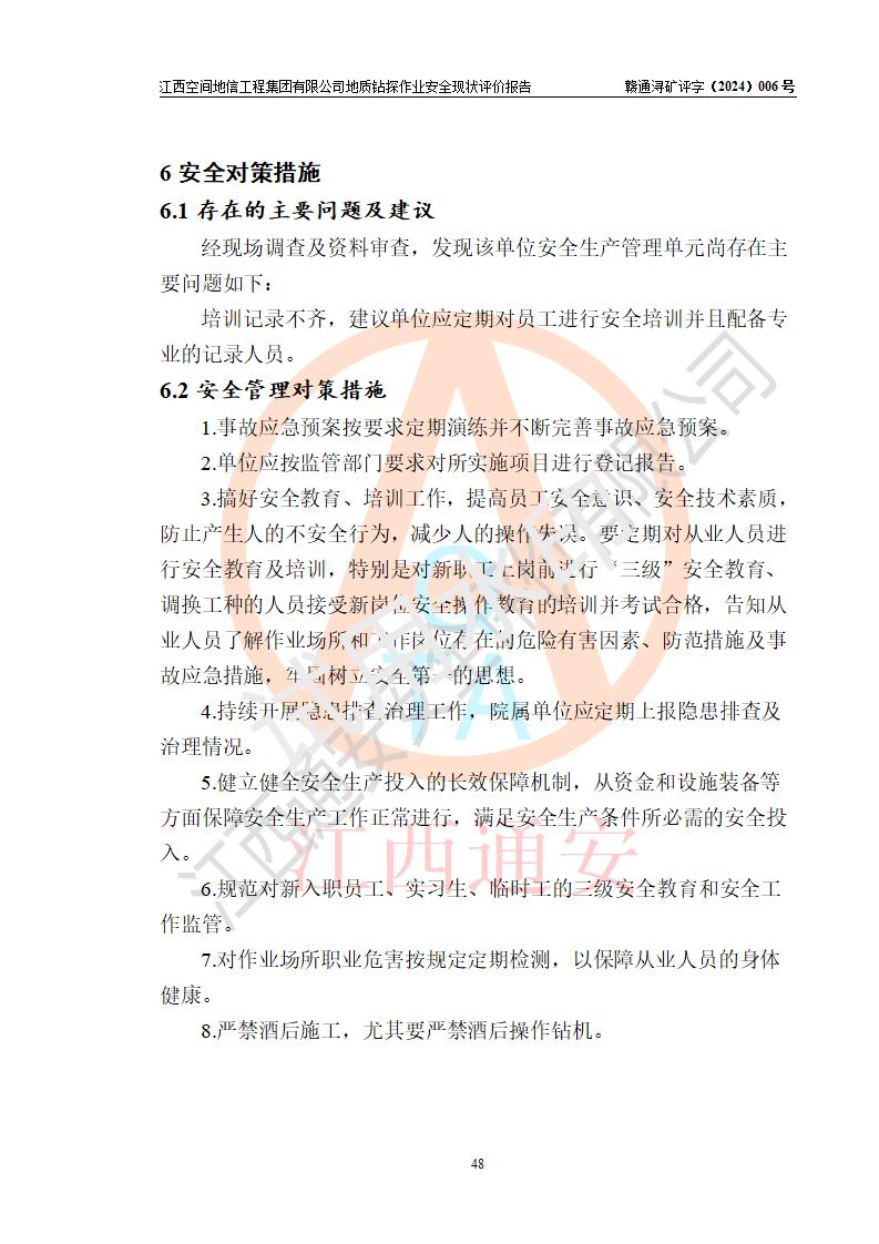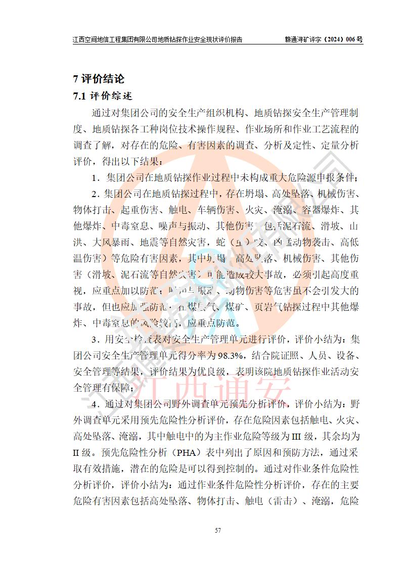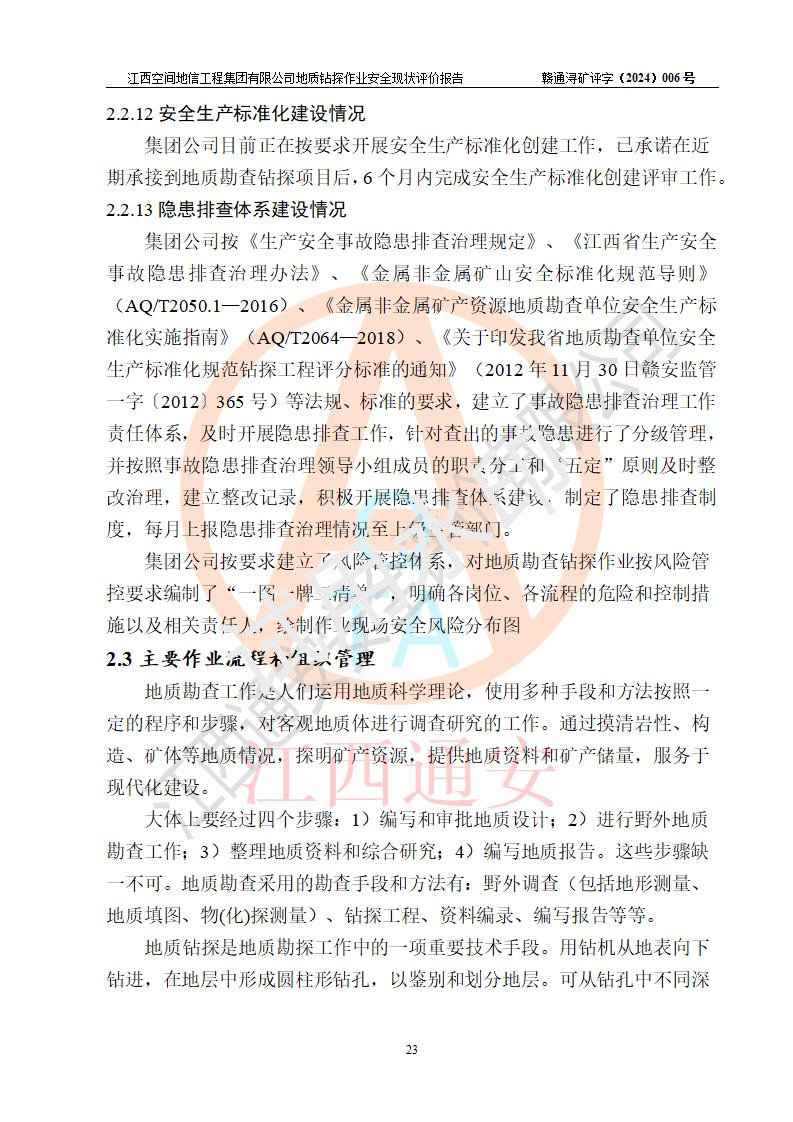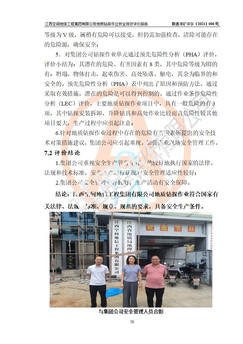 江西空間地信工程集團(tuán)有限公司成立于2019年10月,位于江西省南昌市青云譜區(qū)南蓮路76號,為江西省地理信息工程大隊(duì)隊(duì)屬二級企業(yè),由“江西中煤路橋工程有限公司”、“江西省煤田地質(zhì)局普查綜合大隊(duì)”(企業(yè))、“江西工程物探新技術(shù)公司”、“江西華昌地質(zhì)測試有限公司”“江西中煤集團(tuán)第六建設(shè)有限公司”、“江西中煤集團(tuán)生態(tài)環(huán)境有限公司”重組而成。主要承擔(dān)全隊(duì)市場運(yùn)營、業(yè)務(wù)開拓、政策研究、科技創(chuàng)新等職責(zé)。 集團(tuán)公司經(jīng)營范圍:地質(zhì)災(zāi)害危險性評估,地質(zhì)災(zāi)害治理工程勘查,地質(zhì)災(zāi)害治理工程設(shè)計,地質(zhì)災(zāi)害治理工程施工,國土空間規(guī)劃編制,測繪服務(wù),互聯(lián)網(wǎng)信息服務(wù),礦產(chǎn)資源勘查(依法須經(jīng)批準(zhǔn)的項(xiàng)目,經(jīng)相關(guān)部門批準(zhǔn)后方可開展經(jīng)營活動)一般項(xiàng)目:地質(zhì)災(zāi)害治理服務(wù),土地整治服務(wù),規(guī)劃設(shè)計管理,互聯(lián)網(wǎng)安全服務(wù),信息咨詢服務(wù)(不含許可類信息咨詢服務(wù)),軟件開發(fā),地理遙感信息服務(wù),礦產(chǎn)資源儲量估算和報告編制服務(wù)(須在中國礦業(yè)權(quán)評估師**完成登記備案后方可從事經(jīng)營活動),礦產(chǎn)資源儲量評估服務(wù)(須在中國礦業(yè)權(quán)評估師**完成登記備案后方可從事經(jīng)營活動),基礎(chǔ)地質(zhì)勘查,土壤污染治理與修復(fù)服務(wù),對外承包工程(除許可業(yè)務(wù)外,可自主依法經(jīng)營法律法規(guī)非禁止或限制的項(xiàng)目)。 江西空間地信工程集團(tuán)有限公司為江西省地理信息工程大隊(duì)隊(duì)屬二級企業(yè),集團(tuán)公司內(nèi)設(shè)7個直屬部門:綜合辦、科研中心、資產(chǎn)辦、人力資源辦、資質(zhì)辦、招標(biāo)辦、黨群辦;3個分公司:上饒分公司、宜春分公司、全南項(xiàng)目部;下設(shè)9個實(shí)體:基礎(chǔ)測繪院、測繪工程院、自然資源調(diào)查院、規(guī)劃設(shè)計院、勘測設(shè)計院、地信中心、航測遙感院、國土綜合整治院、地環(huán)探測院。集團(tuán)公司產(chǎn)業(yè)發(fā)展分測繪工程、航測遙感、地理信息工程、國土空間規(guī)劃、國土綜合整治、地環(huán)探測工程六大板塊。 集團(tuán)公司現(xiàn)有干部職工900人,在編職工601人,合同聘用職工299人,其中副高以上職稱106人,工程師職稱209人,助理工程師162人,研究生76人,本科生773人。 集團(tuán)公司擁有測繪**,地災(zāi)評估、勘查、設(shè)計、施工**,土地規(guī)劃**;土地規(guī)劃、土地整治、城鄉(xiāng)規(guī)劃乙級、水利水電工程、市政二級等資質(zhì)證書。公司于2022年4月獲得質(zhì)量、環(huán)境、職業(yè)健康、信息安全、信息技術(shù)服務(wù)、五星售后等6項(xiàng)ISO體系認(rèn)證證書,2022年5月獲得AAA企業(yè)信用等級證書,獲得行業(yè)誠信經(jīng)營示范單位、AAA級誠信供應(yīng)商、重合同守信用、質(zhì)量服務(wù)誠信單位等稱號。 集團(tuán)公司為地勘單位安全生產(chǎn)許可證新設(shè)許可,申請?jiān)S可范圍:地質(zhì)鉆探作業(yè)。按照《安全生產(chǎn)法》、《礦山安全法》和《江西省非煤礦礦山企業(yè)安全生產(chǎn)許可證實(shí)施辦法》等有關(guān)規(guī)定,該單位在申請安全生產(chǎn)許可證前應(yīng)進(jìn)行安全現(xiàn)狀評價。 |
