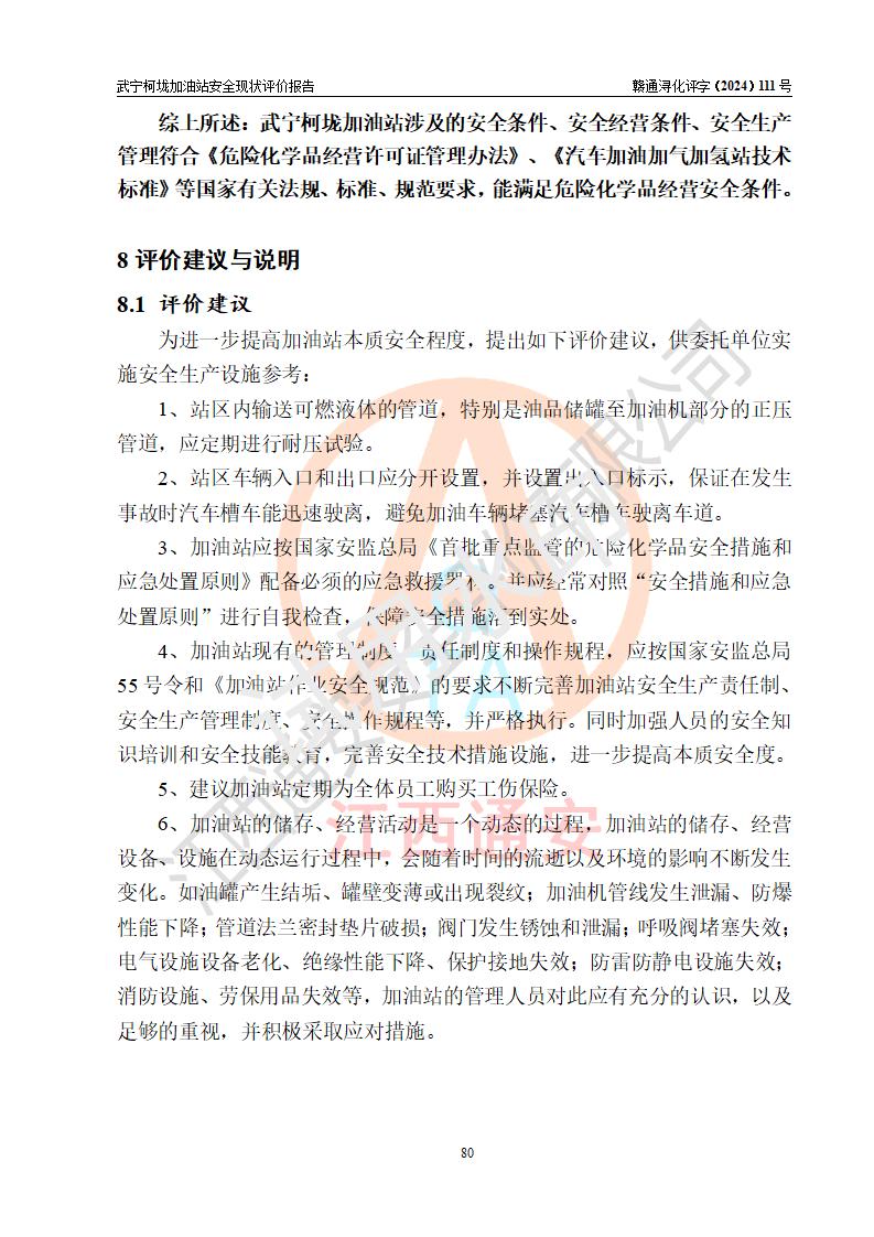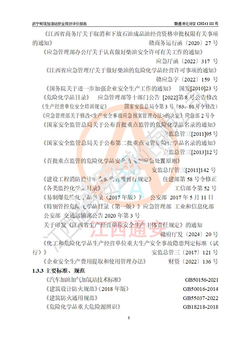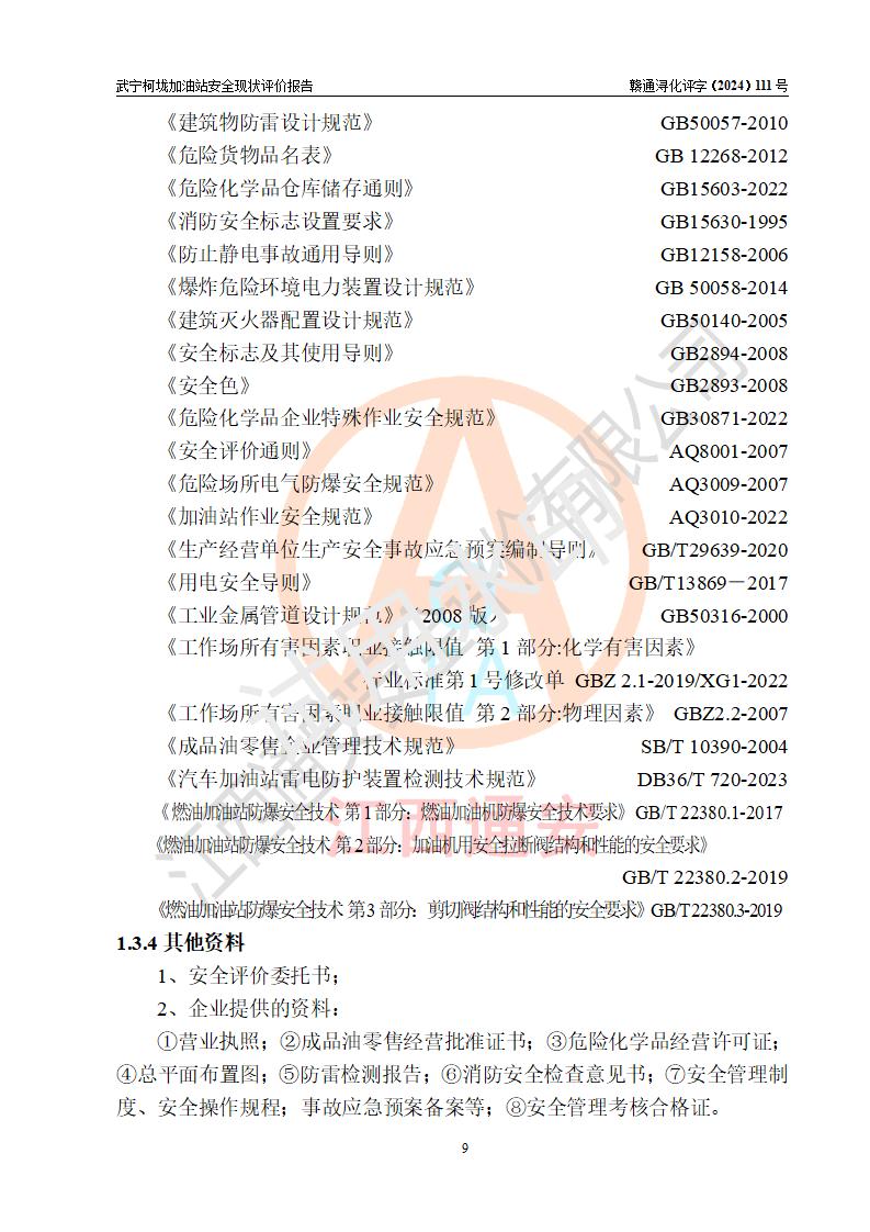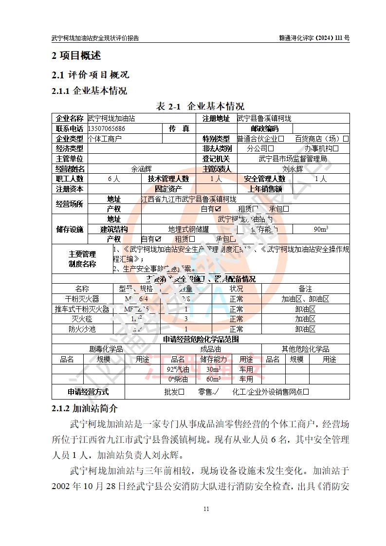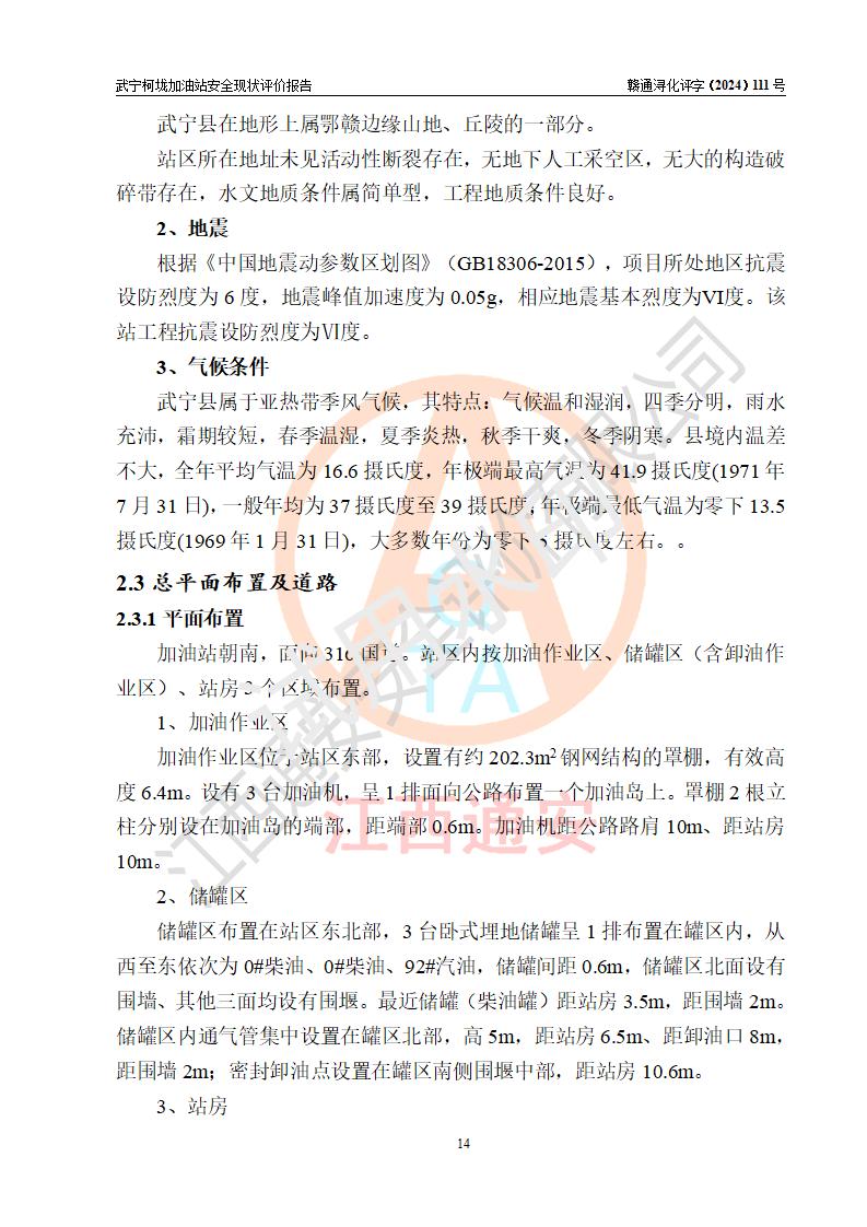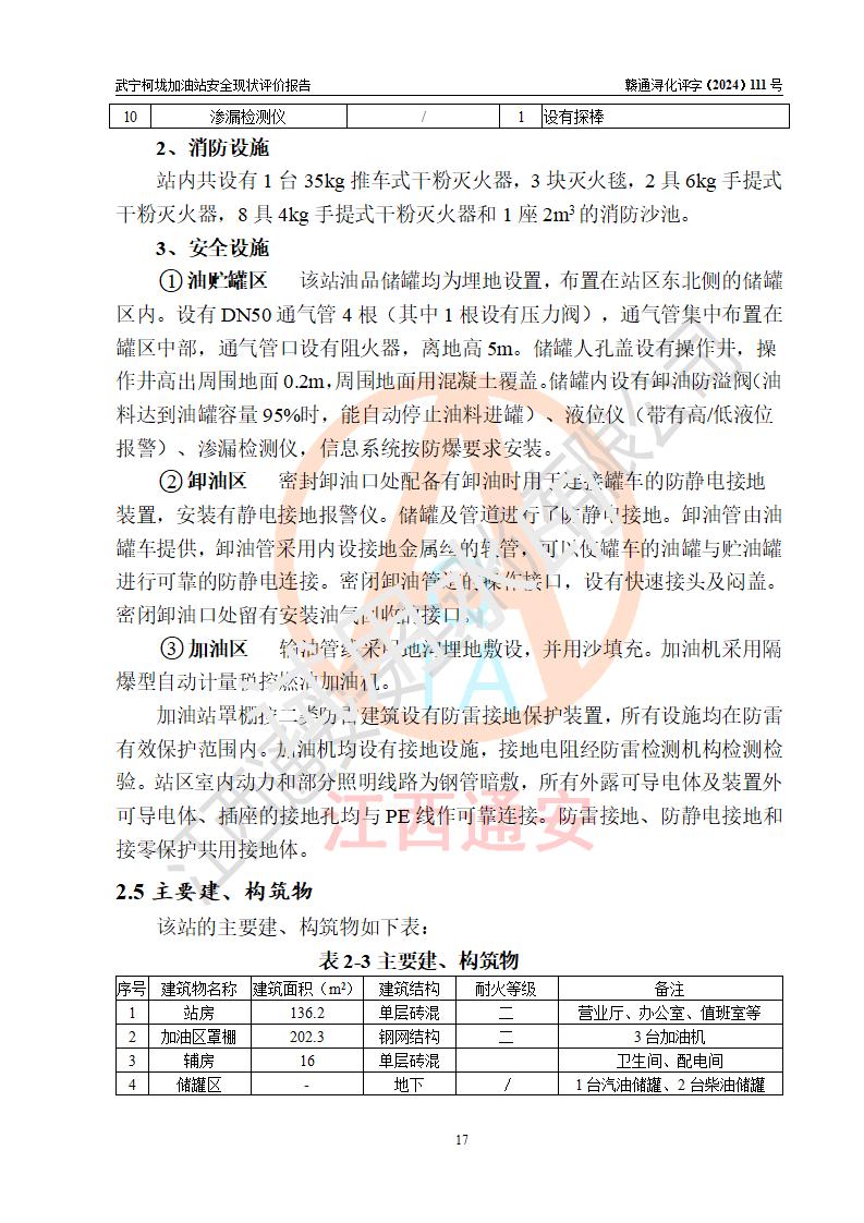評價報告名稱 | 武寧柯垅加油站安全現(xiàn)狀評價報告 | |||
