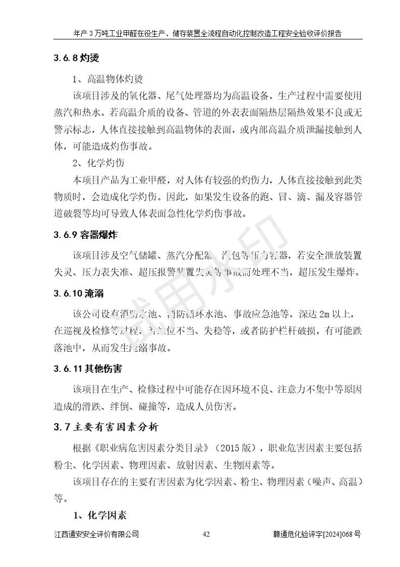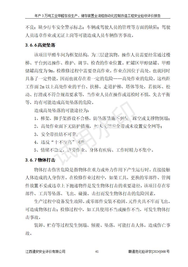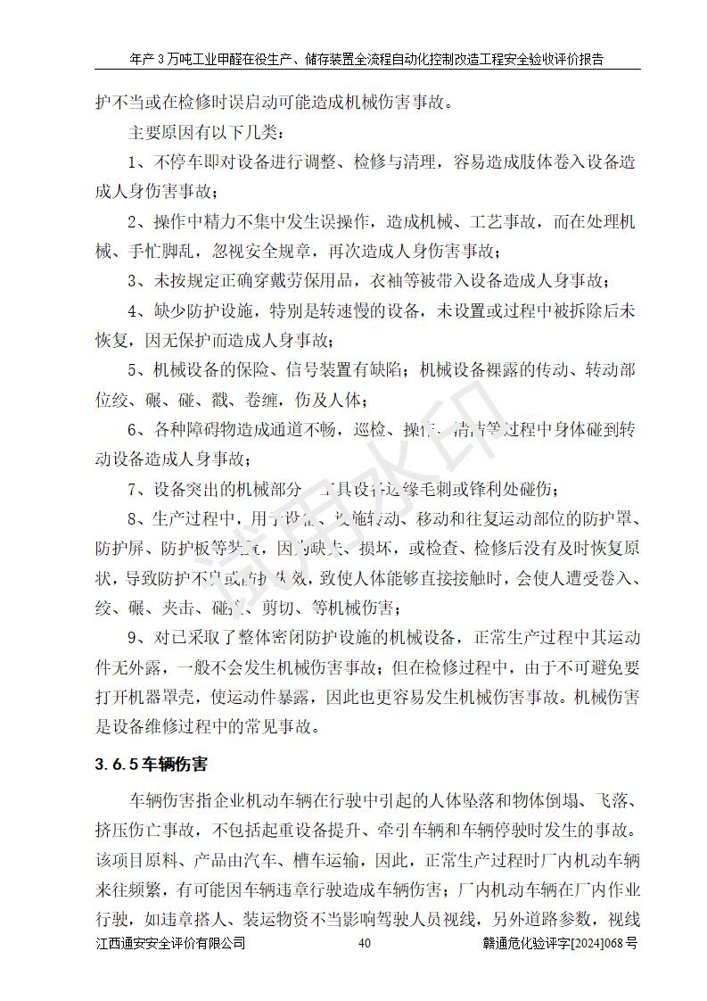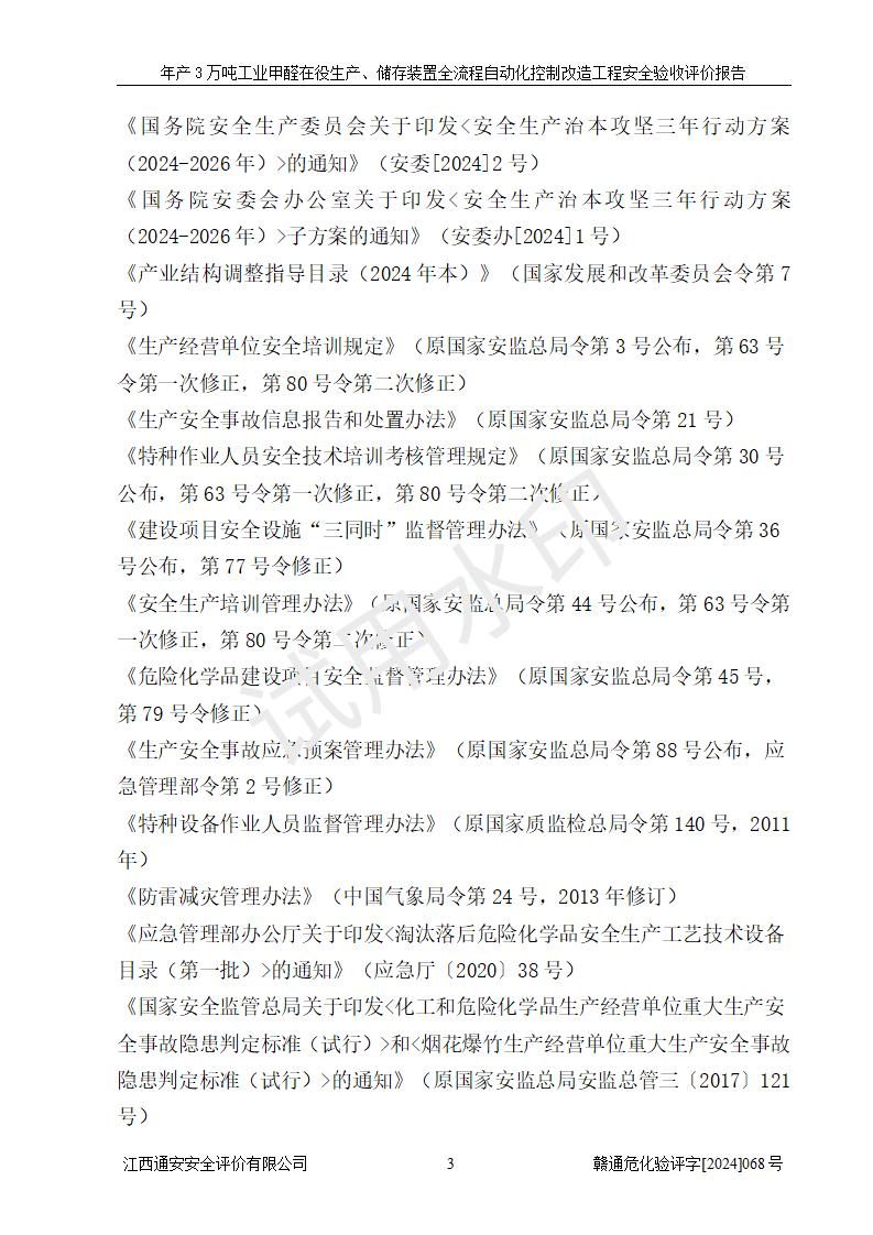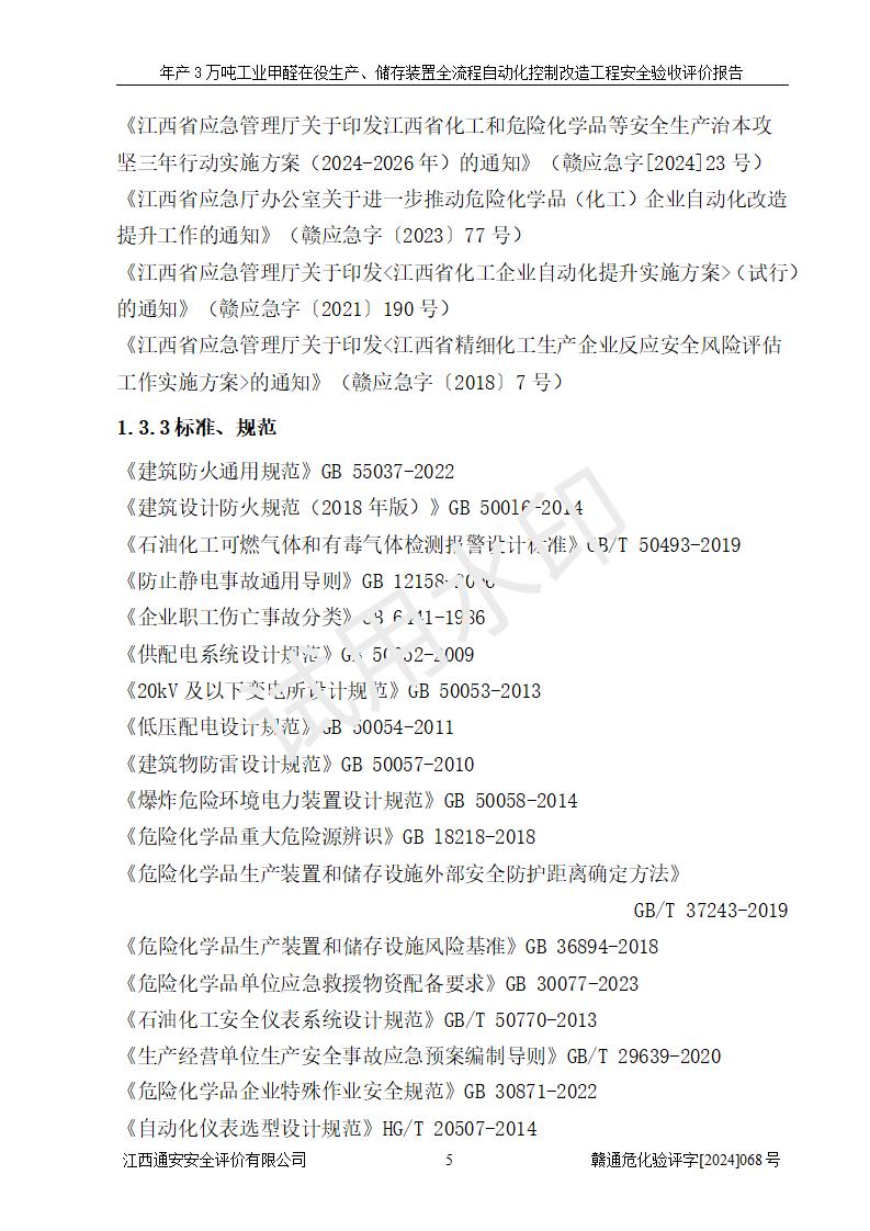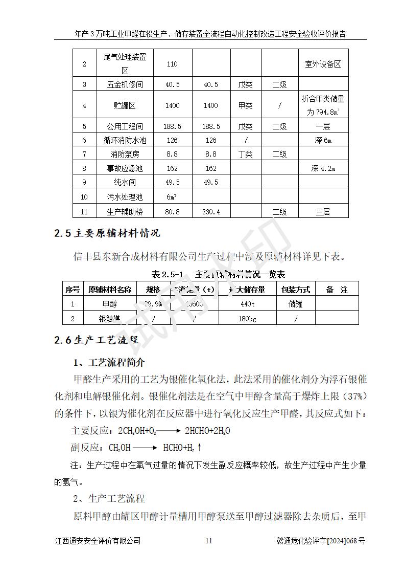評(píng)價(jià)報(bào)告名稱 | 信豐縣東新合成材料有限公司年產(chǎn)3萬(wàn)噸工業(yè)甲醛在役生產(chǎn)、儲(chǔ)存裝置全流程自動(dòng)化控制改造工程安全驗(yàn)收評(píng)價(jià)報(bào)告 | ||||||