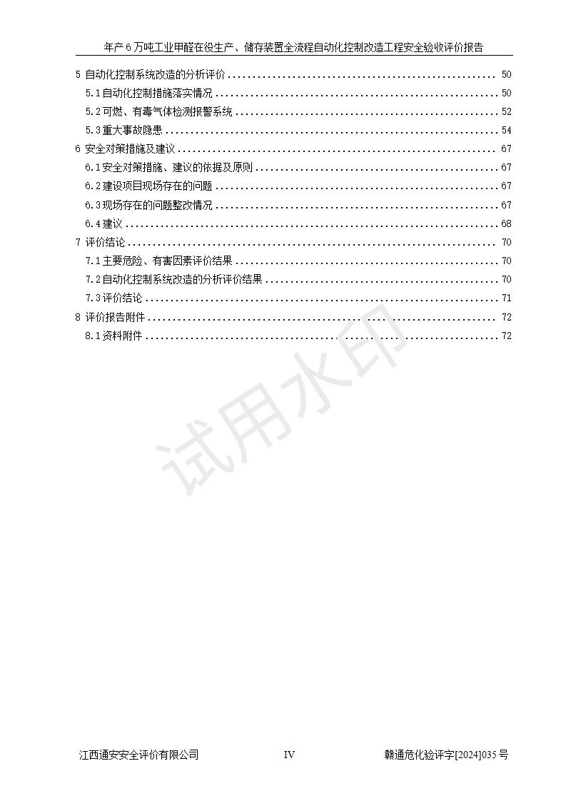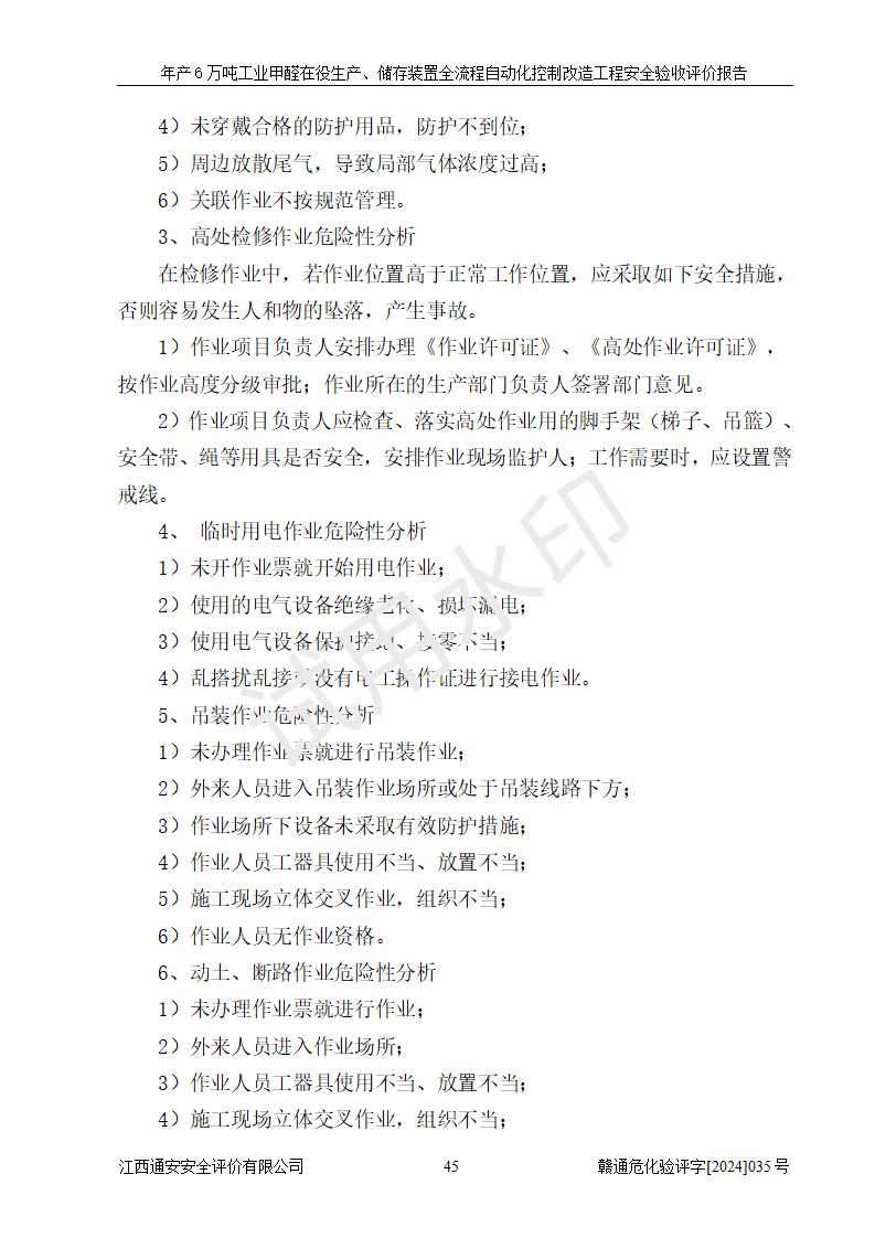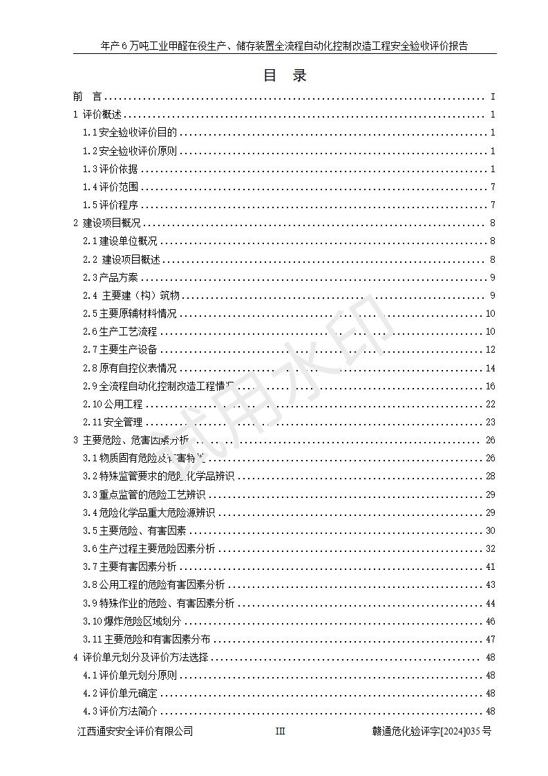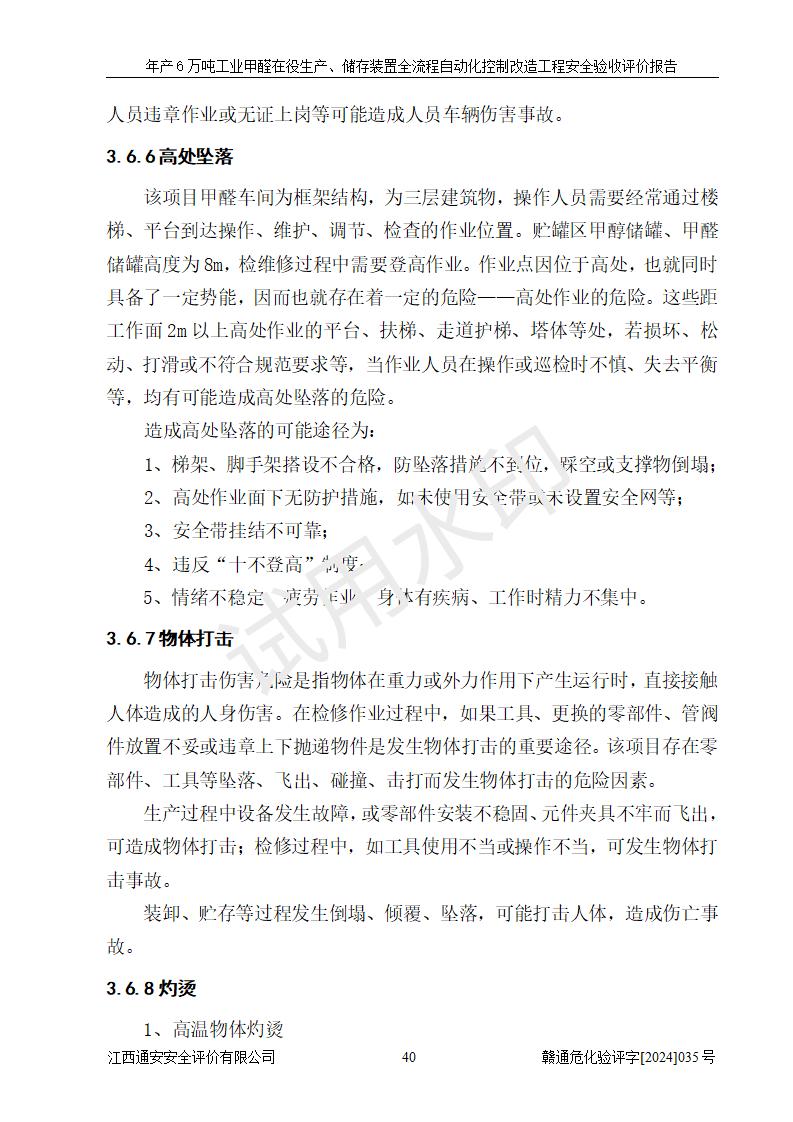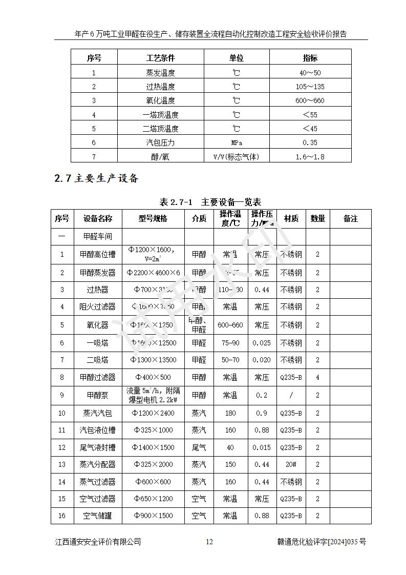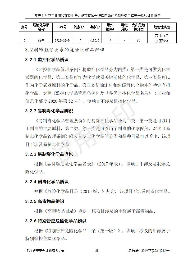 評價報告名稱 | 信豐冠美化工有限公司年產(chǎn)6萬噸工業(yè)甲醛在役生產(chǎn)、儲存裝置全流程自動化控制改造工程安全驗收評價報告 | ||||||