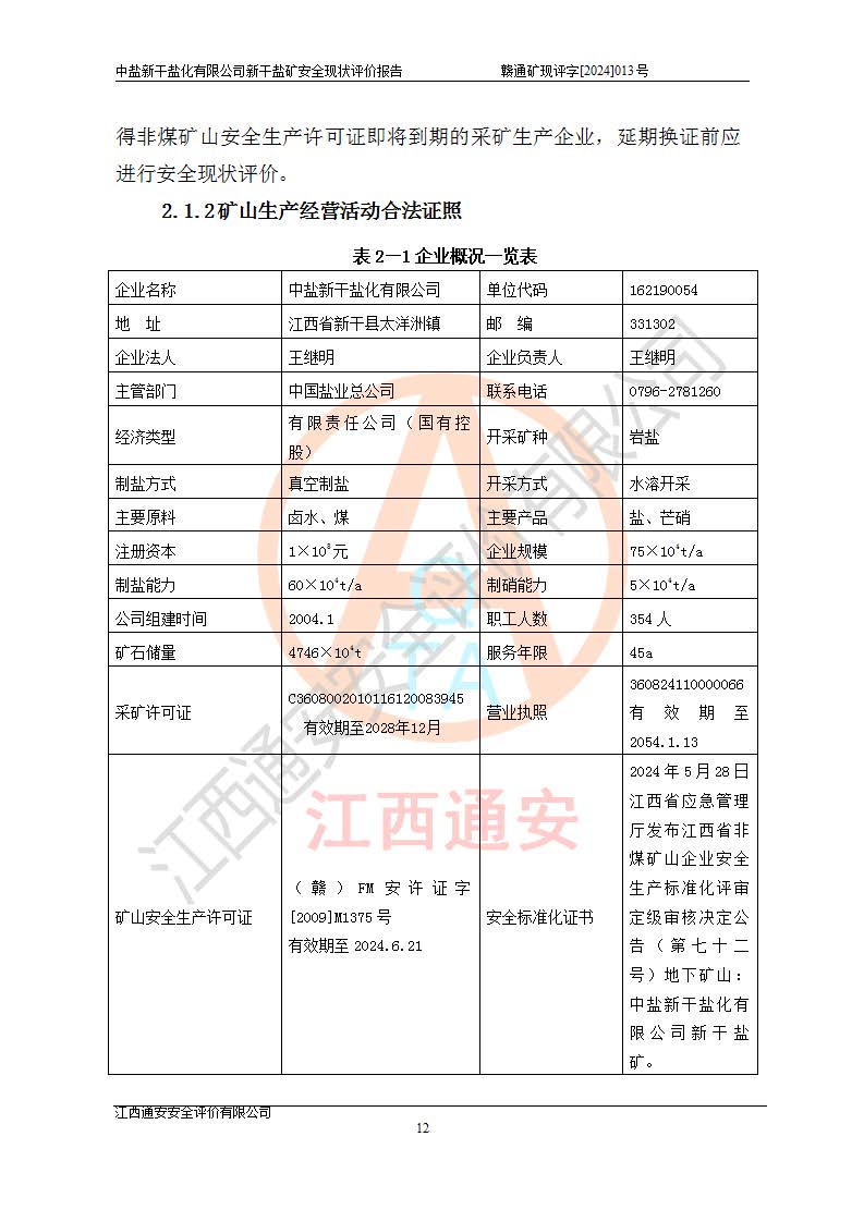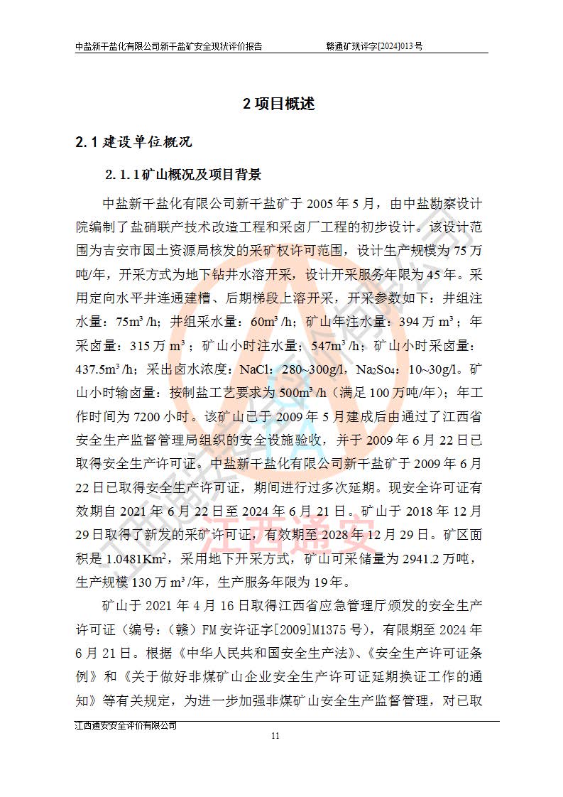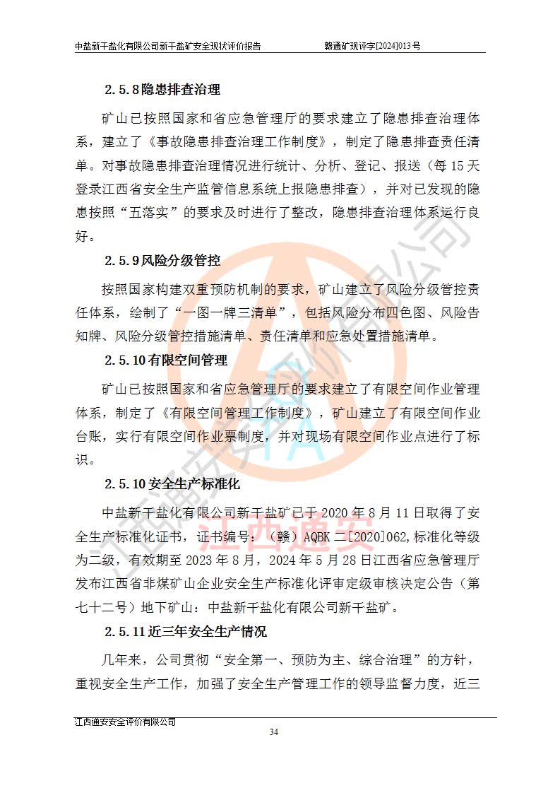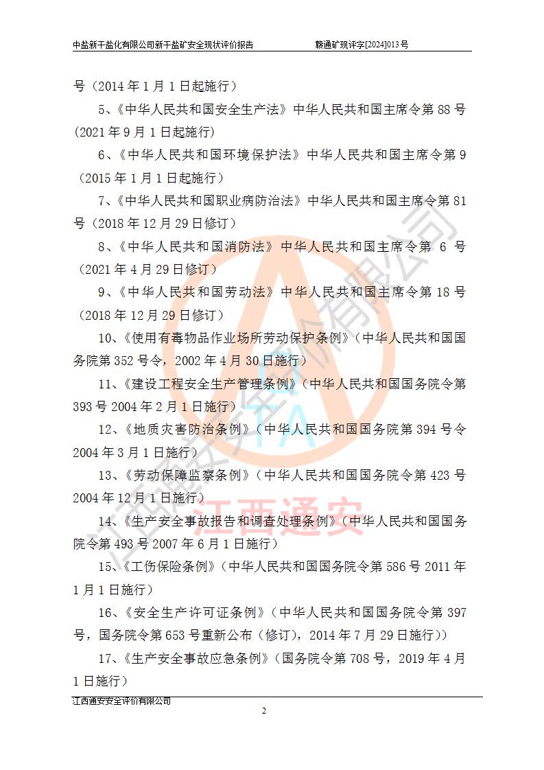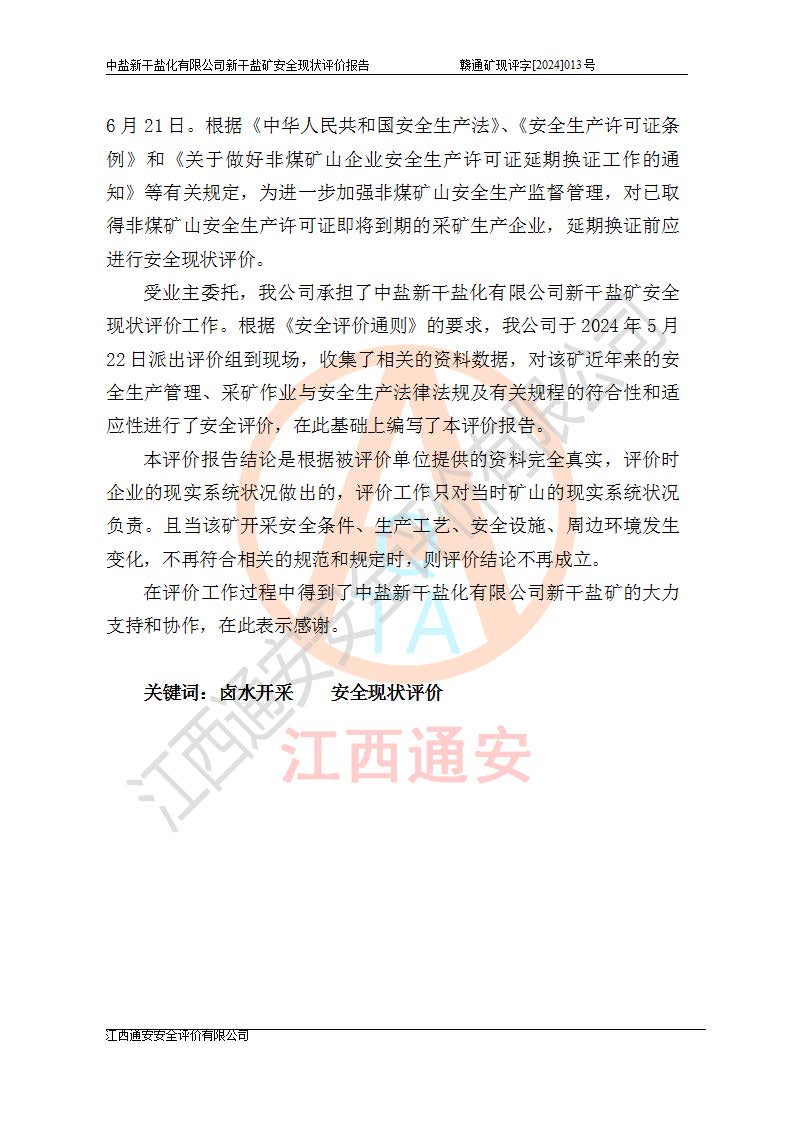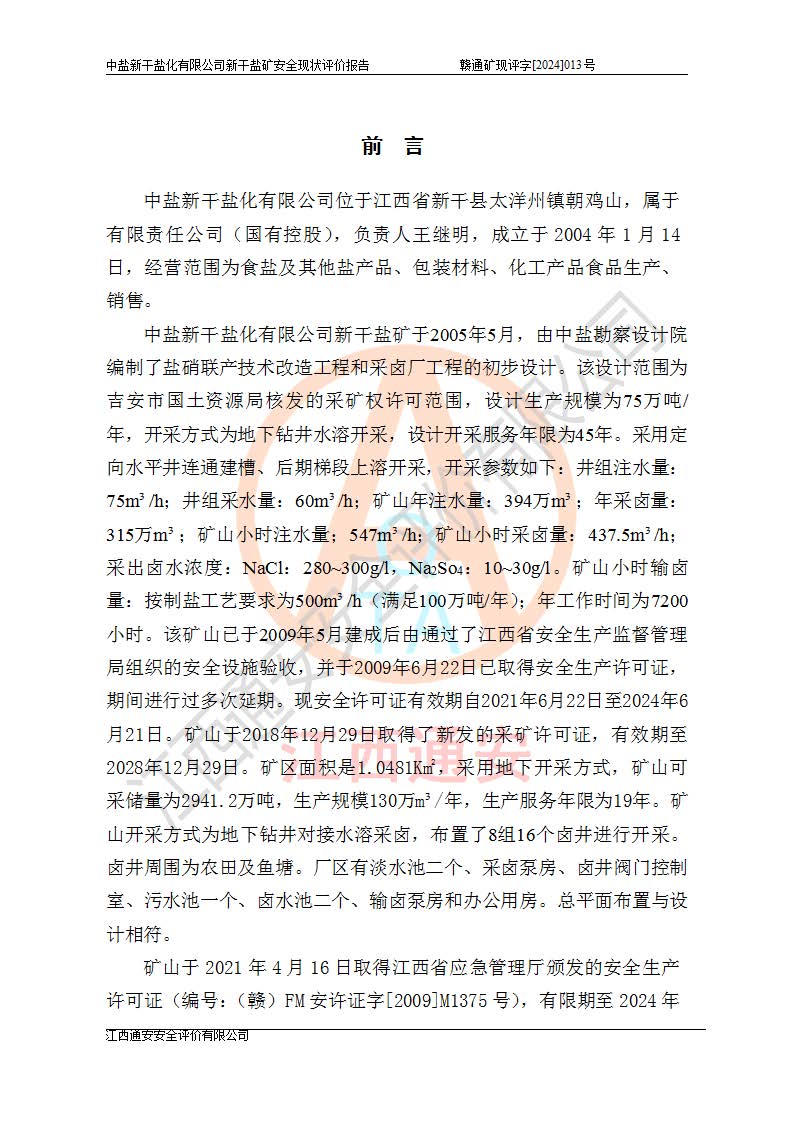 報(bào)告名稱 | 中鹽新干鹽化有限公司新干鹽礦安全現(xiàn)狀評(píng)價(jià)報(bào)告 | |||||