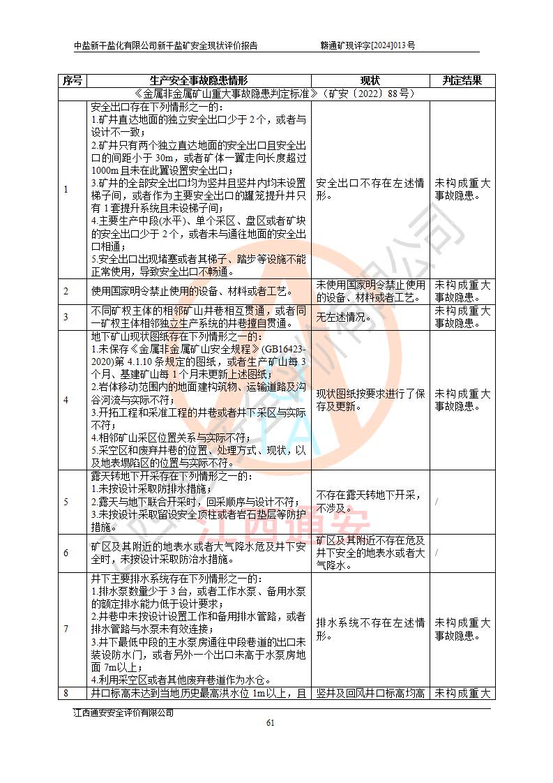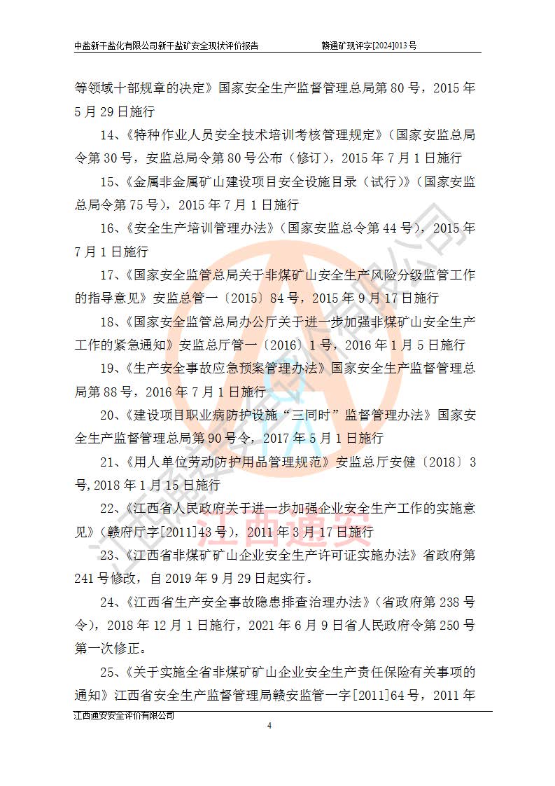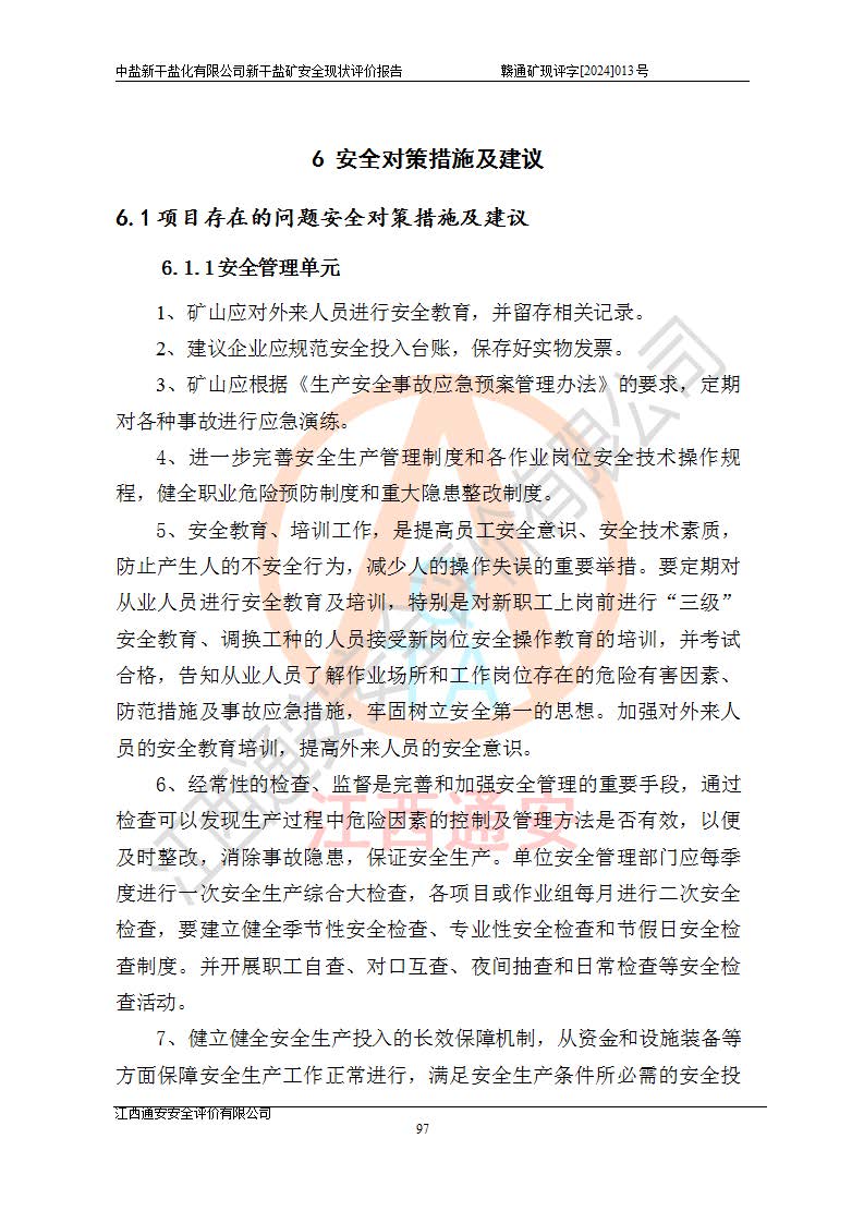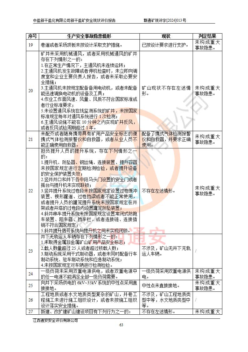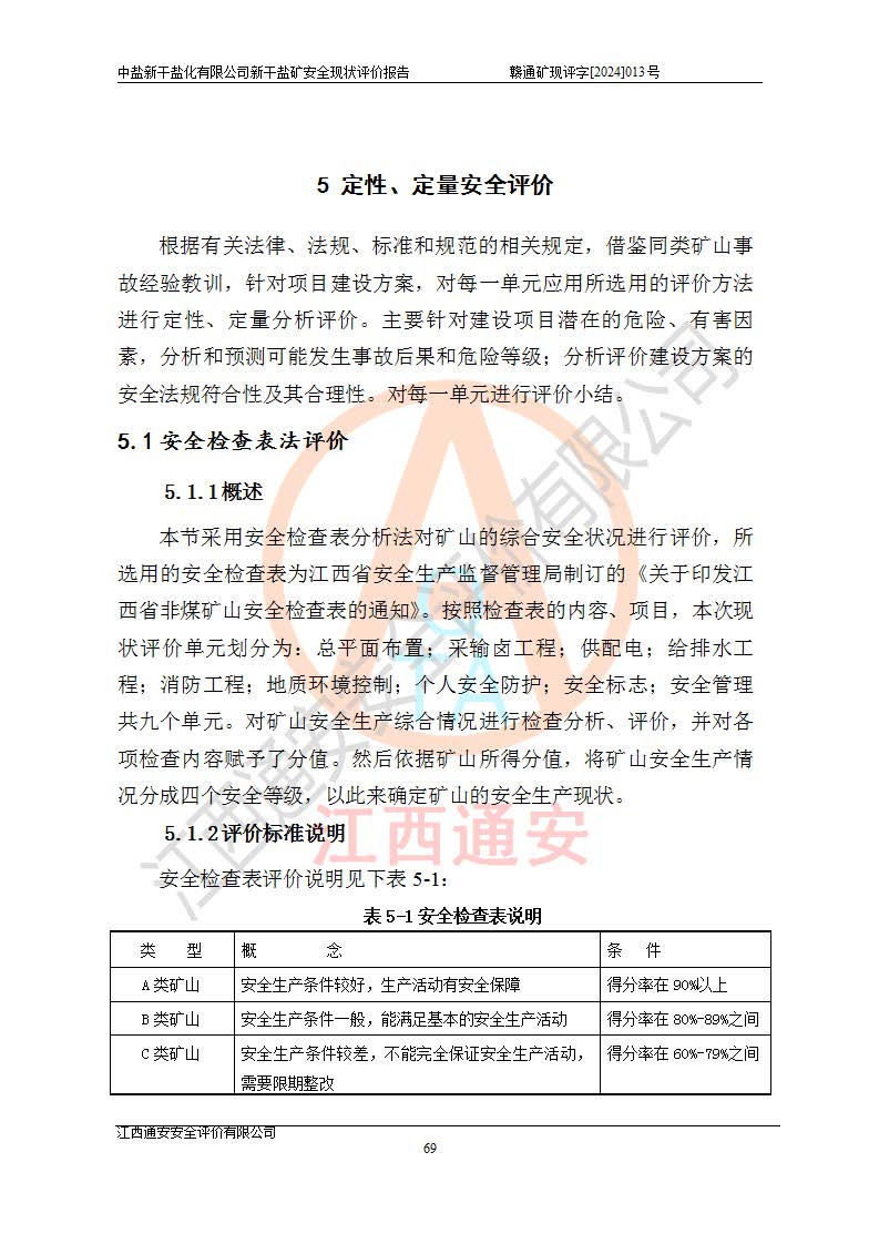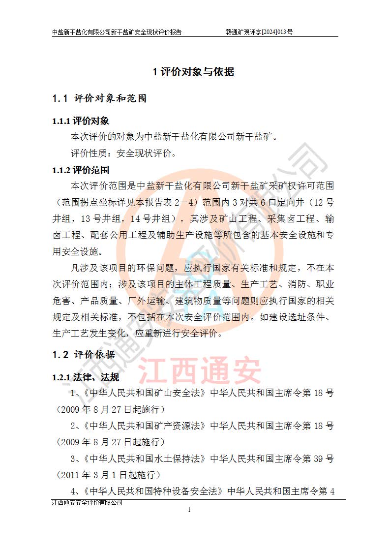 報(bào)告名稱 | 中鹽新干鹽化有限公司新干鹽礦安全現(xiàn)狀評(píng)價(jià)報(bào)告 | |||||