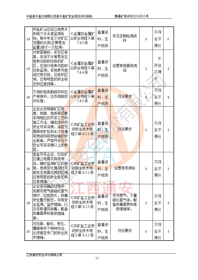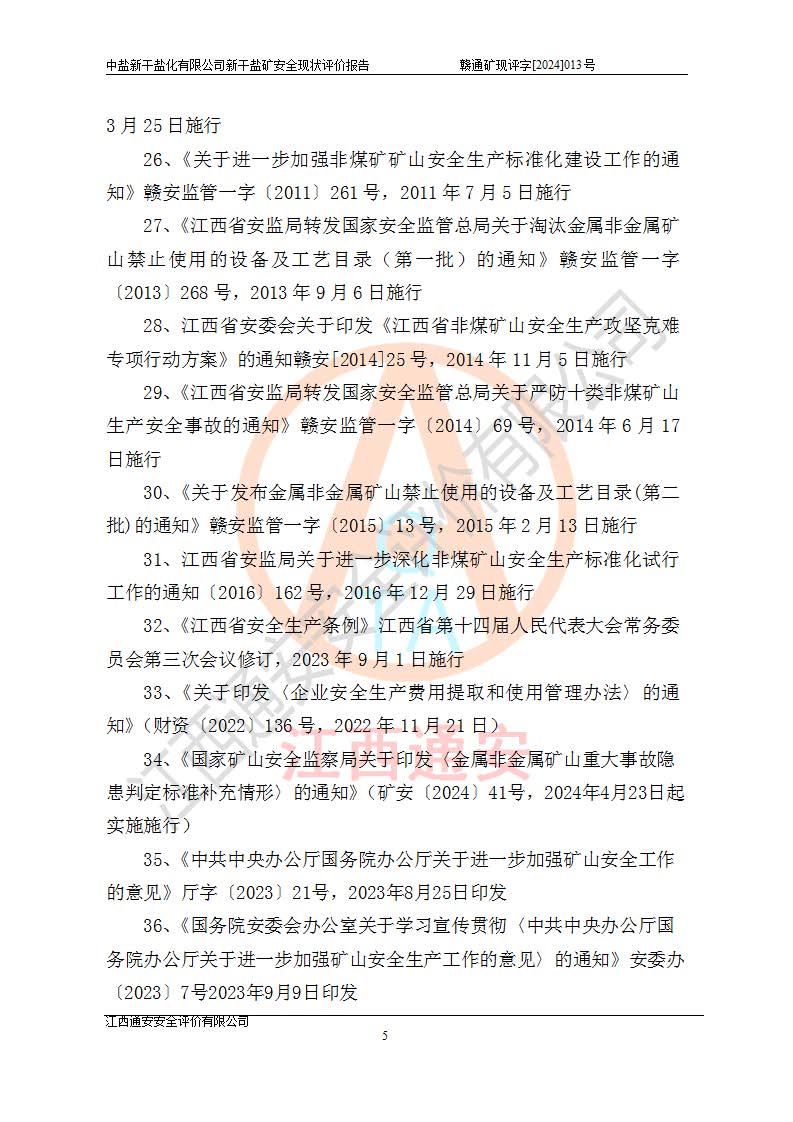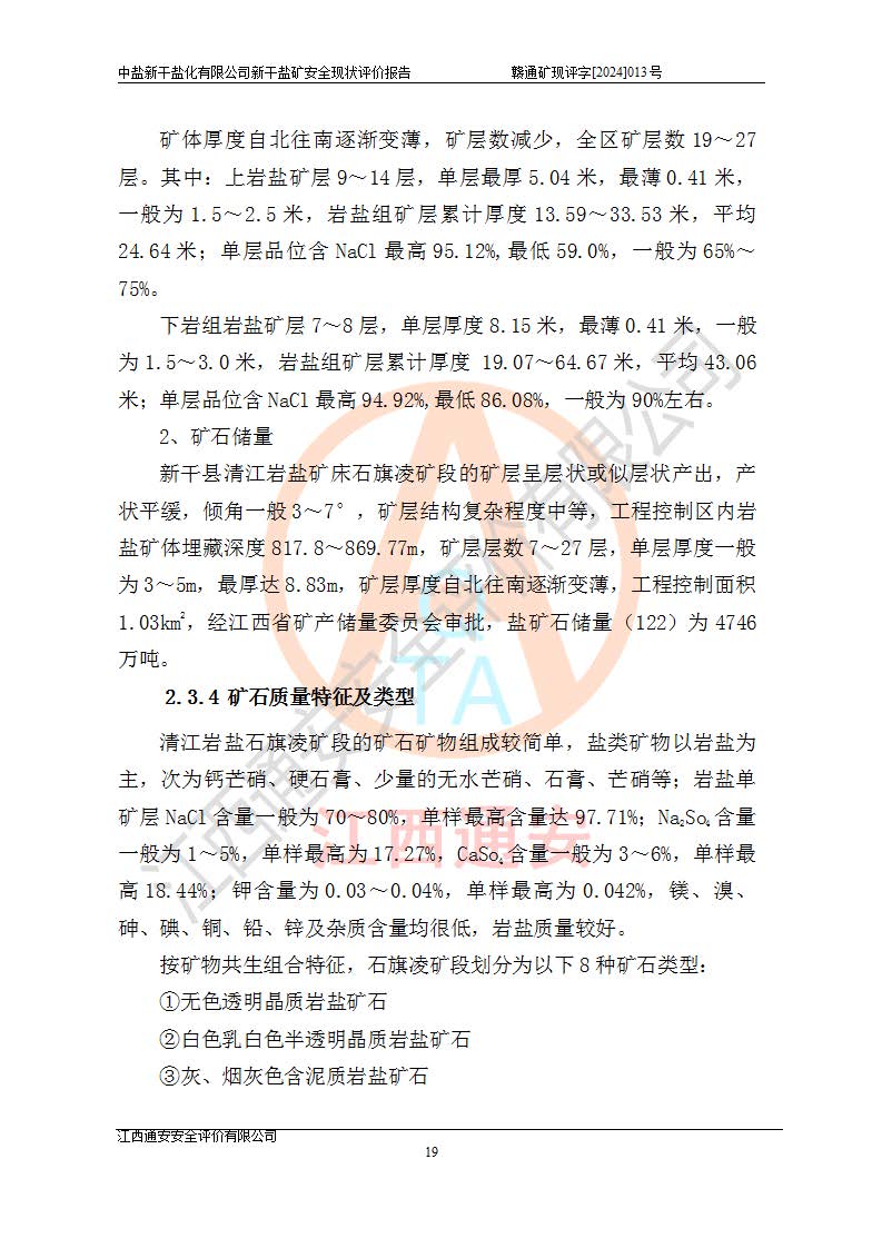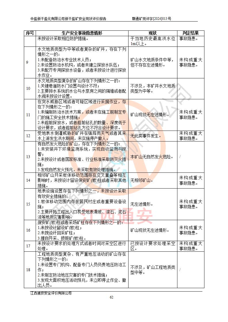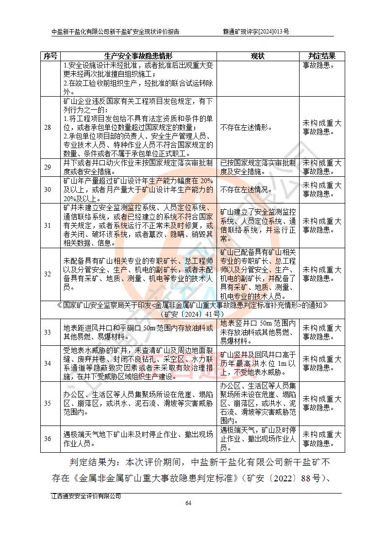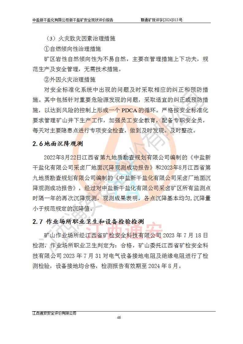 報(bào)告名稱 | 中鹽新干鹽化有限公司新干鹽礦安全現(xiàn)狀評(píng)價(jià)報(bào)告 | |||||