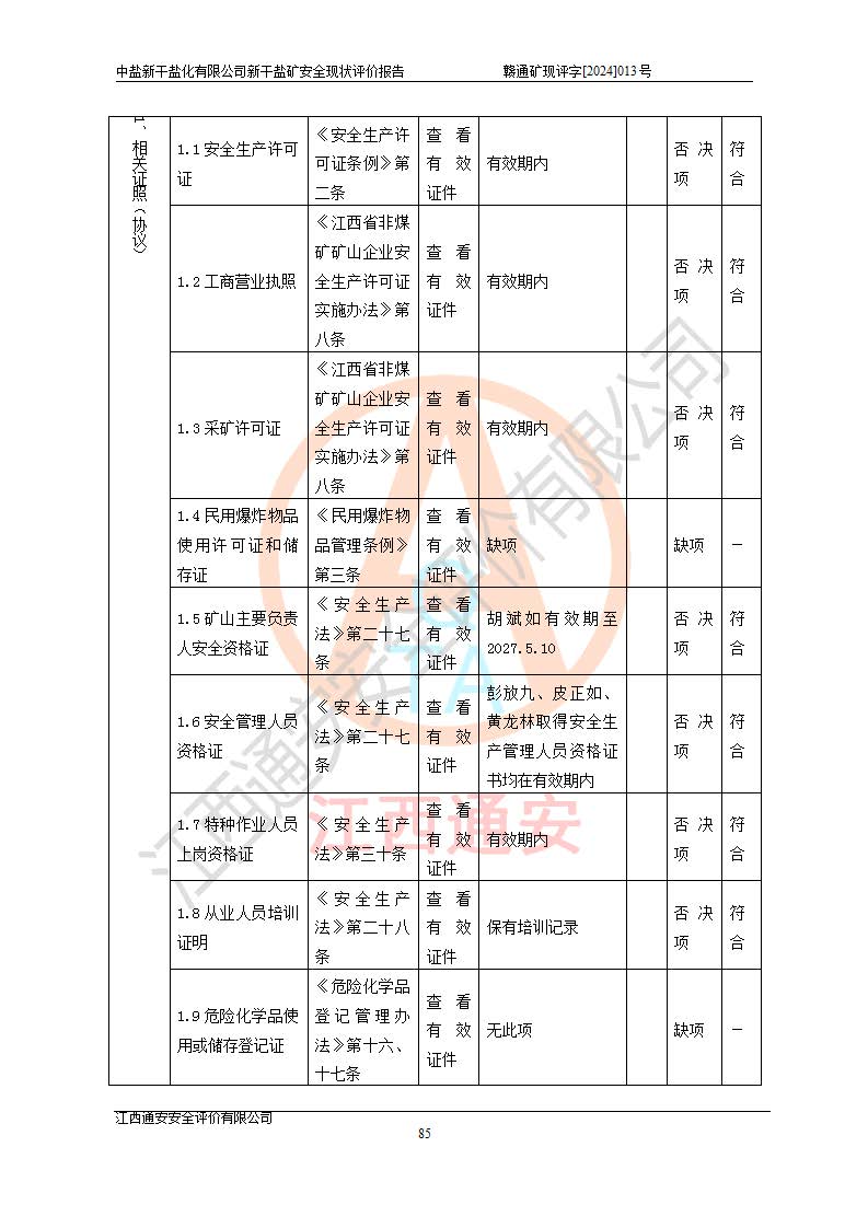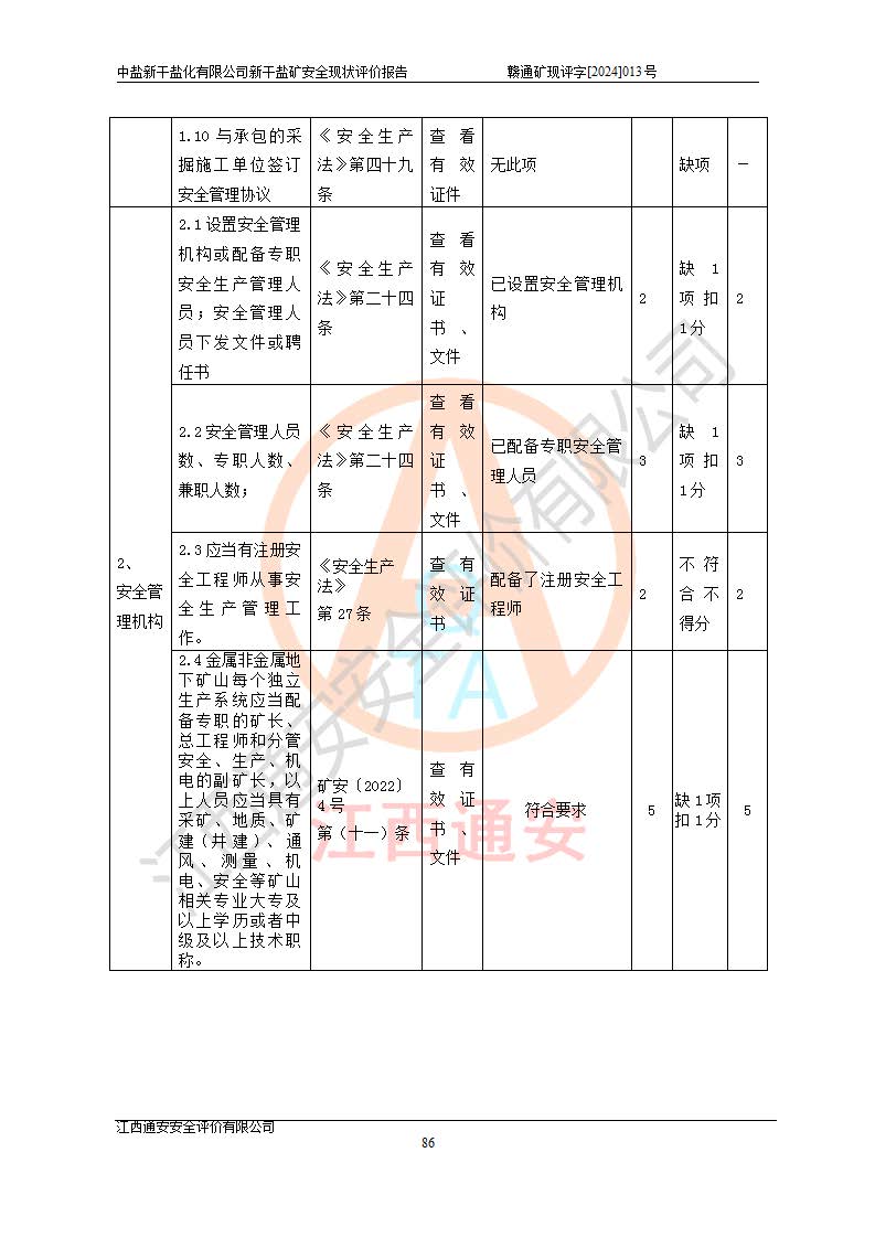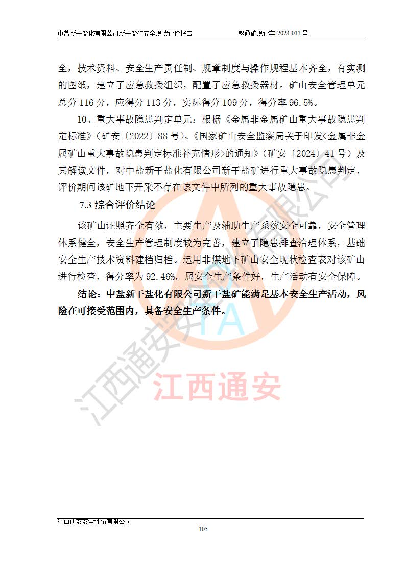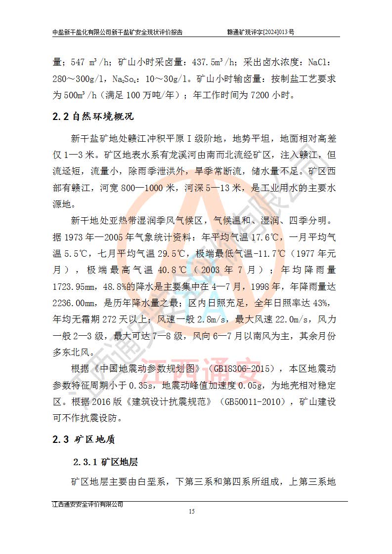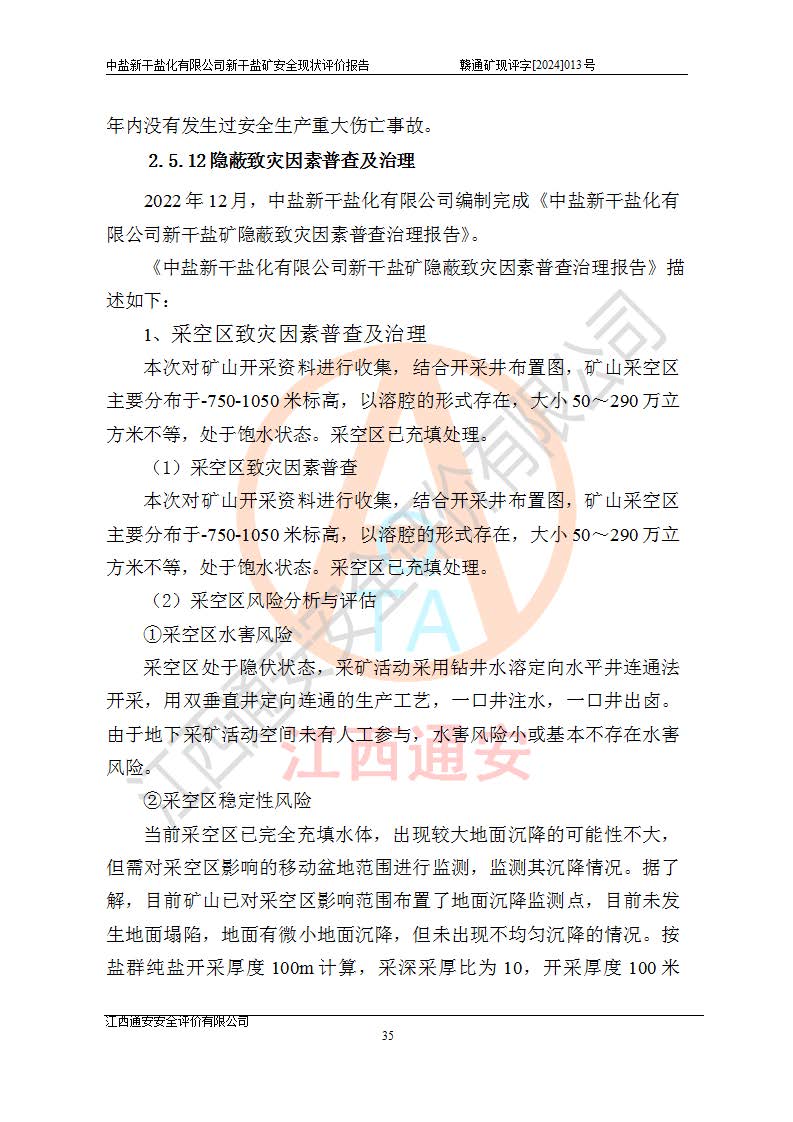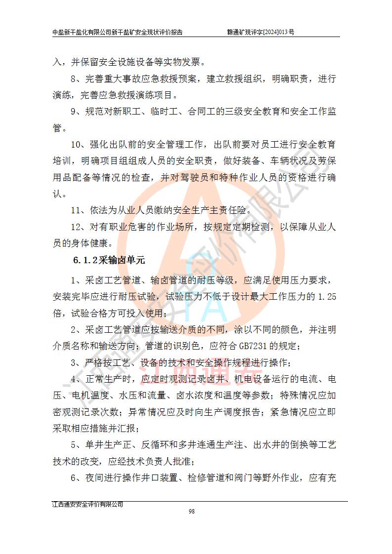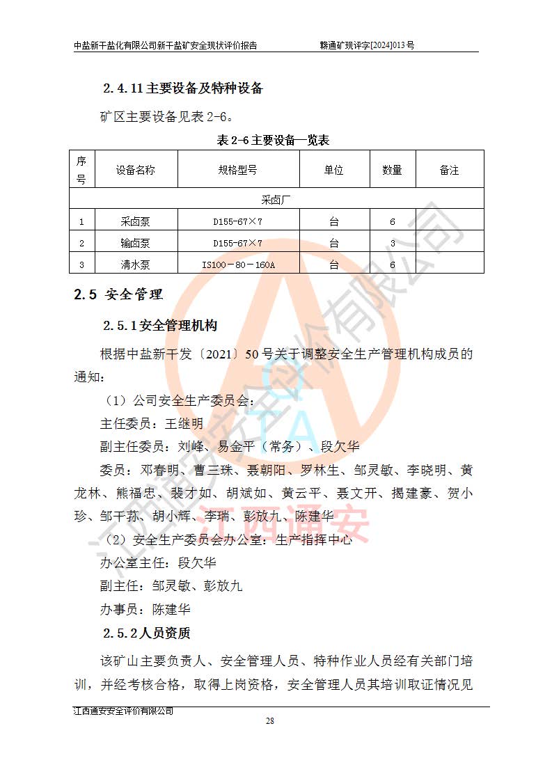 報(bào)告名稱 | 中鹽新干鹽化有限公司新干鹽礦安全現(xiàn)狀評(píng)價(jià)報(bào)告 | |||||
