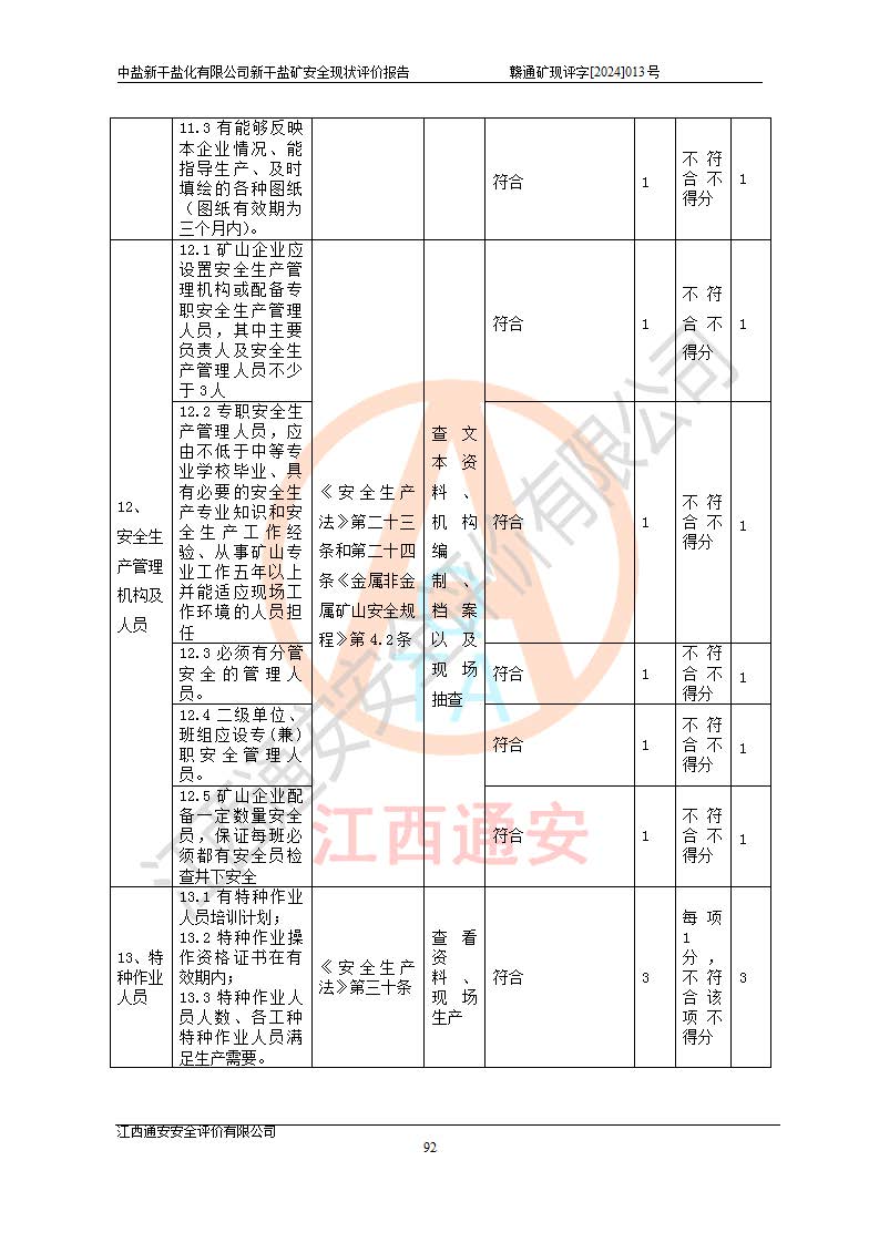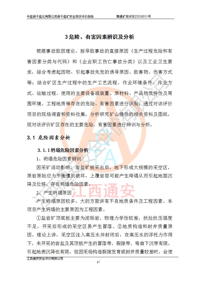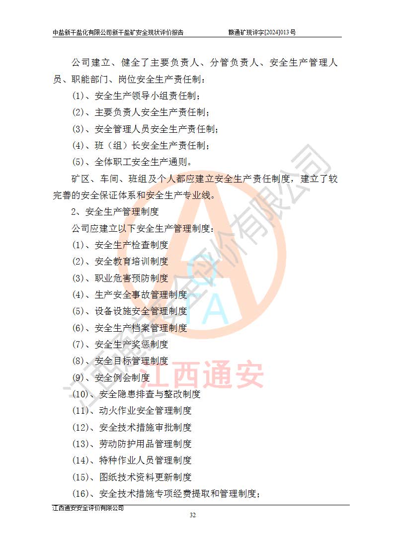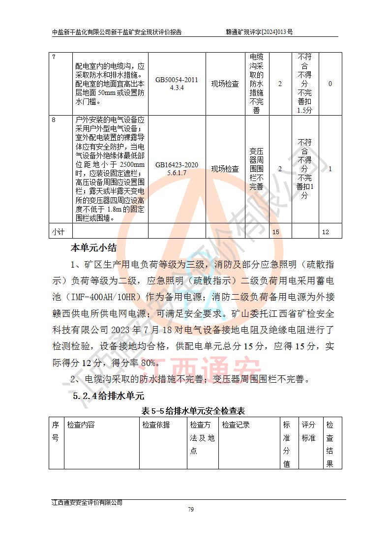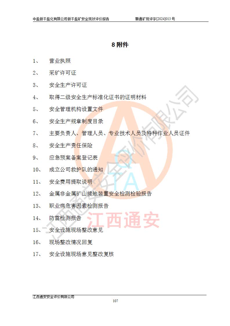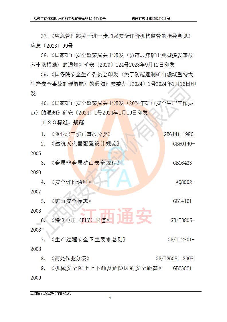 報(bào)告名稱 | 中鹽新干鹽化有限公司新干鹽礦安全現(xiàn)狀評(píng)價(jià)報(bào)告 | |||||