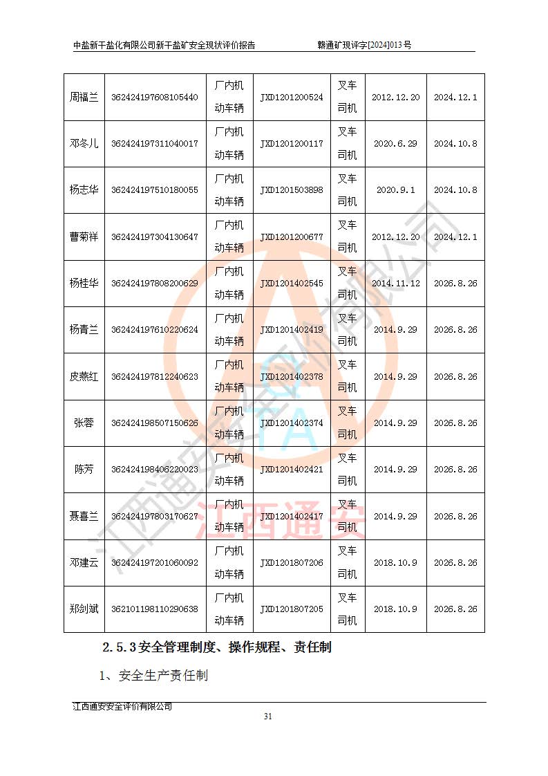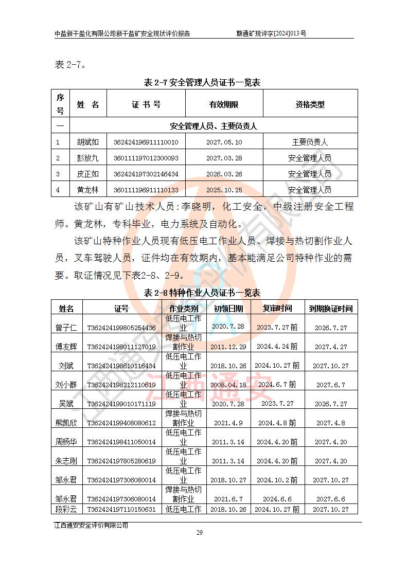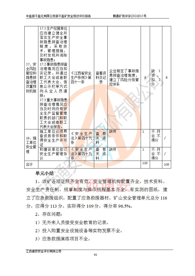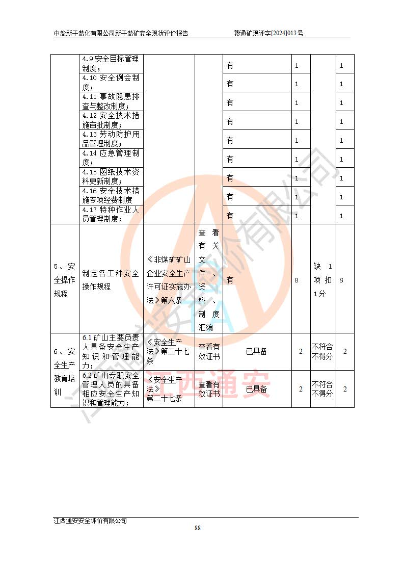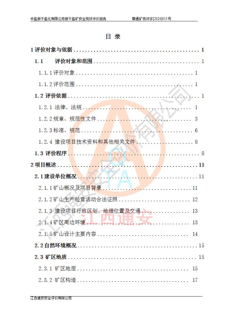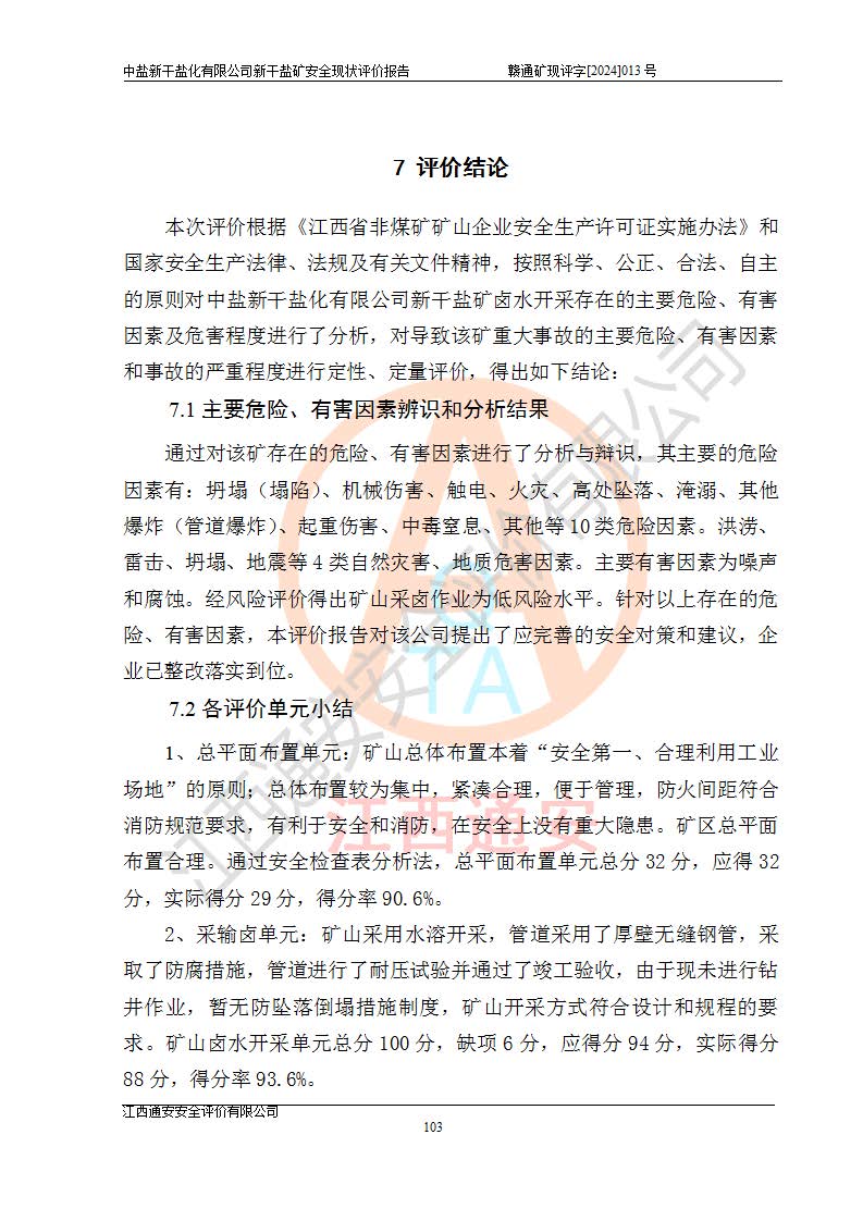 報(bào)告名稱 | 中鹽新干鹽化有限公司新干鹽礦安全現(xiàn)狀評(píng)價(jià)報(bào)告 | |||||