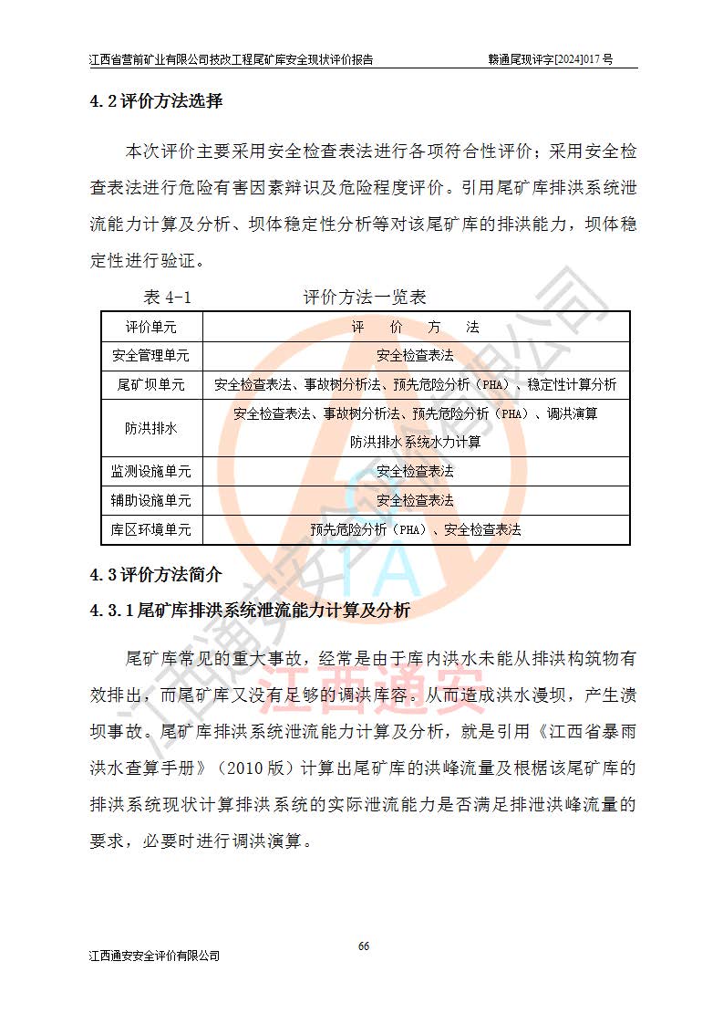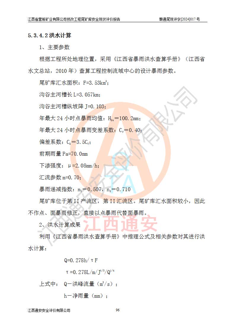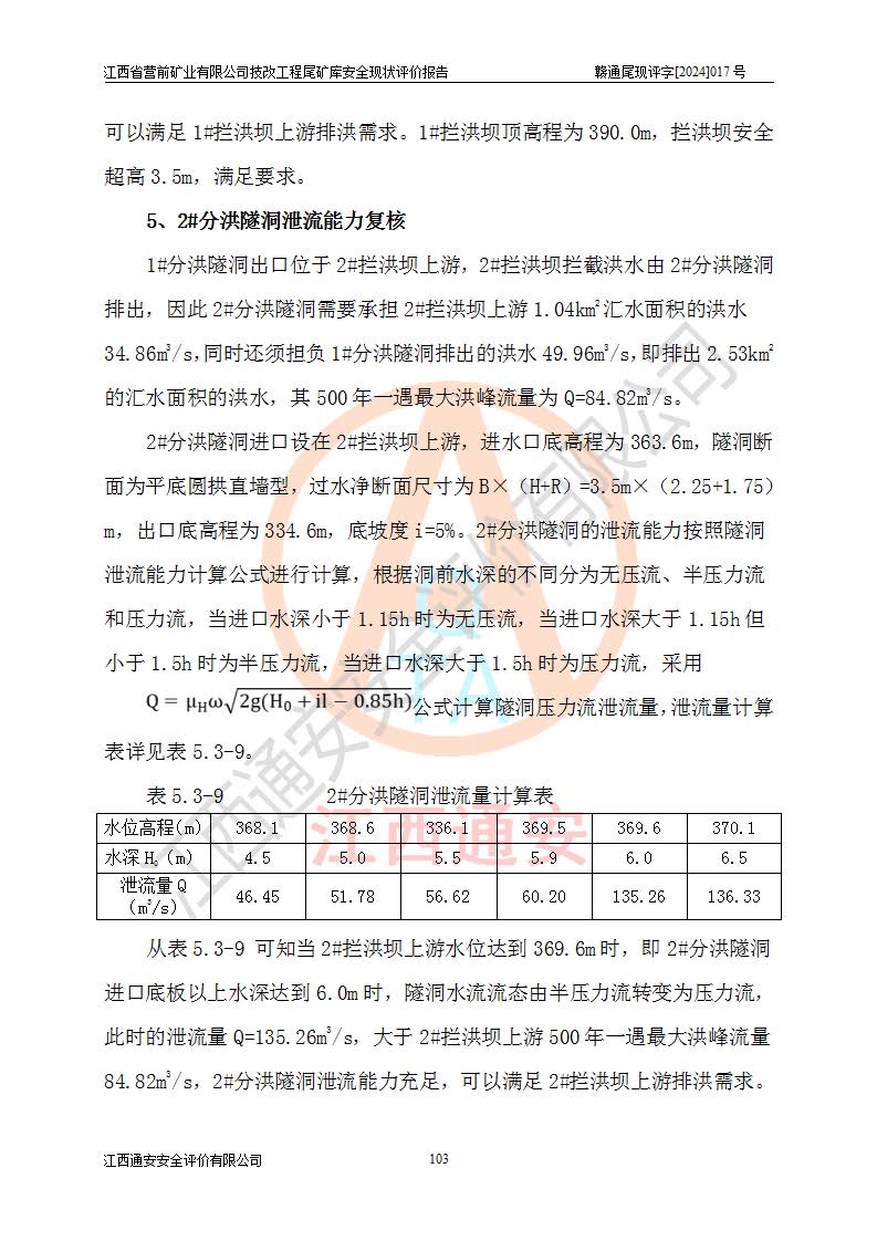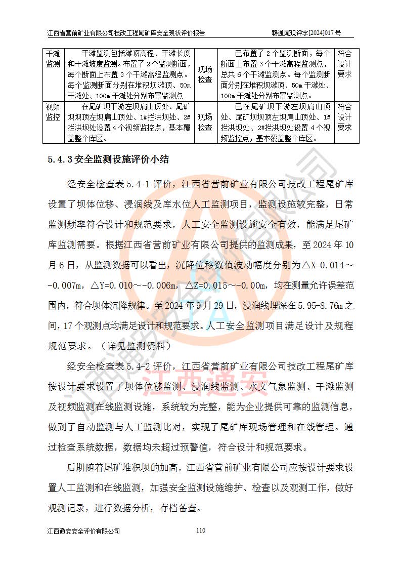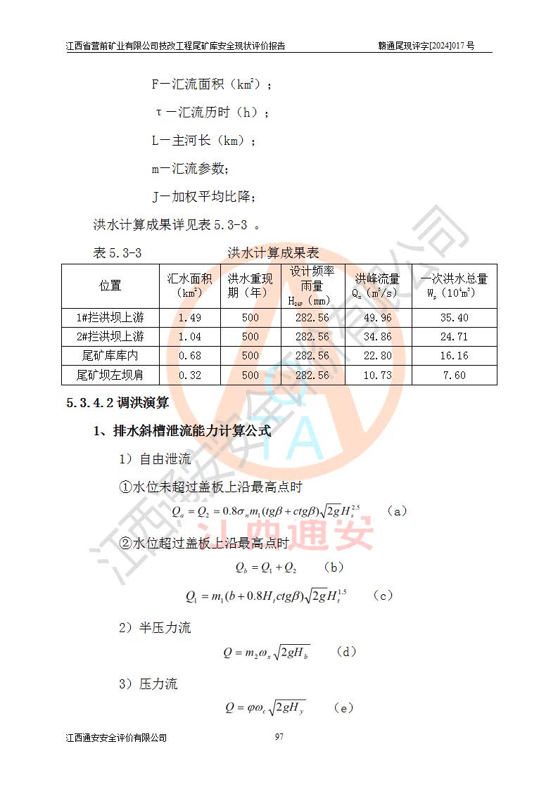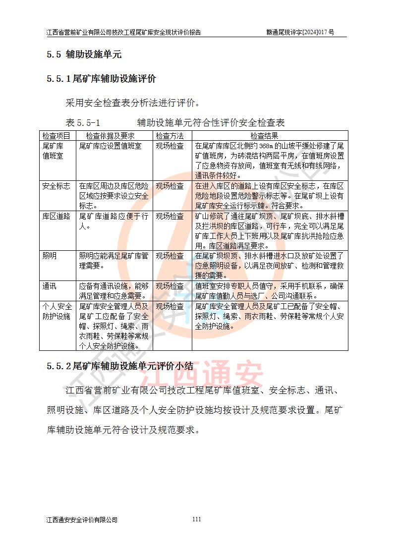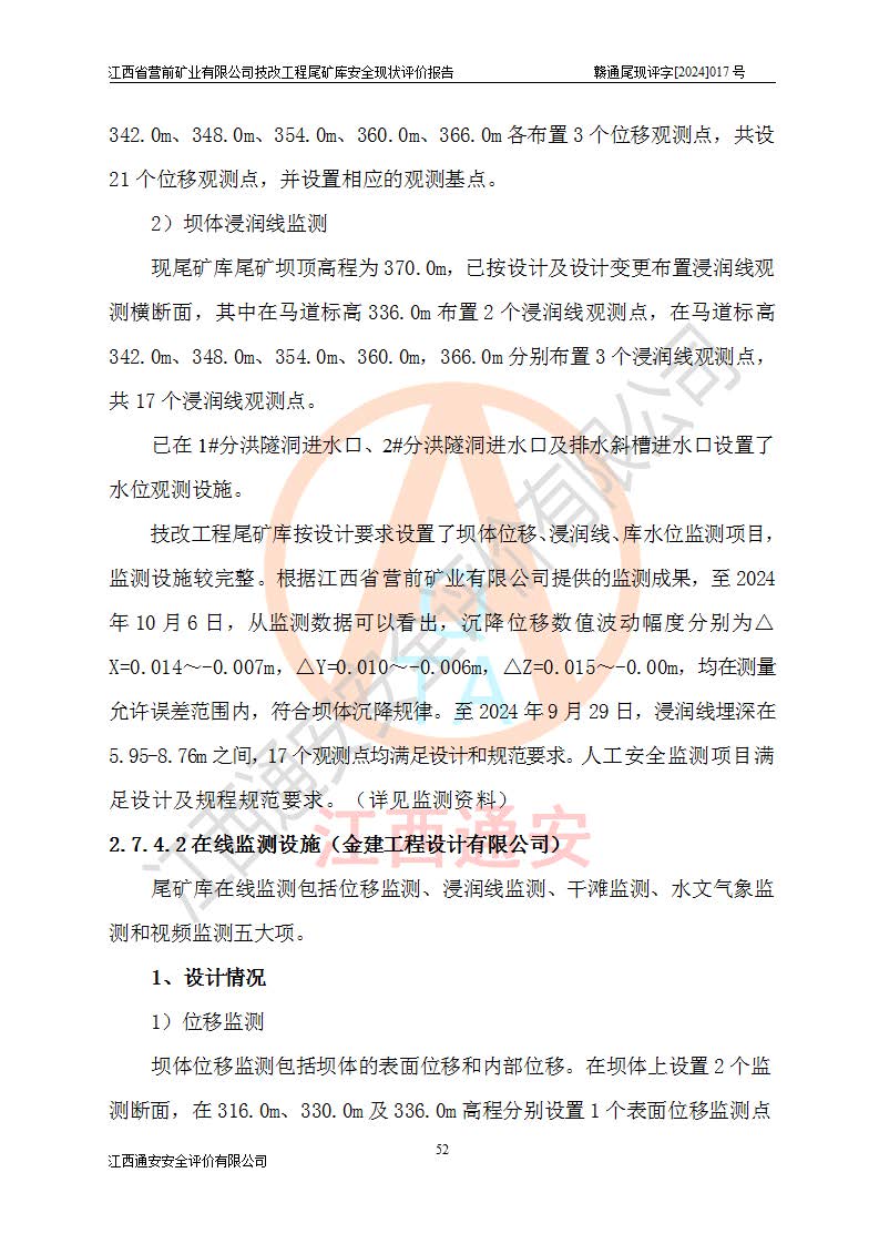 江西省營(yíng)前礦業(yè)有限公司于2003年12月16日成立,位于贛州市上猶縣營(yíng)前鎮(zhèn)焦里村境內(nèi),公司注冊(cè)資本10000萬元,法定**人陳雅博,礦區(qū)地理坐標(biāo):東經(jīng)114°18′30″~114°19′00″,北緯25°52′35″~25°53′47″。公司經(jīng)營(yíng)范圍包括:鉛礦、鋅、鎢、銀地下開采、銷售。 江西省營(yíng)前礦業(yè)有限公司技改工程尾礦庫位于焦里鎢銀鉛鋅礦區(qū),處于上猶縣水巖鄉(xiāng)井子村坑尾自然村境內(nèi),山谷型尾礦庫,溝谷呈“V”字形展布,技改工程尾礦庫原由福建省冶金工業(yè)設(shè)計(jì)院設(shè)計(jì),后由金建工程設(shè)計(jì)有限公司對(duì)該尾礦庫進(jìn)行了加高擴(kuò)容設(shè)計(jì),加高擴(kuò)容后總庫容503.14萬m3,壩高75.0m,為三等庫。尾礦庫主要由尾礦壩、庫外分洪系統(tǒng)(1#攔洪壩--1#分洪隧洞和2#攔洪壩--2#分洪隧洞--排水陡槽--消力池),庫內(nèi)排洪排水系統(tǒng)(排水斜槽—連接井—排水涵洞—排水隧洞—排水陡槽—消力池)等組成,尾礦壩壩型為初期壩+上游式堆積壩。 江西省營(yíng)前礦業(yè)有限公司技改工程尾礦庫于2021年12月30日取得江西省應(yīng)急管理廳版發(fā)的安全生產(chǎn)許可證,證書編號(hào)(贛)FM安許證字(2016)M1692號(hào),有限期從2022年1月18日到2025年1月17日,為三年期。依照《非煤礦礦山企業(yè)安全生產(chǎn)許可證延期換證工作》的通知,根據(jù)***《安全生產(chǎn)許可證條例》、《江西省安全生產(chǎn)條例》、《非煤礦山安全生產(chǎn)許可證實(shí)施辦法》、《江西省非煤礦礦山企業(yè)安全生產(chǎn)許可證辦法》規(guī)定的要求,受江西省營(yíng)前礦業(yè)有限公司委托,我公司承擔(dān)了技改工程尾礦庫延期換證安全現(xiàn)狀評(píng)價(jià)工作。 |