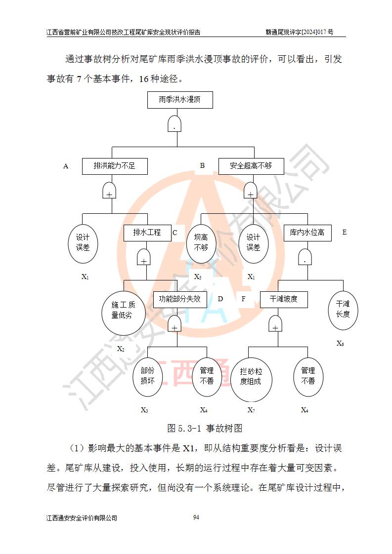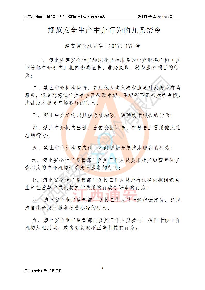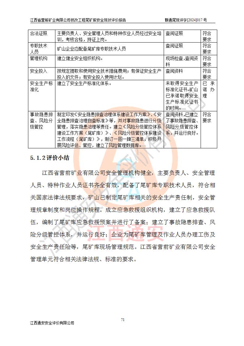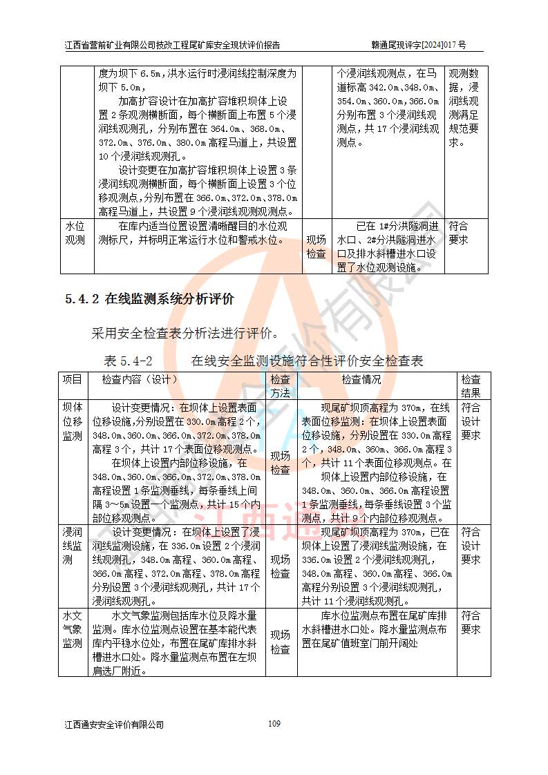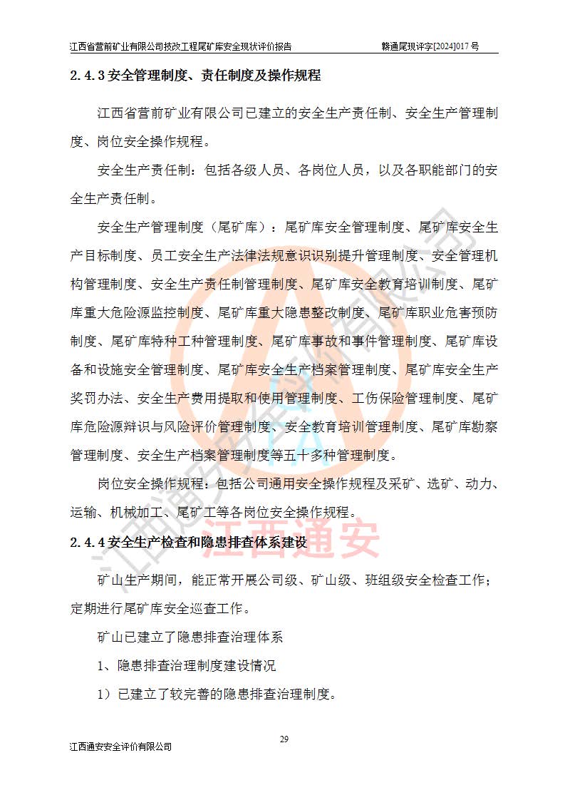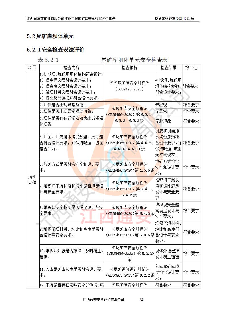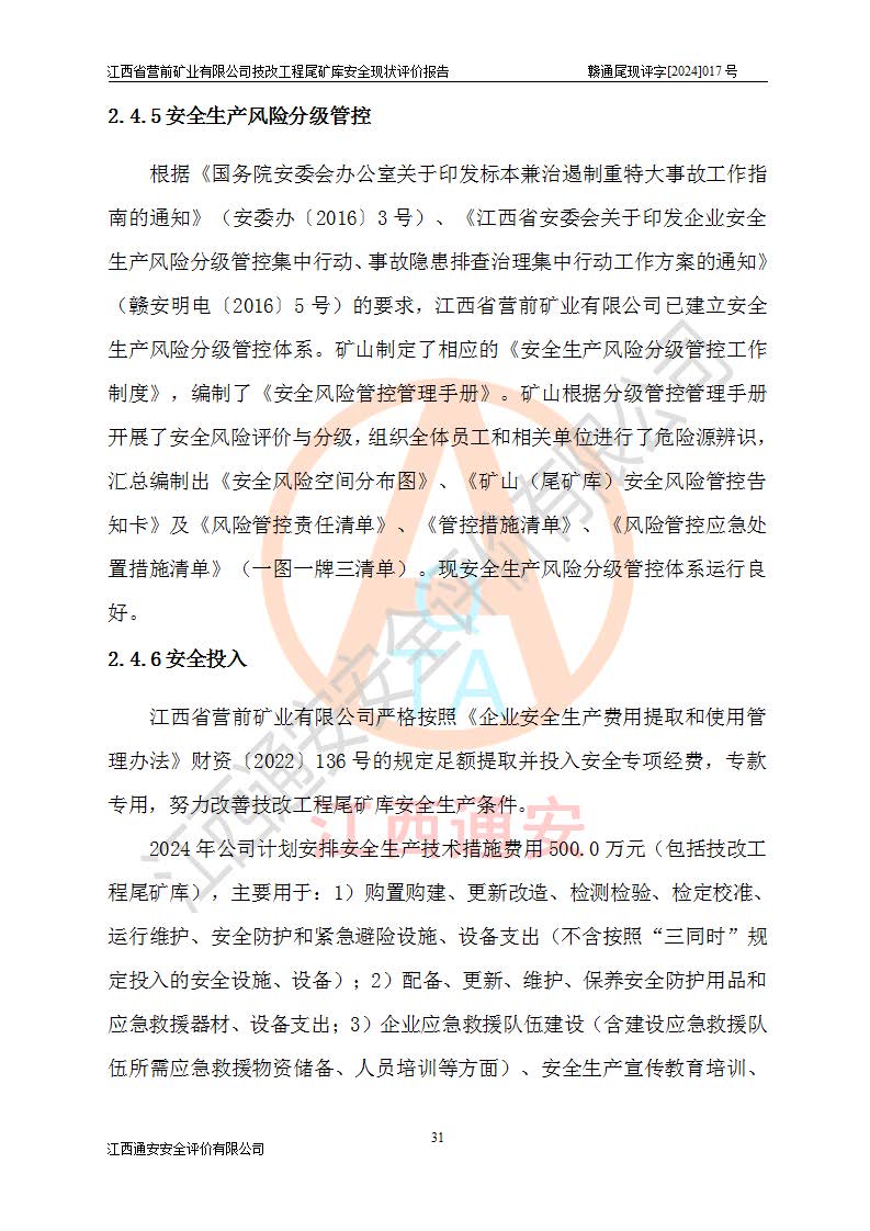 江西省營(yíng)前礦業(yè)有限公司于2003年12月16日成立,位于贛州市上猶縣營(yíng)前鎮(zhèn)焦里村境內(nèi),公司注冊(cè)資本10000萬元,法定**人陳雅博,礦區(qū)地理坐標(biāo):東經(jīng)114°18′30″~114°19′00″,北緯25°52′35″~25°53′47″。公司經(jīng)營(yíng)范圍包括:鉛礦、鋅、鎢、銀地下開采、銷售。 江西省營(yíng)前礦業(yè)有限公司技改工程尾礦庫位于焦里鎢銀鉛鋅礦區(qū),處于上猶縣水巖鄉(xiāng)井子村坑尾自然村境內(nèi),山谷型尾礦庫,溝谷呈“V”字形展布,技改工程尾礦庫原由福建省冶金工業(yè)設(shè)計(jì)院設(shè)計(jì),后由金建工程設(shè)計(jì)有限公司對(duì)該尾礦庫進(jìn)行了加高擴(kuò)容設(shè)計(jì),加高擴(kuò)容后總庫容503.14萬m3,壩高75.0m,為三等庫。尾礦庫主要由尾礦壩、庫外分洪系統(tǒng)(1#攔洪壩--1#分洪隧洞和2#攔洪壩--2#分洪隧洞--排水陡槽--消力池),庫內(nèi)排洪排水系統(tǒng)(排水斜槽—連接井—排水涵洞—排水隧洞—排水陡槽—消力池)等組成,尾礦壩壩型為初期壩+上游式堆積壩。 江西省營(yíng)前礦業(yè)有限公司技改工程尾礦庫于2021年12月30日取得江西省應(yīng)急管理廳版發(fā)的安全生產(chǎn)許可證,證書編號(hào)(贛)FM安許證字(2016)M1692號(hào),有限期從2022年1月18日到2025年1月17日,為三年期。依照《非煤礦礦山企業(yè)安全生產(chǎn)許可證延期換證工作》的通知,根據(jù)***《安全生產(chǎn)許可證條例》、《江西省安全生產(chǎn)條例》、《非煤礦山安全生產(chǎn)許可證實(shí)施辦法》、《江西省非煤礦礦山企業(yè)安全生產(chǎn)許可證辦法》規(guī)定的要求,受江西省營(yíng)前礦業(yè)有限公司委托,我公司承擔(dān)了技改工程尾礦庫延期換證安全現(xiàn)狀評(píng)價(jià)工作。 |