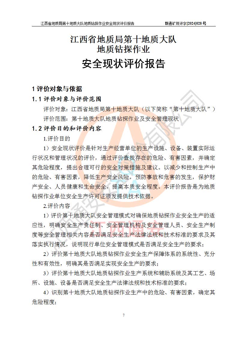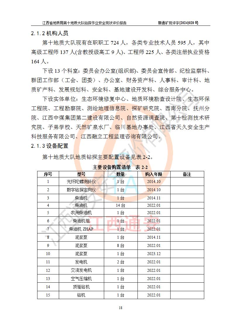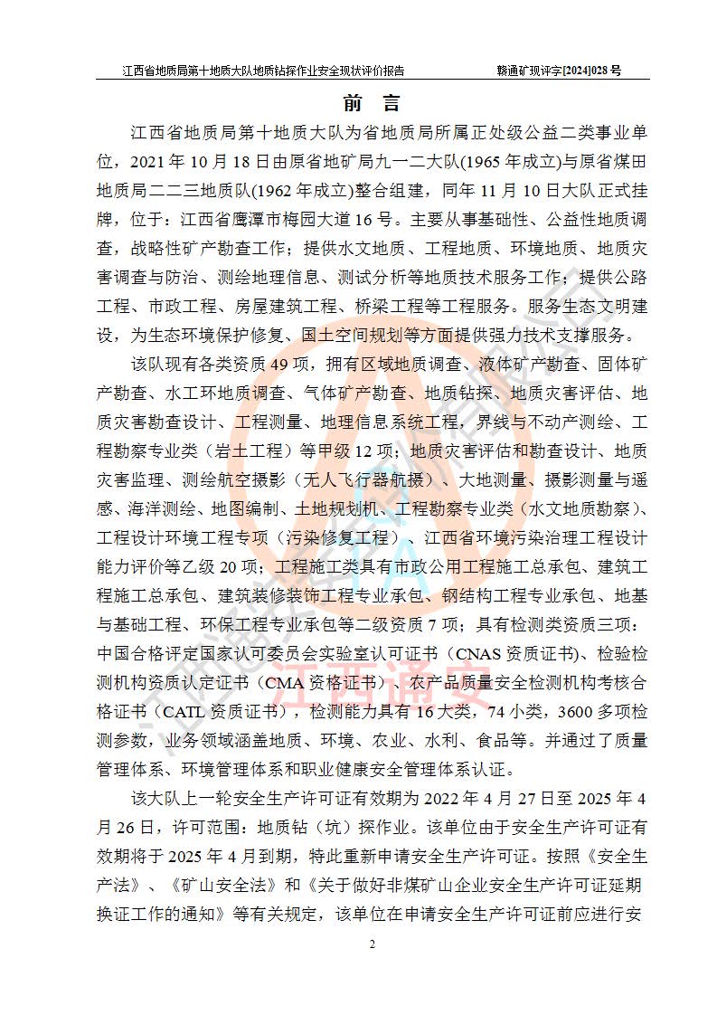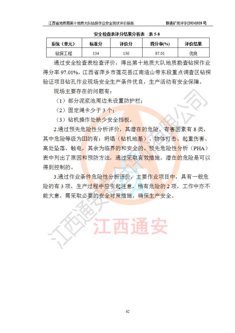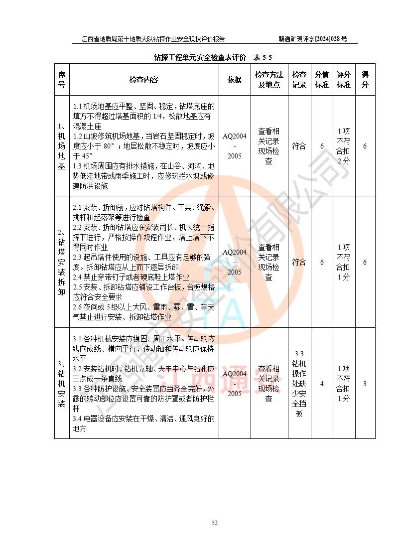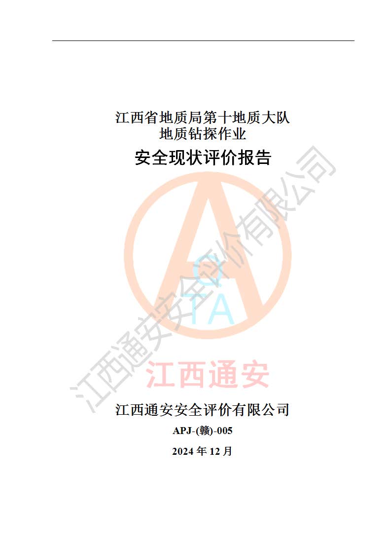 報(bào)告名稱 | 江西省地質(zhì)局第十地質(zhì)大隊(duì)地質(zhì)鉆探作業(yè)安全現(xiàn)狀評(píng)價(jià)報(bào)告 | |||||