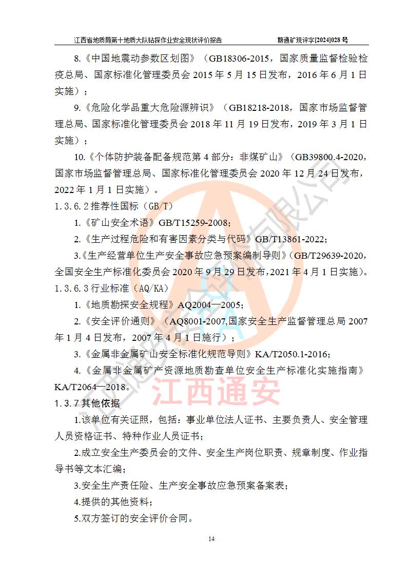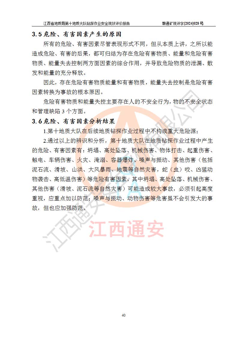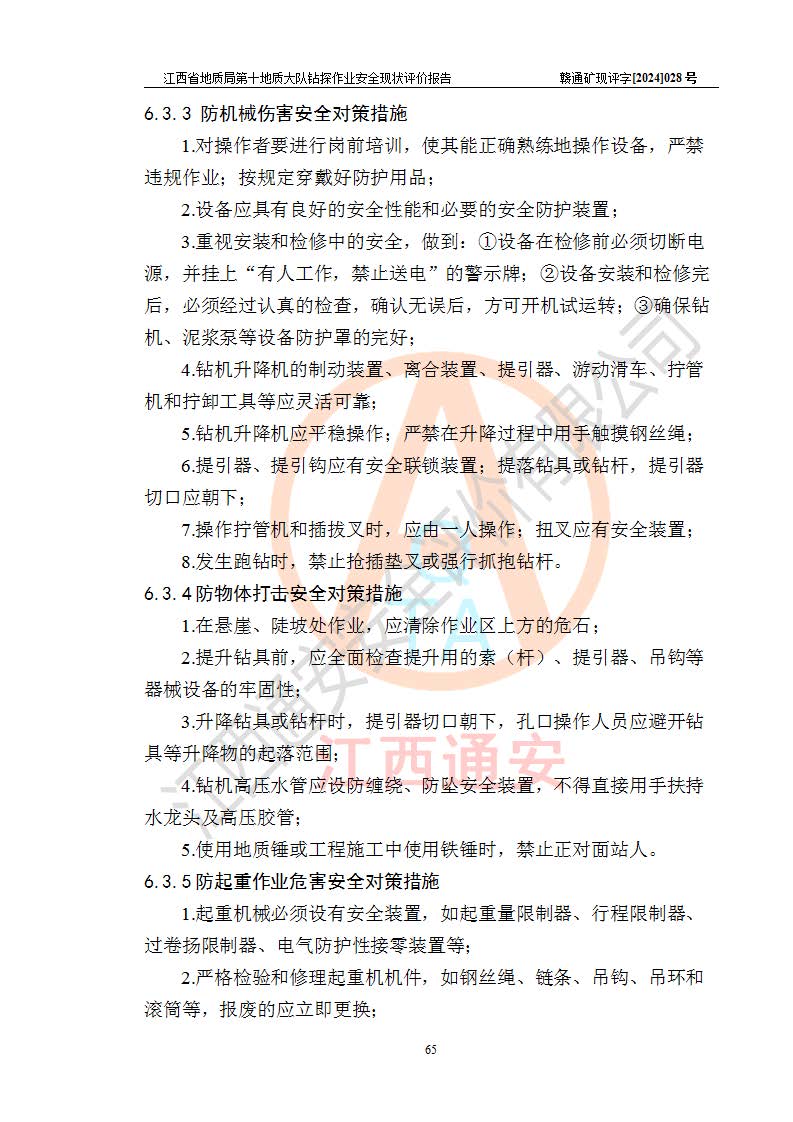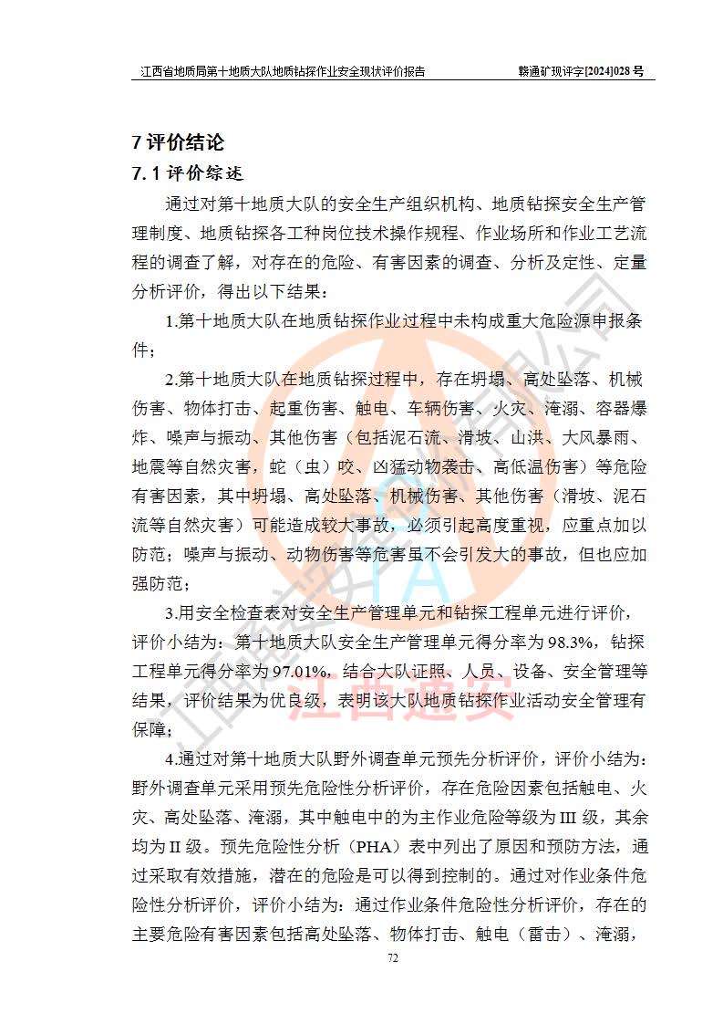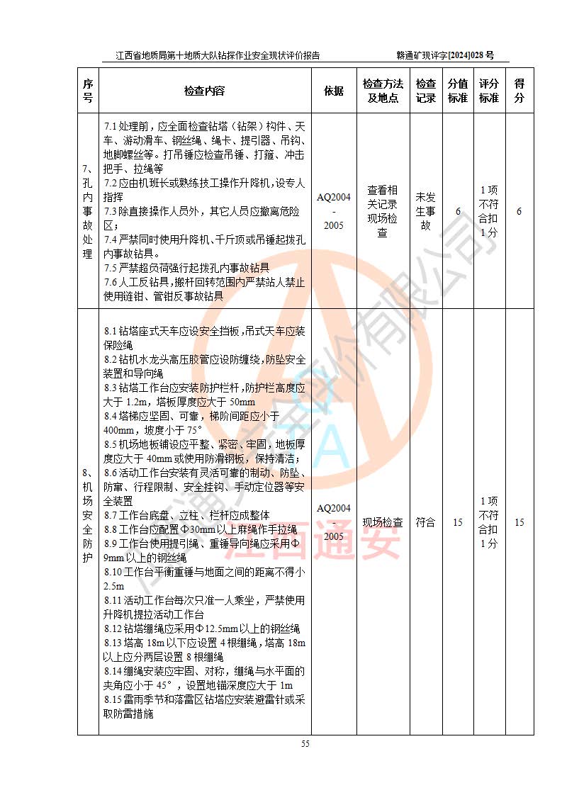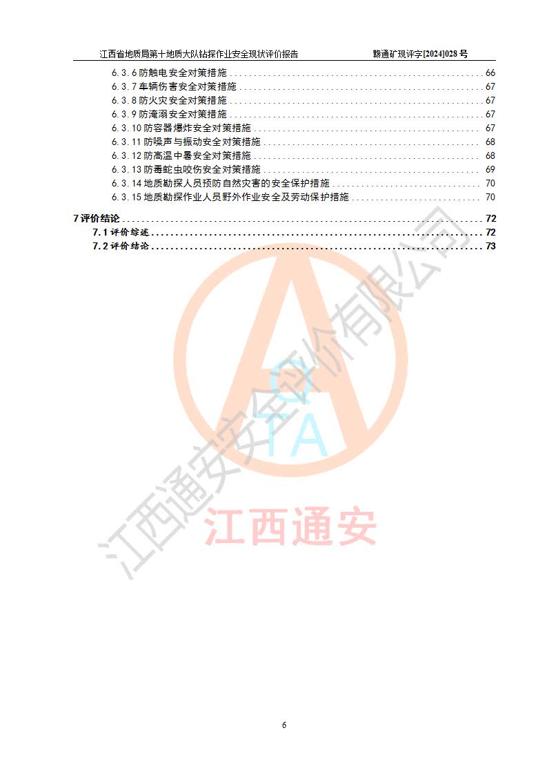 報(bào)告名稱 | 江西省地質(zhì)局第十地質(zhì)大隊(duì)地質(zhì)鉆探作業(yè)安全現(xiàn)狀評(píng)價(jià)報(bào)告 | |||||