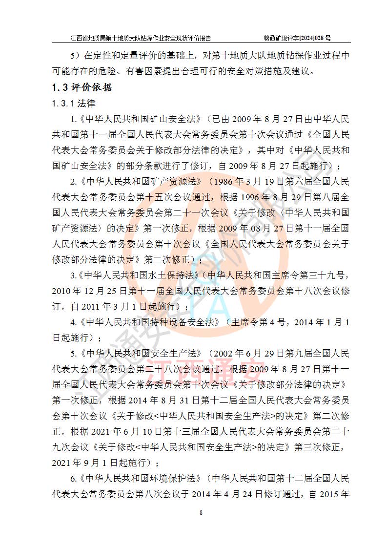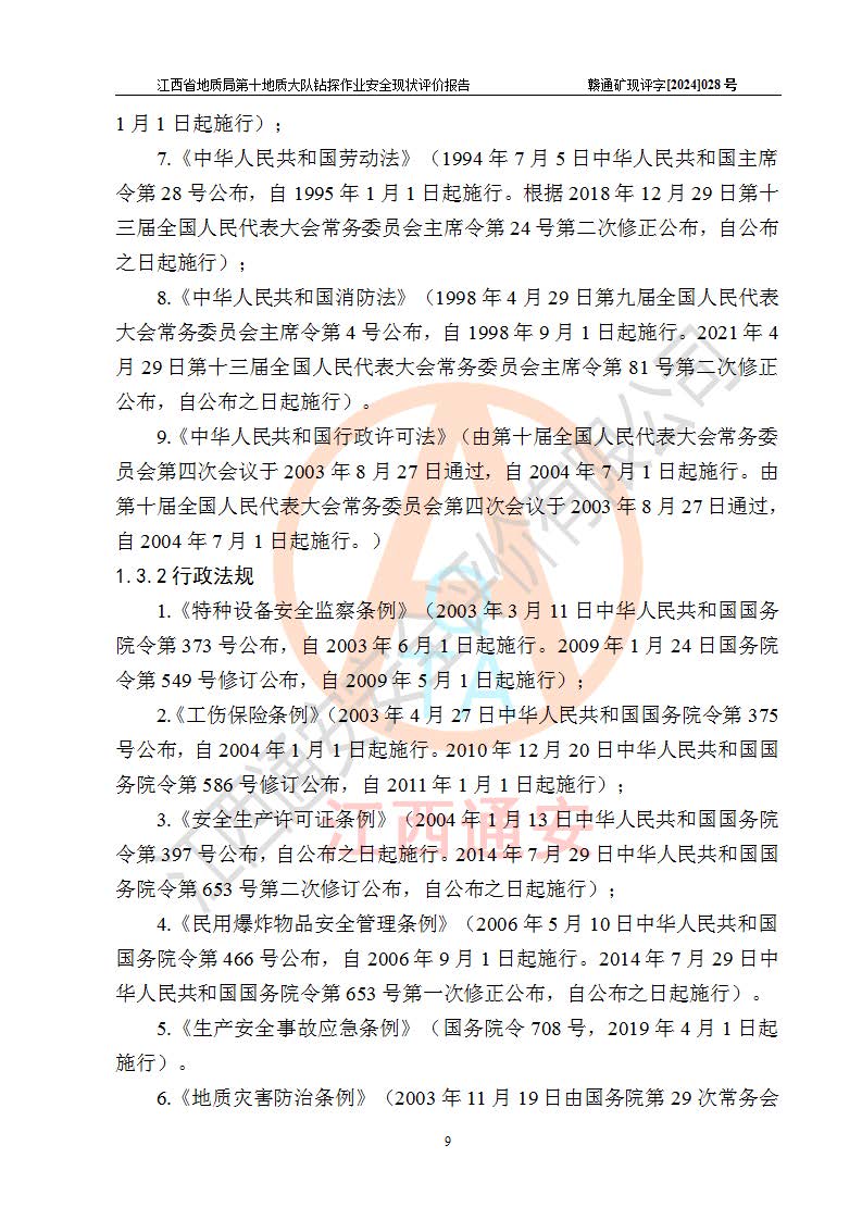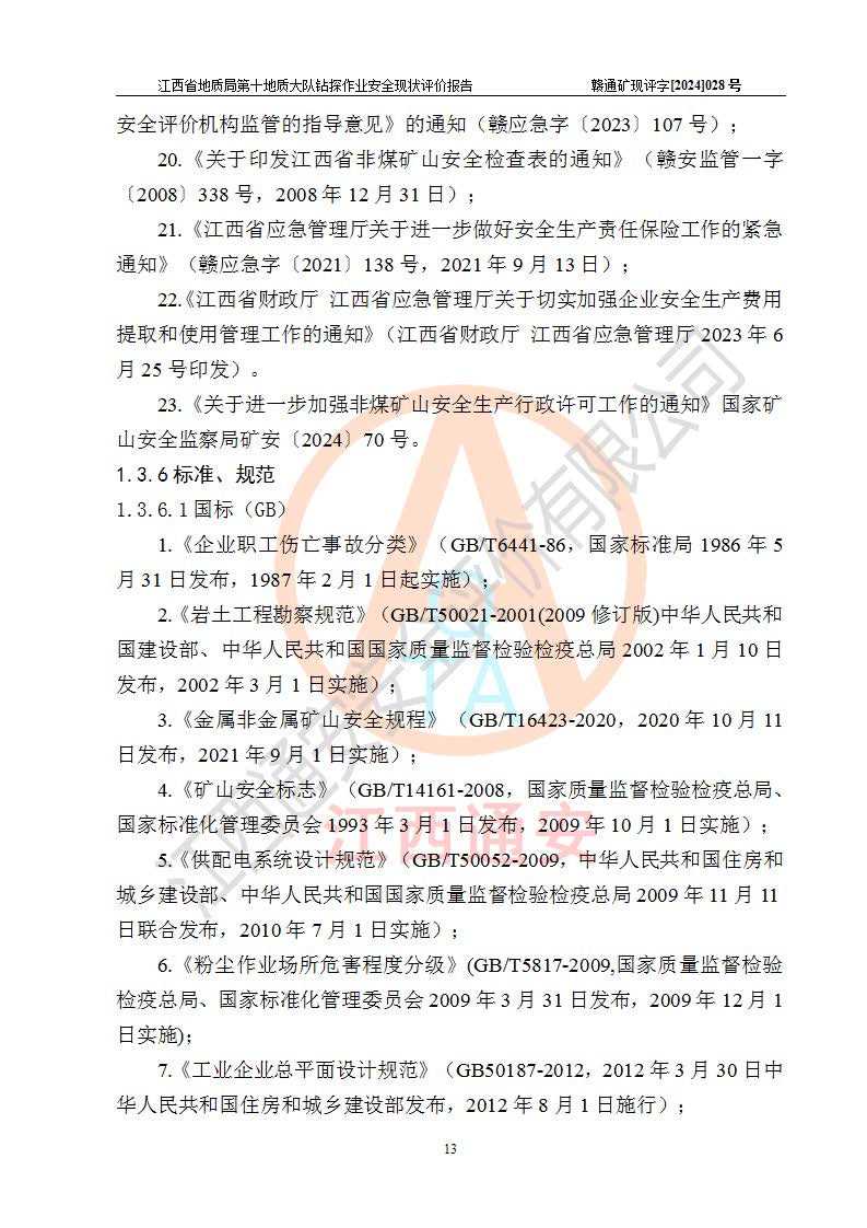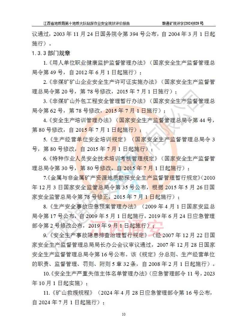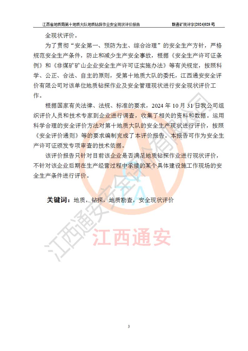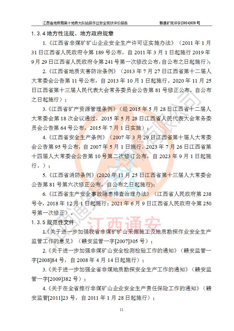 報(bào)告名稱 | 江西省地質(zhì)局第十地質(zhì)大隊(duì)地質(zhì)鉆探作業(yè)安全現(xiàn)狀評(píng)價(jià)報(bào)告 | |||||