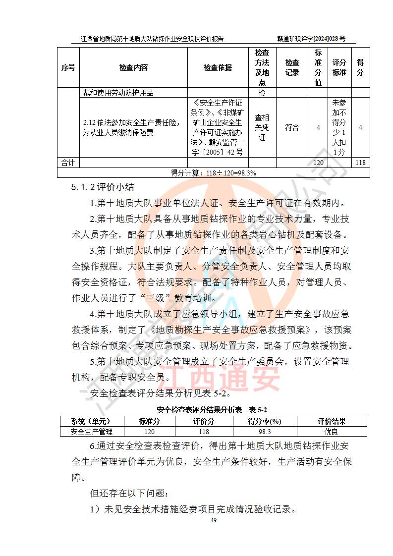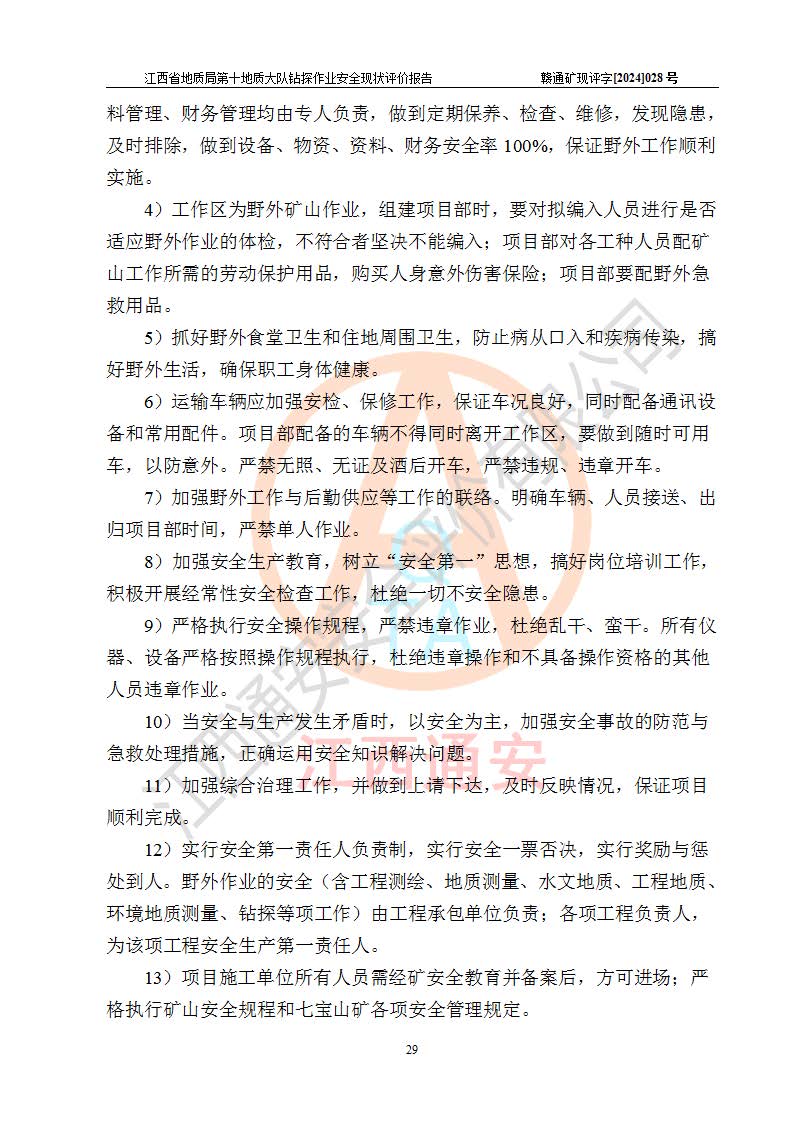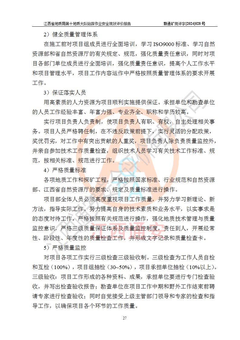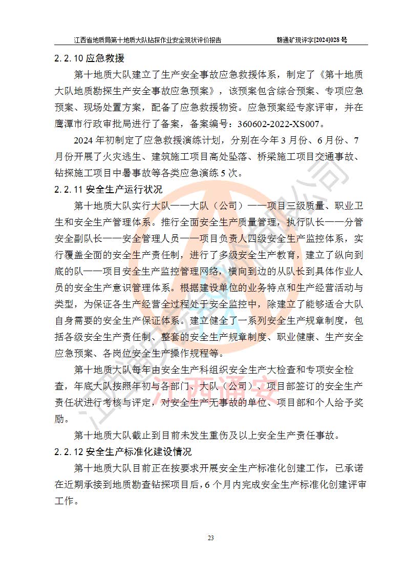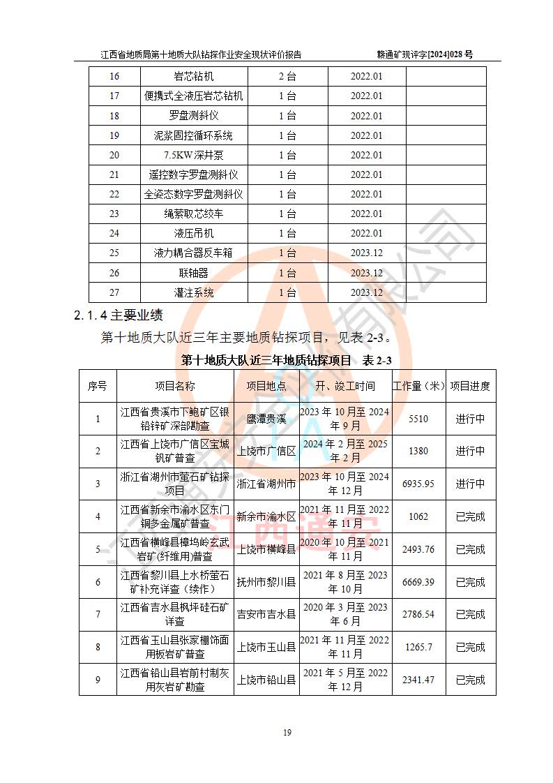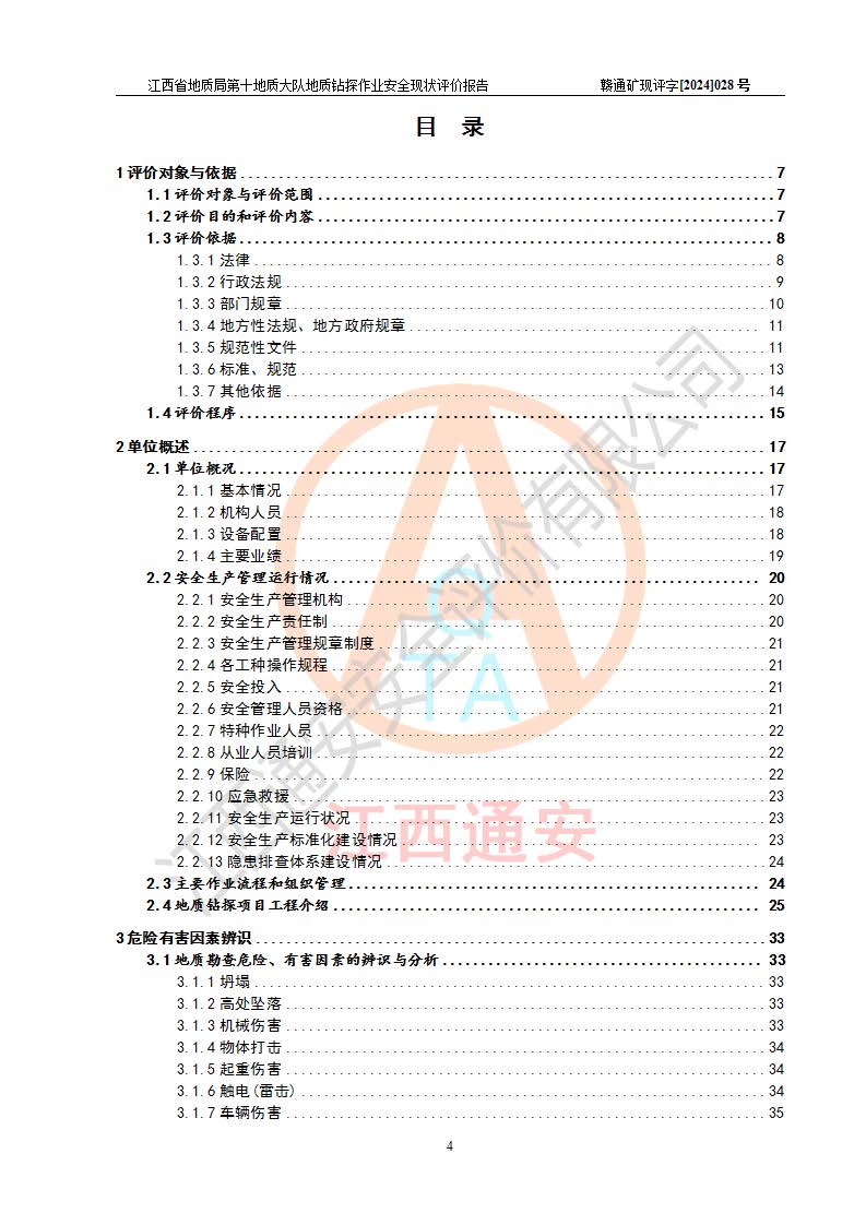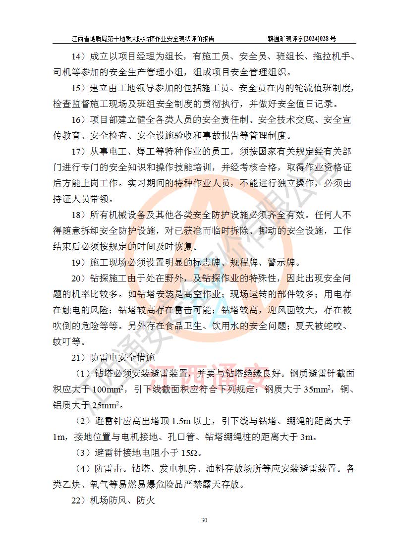 報(bào)告名稱 | 江西省地質(zhì)局第十地質(zhì)大隊(duì)地質(zhì)鉆探作業(yè)安全現(xiàn)狀評(píng)價(jià)報(bào)告 | |||||