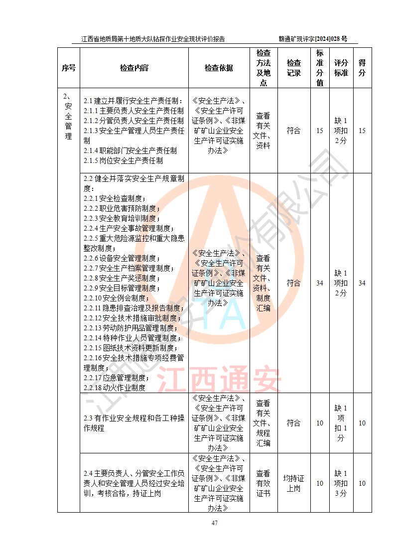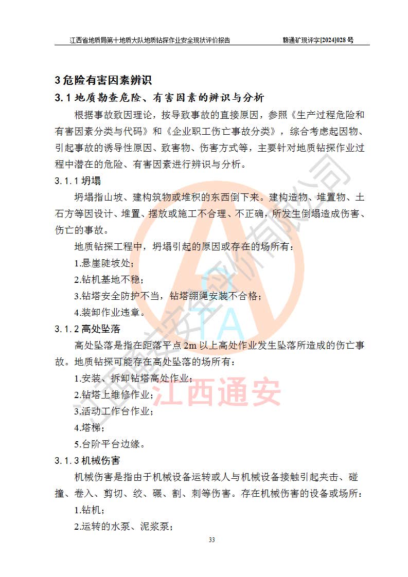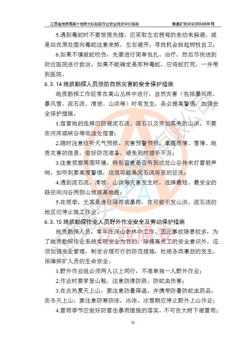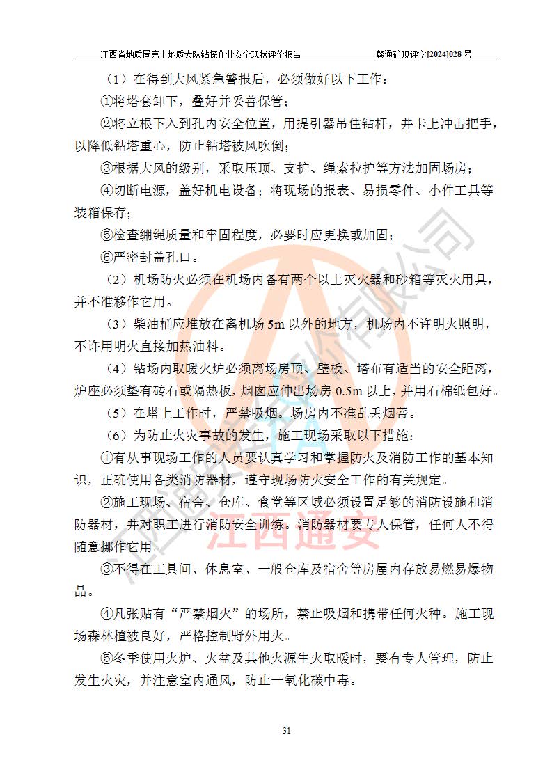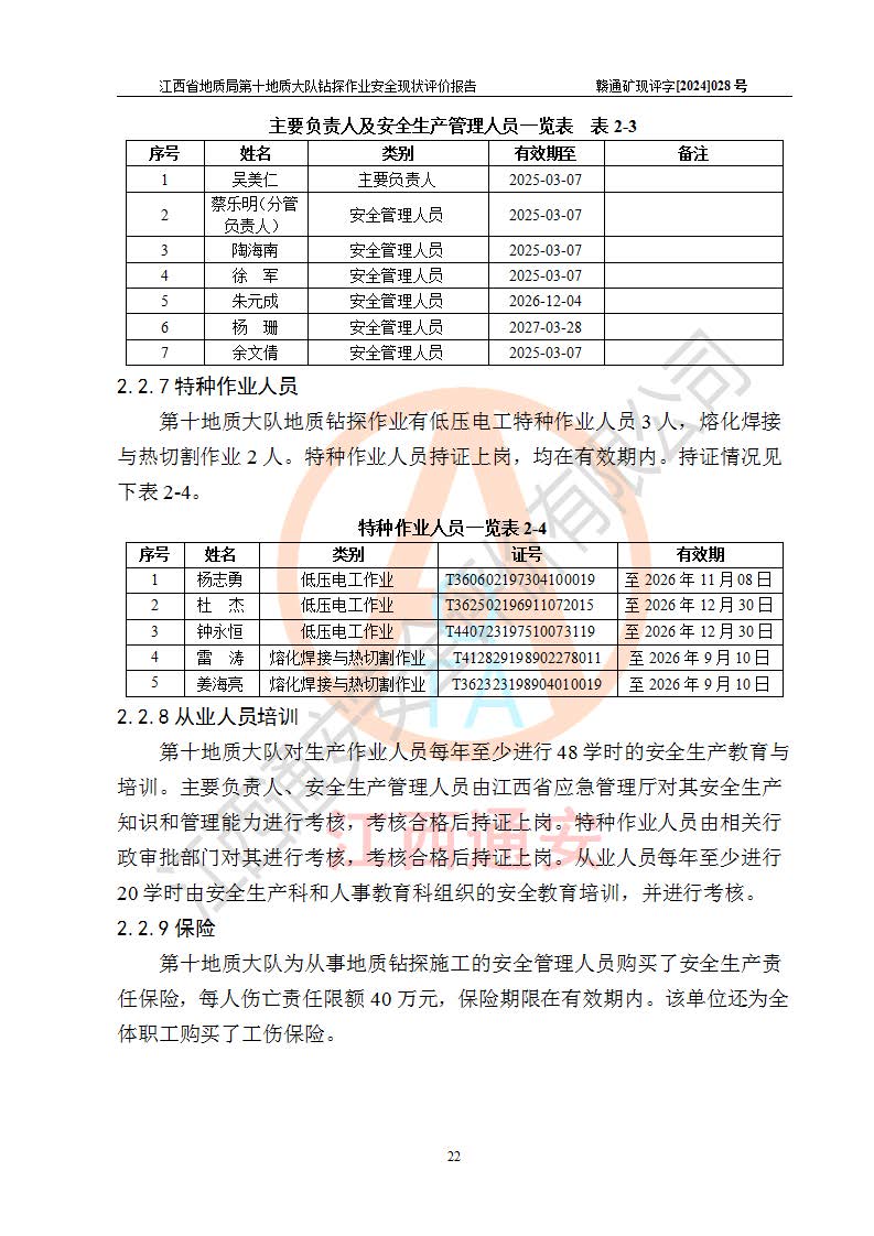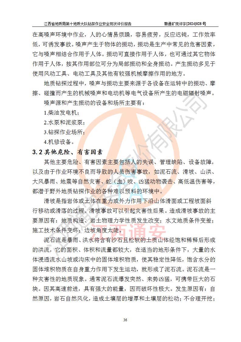 報(bào)告名稱 | 江西省地質(zhì)局第十地質(zhì)大隊(duì)地質(zhì)鉆探作業(yè)安全現(xiàn)狀評(píng)價(jià)報(bào)告 | |||||