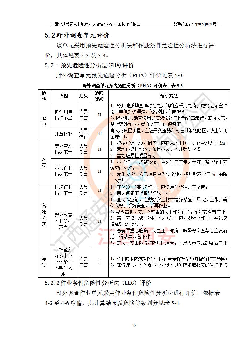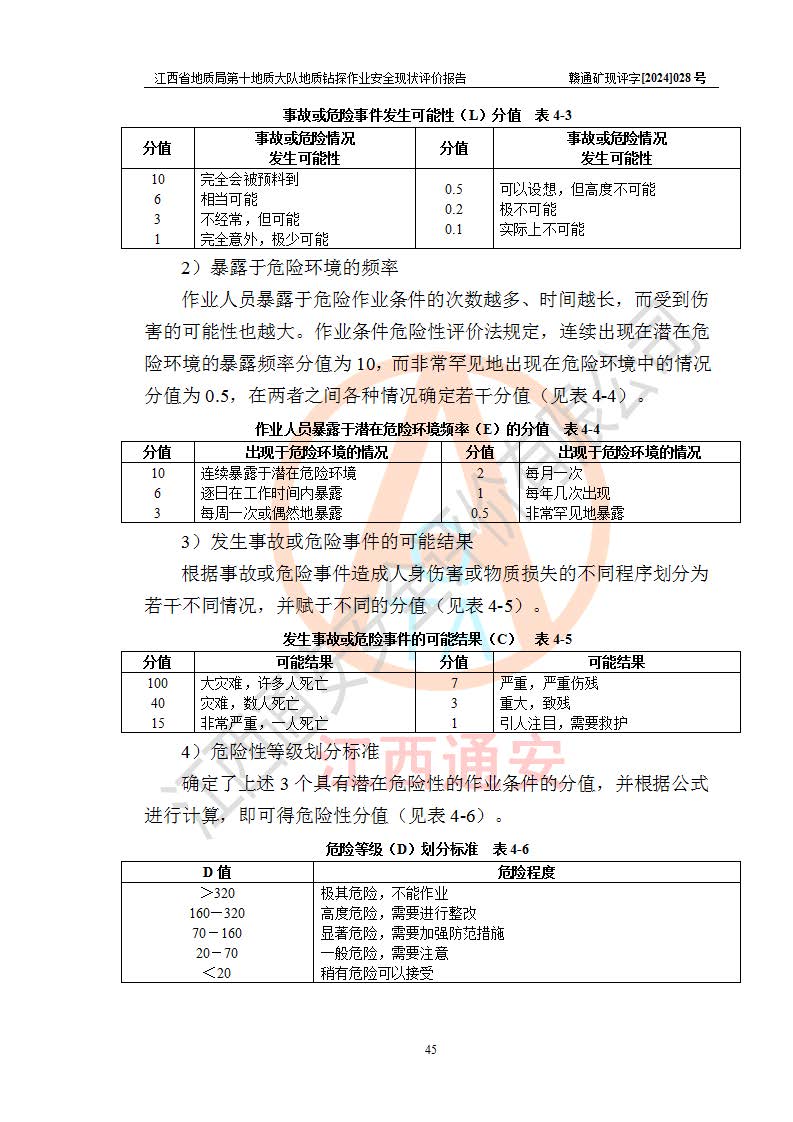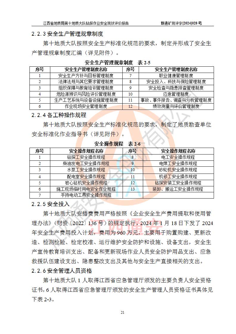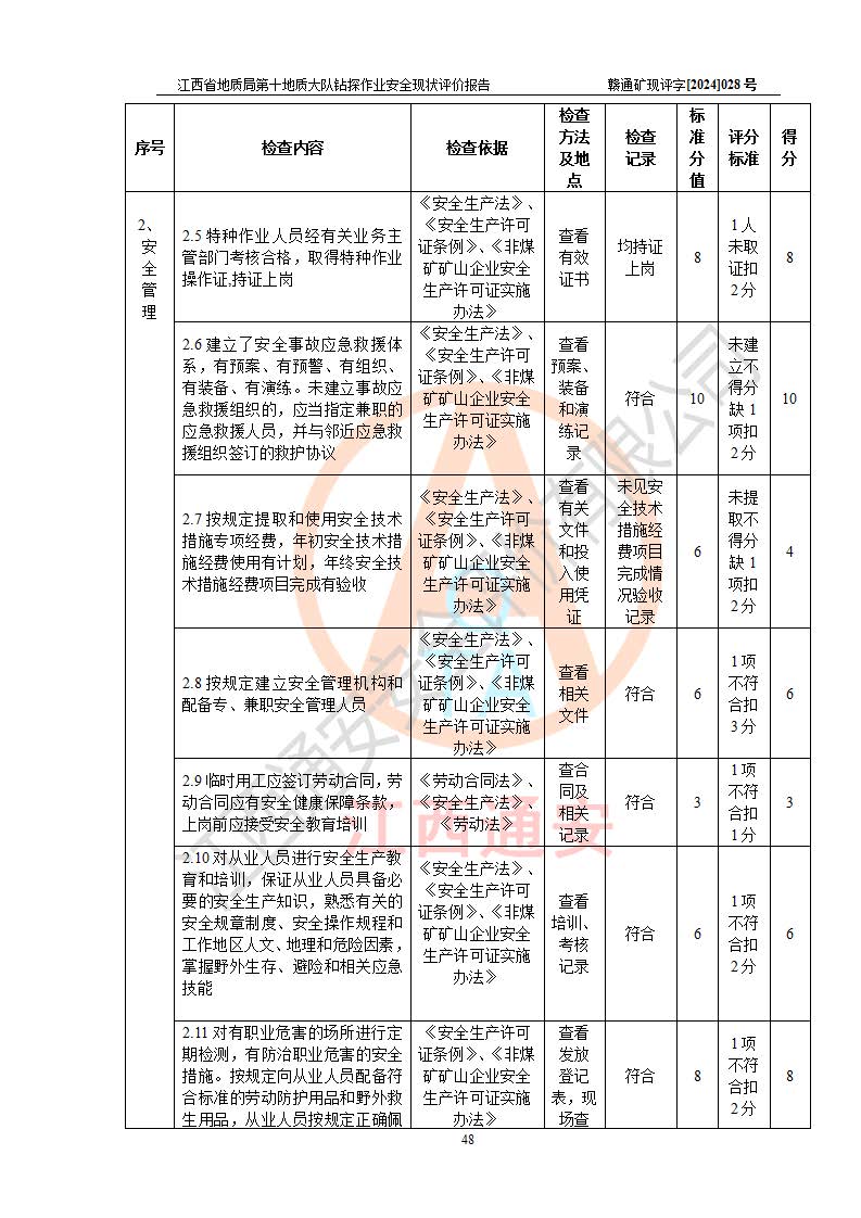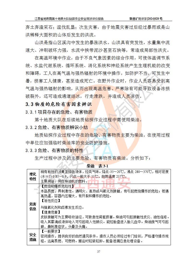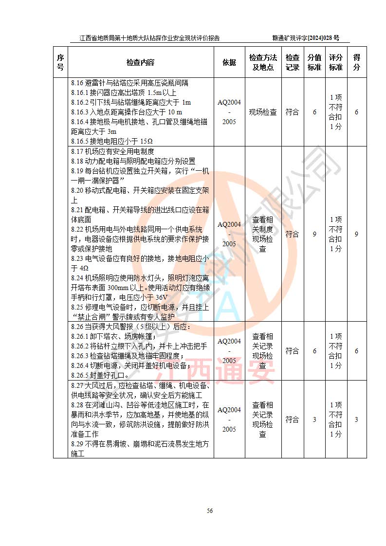 報(bào)告名稱 | 江西省地質(zhì)局第十地質(zhì)大隊(duì)地質(zhì)鉆探作業(yè)安全現(xiàn)狀評(píng)價(jià)報(bào)告 | |||||