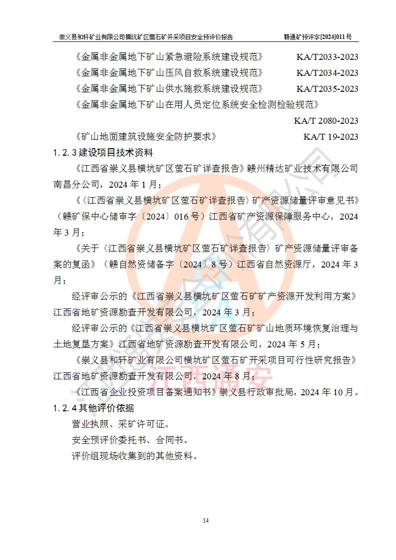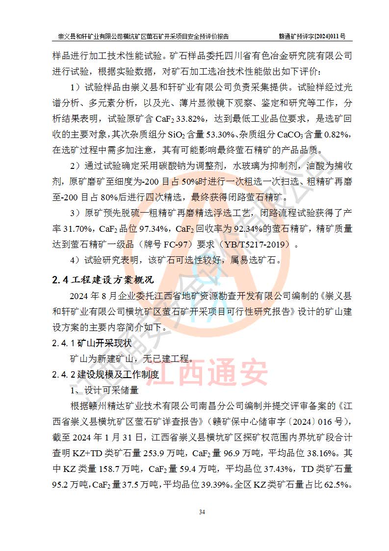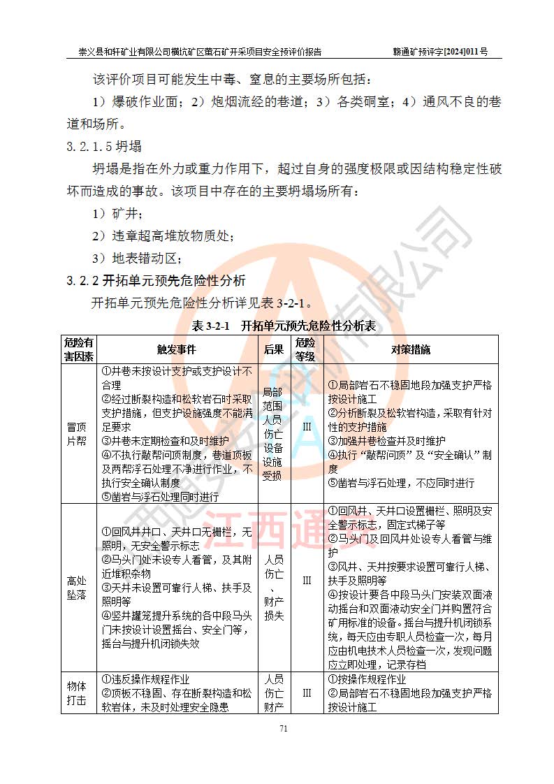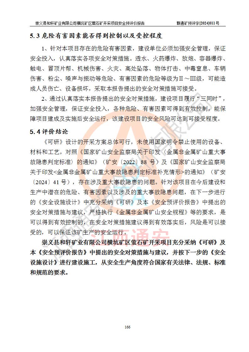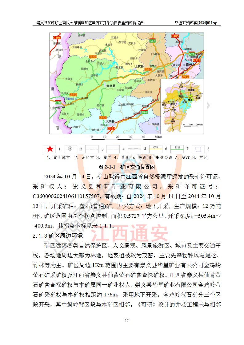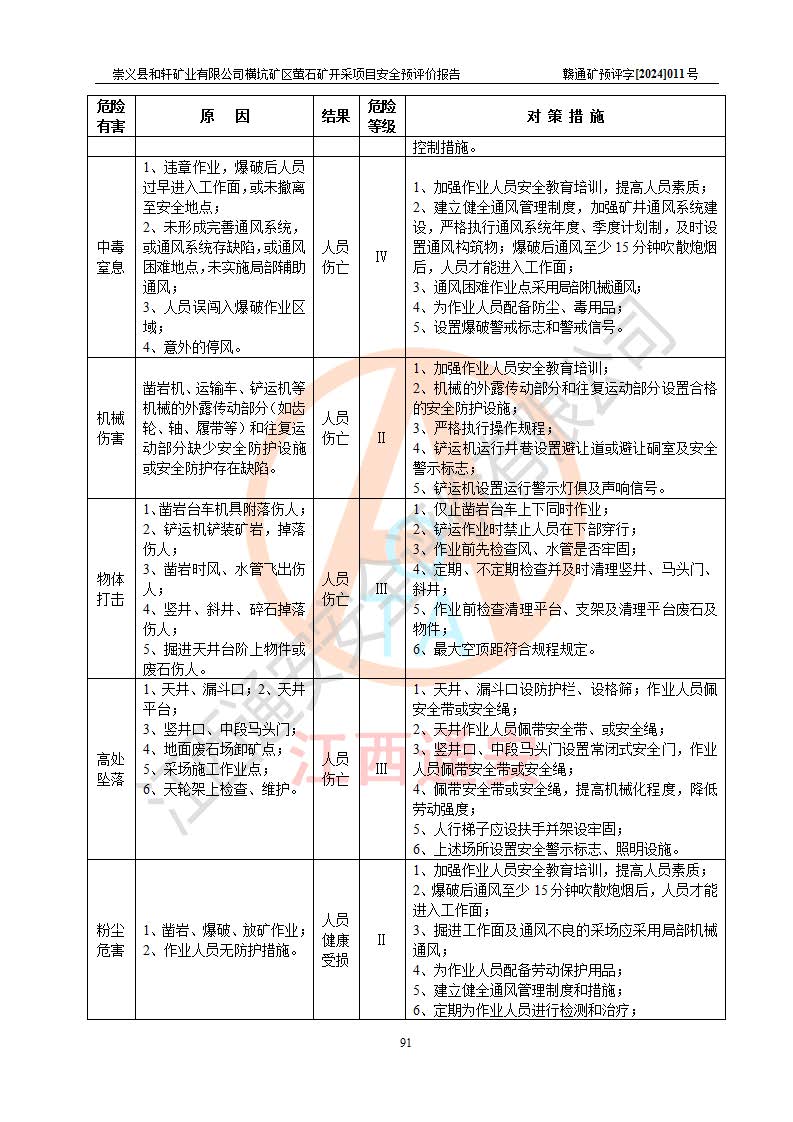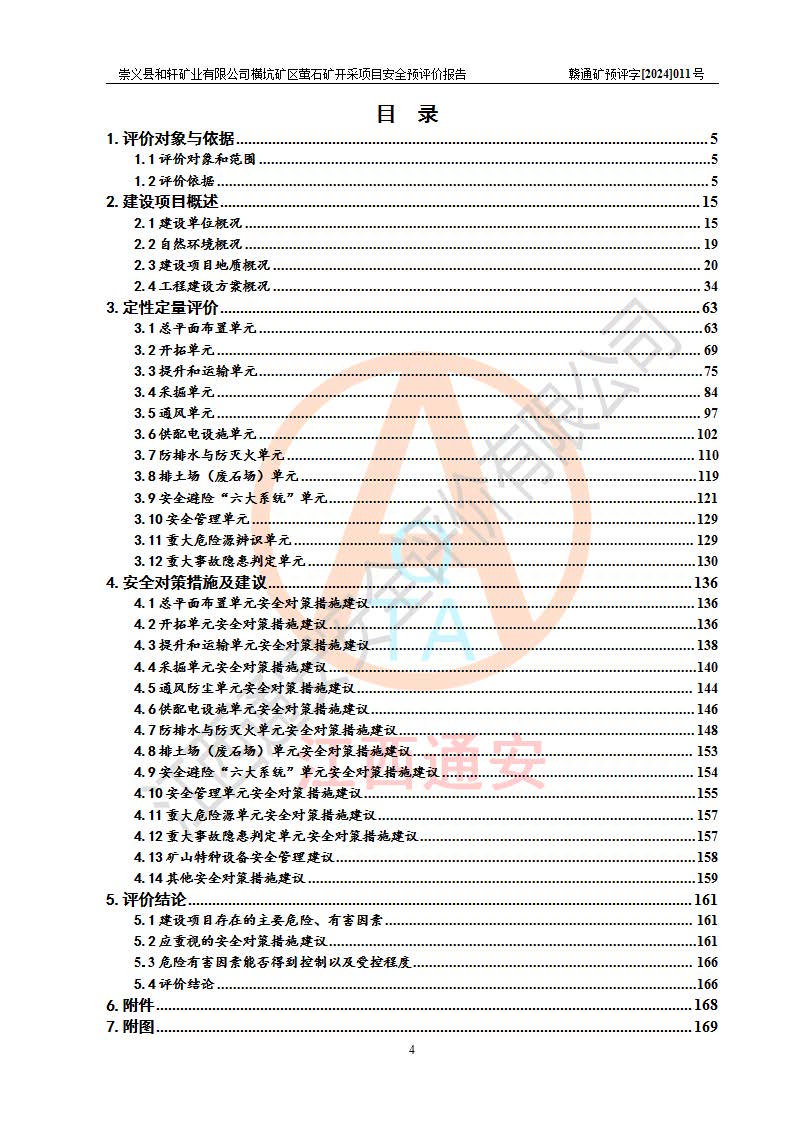 報告名稱 | 崇義縣和軒礦業(yè)有限公司橫坑礦區(qū)螢石礦開采項目安全預評價報告 | |||||