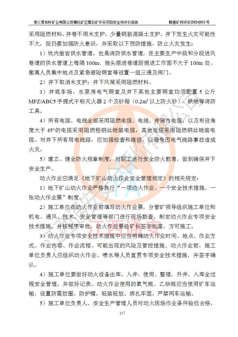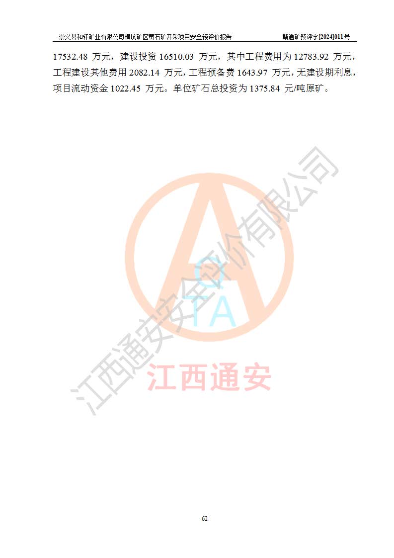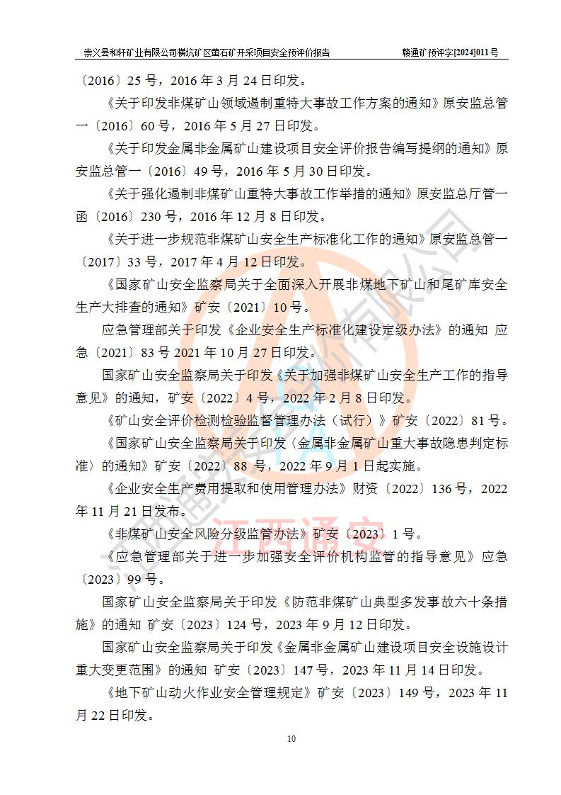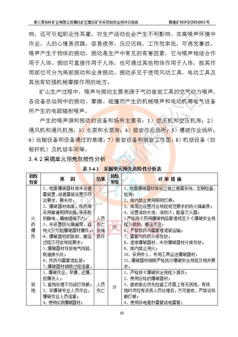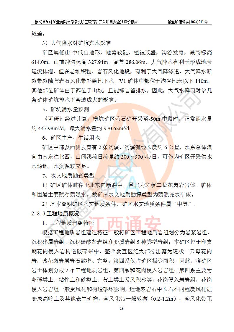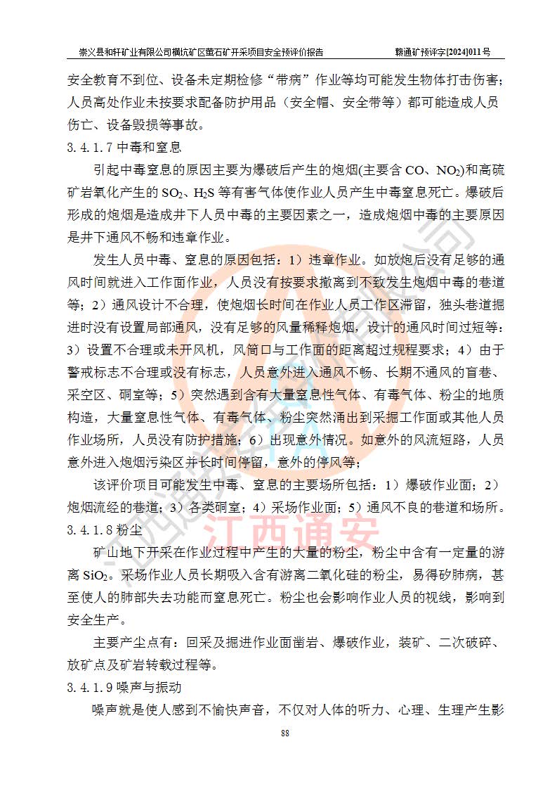 報告名稱 | 崇義縣和軒礦業(yè)有限公司橫坑礦區(qū)螢石礦開采項目安全預評價報告 | |||||