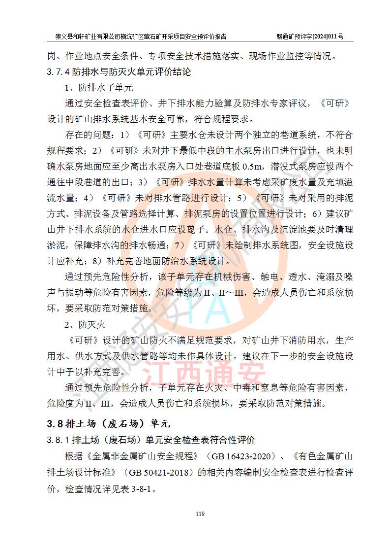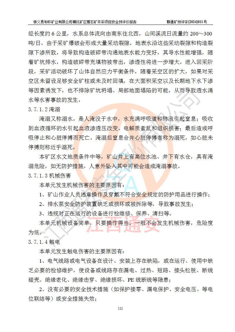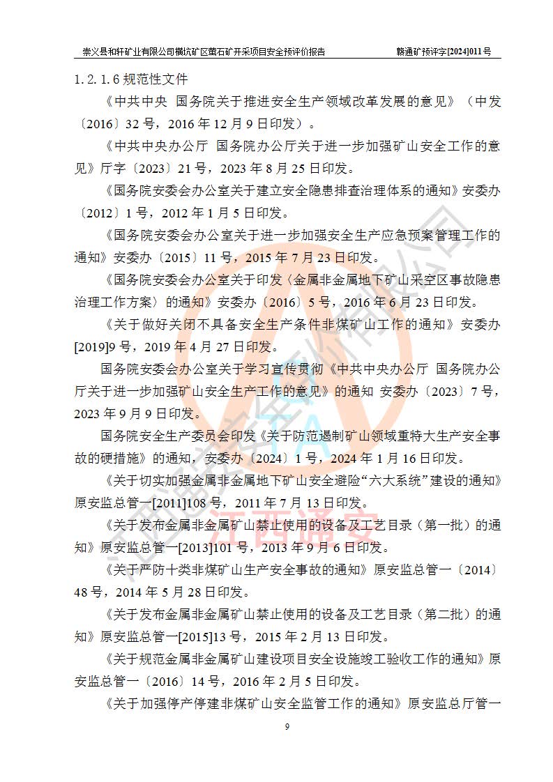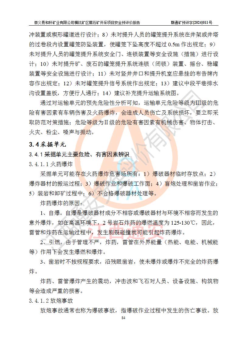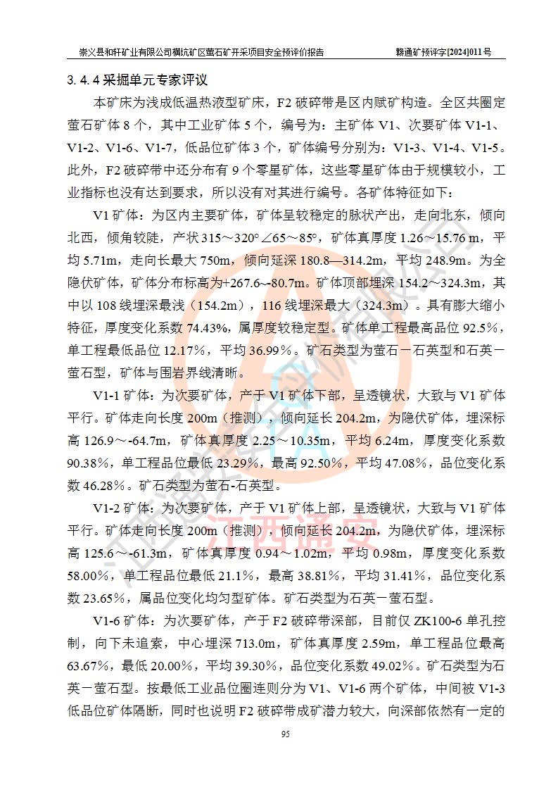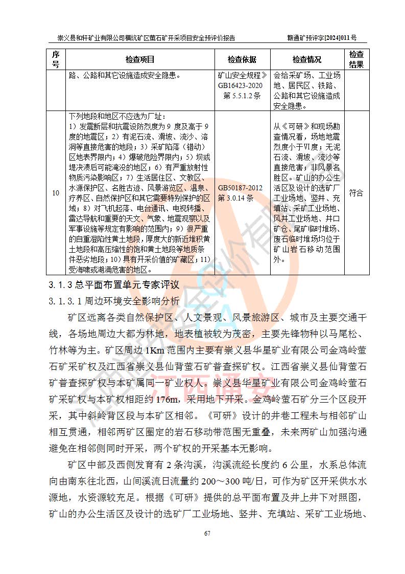 報告名稱 | 崇義縣和軒礦業(yè)有限公司橫坑礦區(qū)螢石礦開采項目安全預評價報告 | |||||