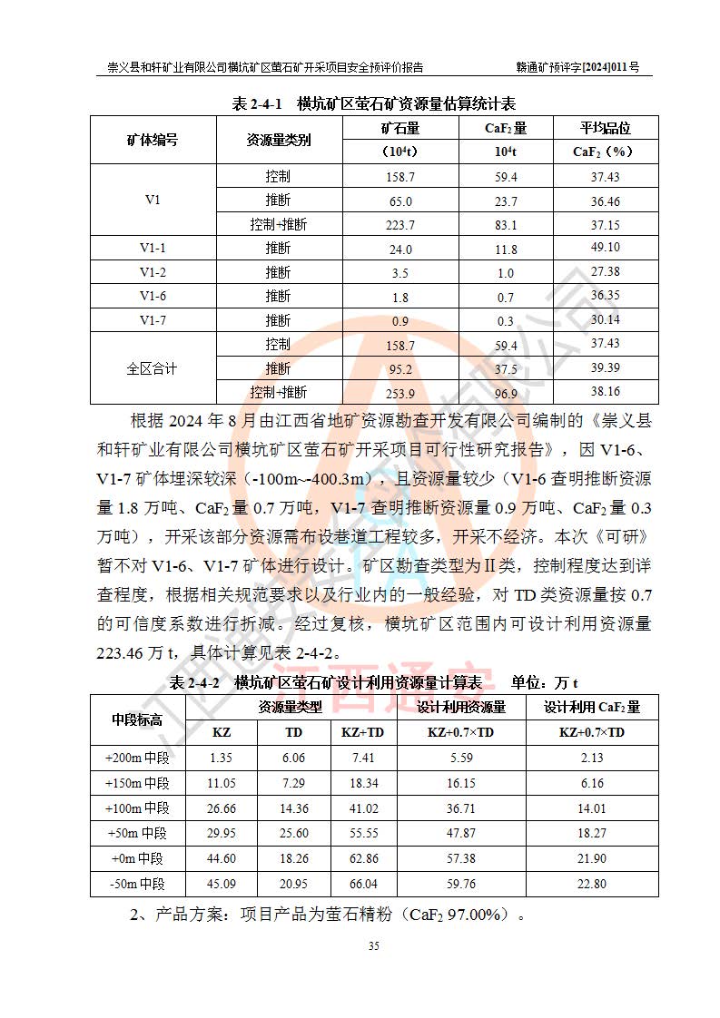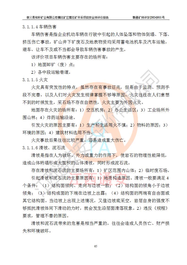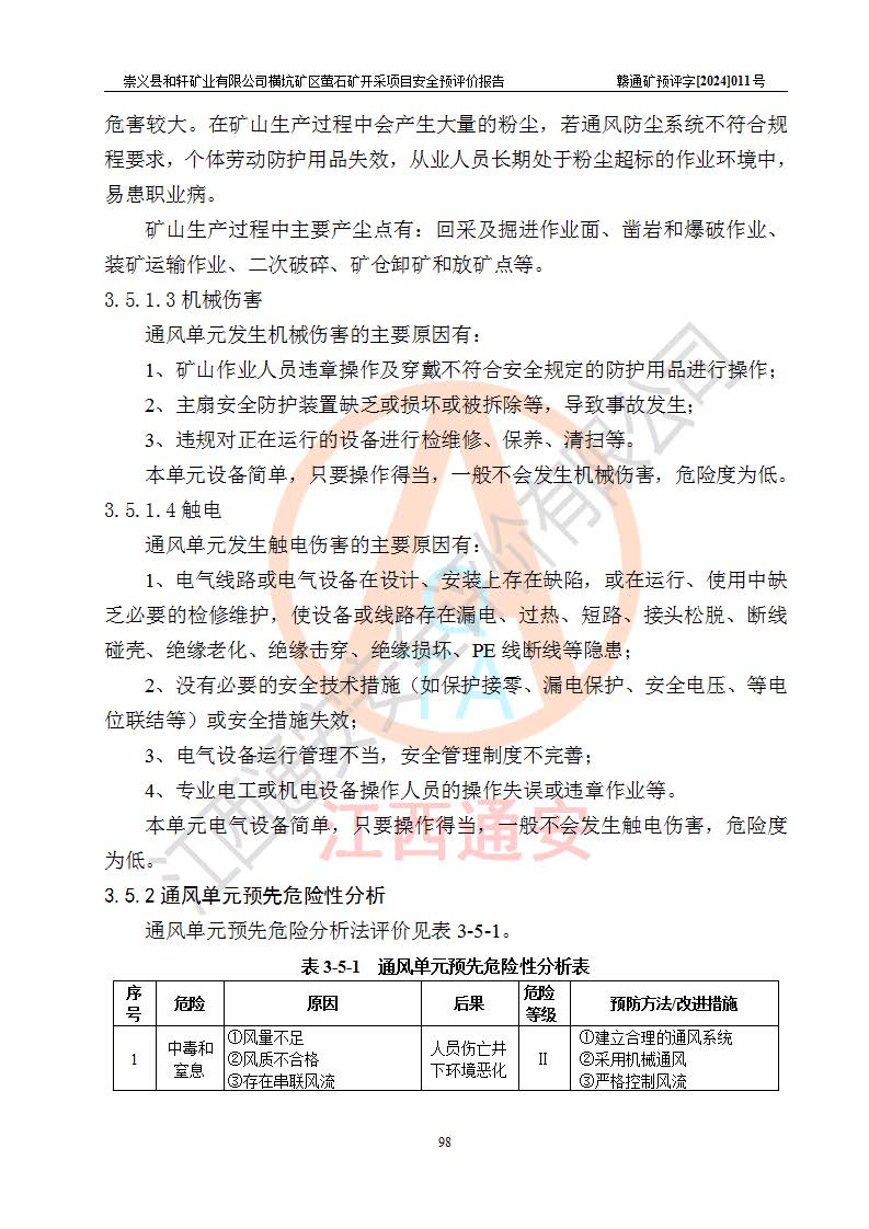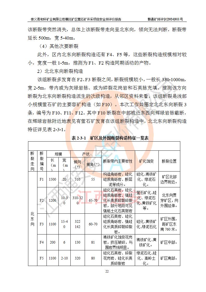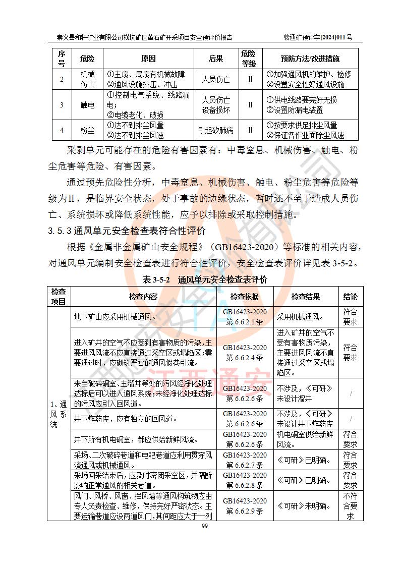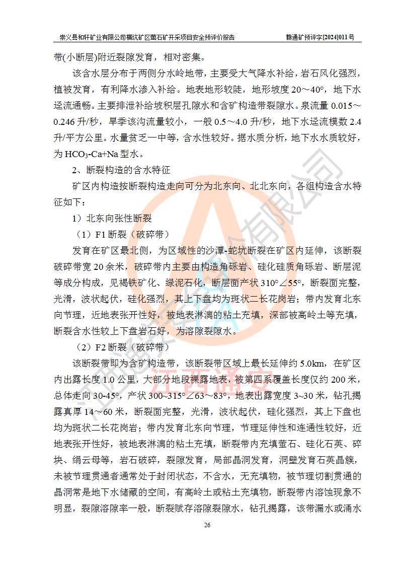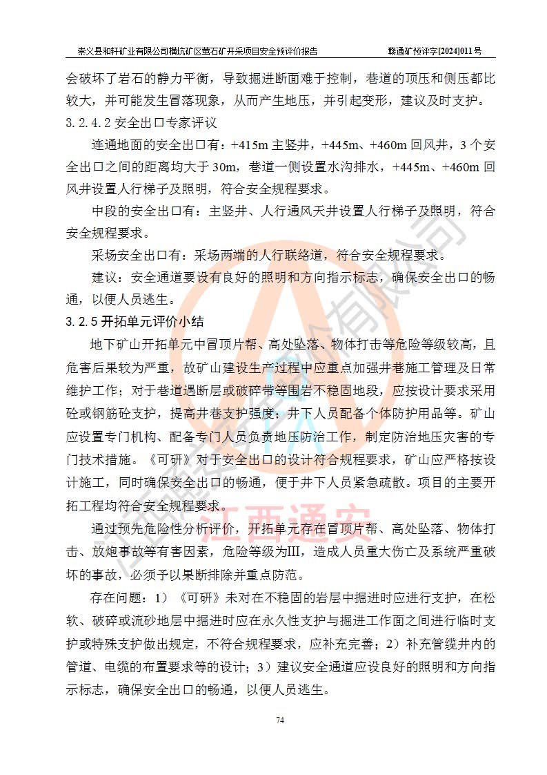 報告名稱 | 崇義縣和軒礦業(yè)有限公司橫坑礦區(qū)螢石礦開采項目安全預評價報告 | |||||