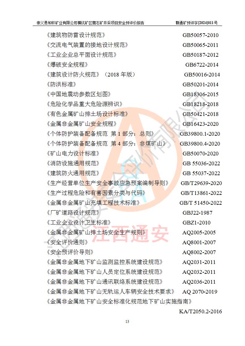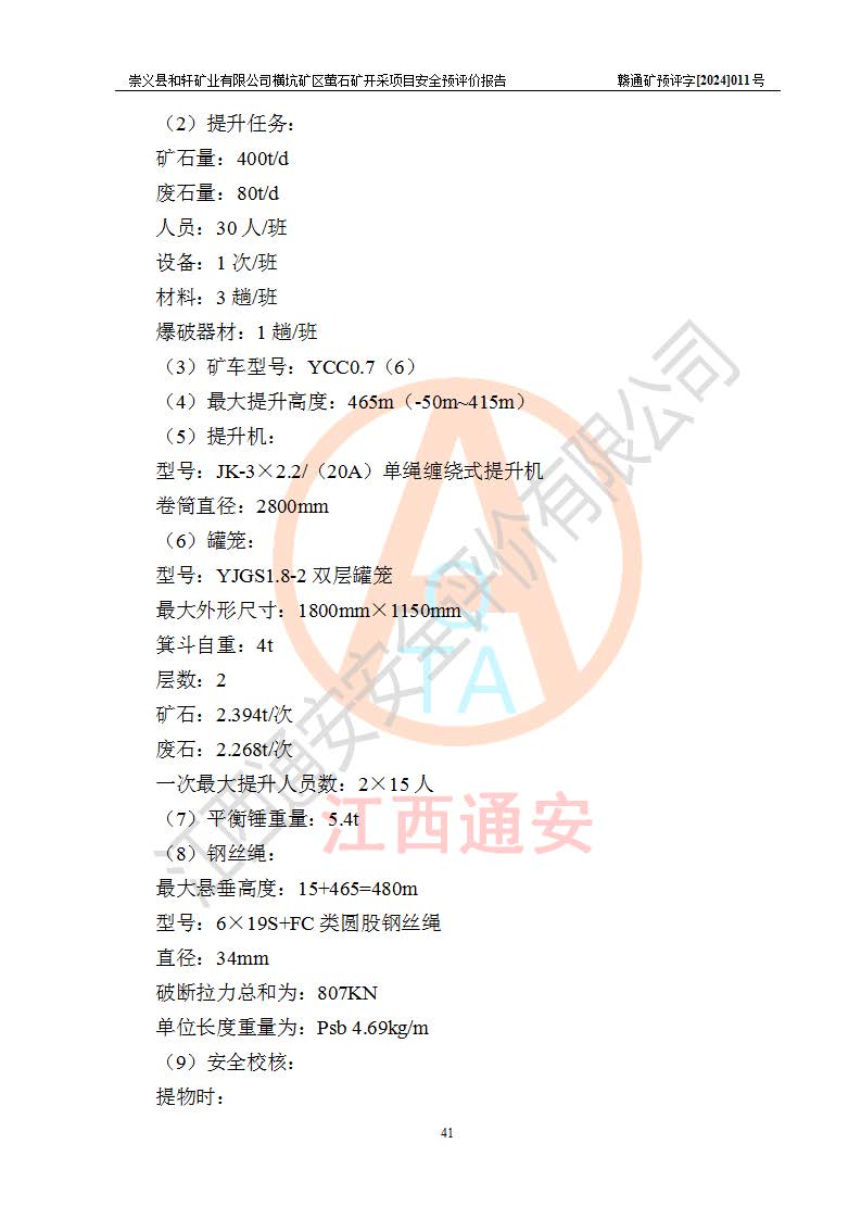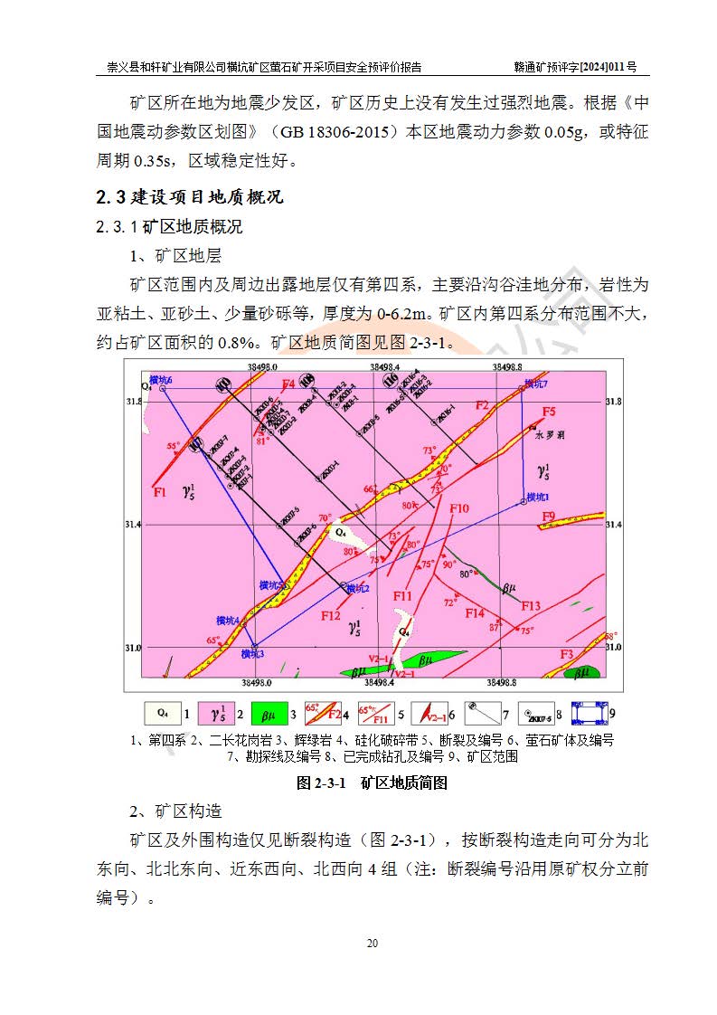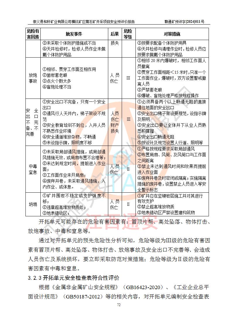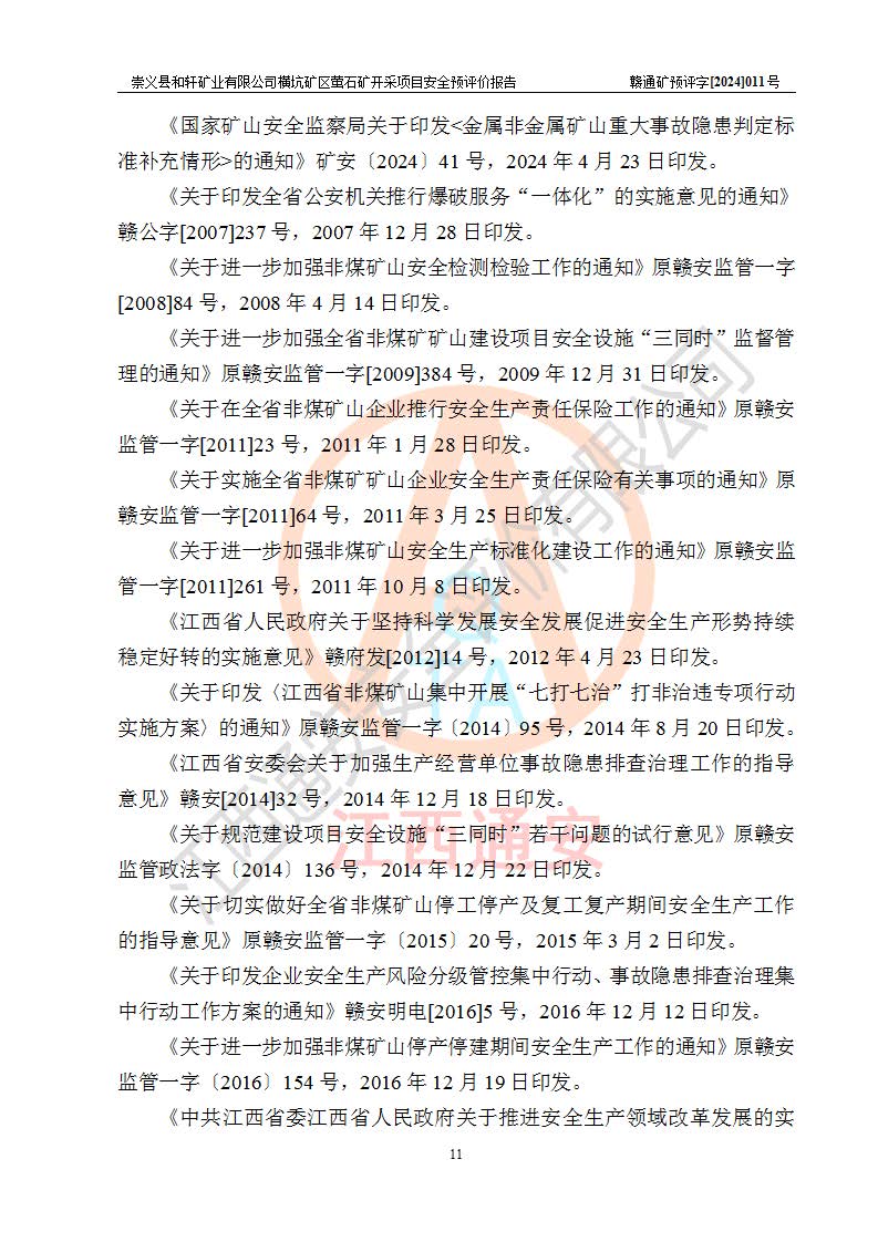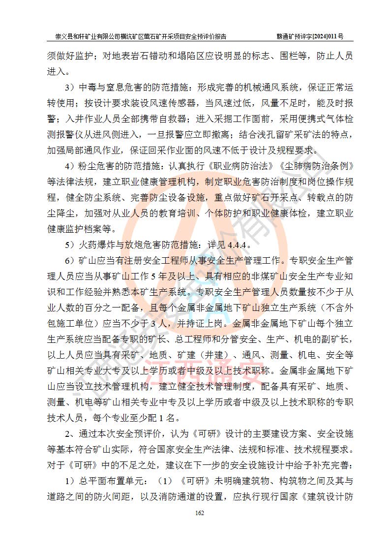 報告名稱 | 崇義縣和軒礦業(yè)有限公司橫坑礦區(qū)螢石礦開采項目安全預評價報告 | |||||