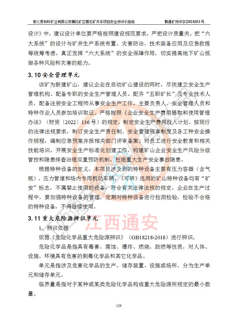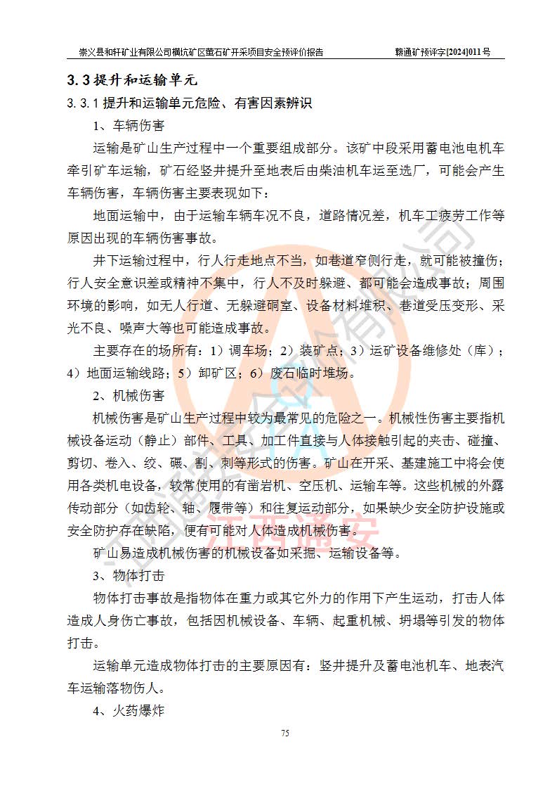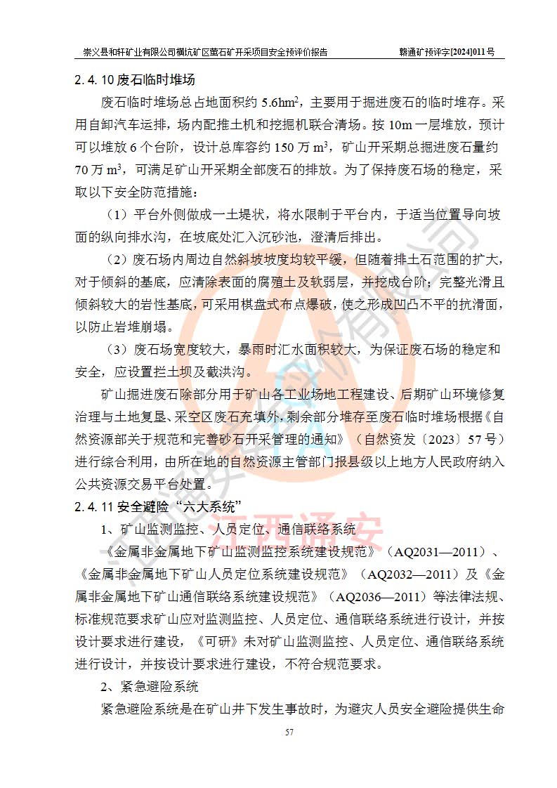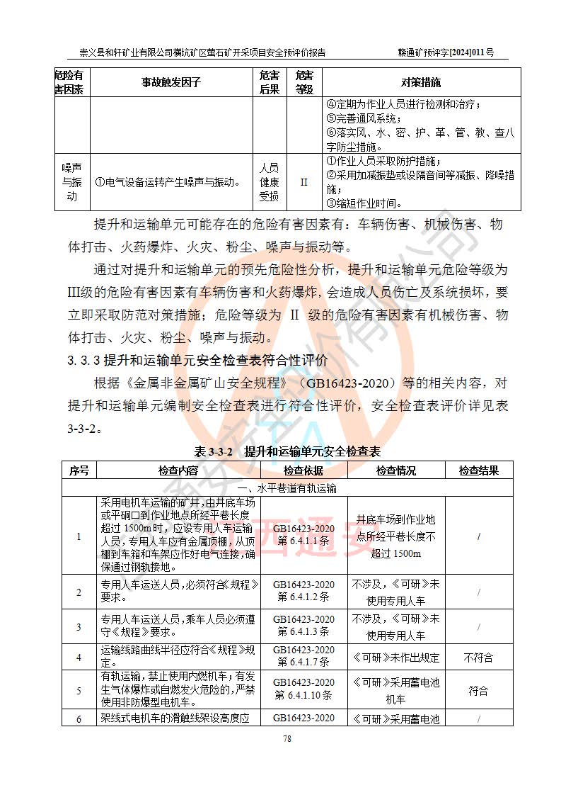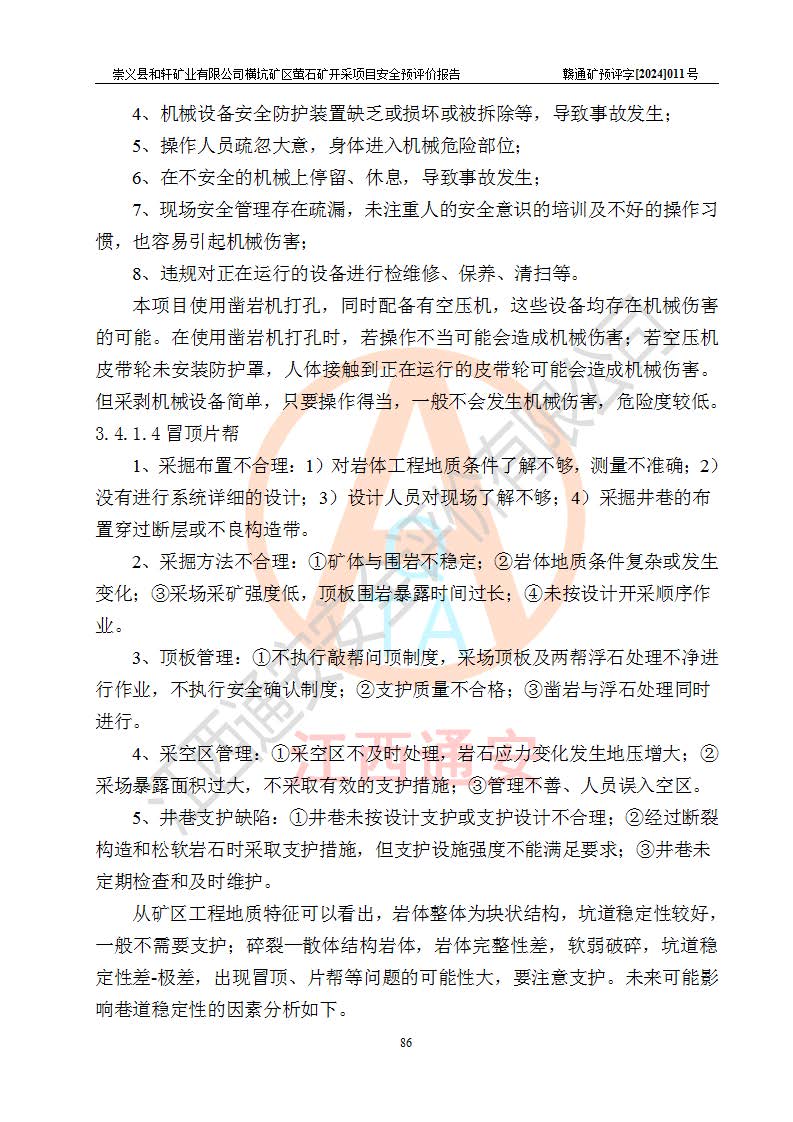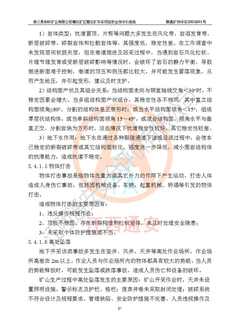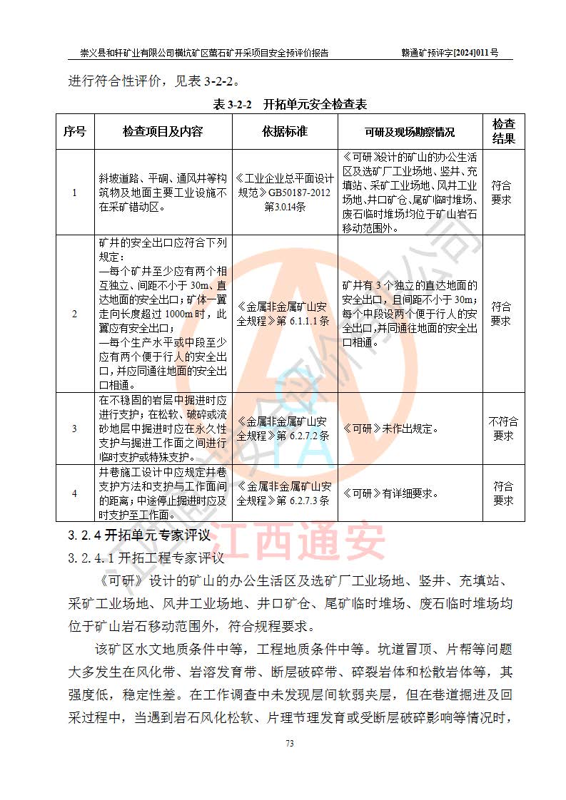 報告名稱 | 崇義縣和軒礦業(yè)有限公司橫坑礦區(qū)螢石礦開采項目安全預評價報告 | |||||