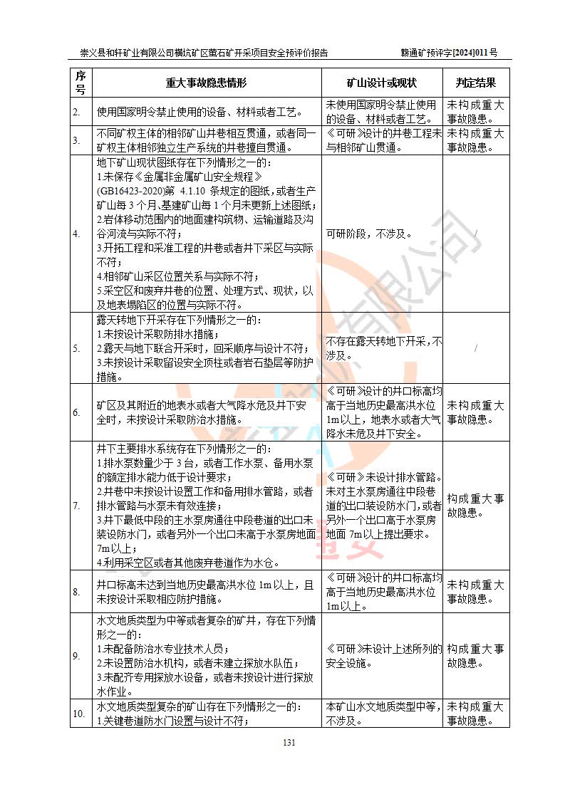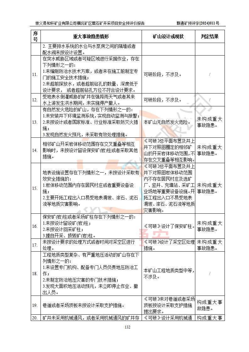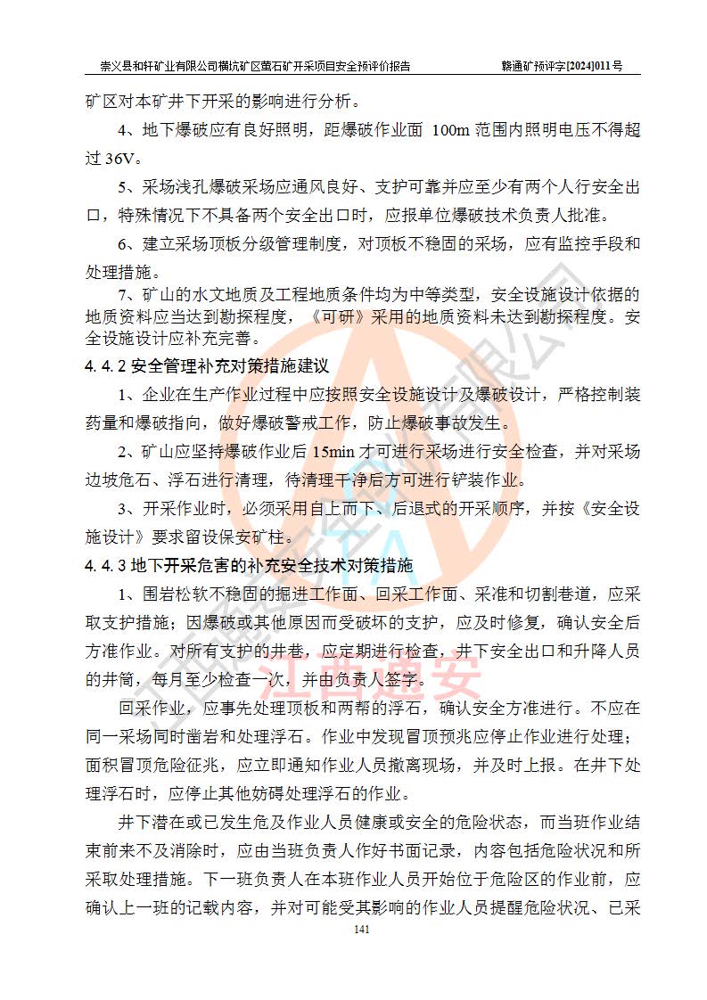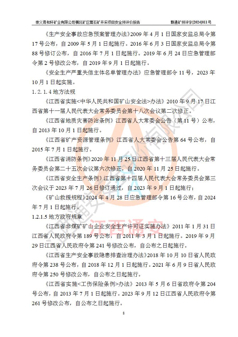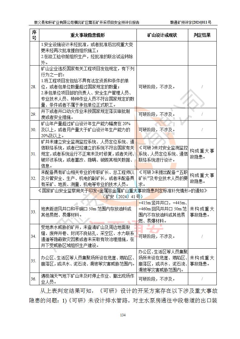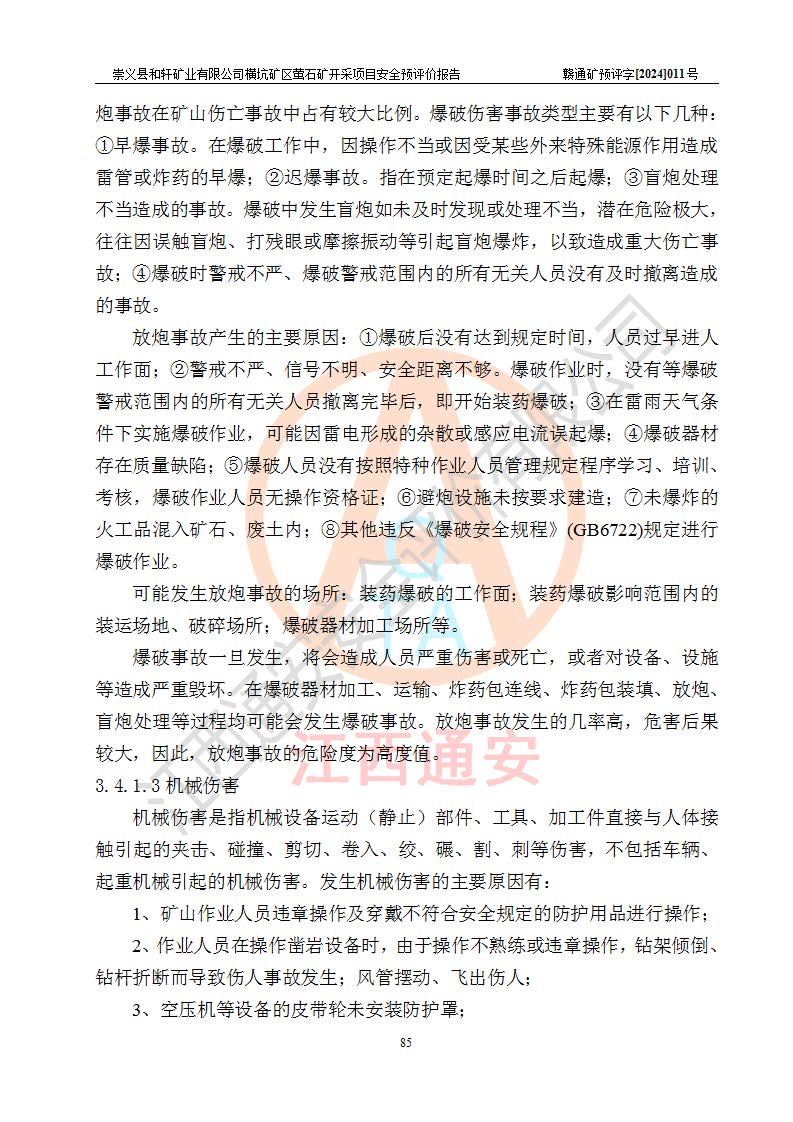 報告名稱 | 崇義縣和軒礦業(yè)有限公司橫坑礦區(qū)螢石礦開采項目安全預評價報告 | |||||
