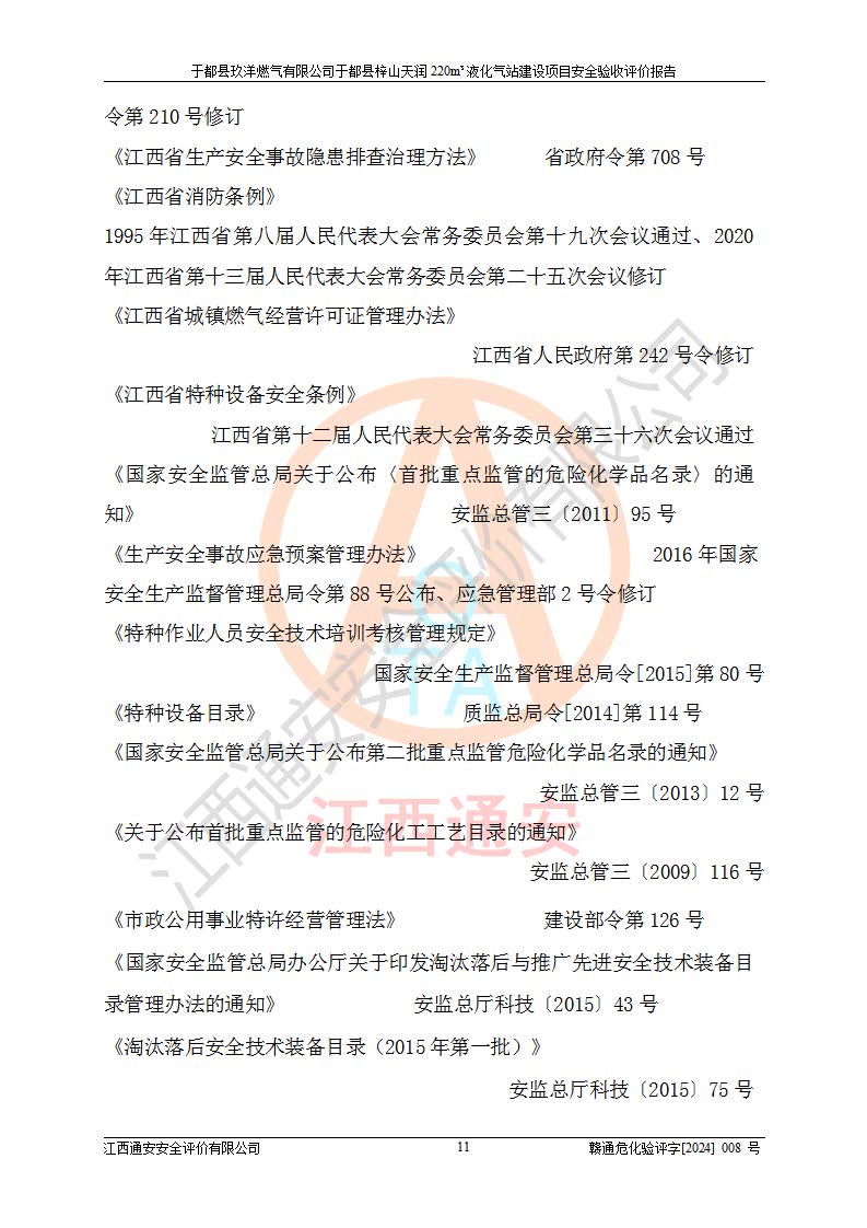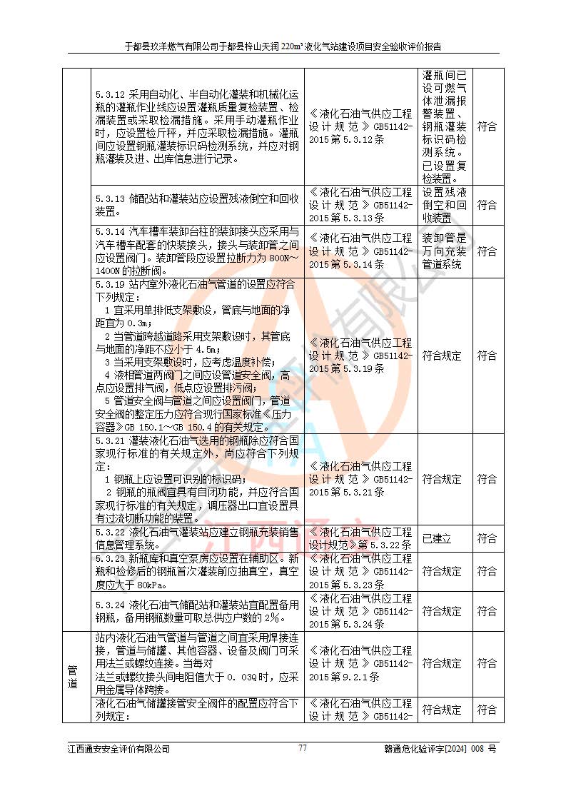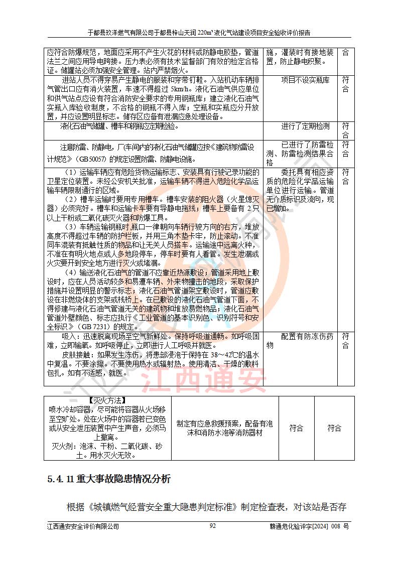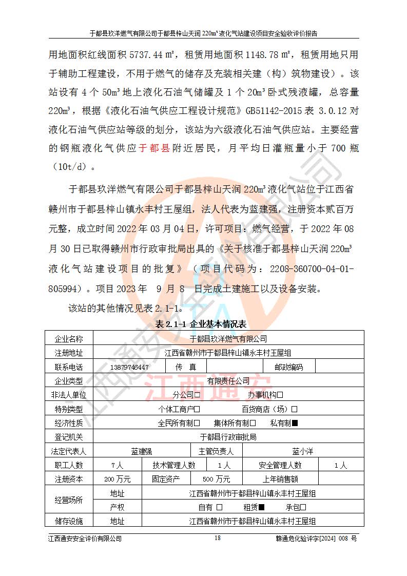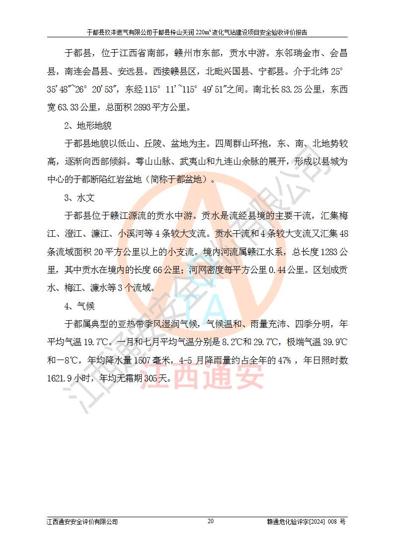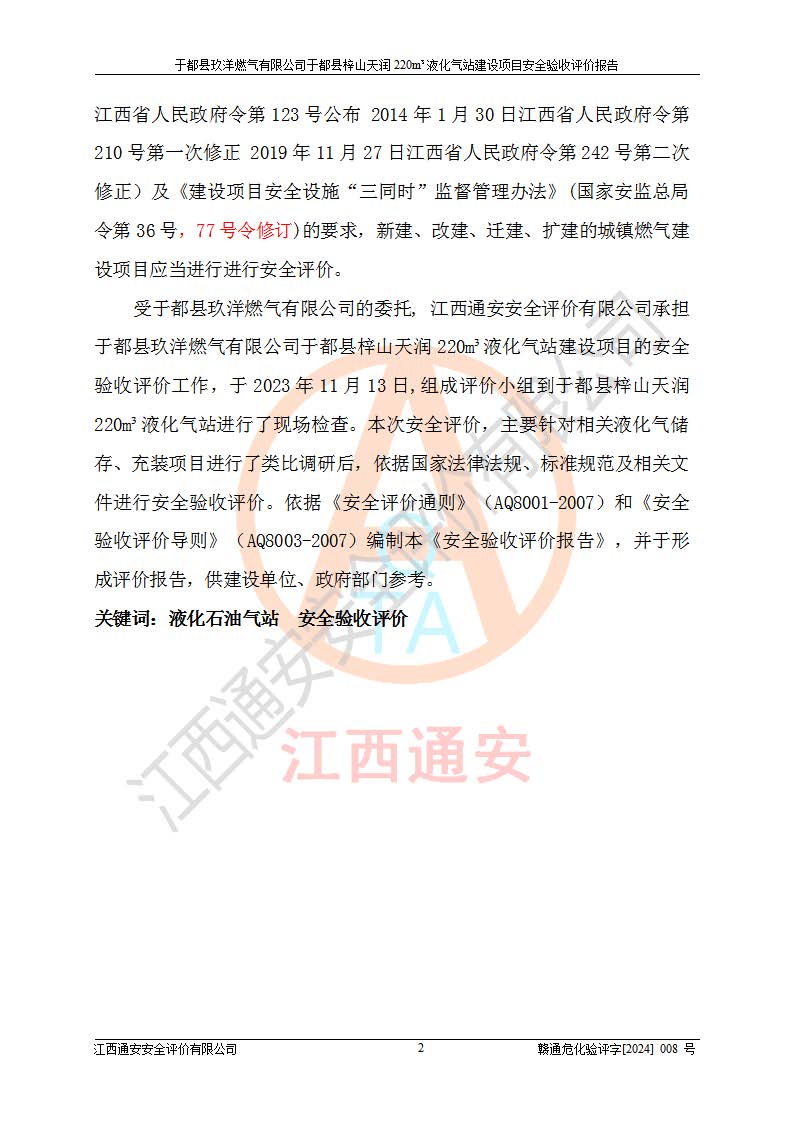 項(xiàng)目名稱 | 于都縣玖洋燃?xì)庥邢薰居诙伎h梓山天潤(rùn)220m3液化氣站建設(shè)項(xiàng)目安全驗(yàn)收評(píng)價(jià)報(bào)告 | ||||