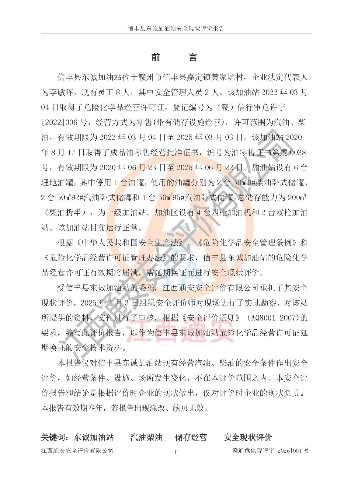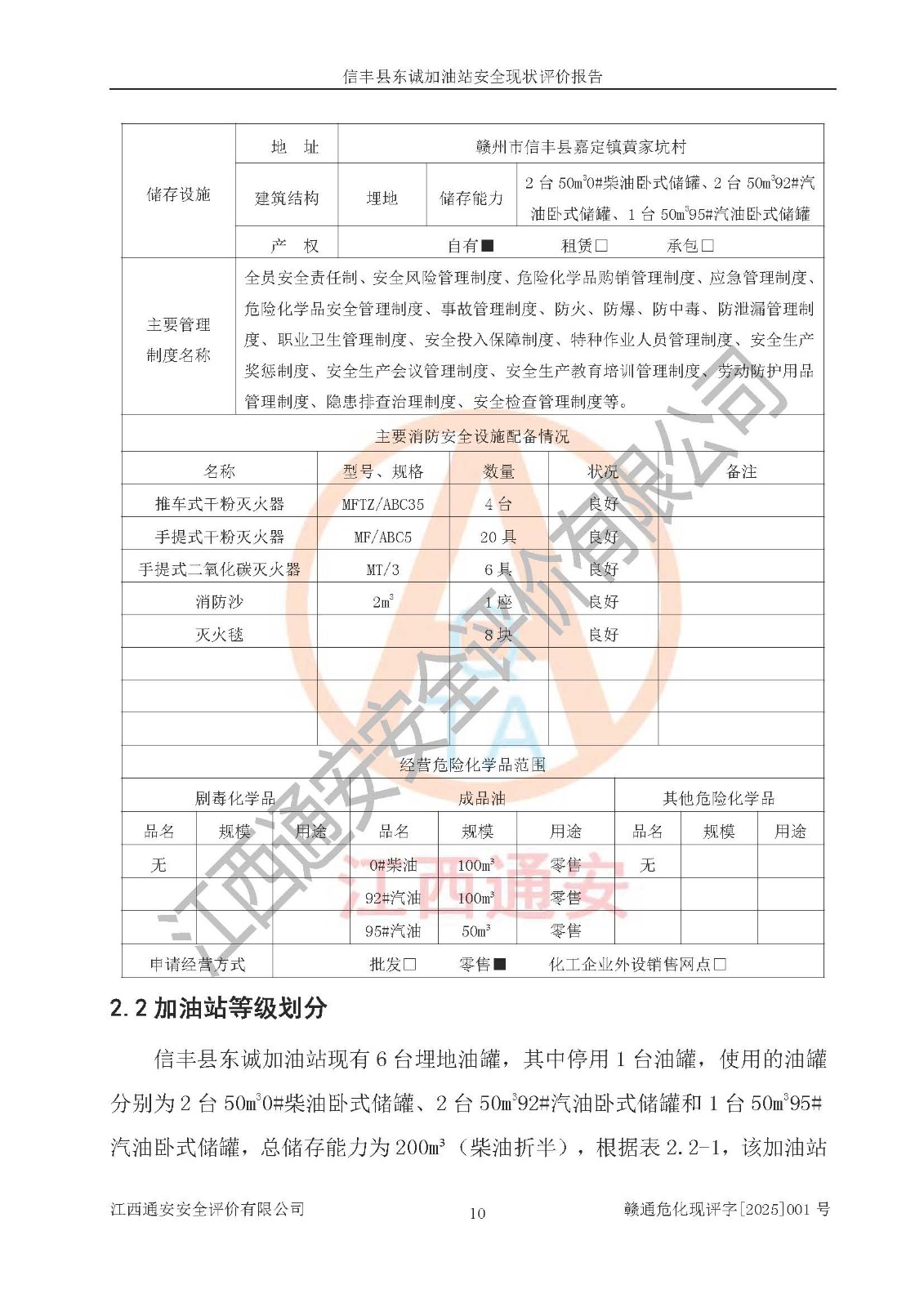 評價報告名稱 | 信豐縣東誠加油站安全現(xiàn)狀評價報告 | |||