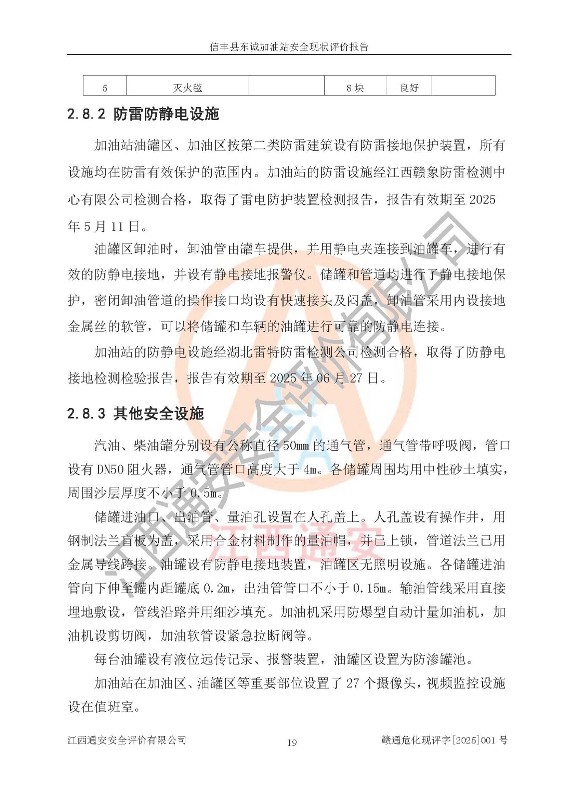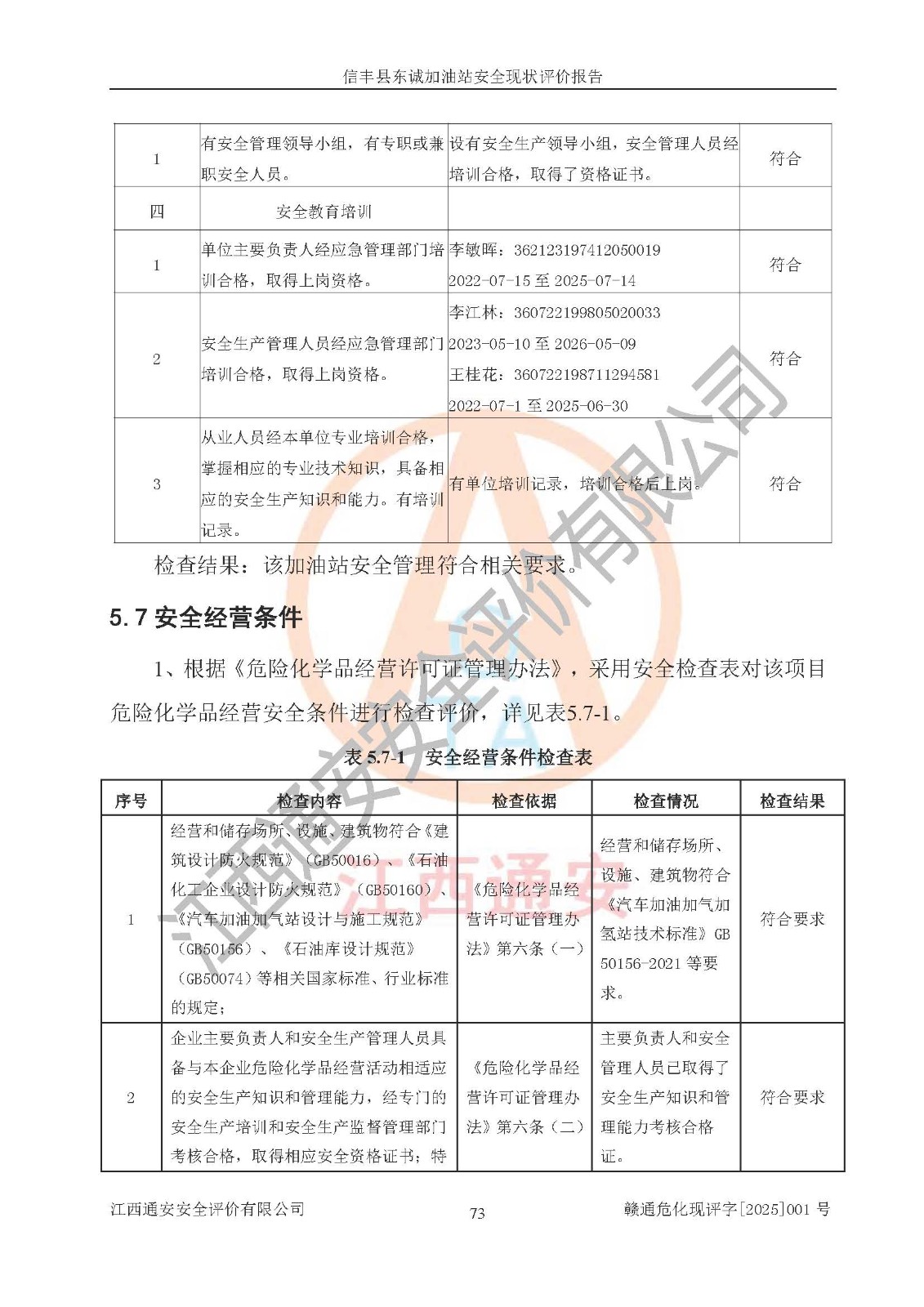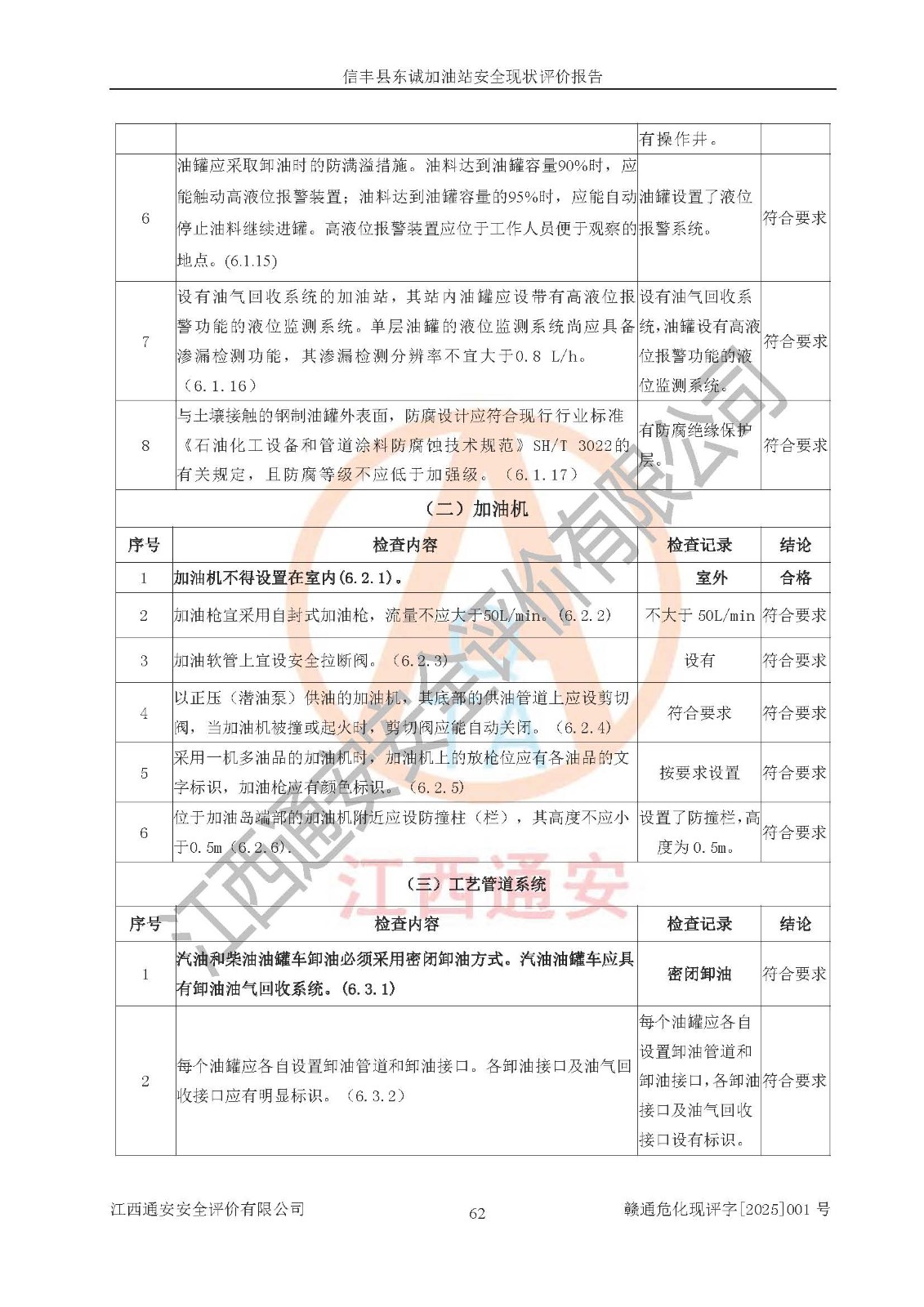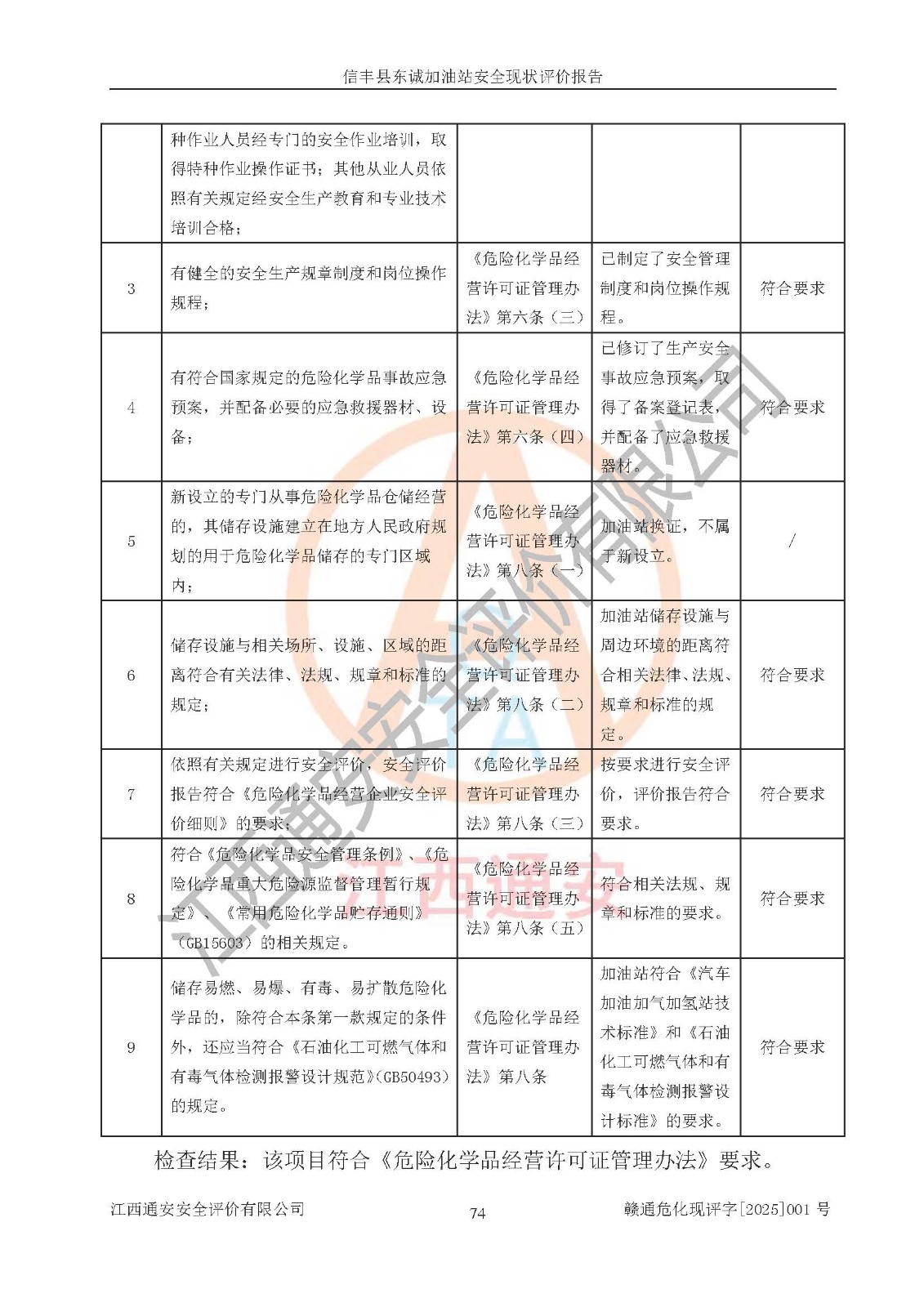 評價結論 | 信豐縣東誠加油站安全現(xiàn)狀符合危險化學品經(jīng)營安全條件。 | |||