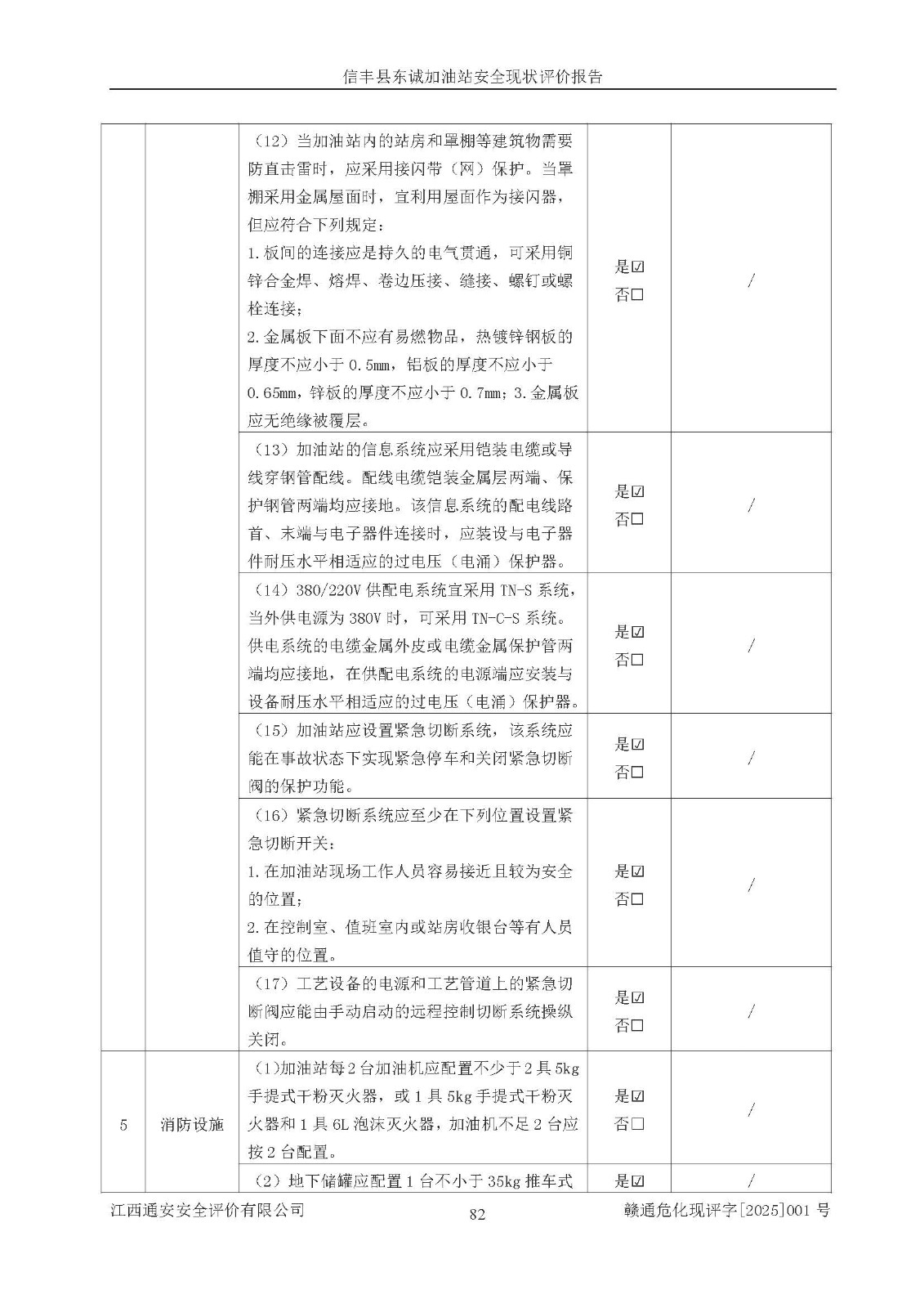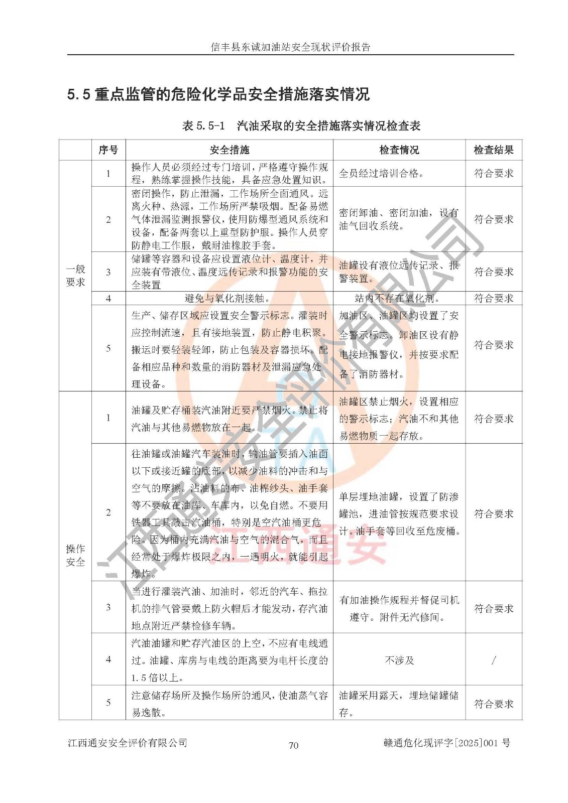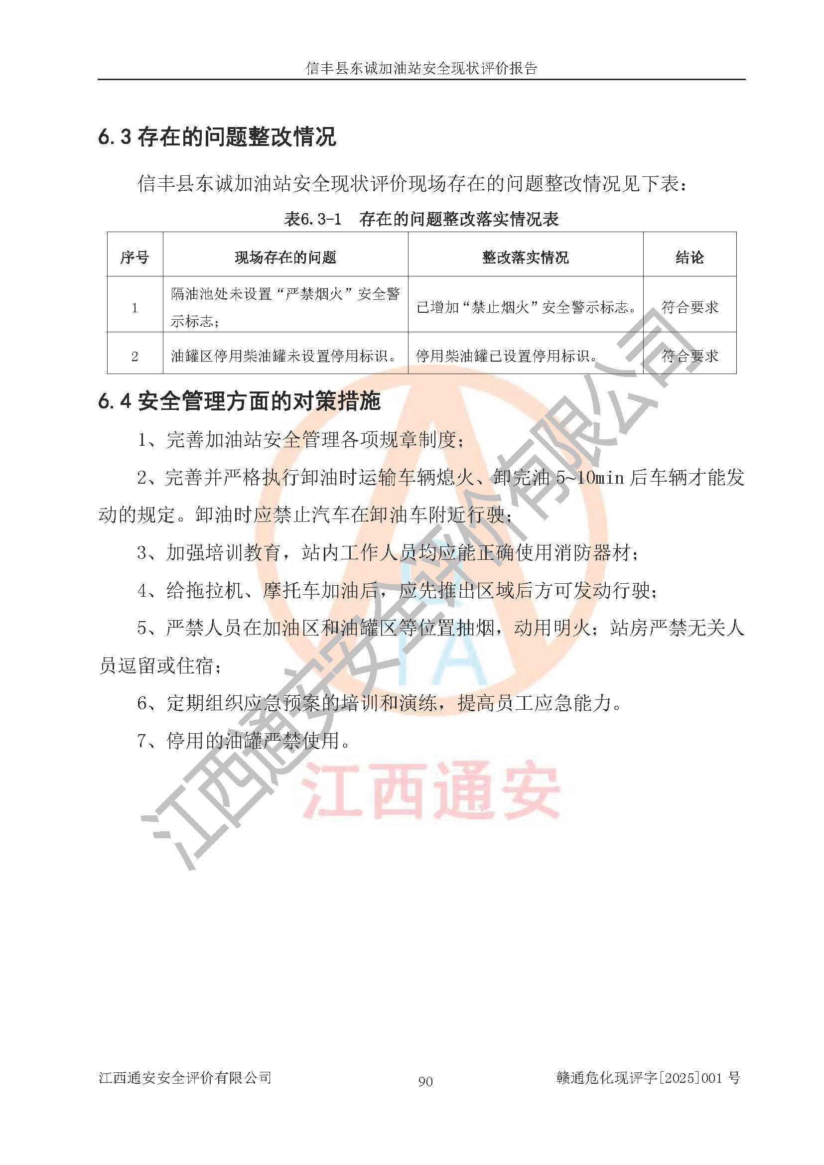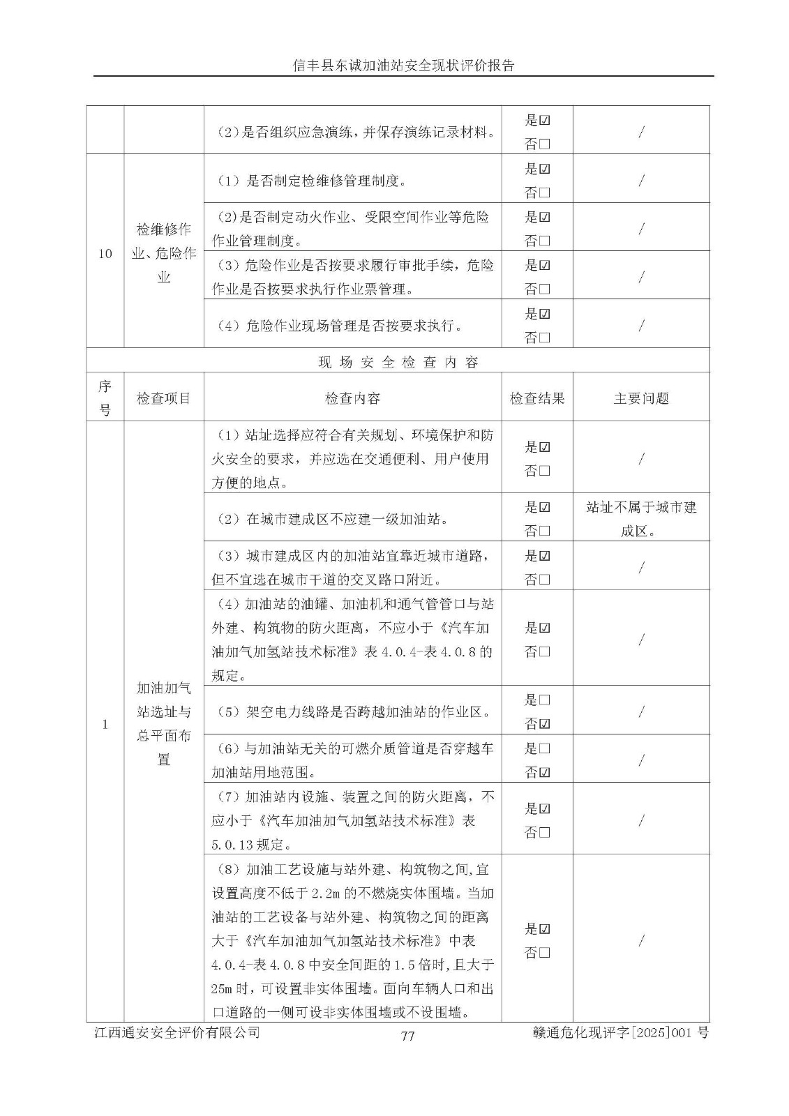 評價結論 | 信豐縣東誠加油站安全現(xiàn)狀符合危險化學品經(jīng)營安全條件。 | |||