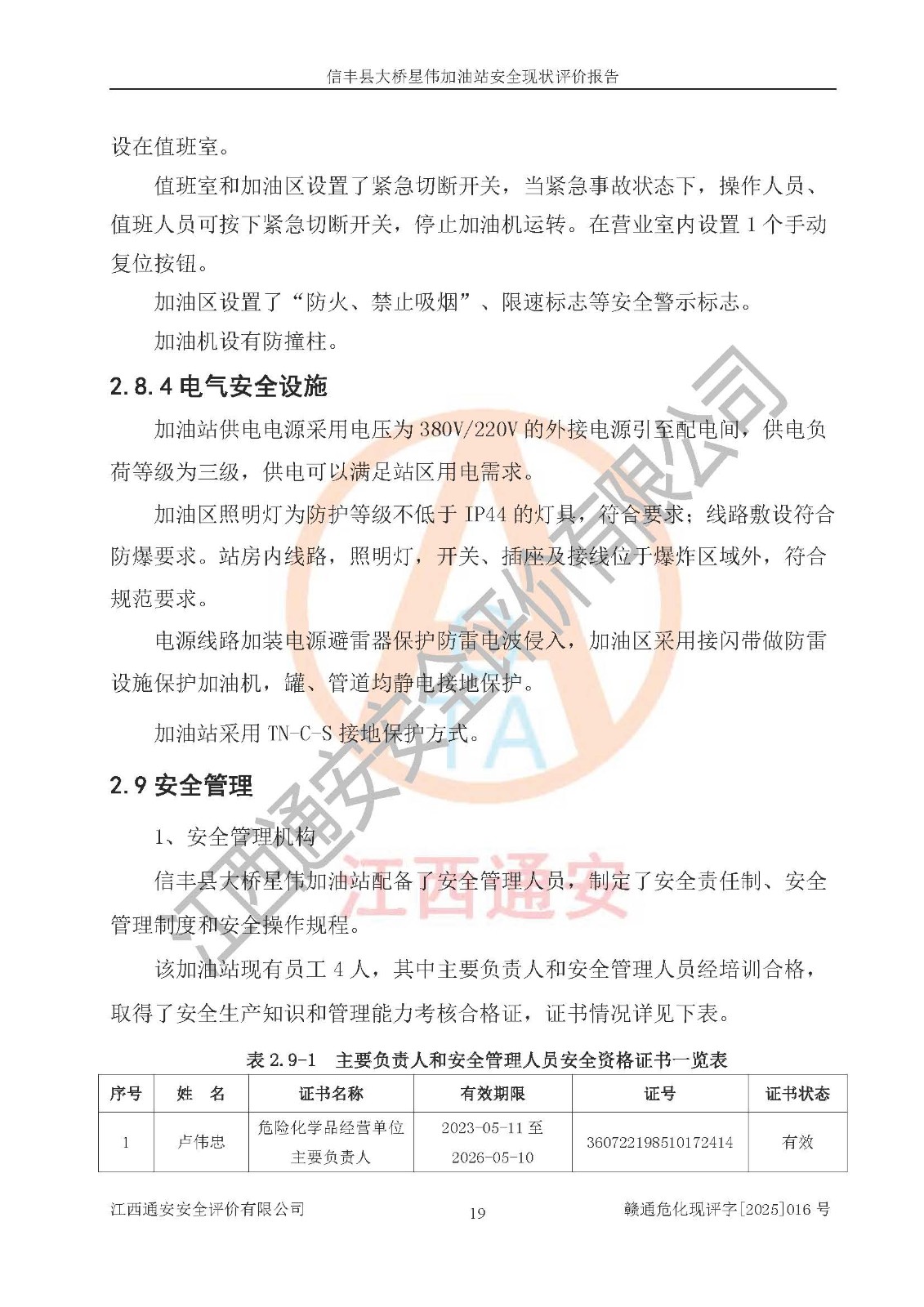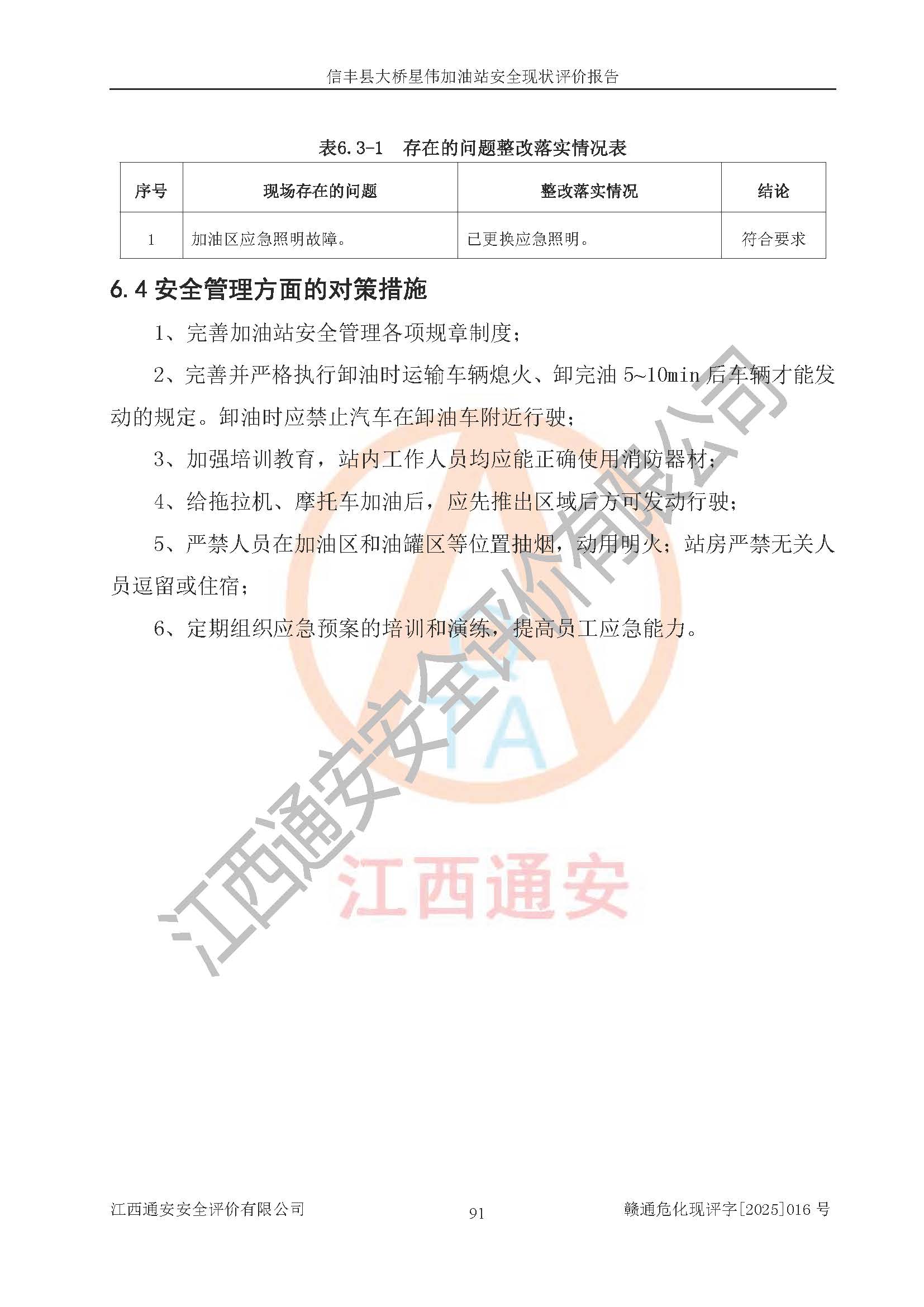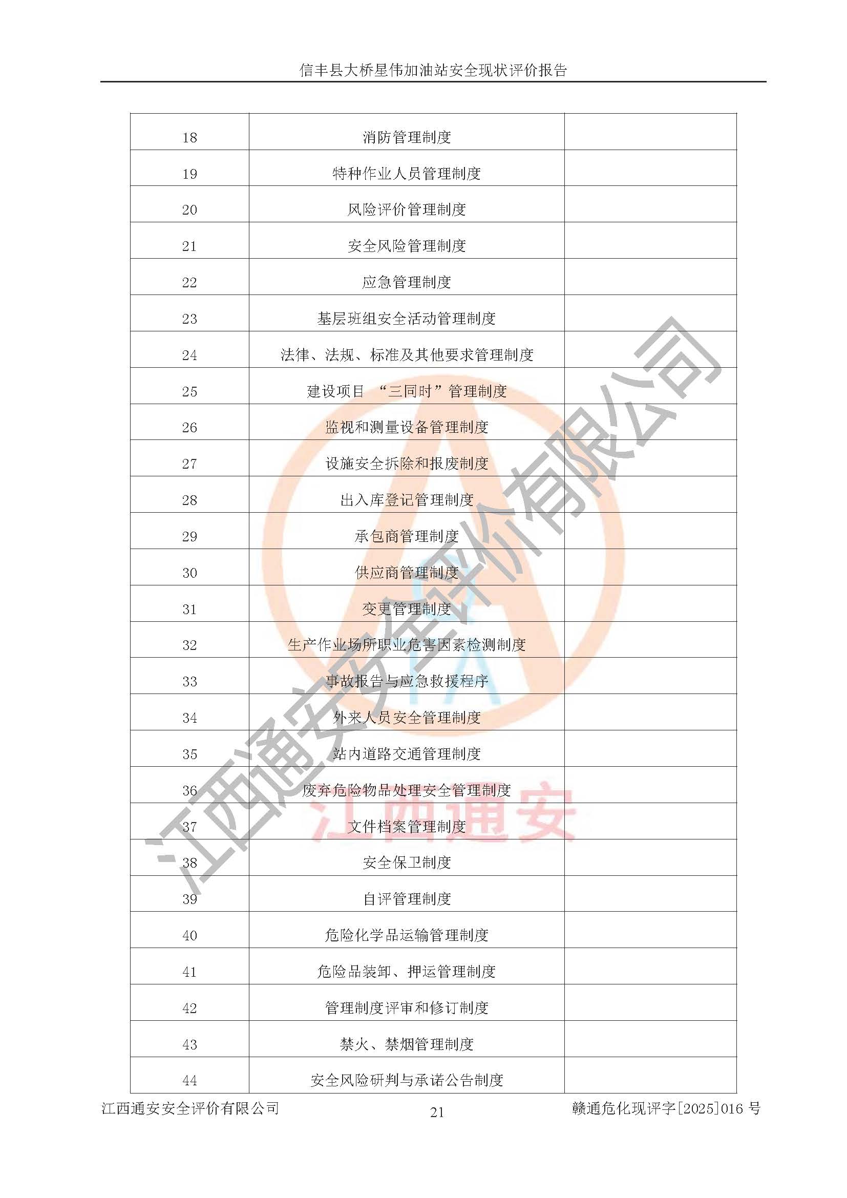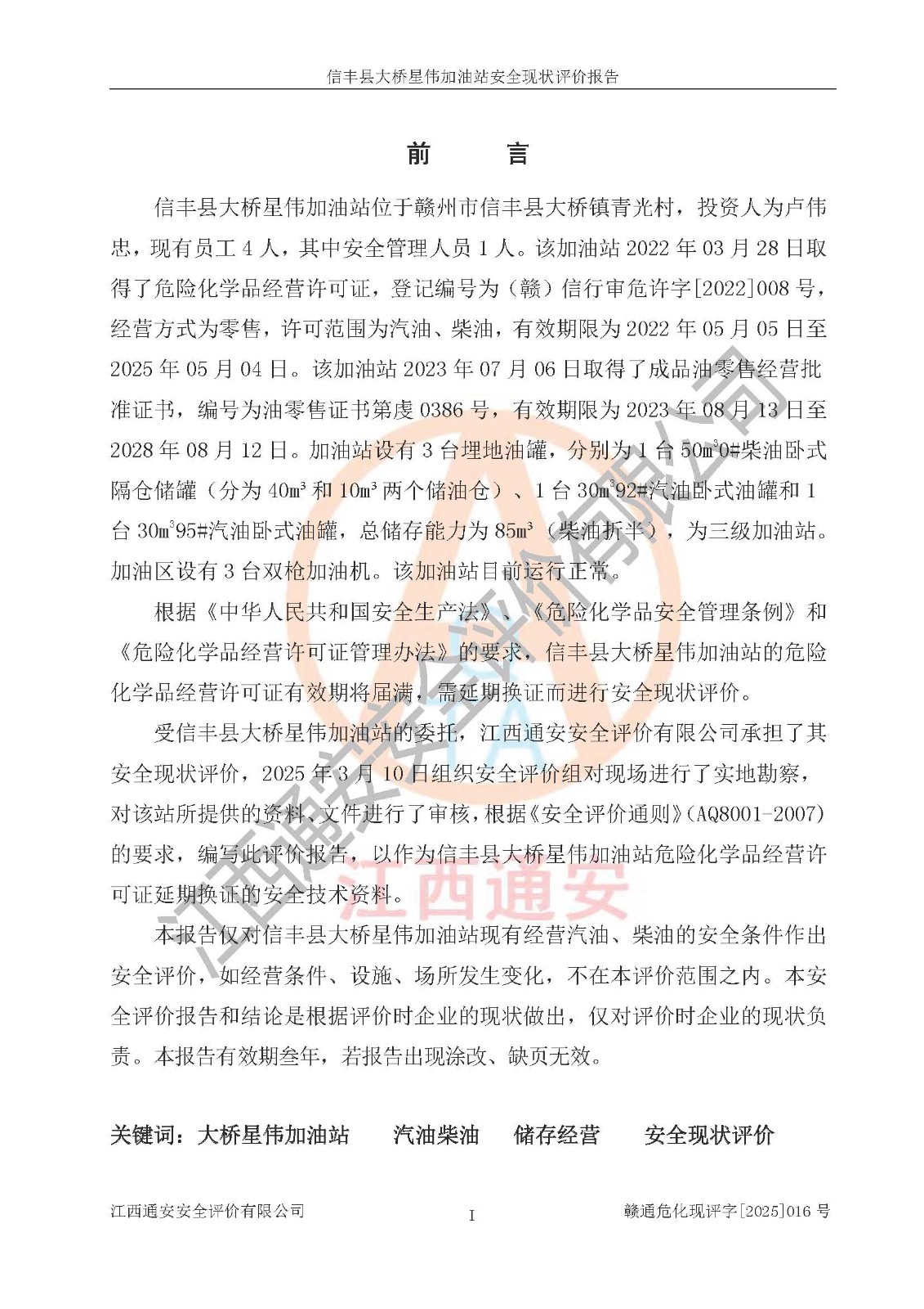 評價報告名稱 | 信豐縣大橋星偉加油站安全現(xiàn)狀評價報告 | |||