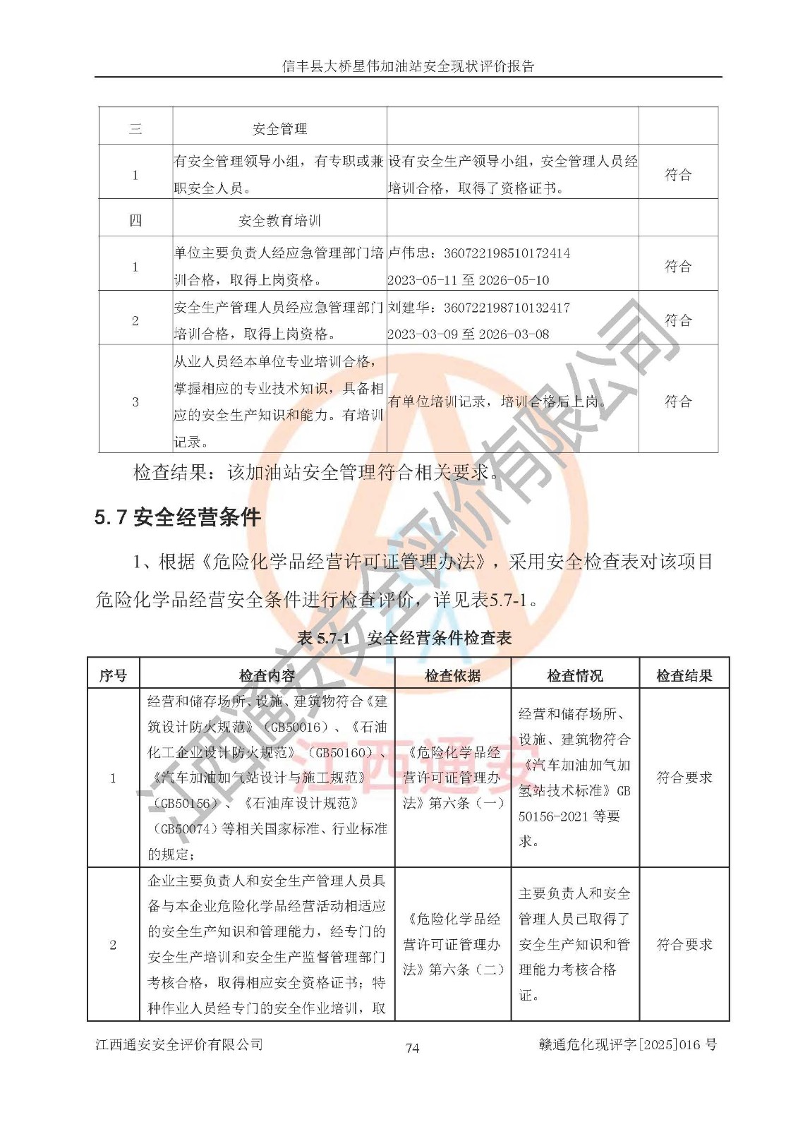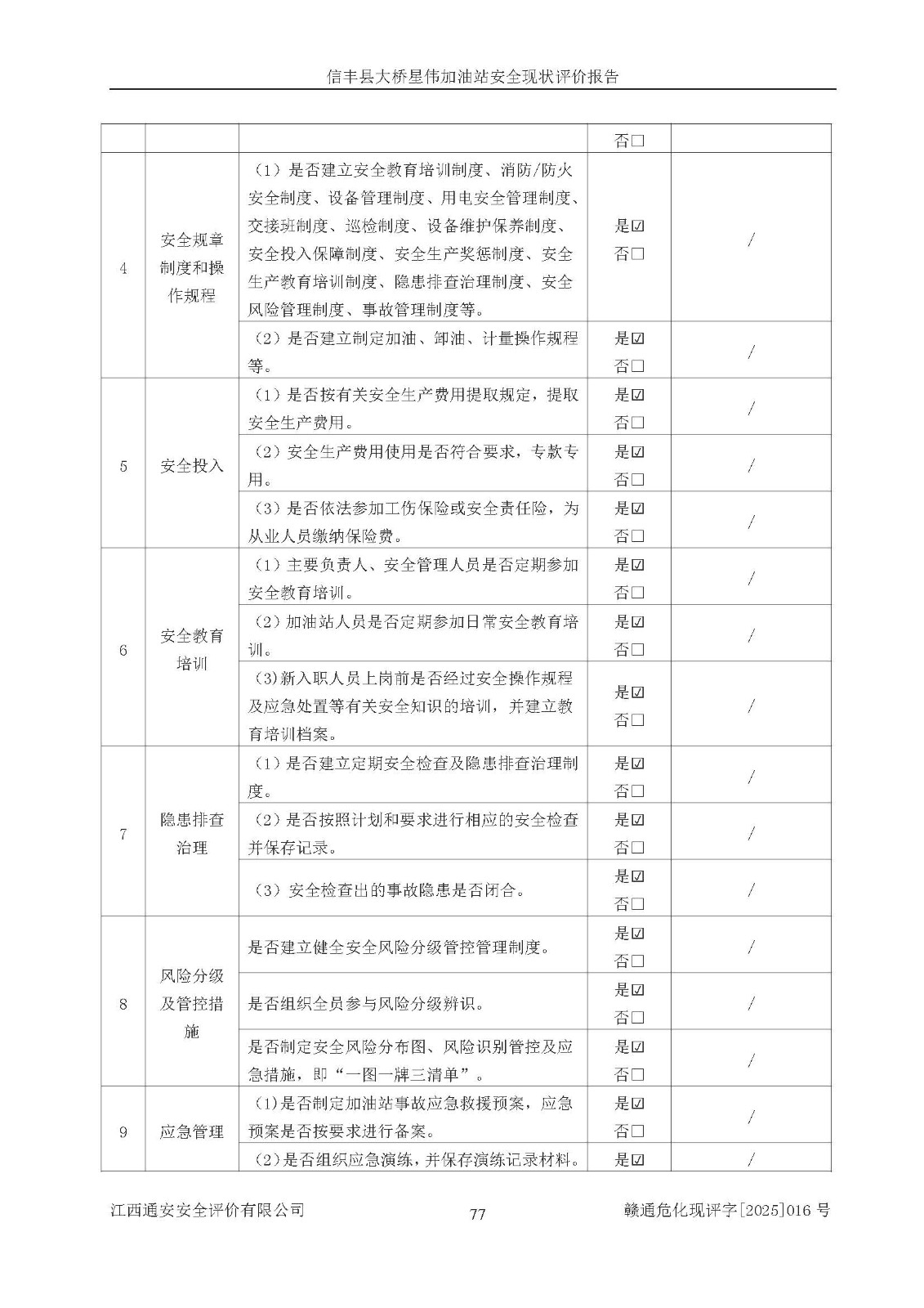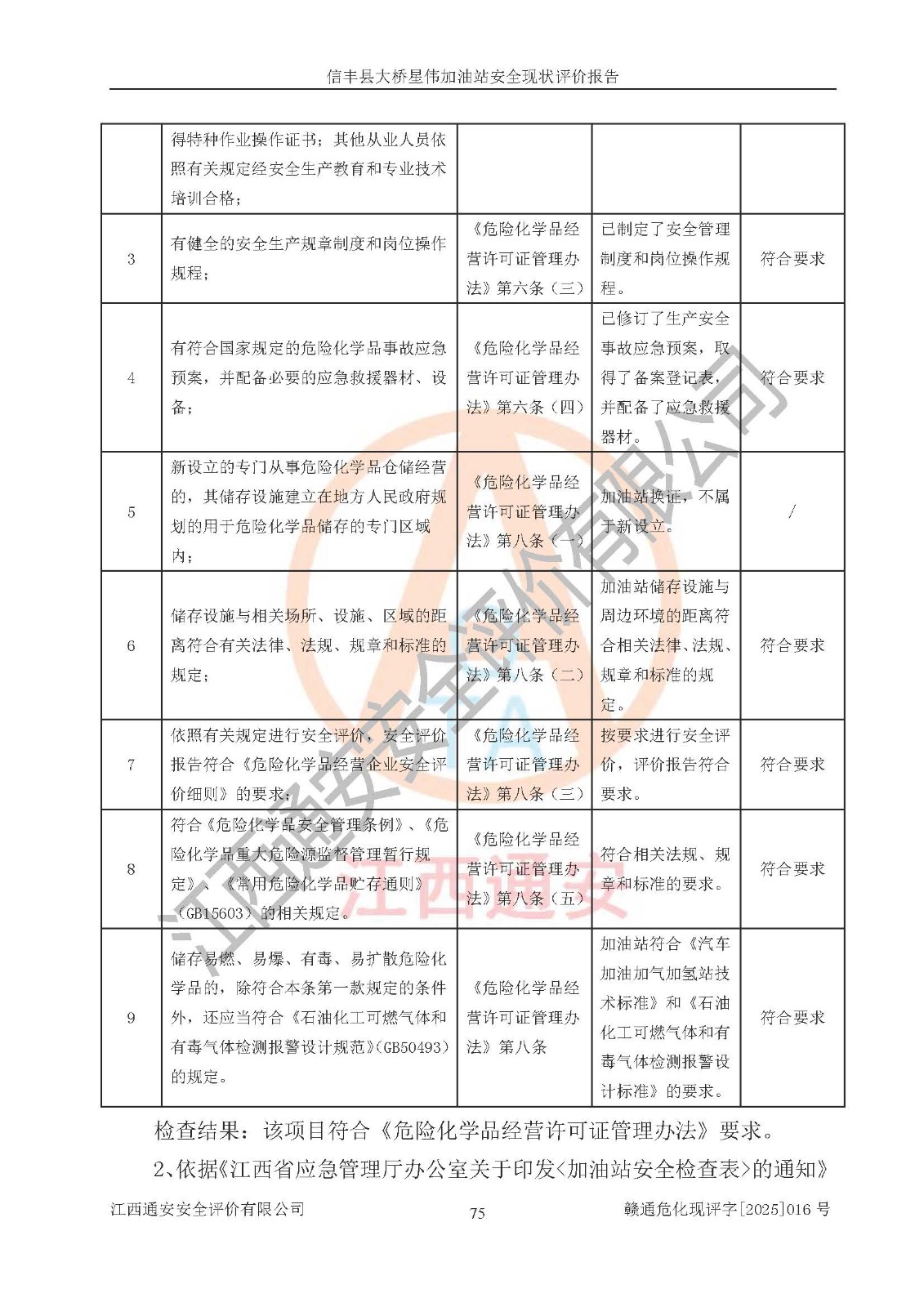 評價結(jié)論 | 信豐縣大橋星偉加油站安全現(xiàn)狀符合危險化學(xué)品經(jīng)營安全條件。 | |||